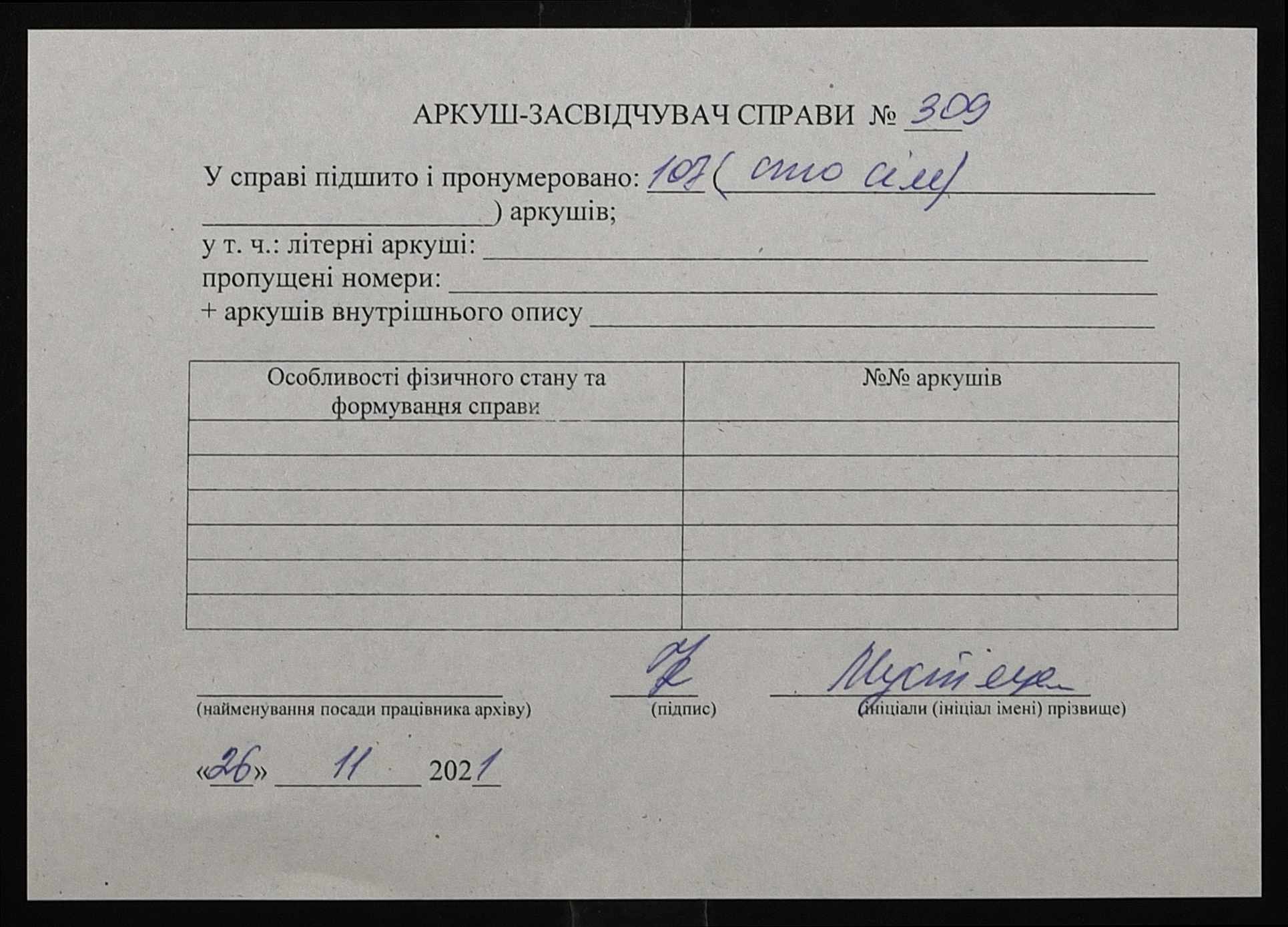 • • • • Справа № 309 “Прибутково-видаткові документи училища (рахунки, відомості)”