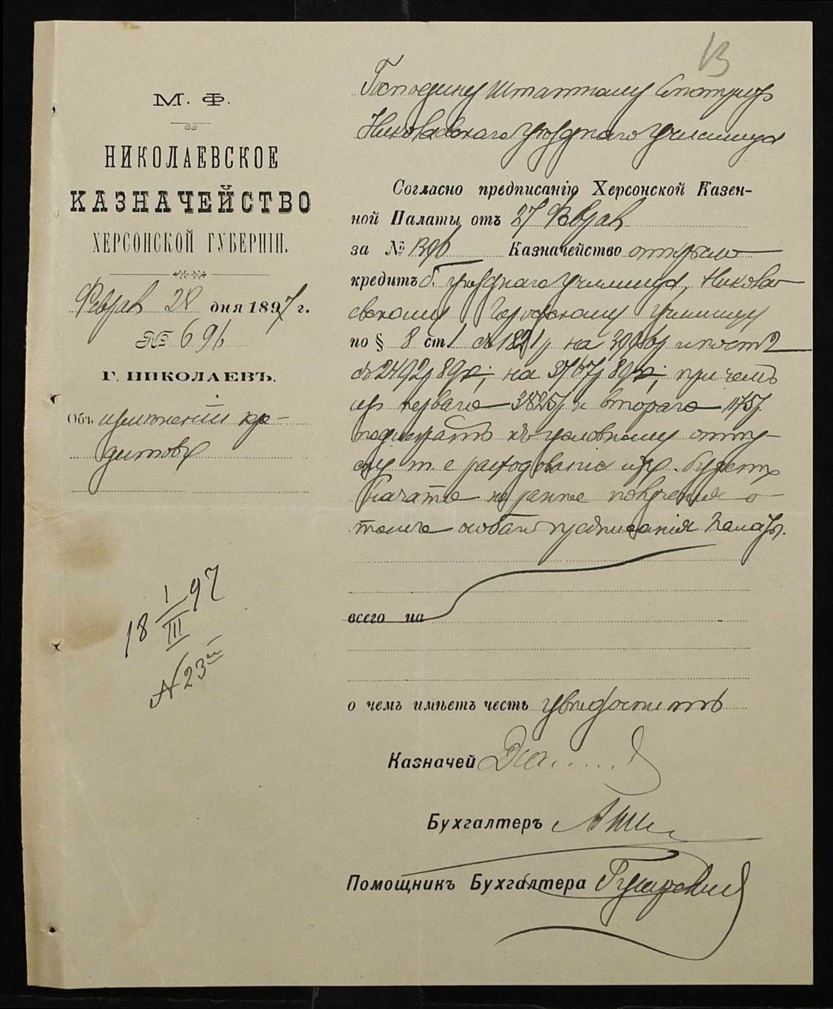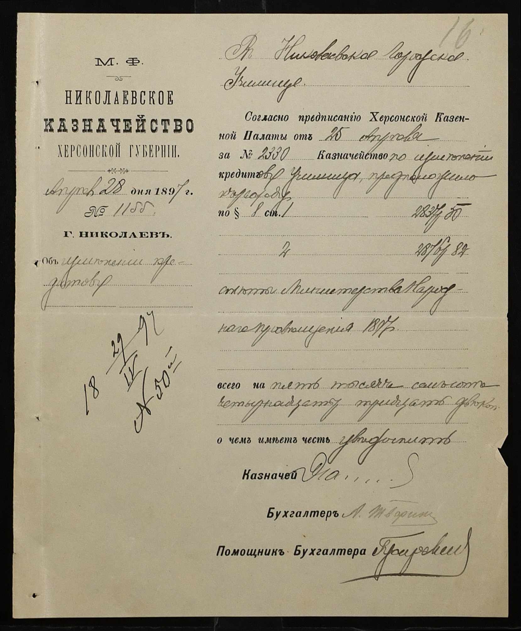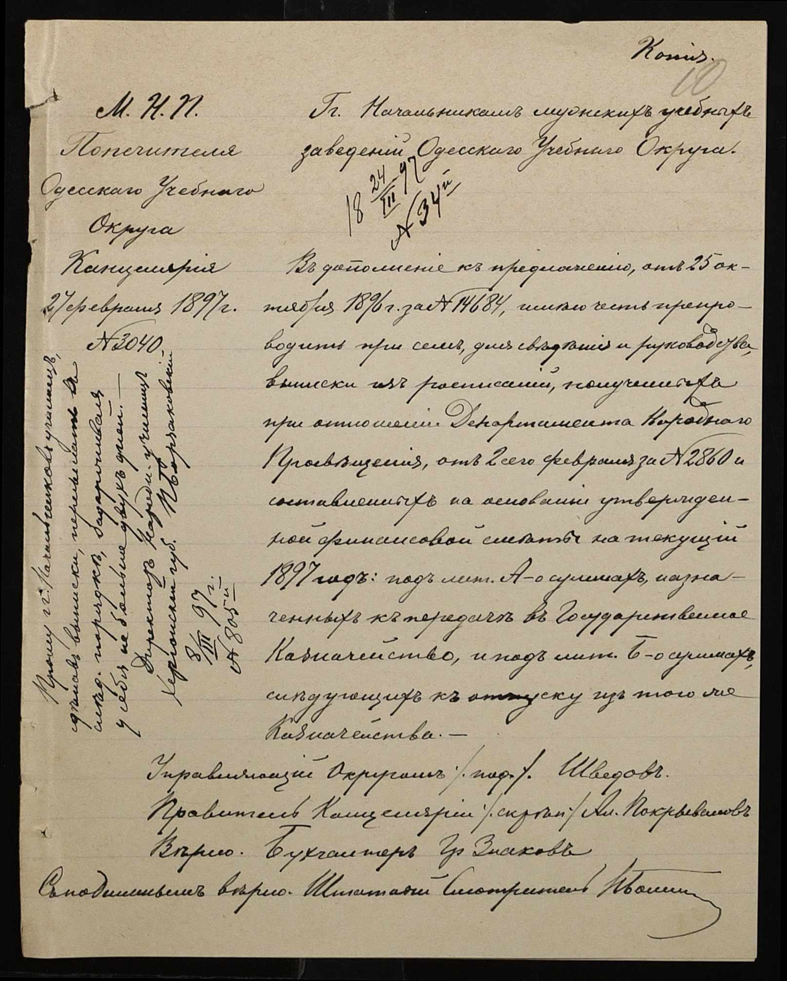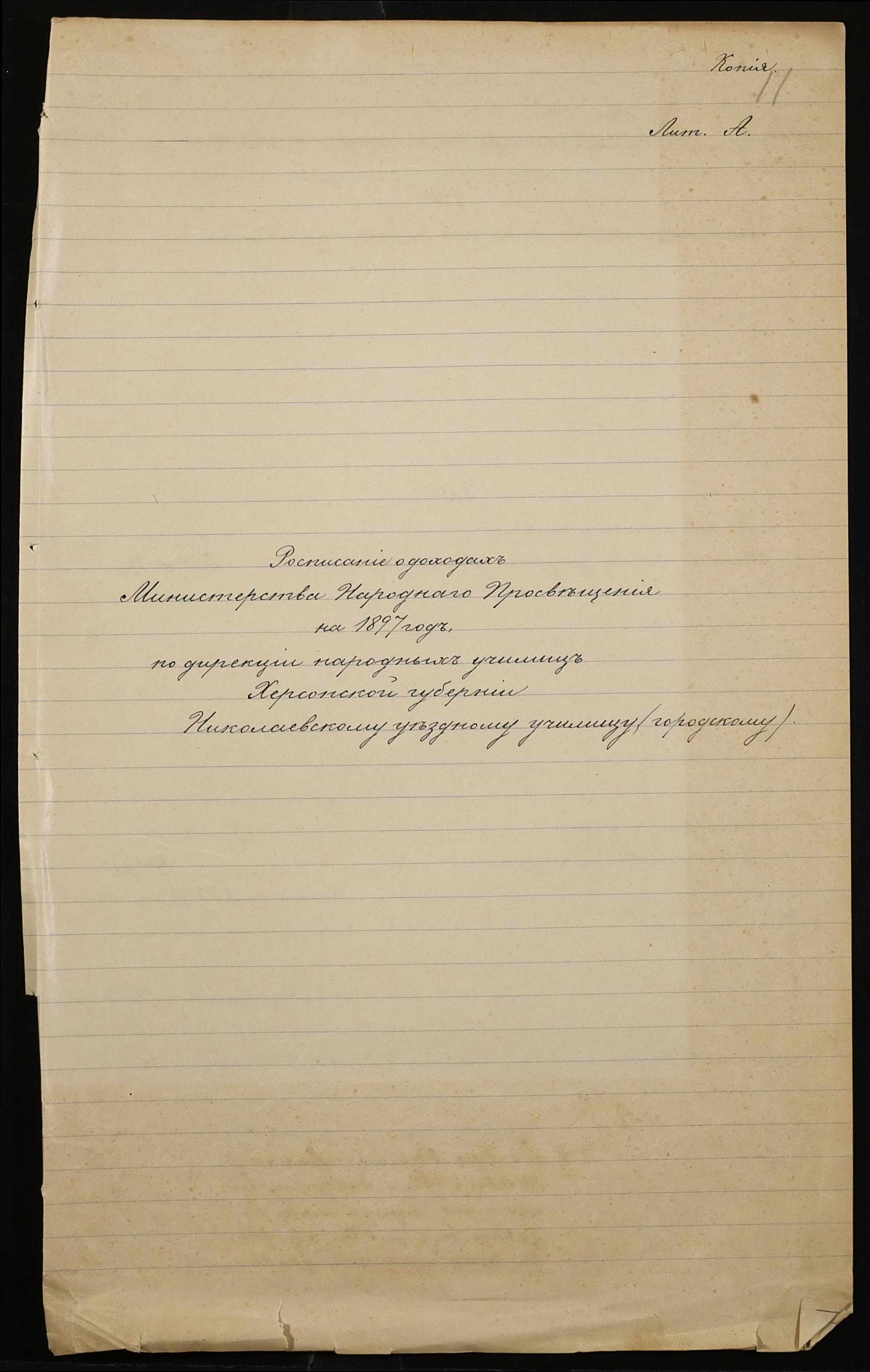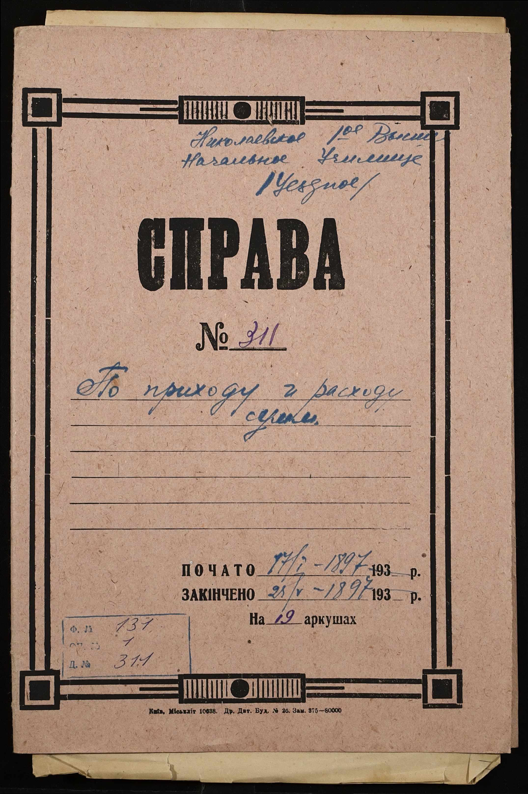 • • • • Справа № 311 “Кошторис прибутків училища за 1897 рік”