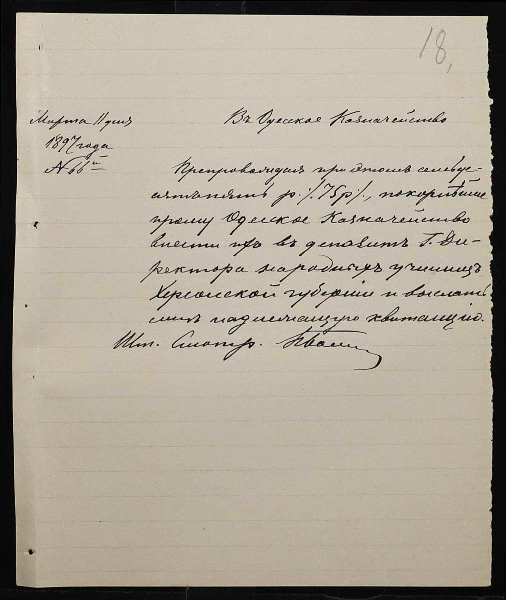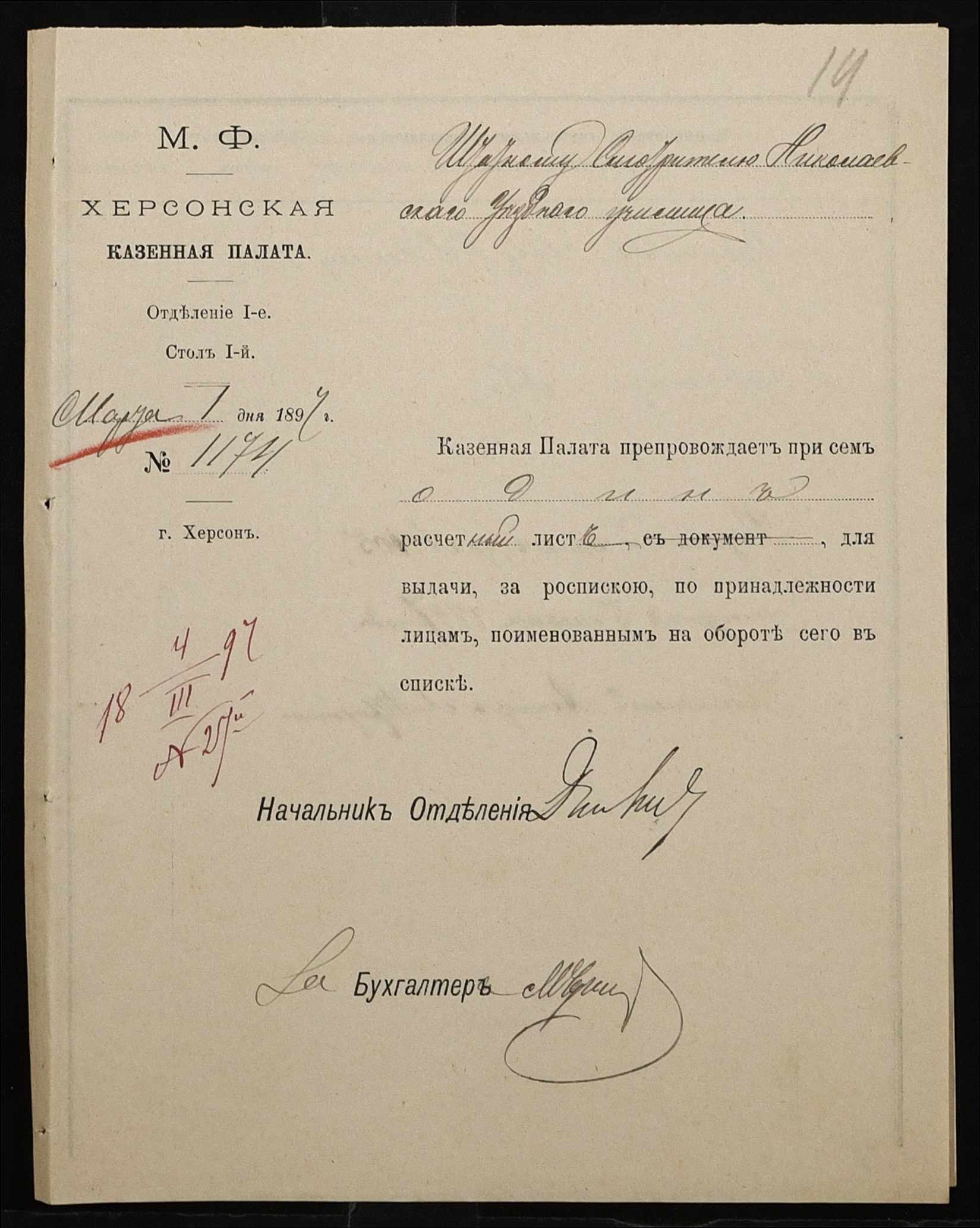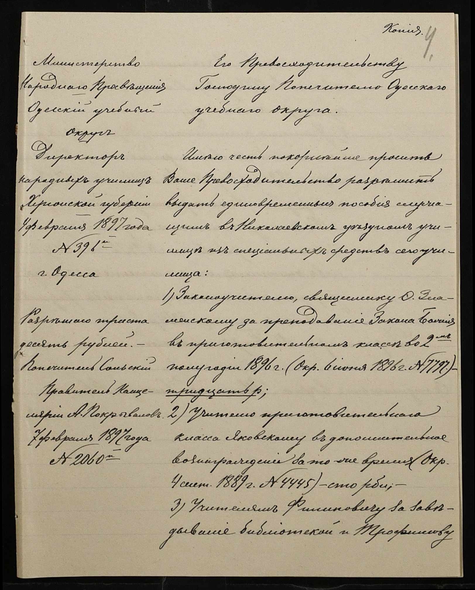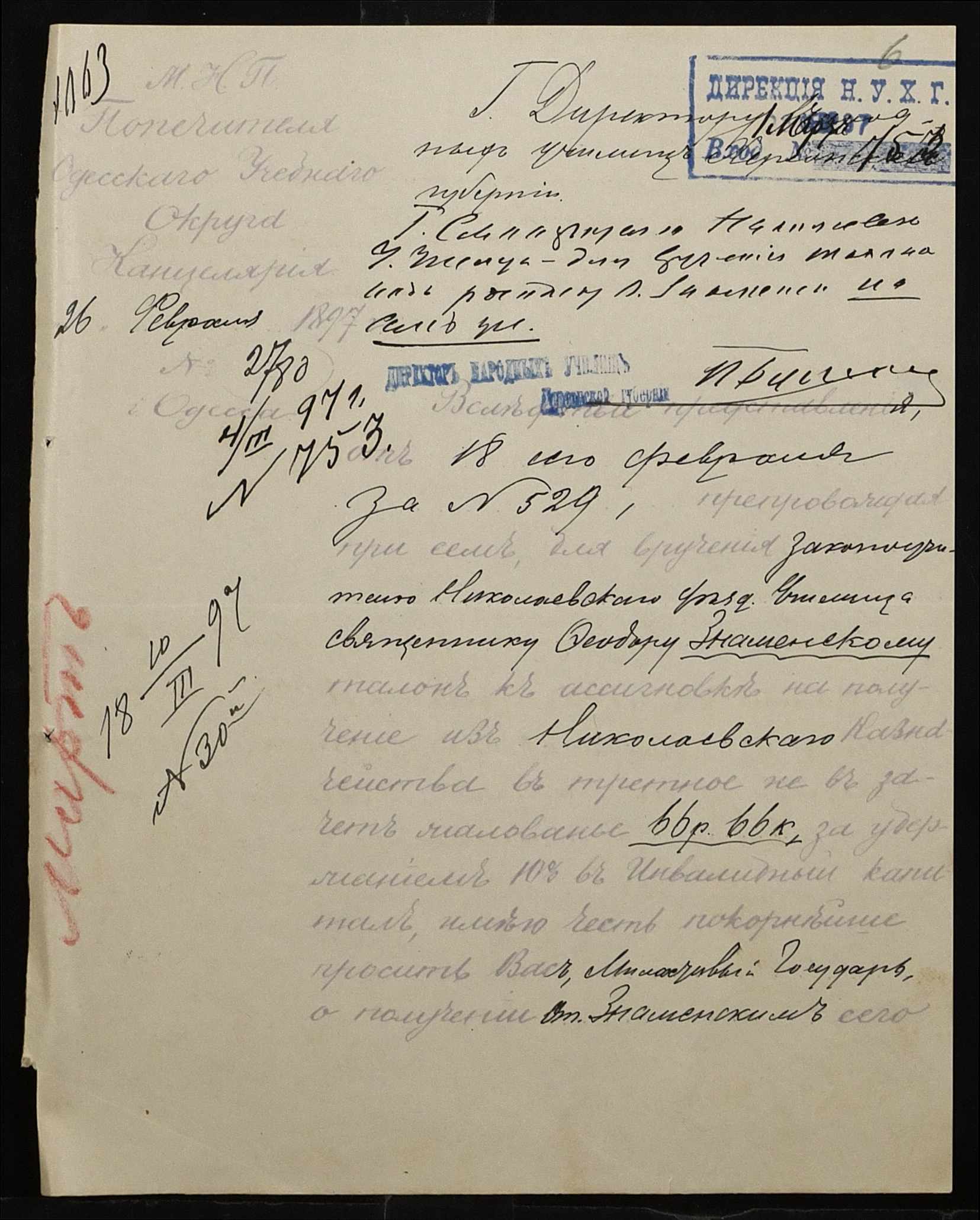 • • • • Справа № 311 “Кошторис прибутків училища за 1897 рік”