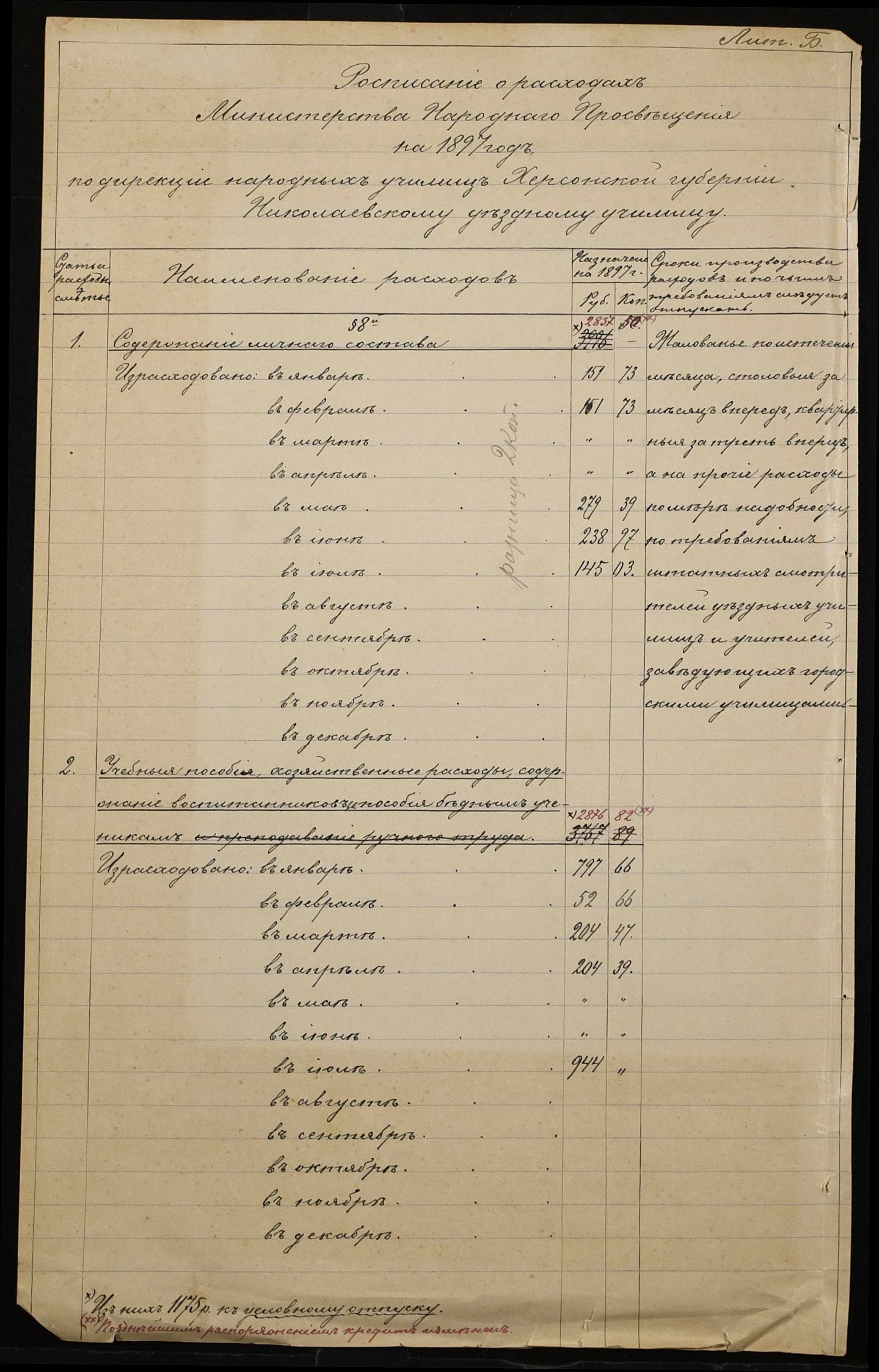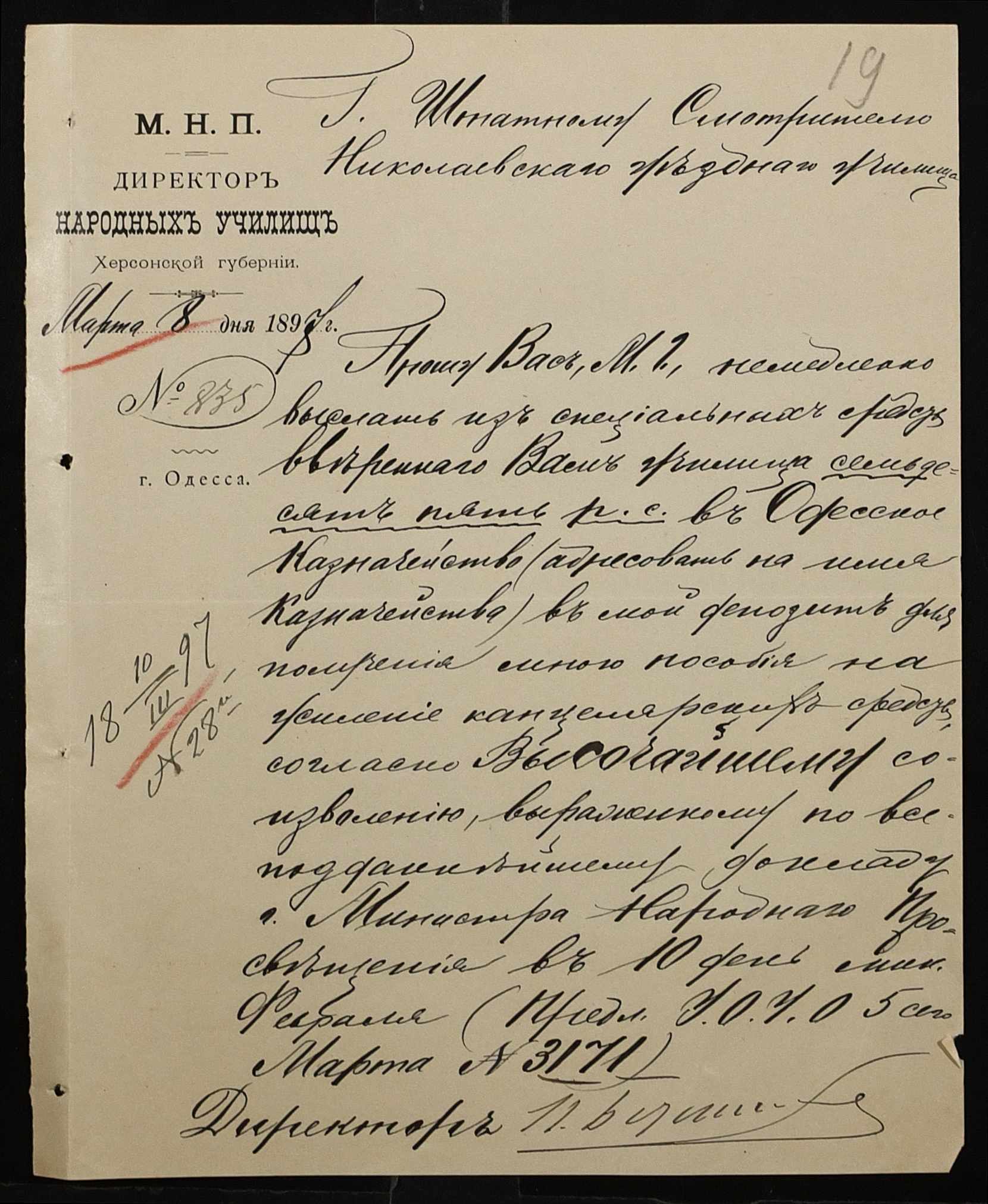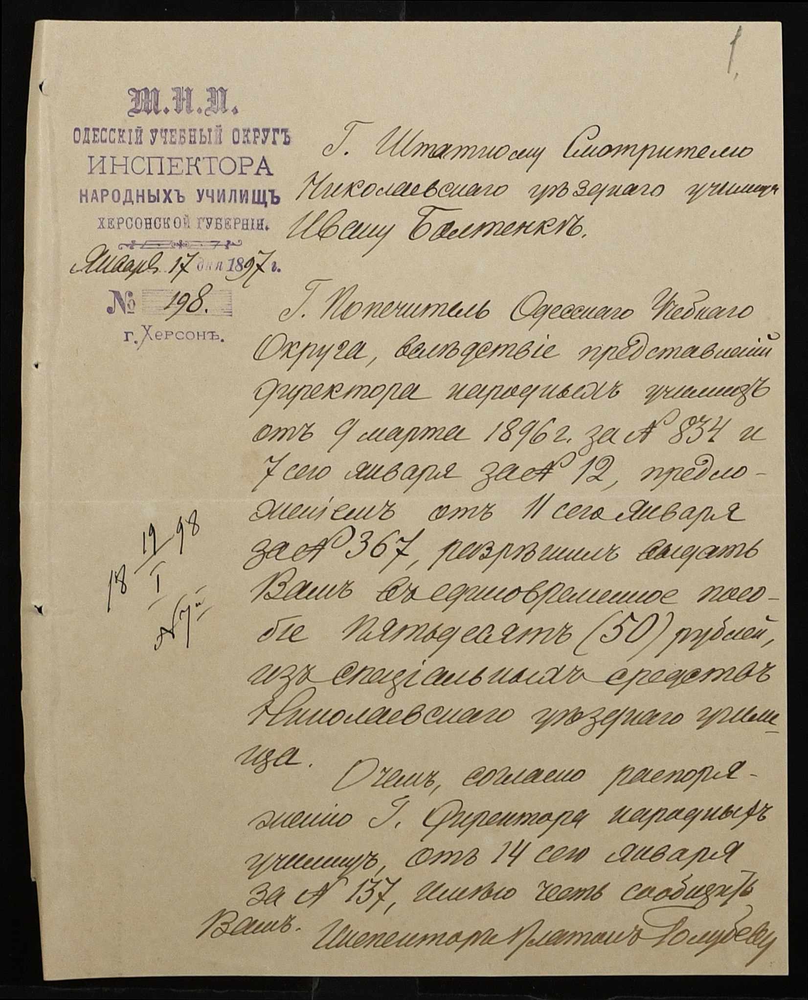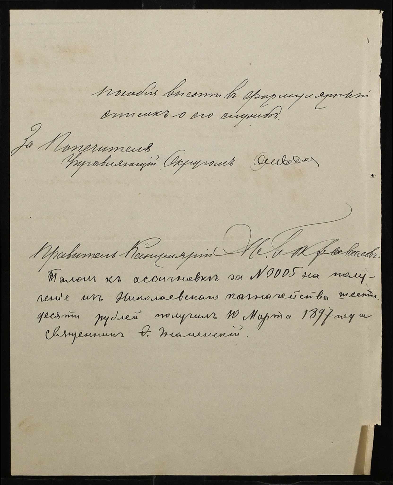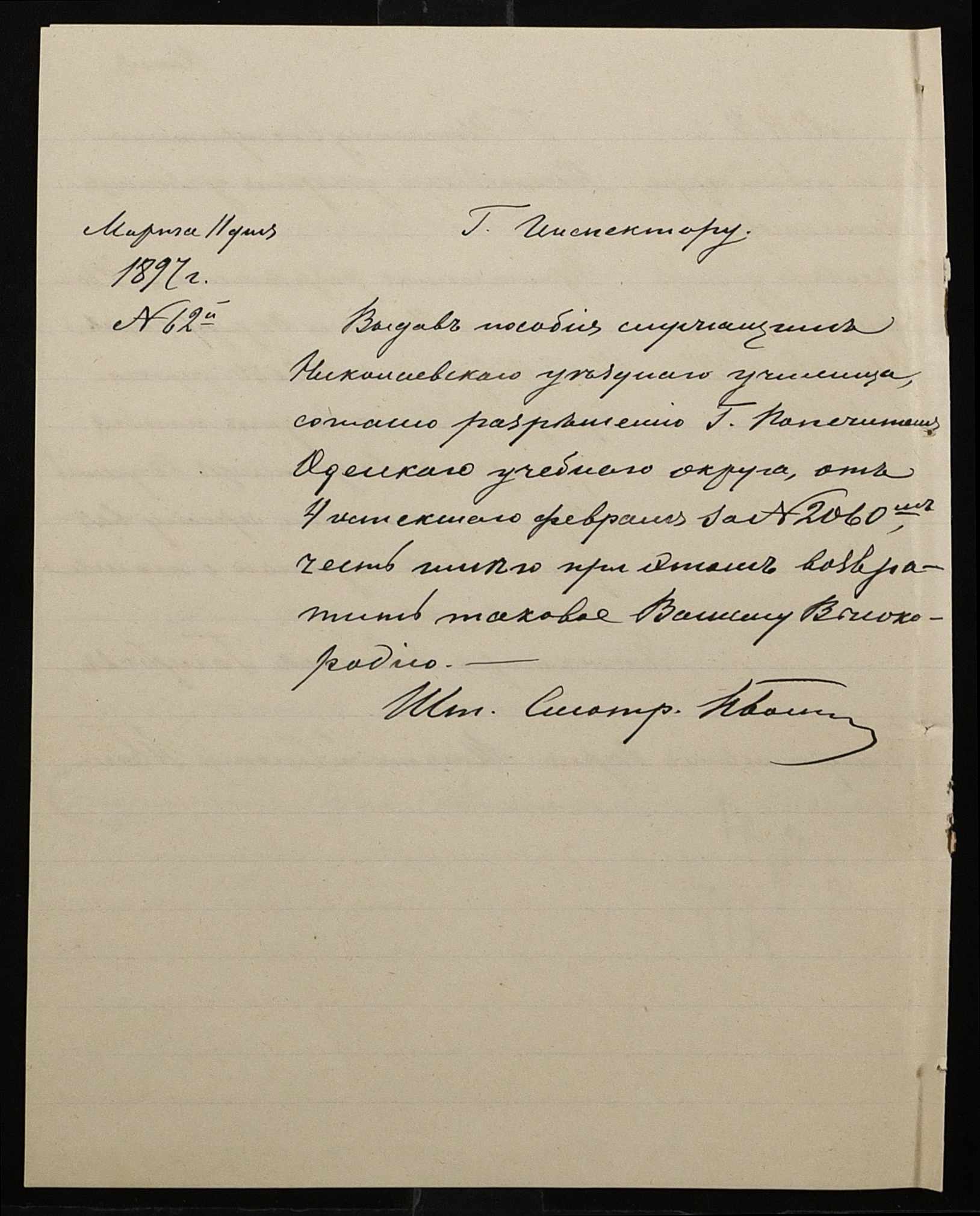 • • • • Справа № 311 “Кошторис прибутків училища за 1897 рік”