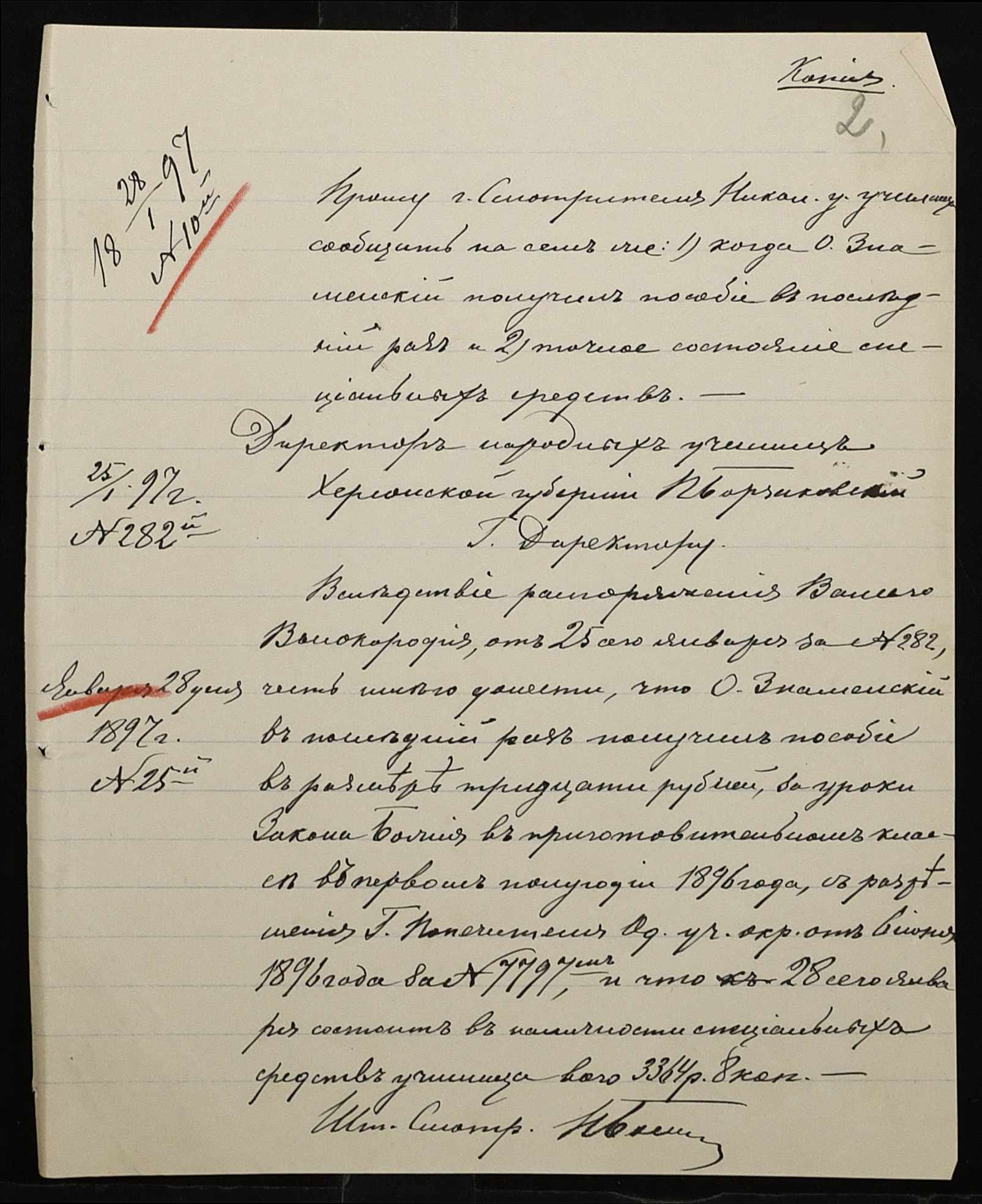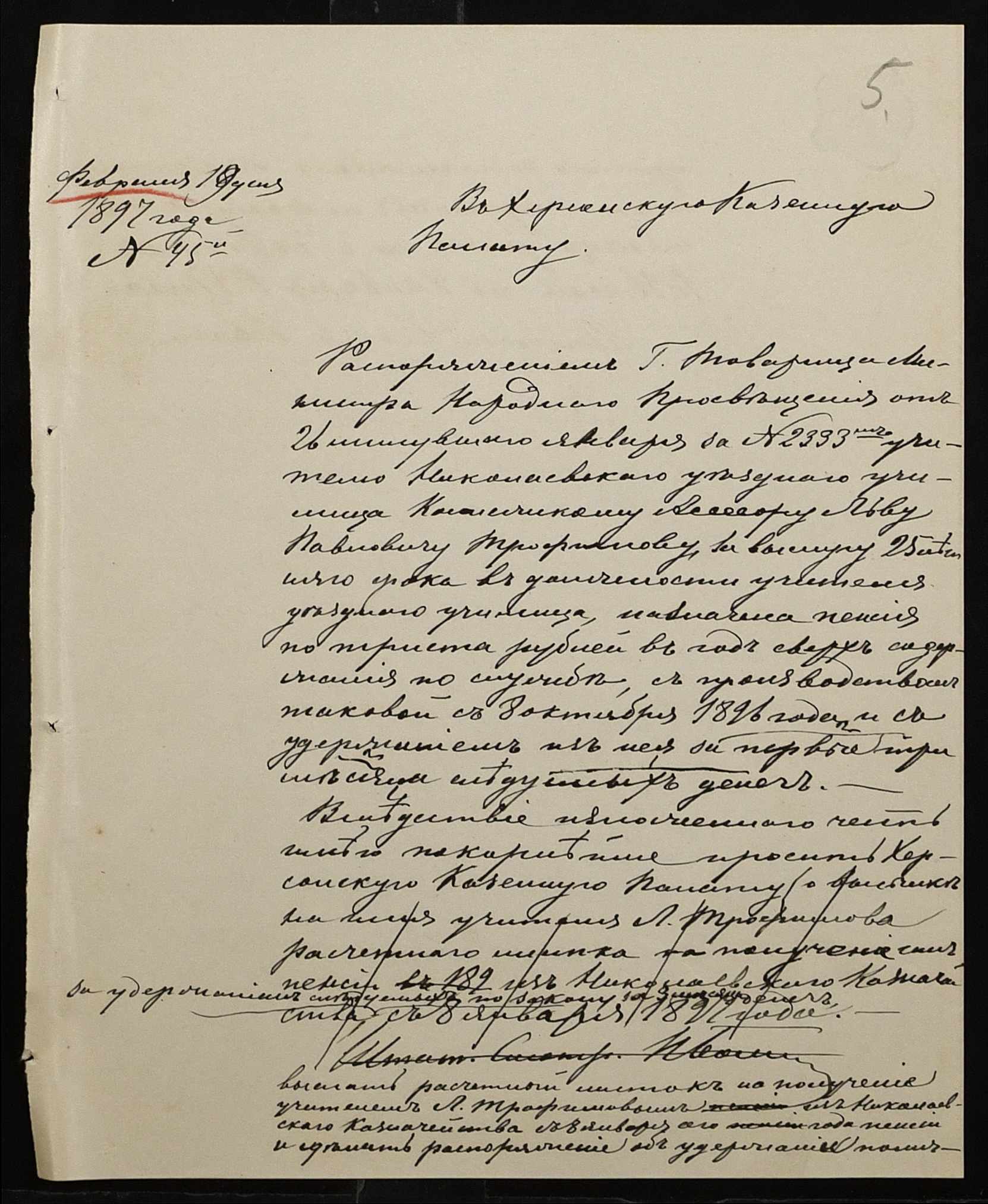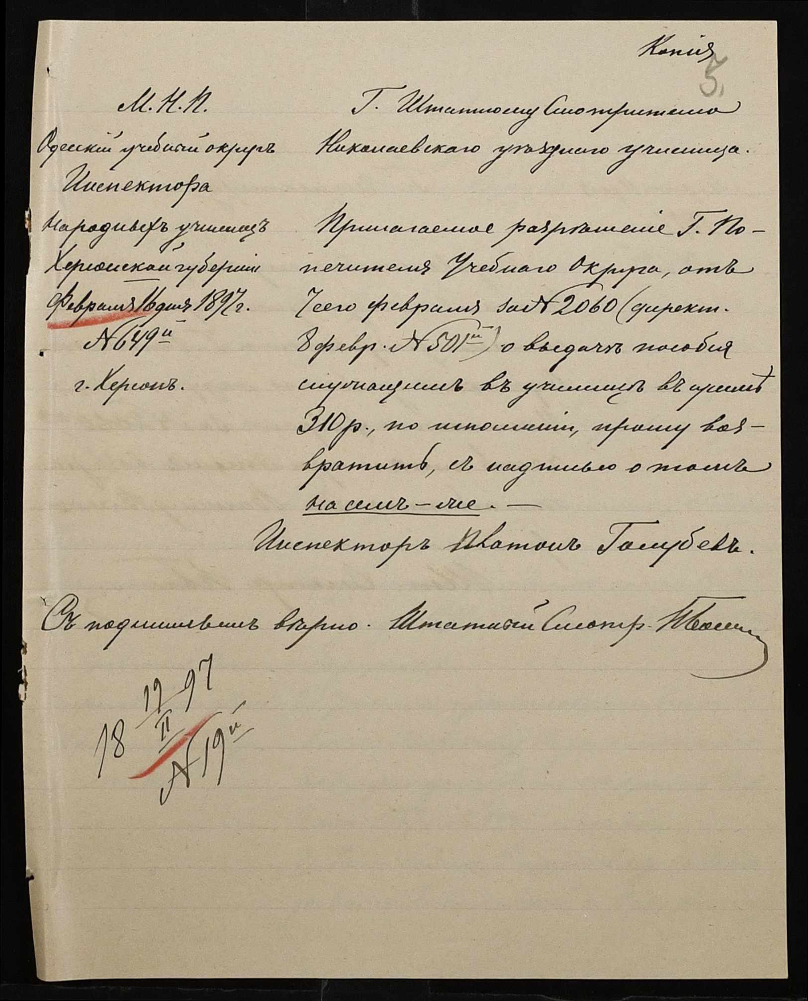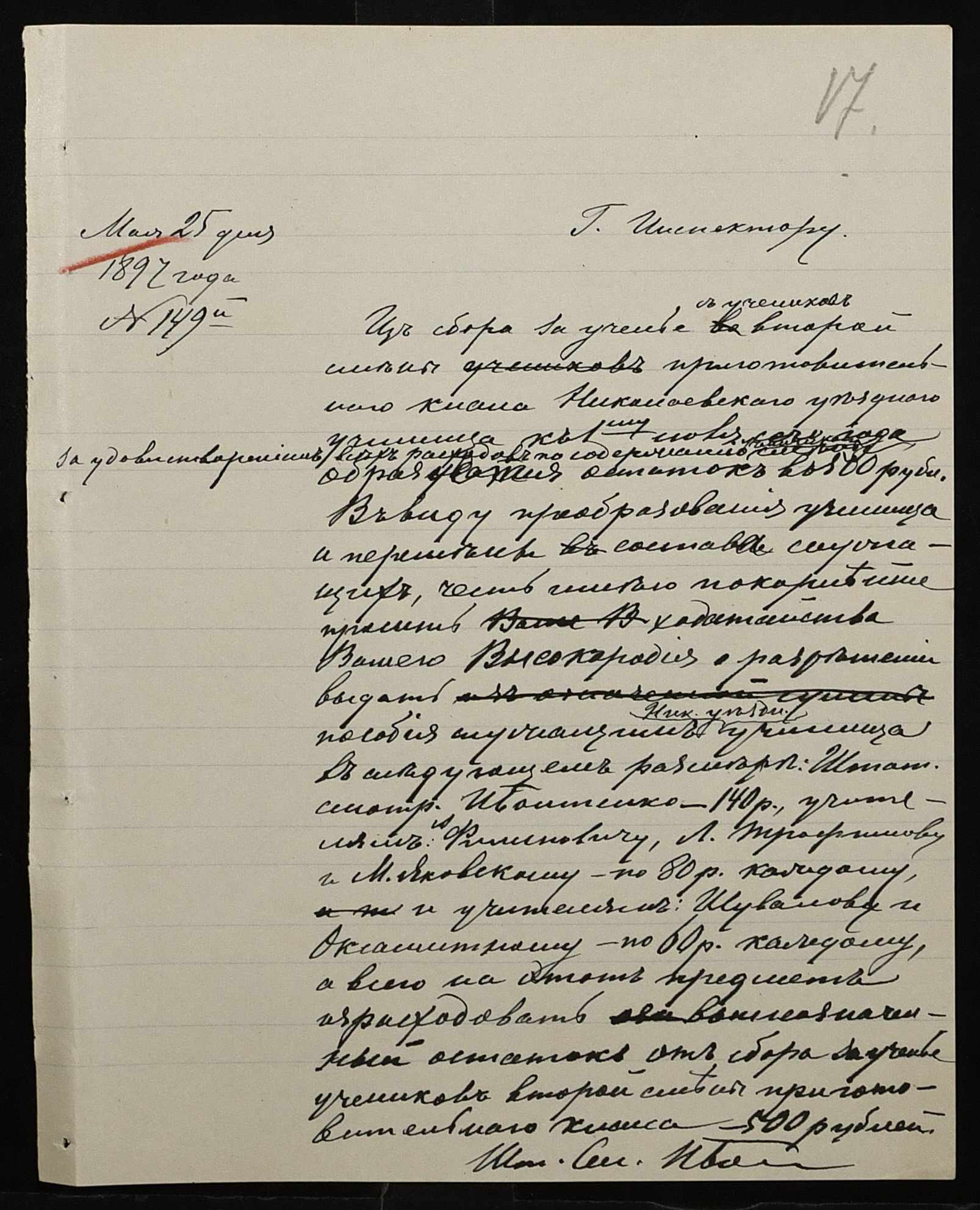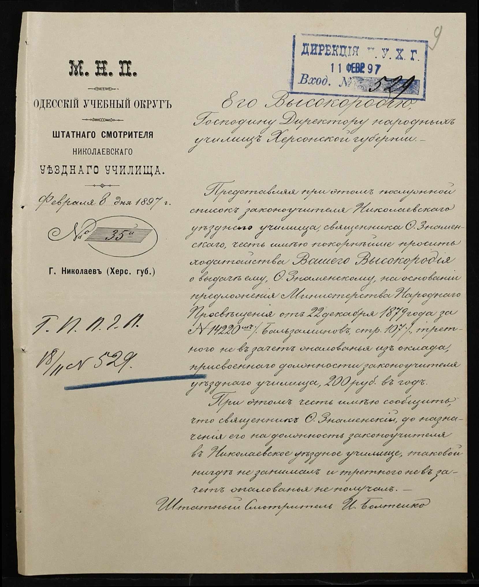 • • • • Справа № 311 “Кошторис прибутків училища за 1897 рік”