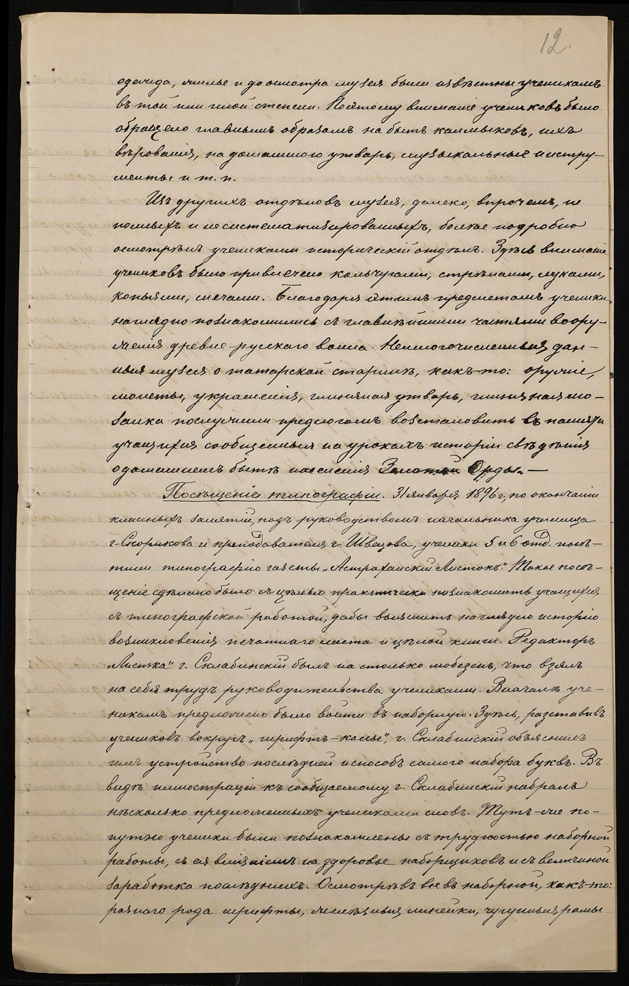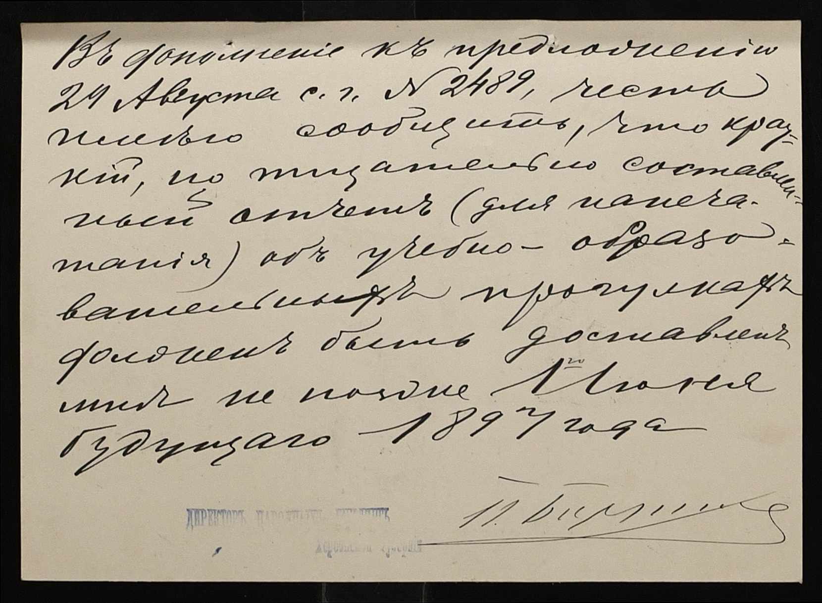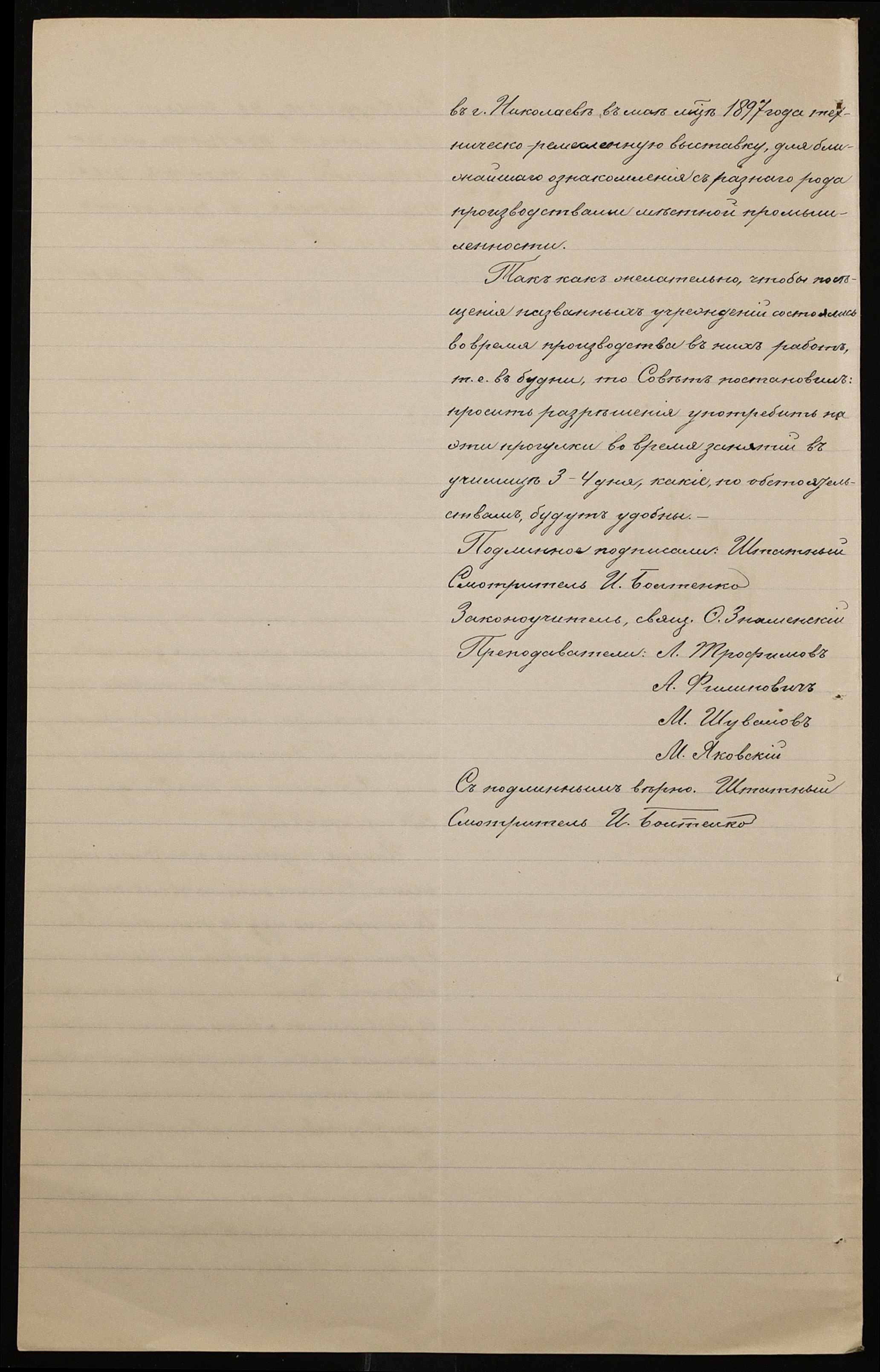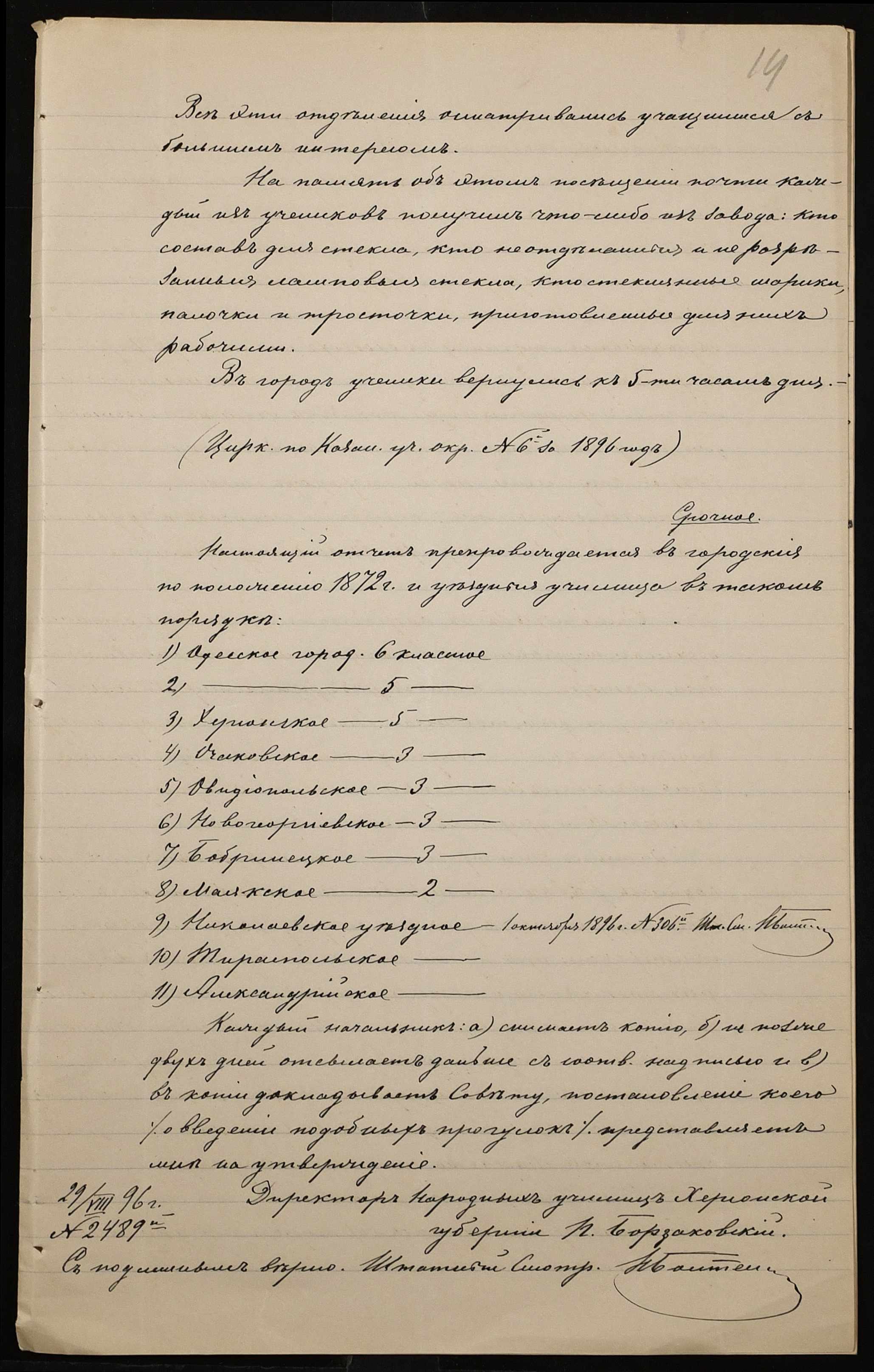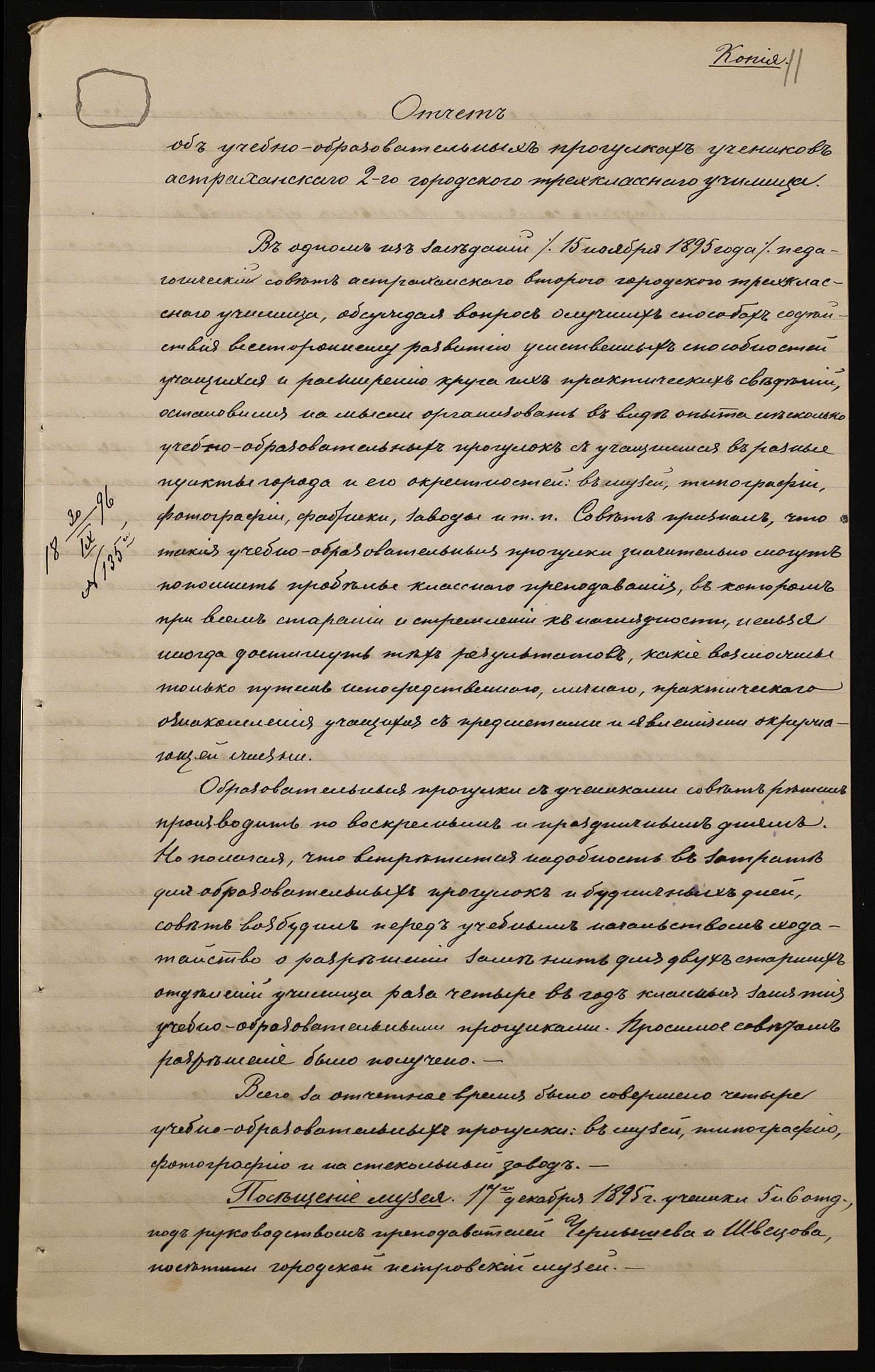 • • • • Справа № 316 “Справа про проведення в міському училищі учнівських екскурсій”