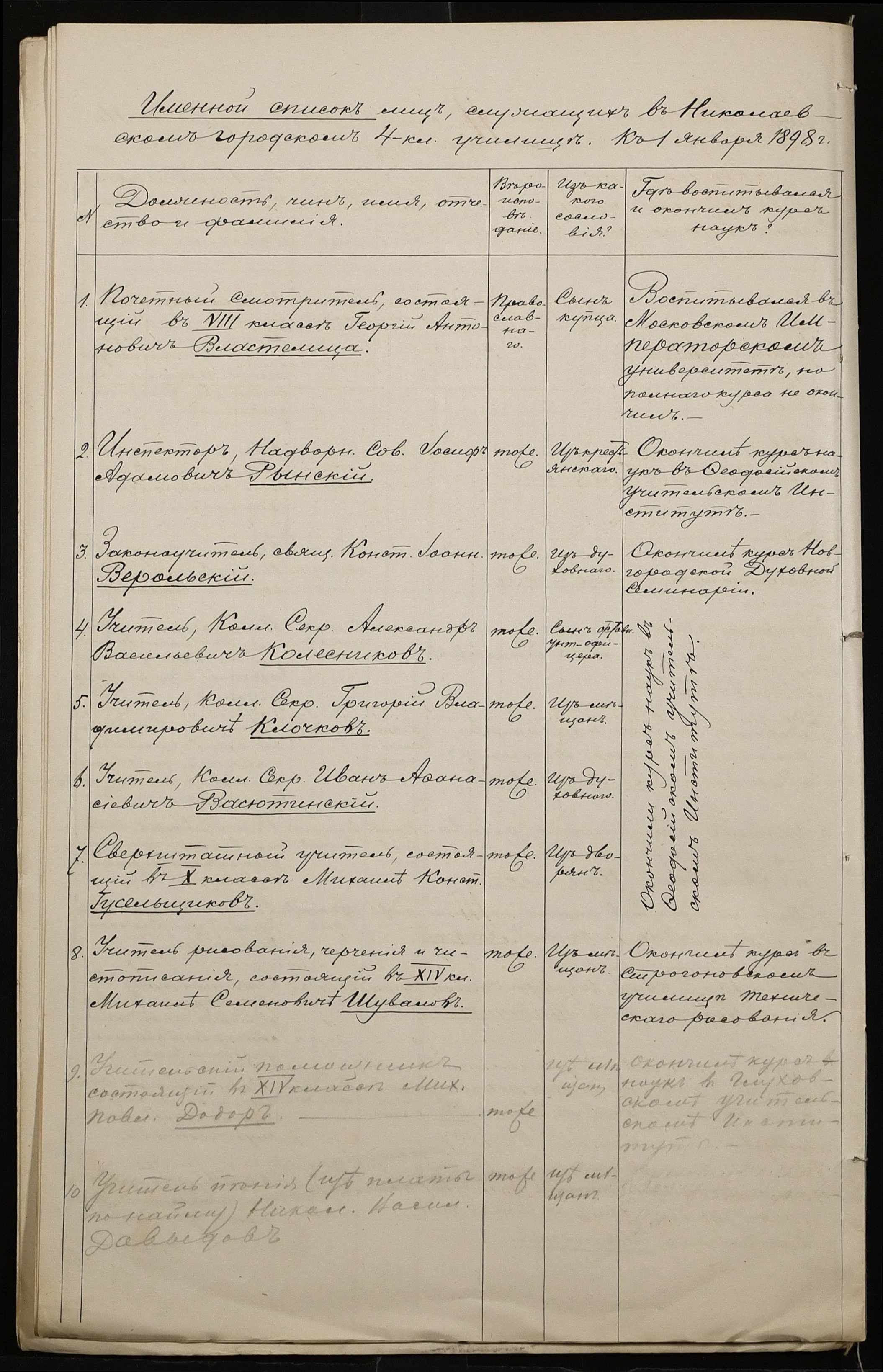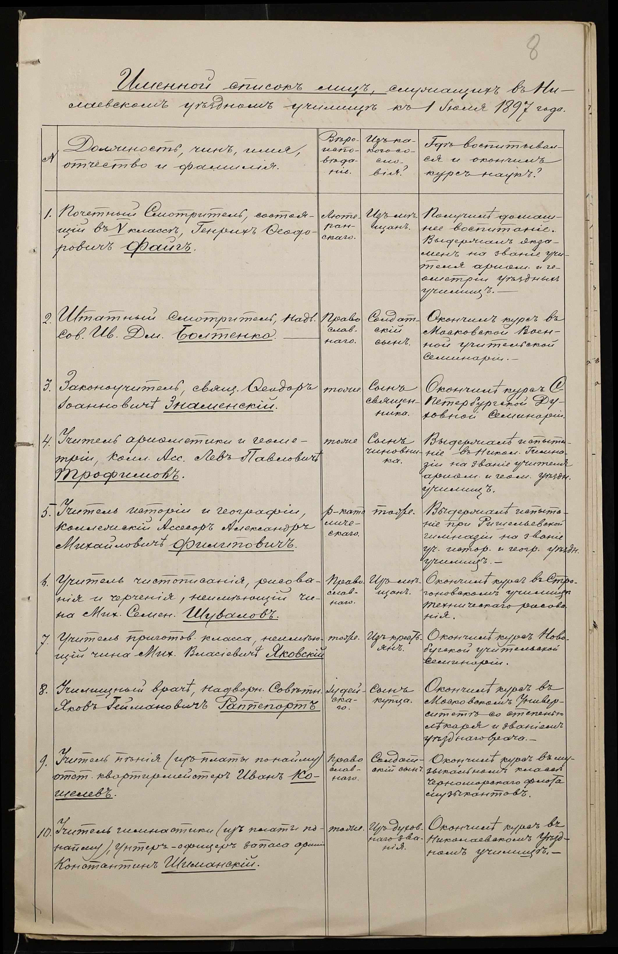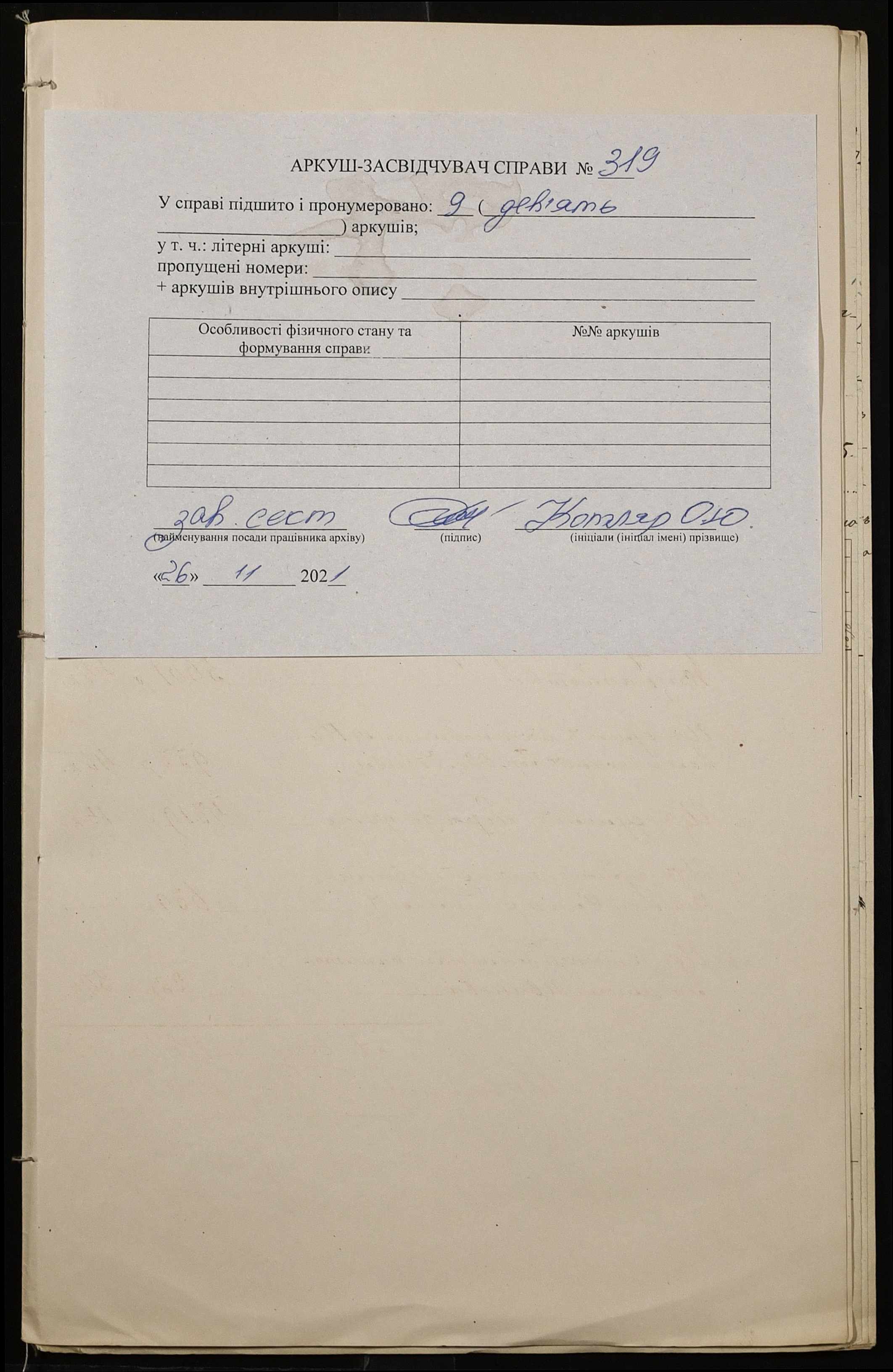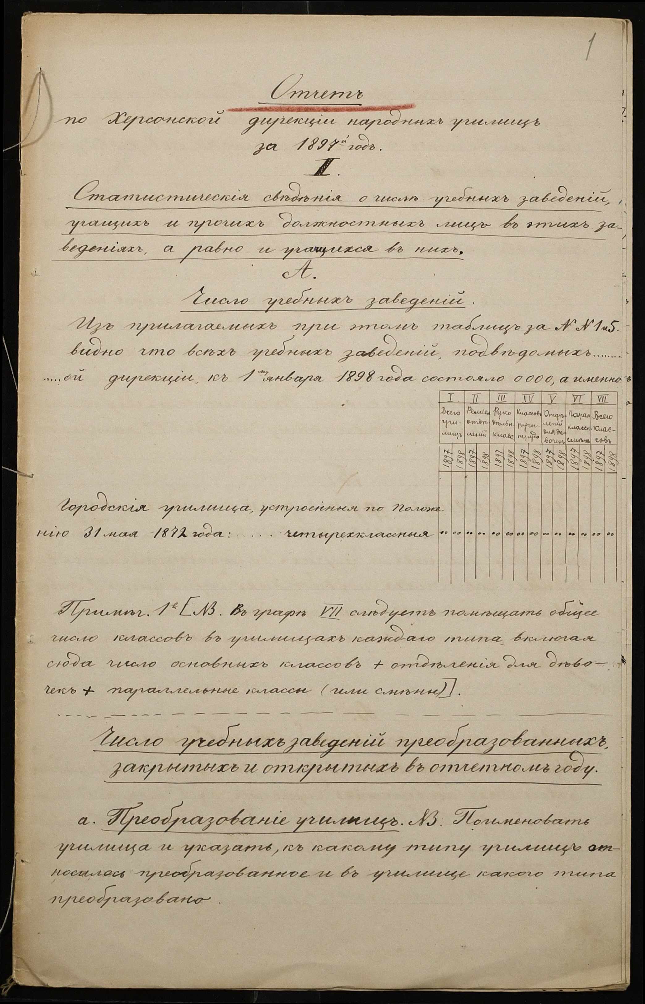 • • • • Справа № 319 “Статистичний звіт Херсонської дирекції народних училищ за 1897 рік”
