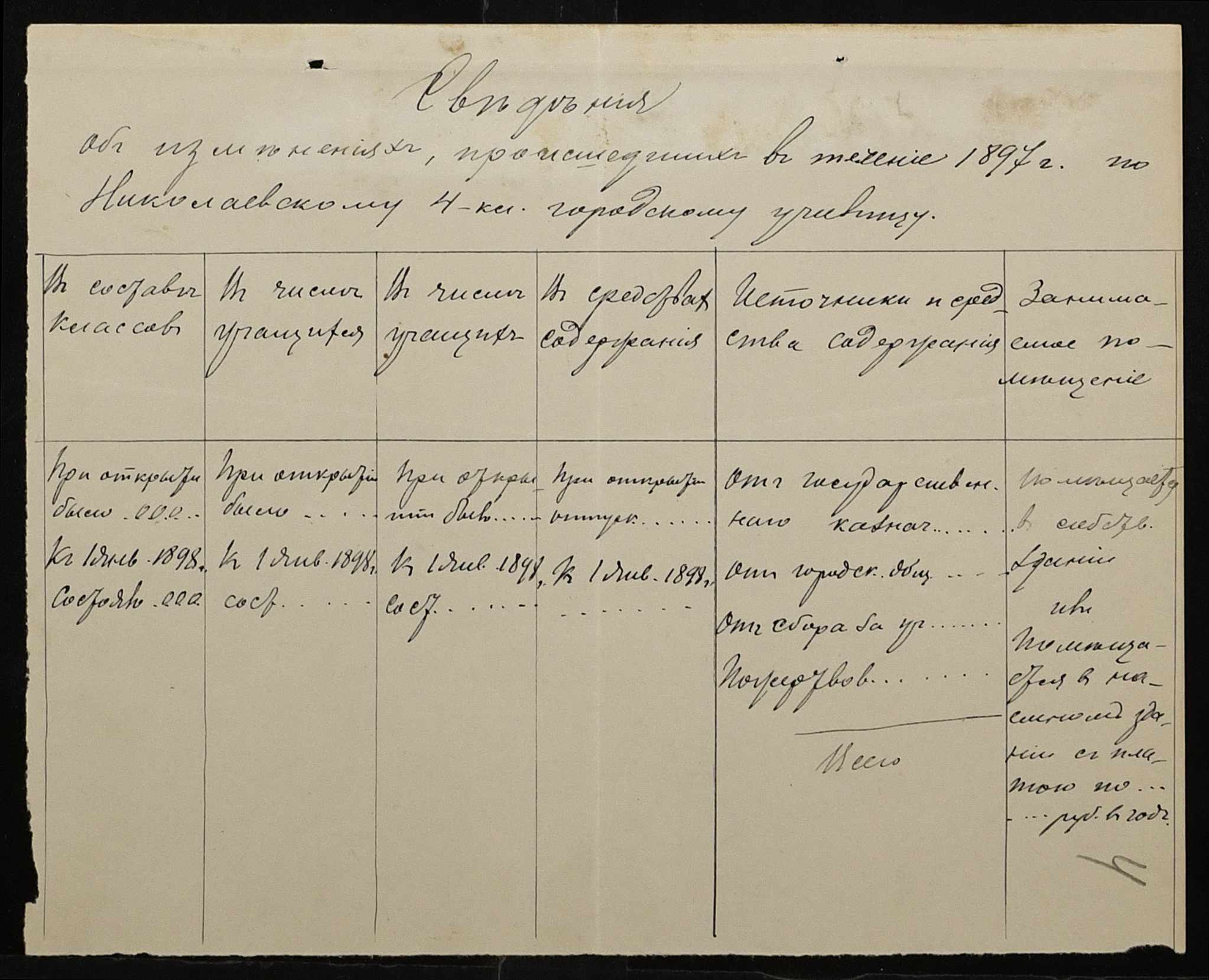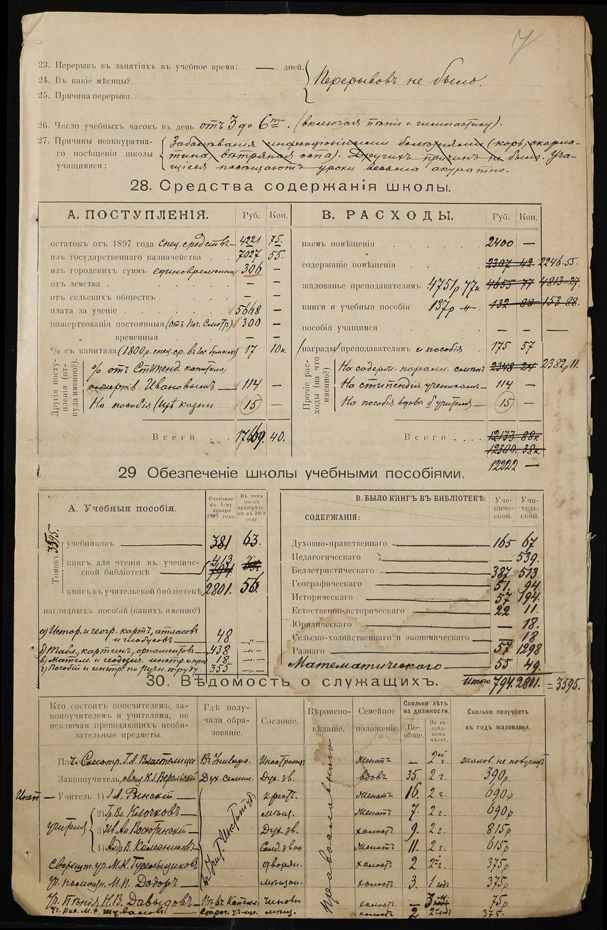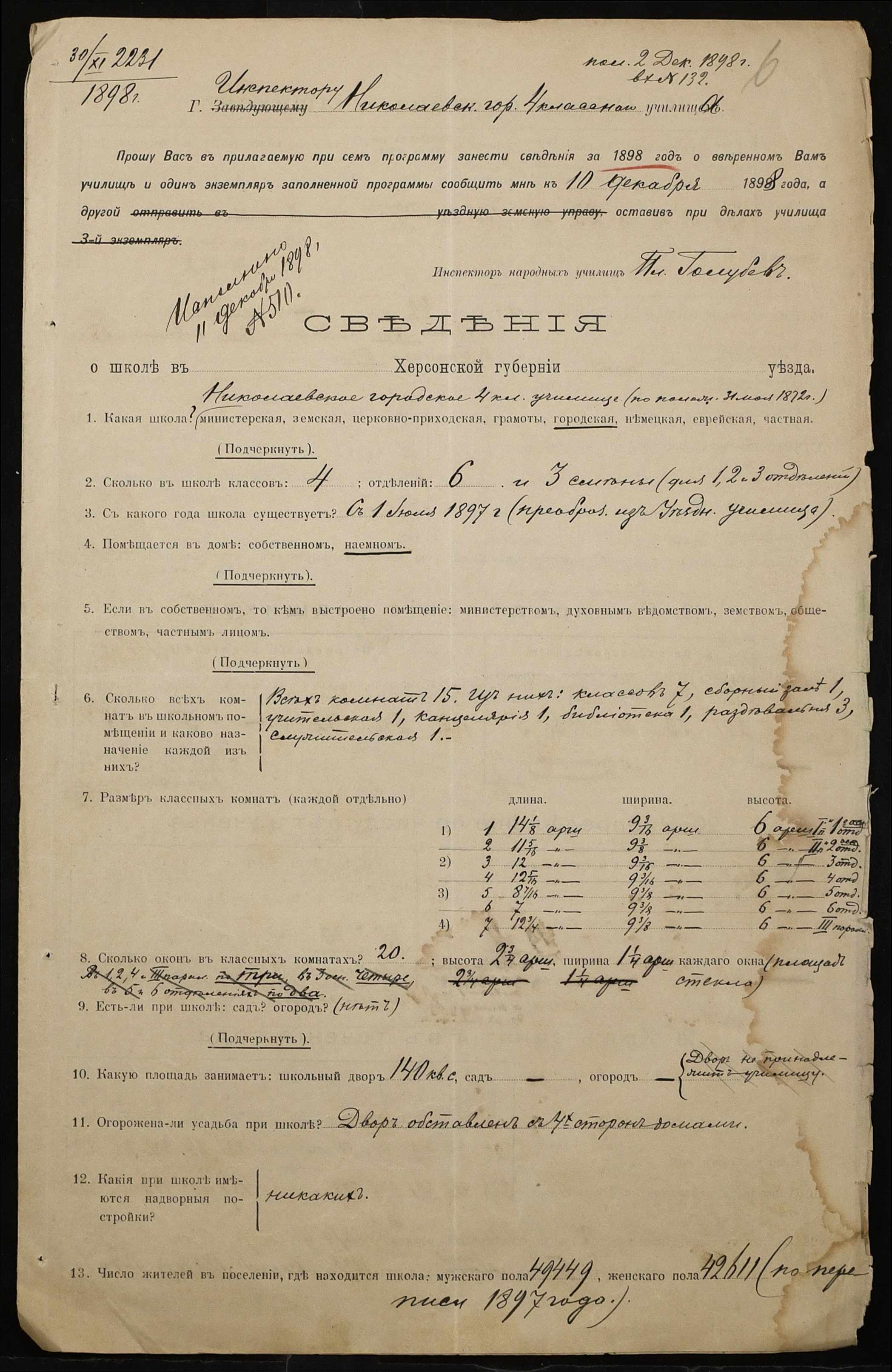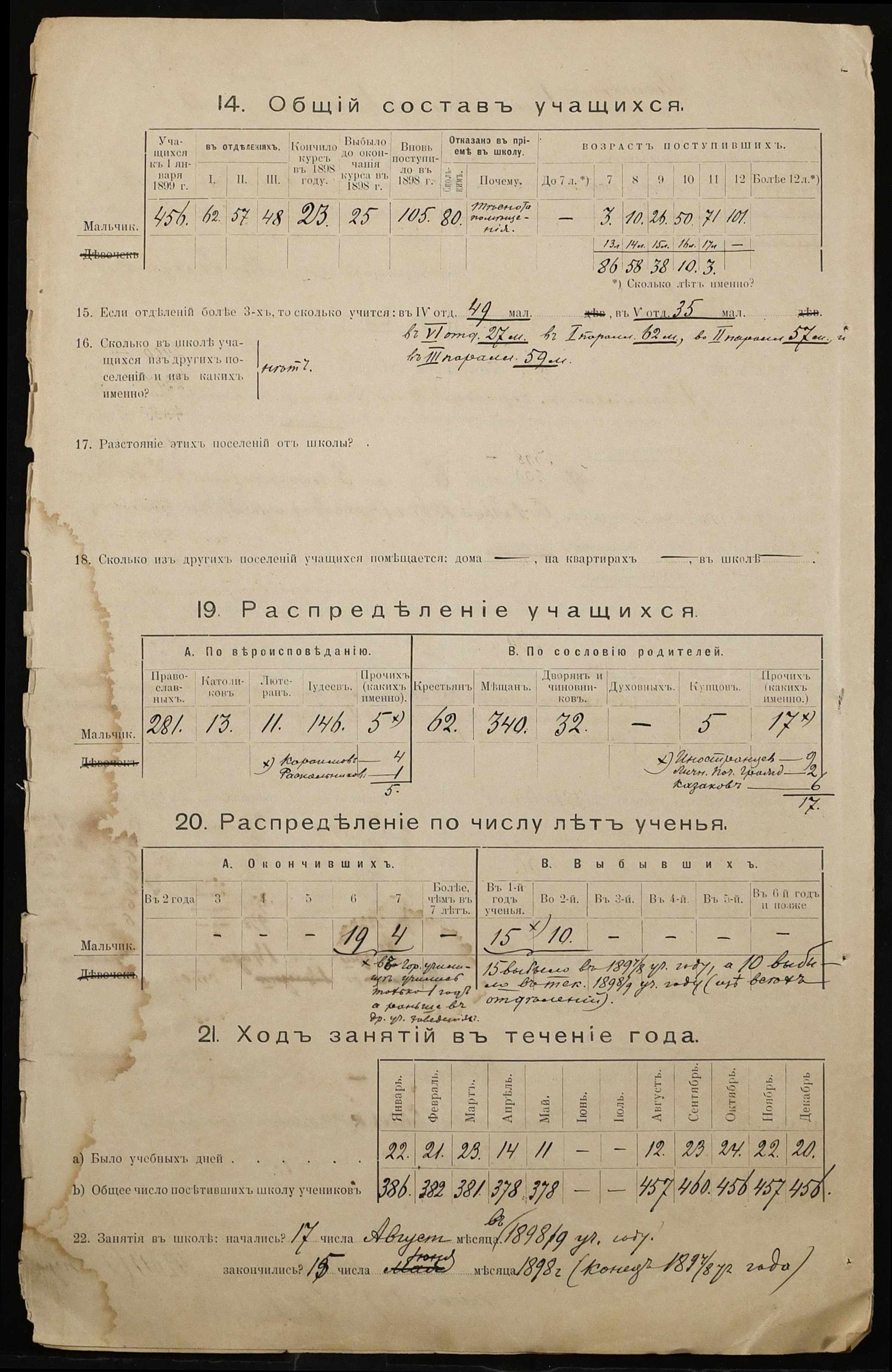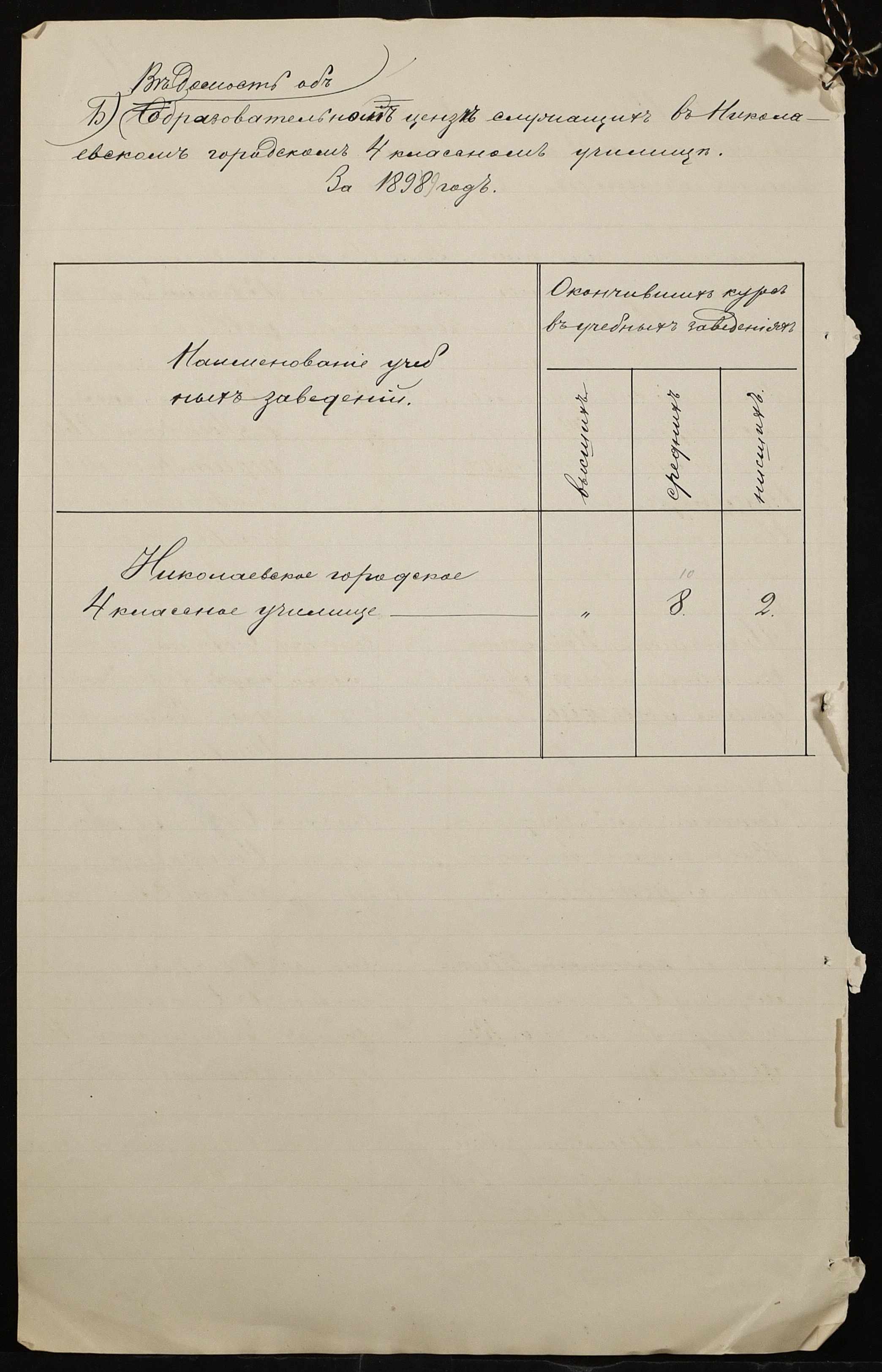 • • • • Справа № 325 “Статистичний звіт про стан училища за 1898 рік”