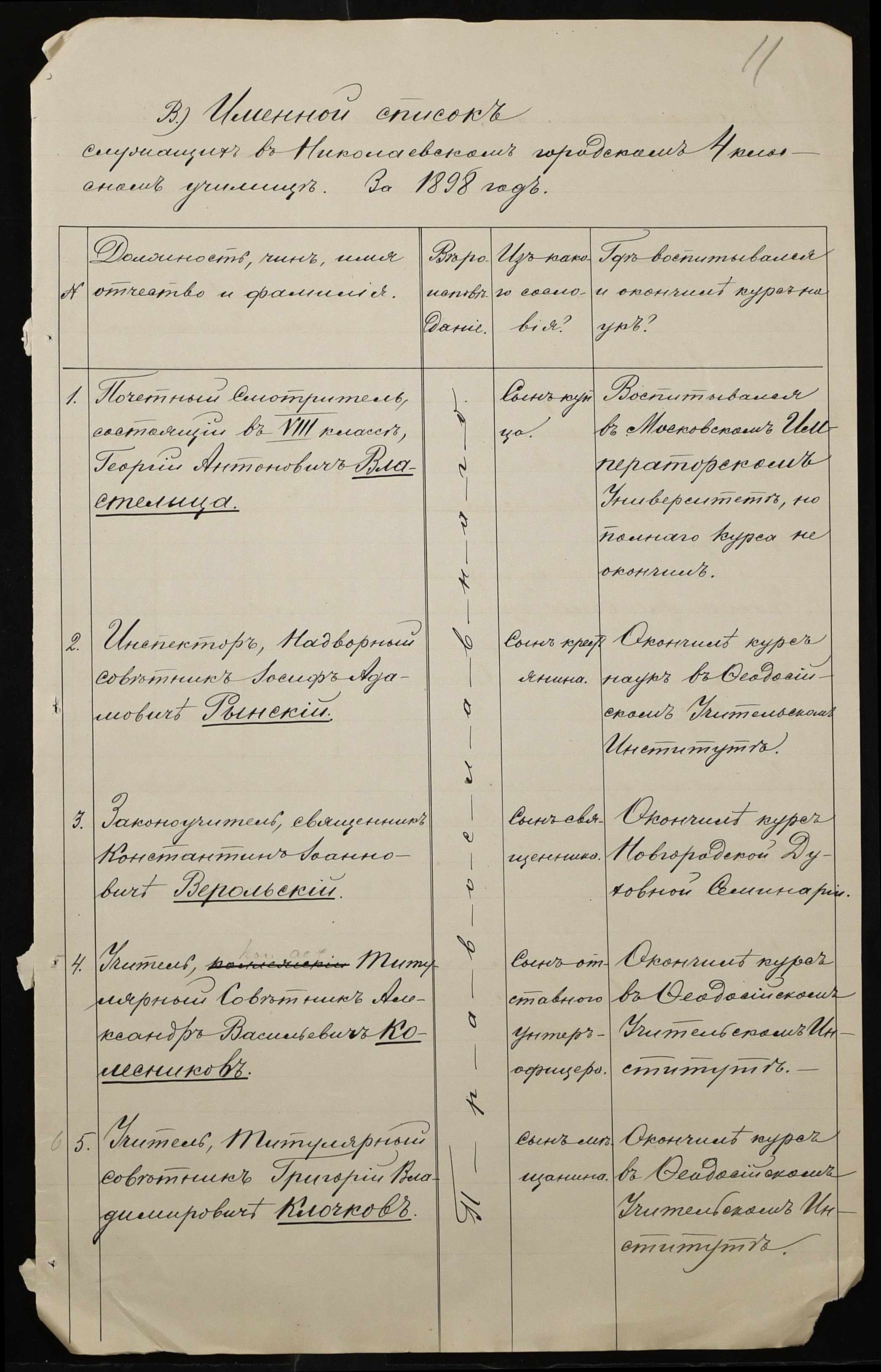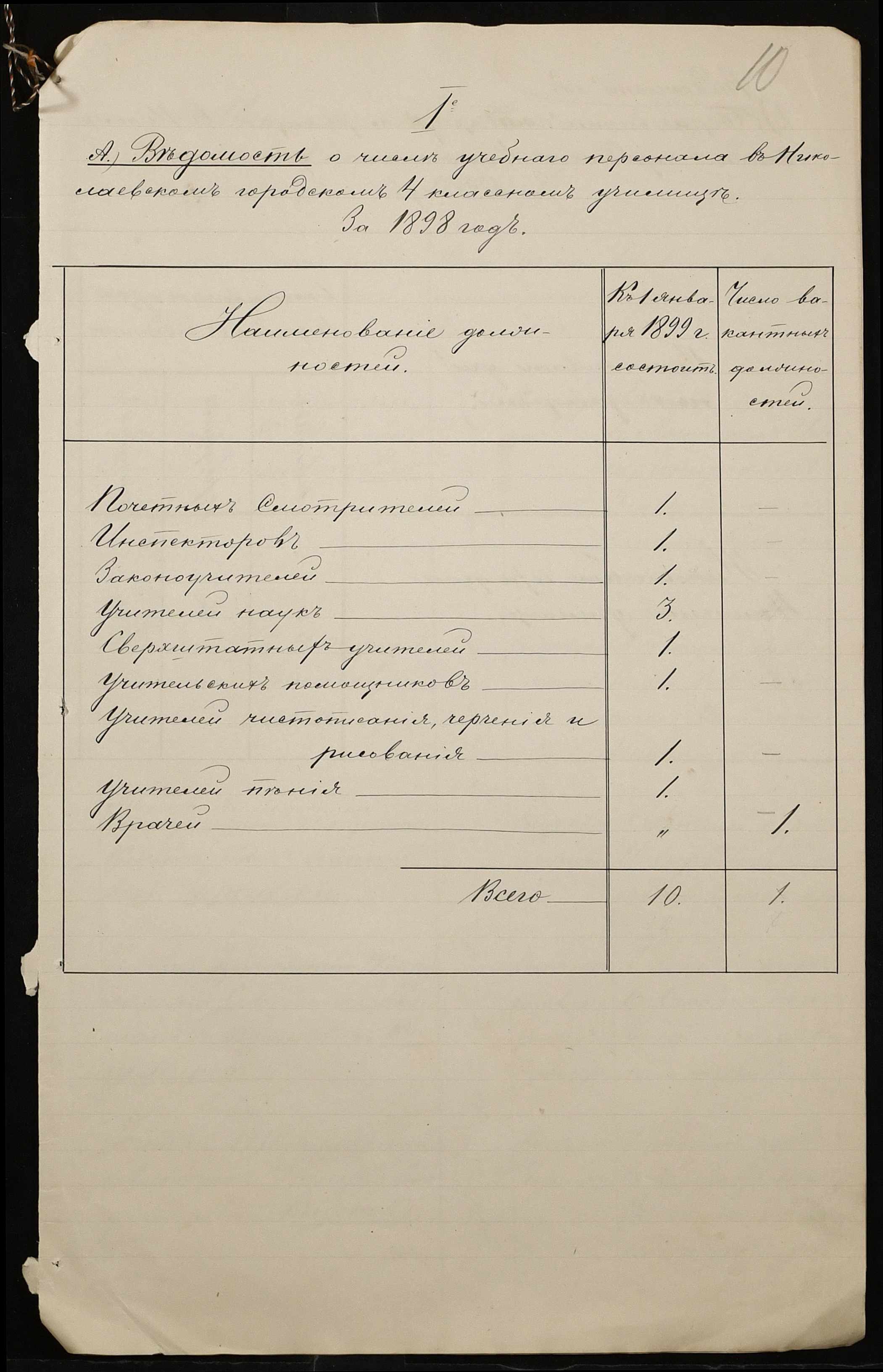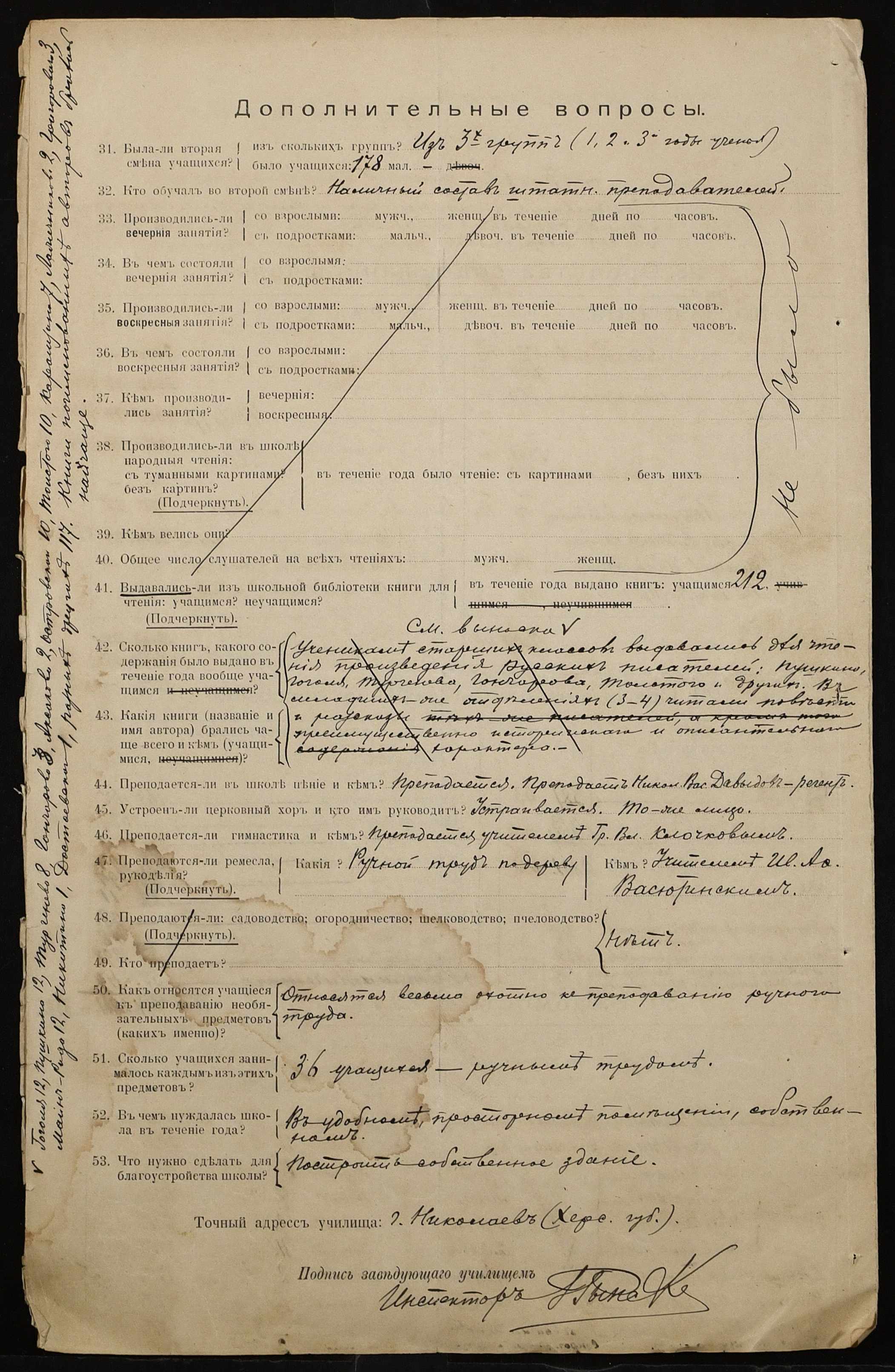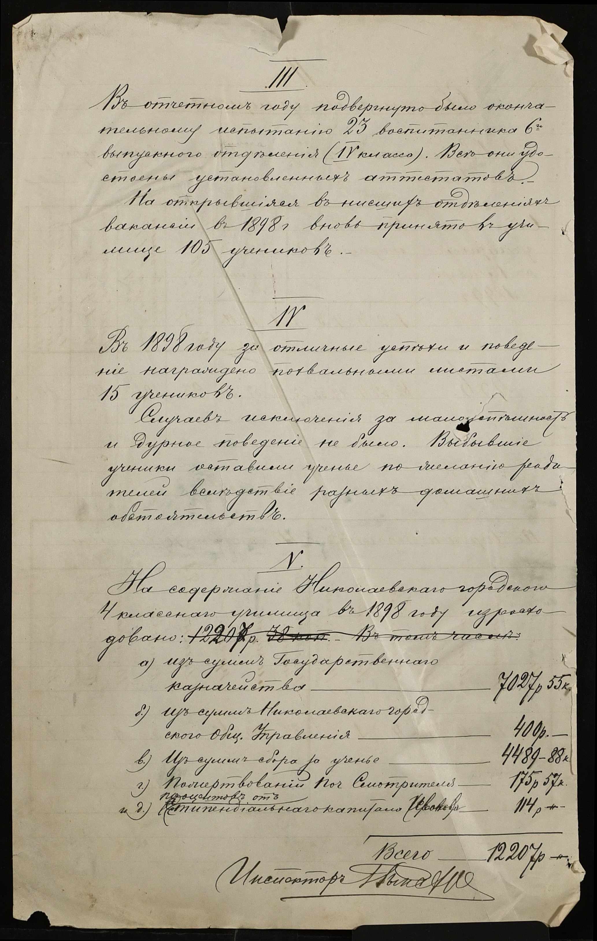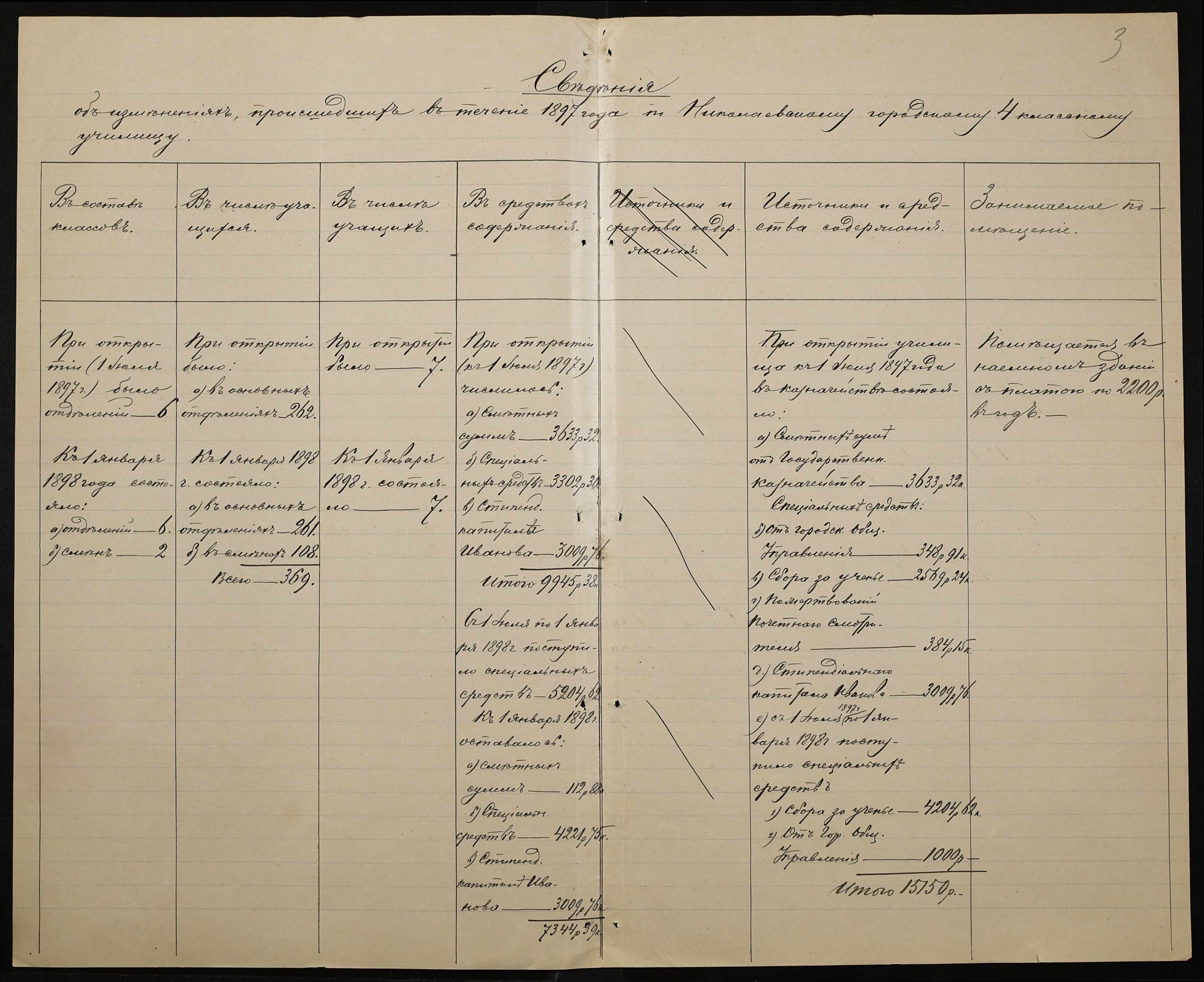 • • • • Справа № 325 “Статистичний звіт про стан училища за 1898 рік”