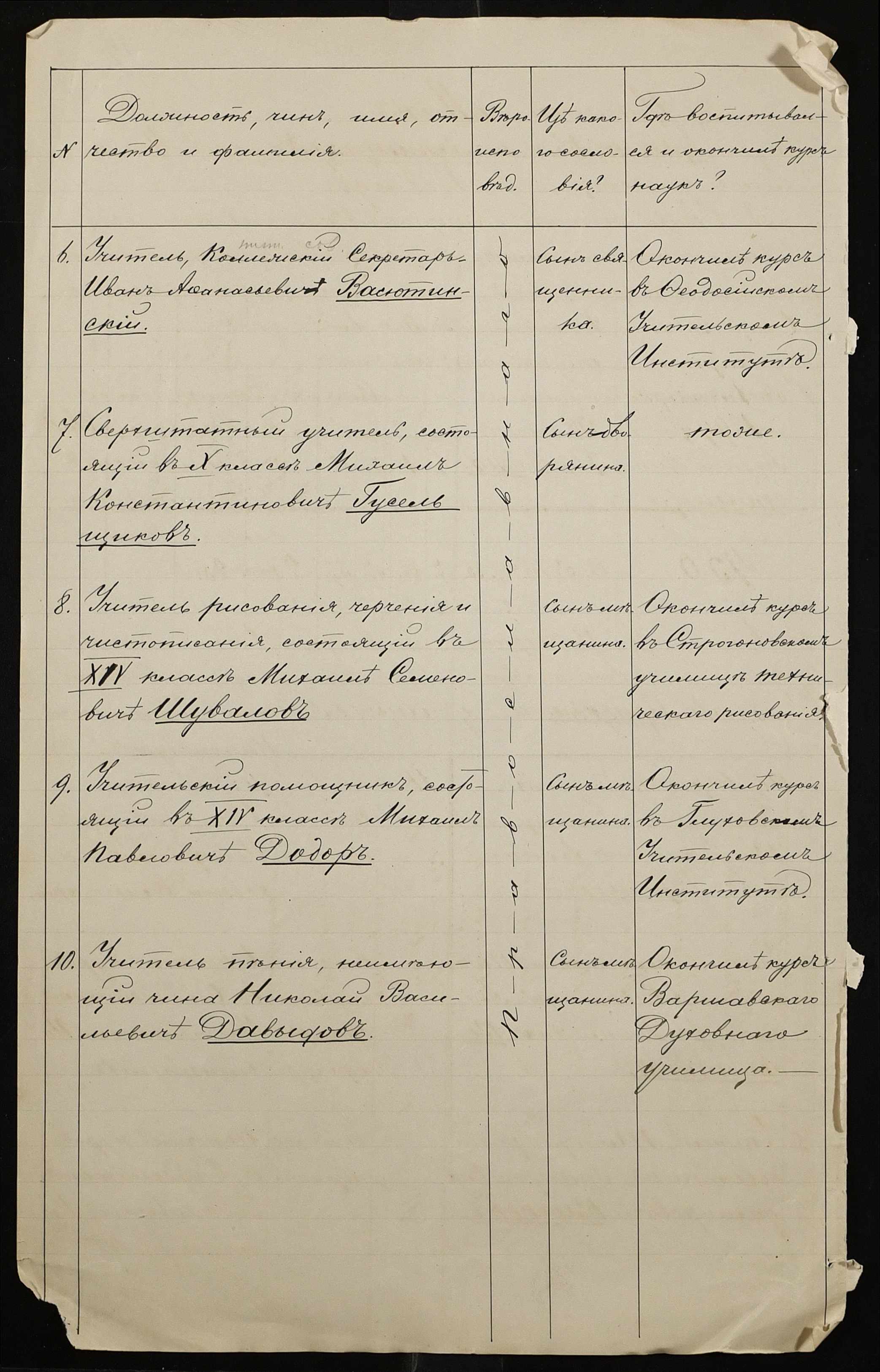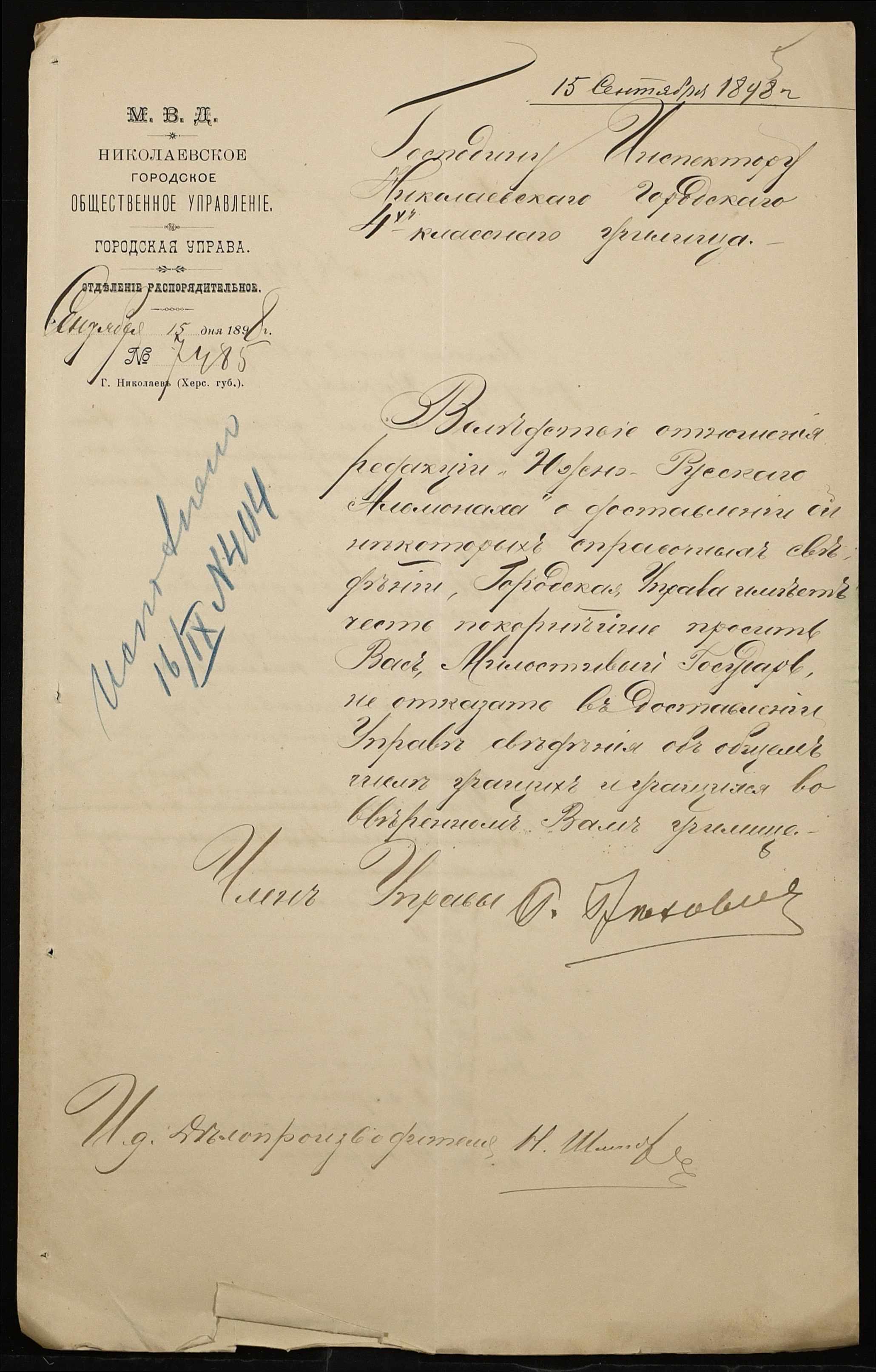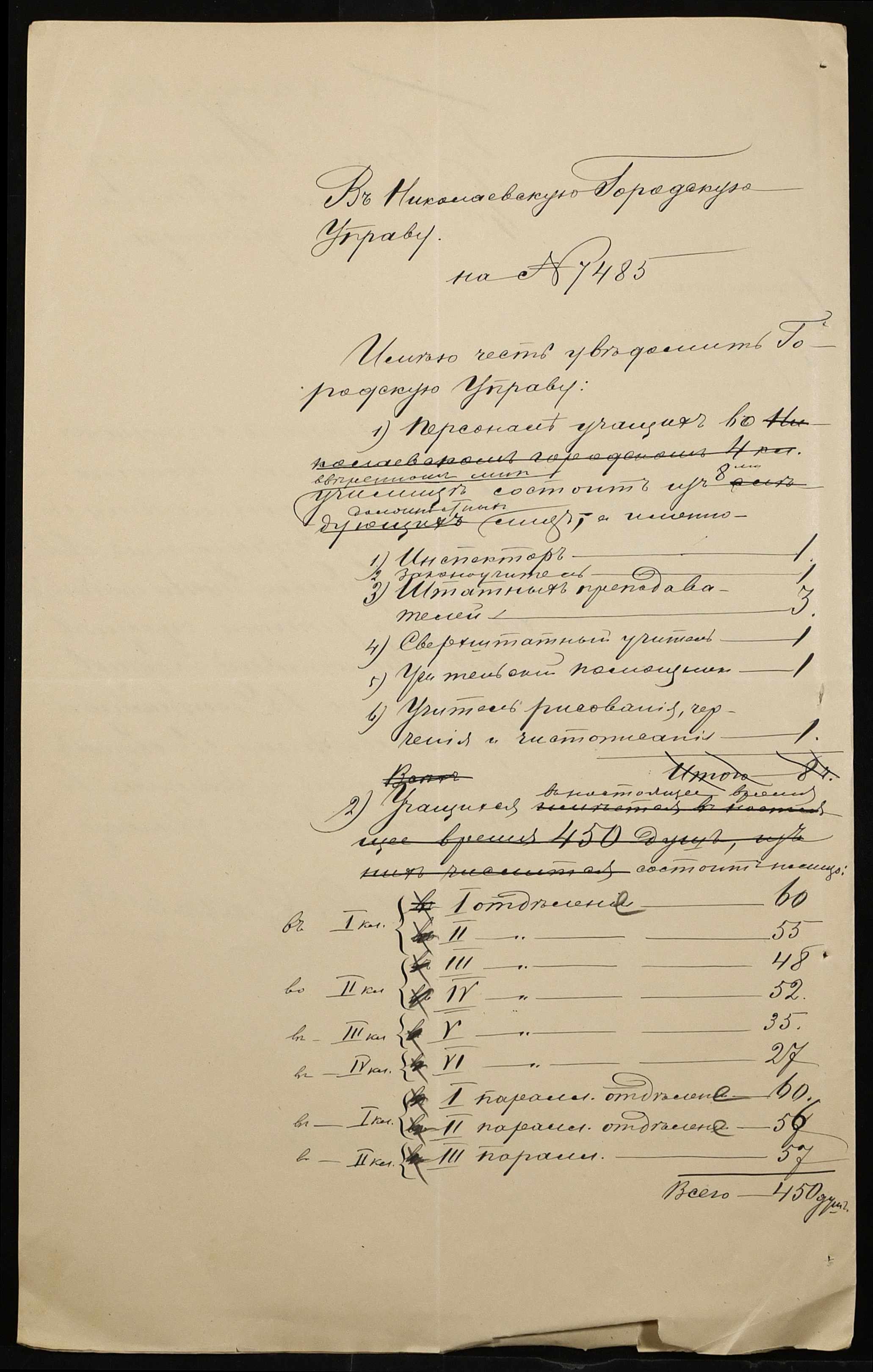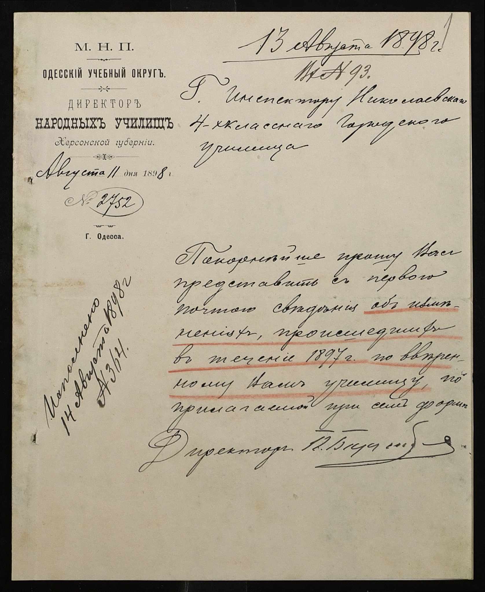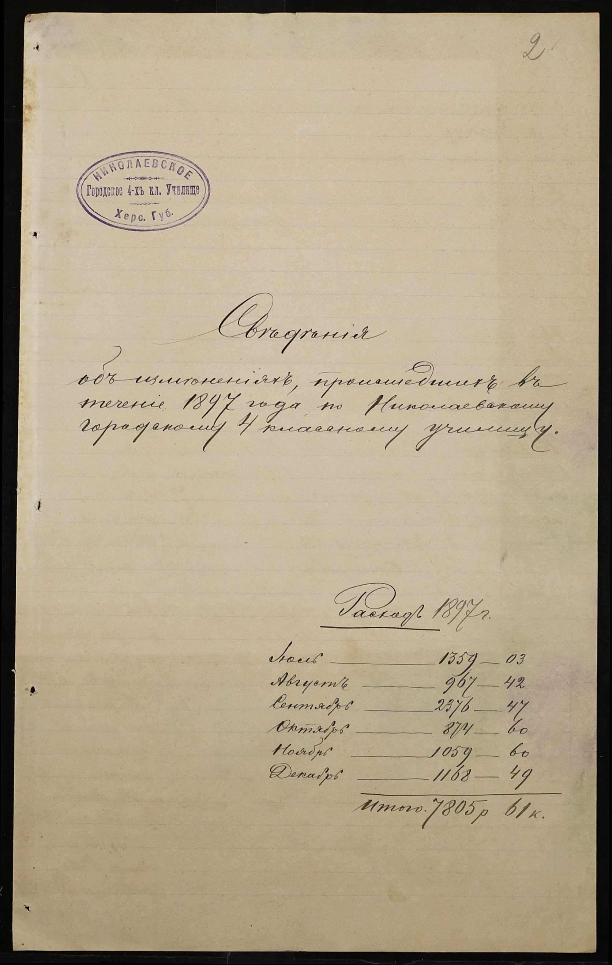• • • • Справа № 325 “Статистичний звіт про стан училища за 1898 рік”