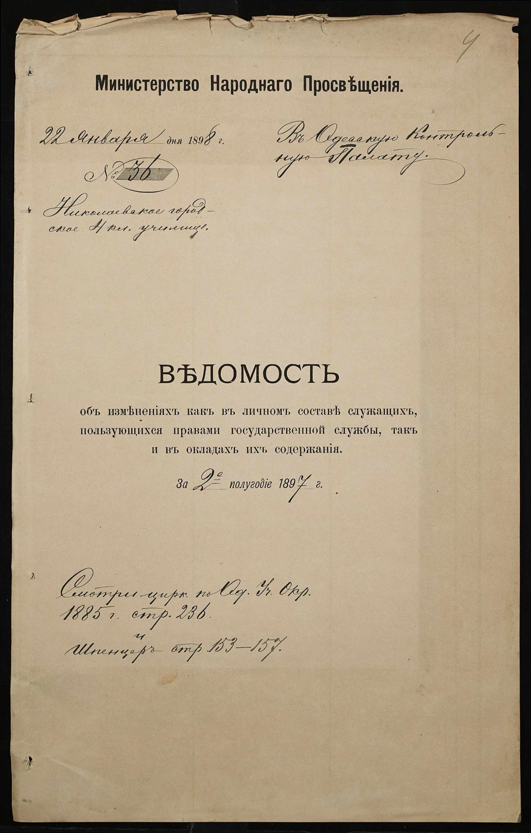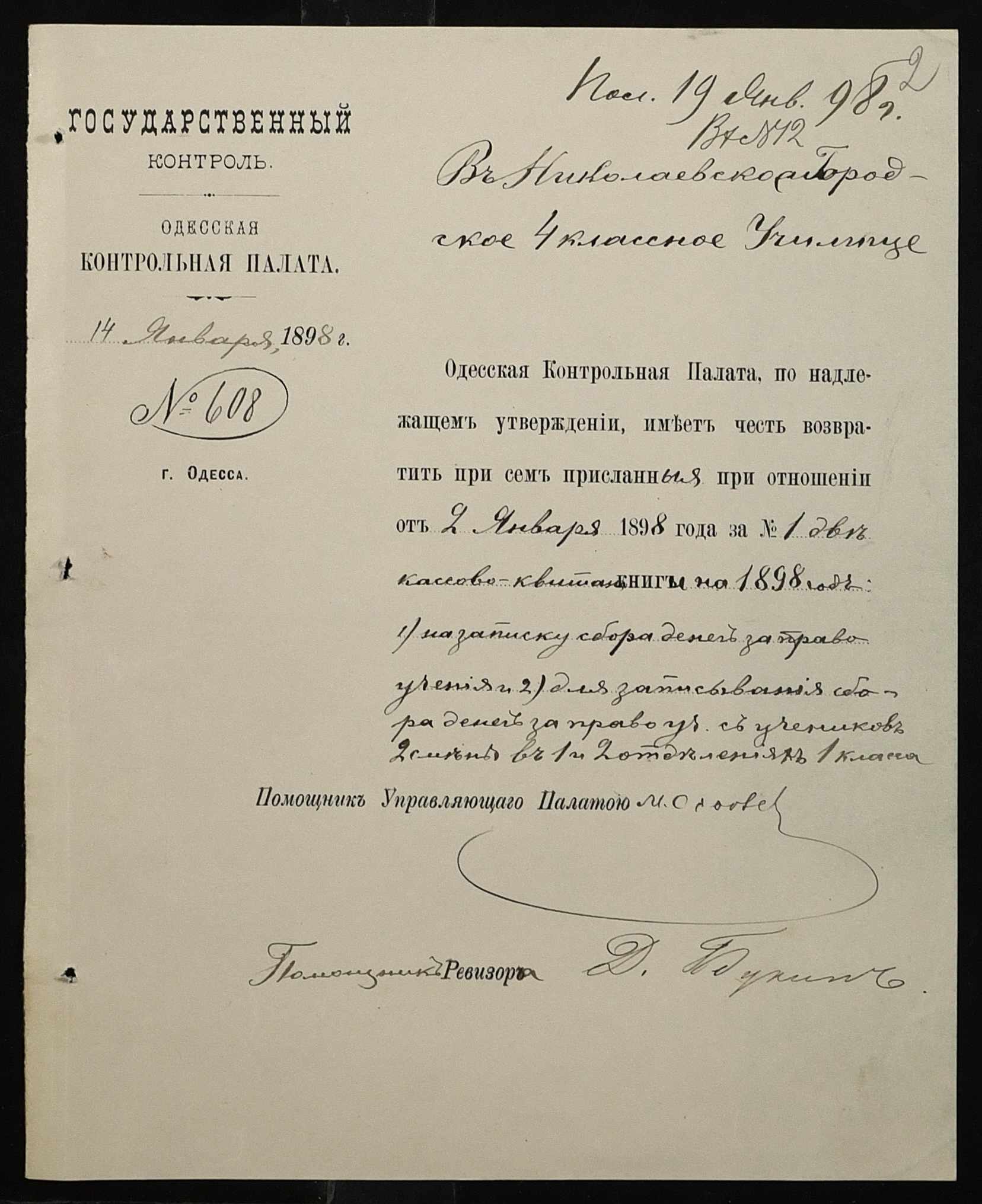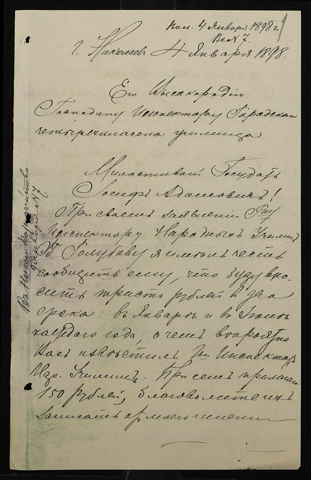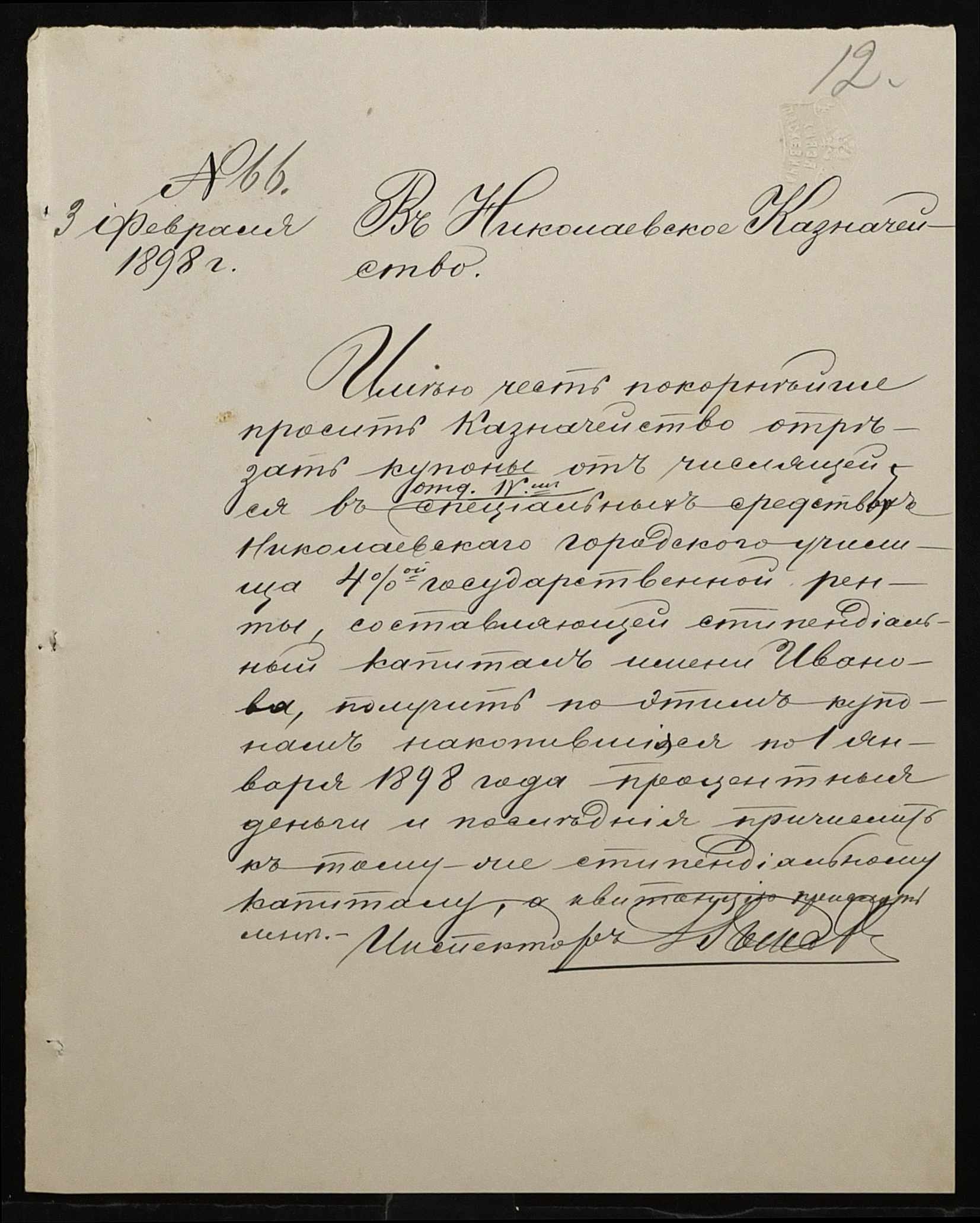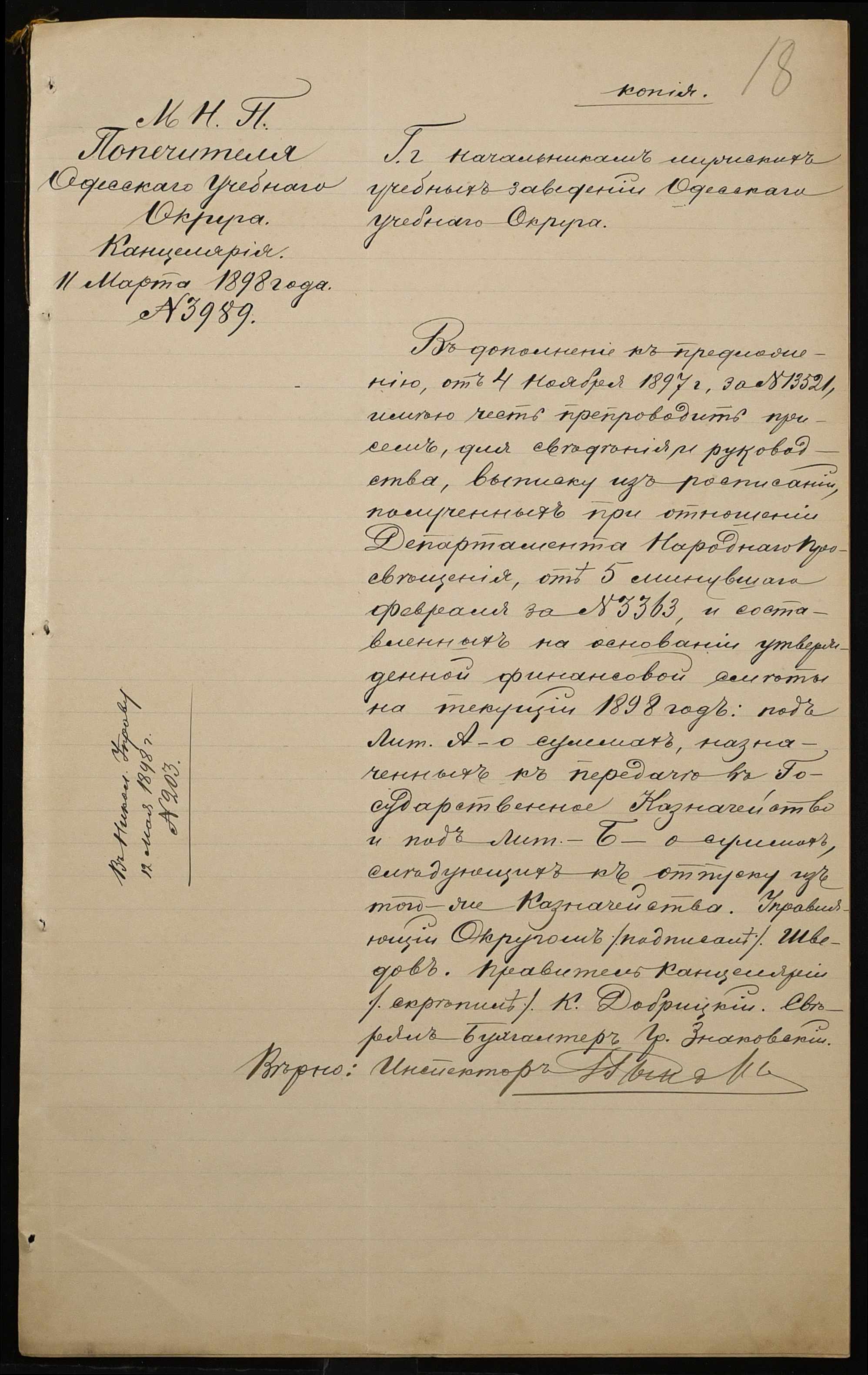 • • • • Справа № 326 “Кошторис прибутків і видатків коштів училища за 1898 рік, листування про звільнення малозабезпечених учнів від сплати за навчання”