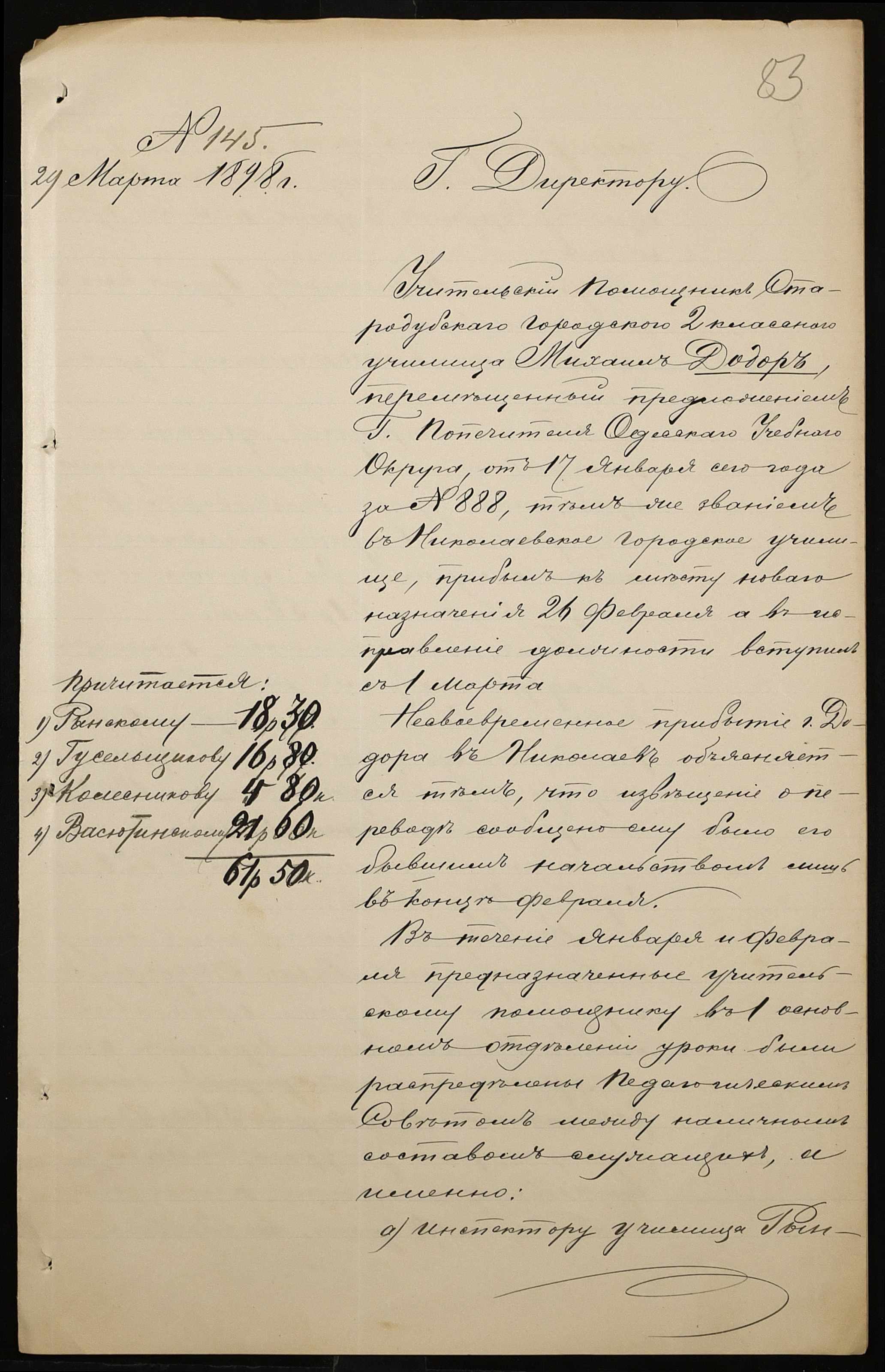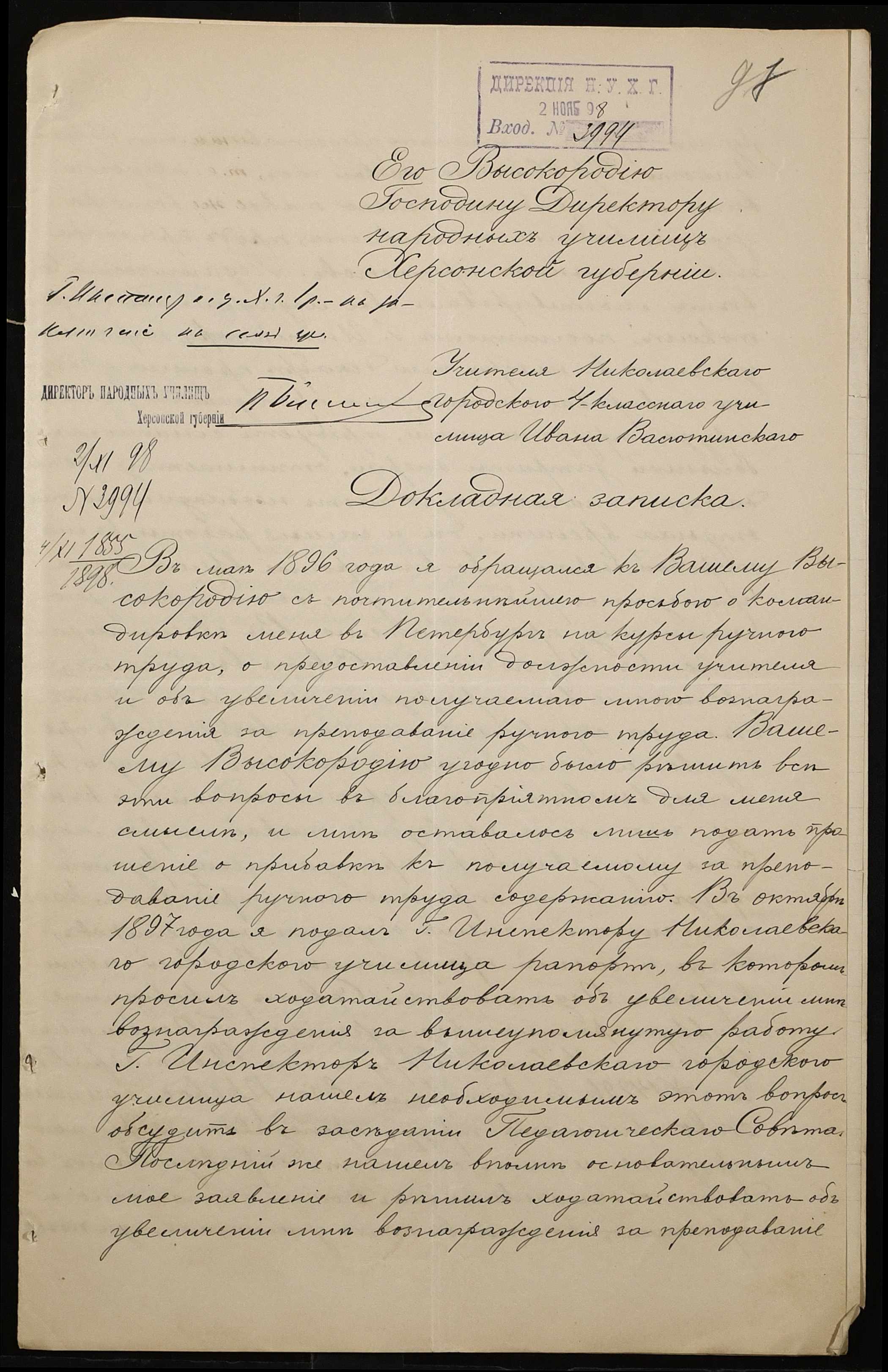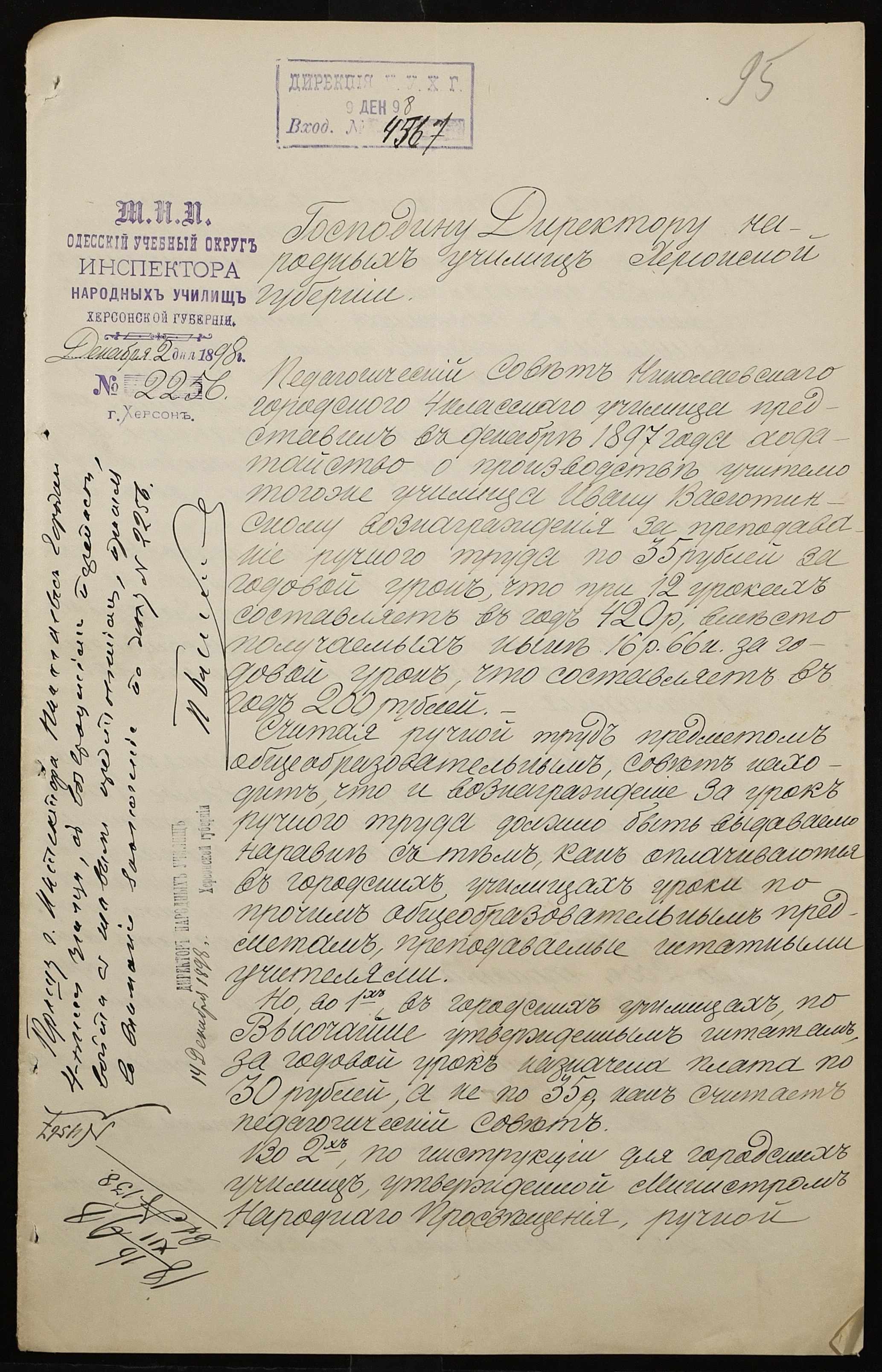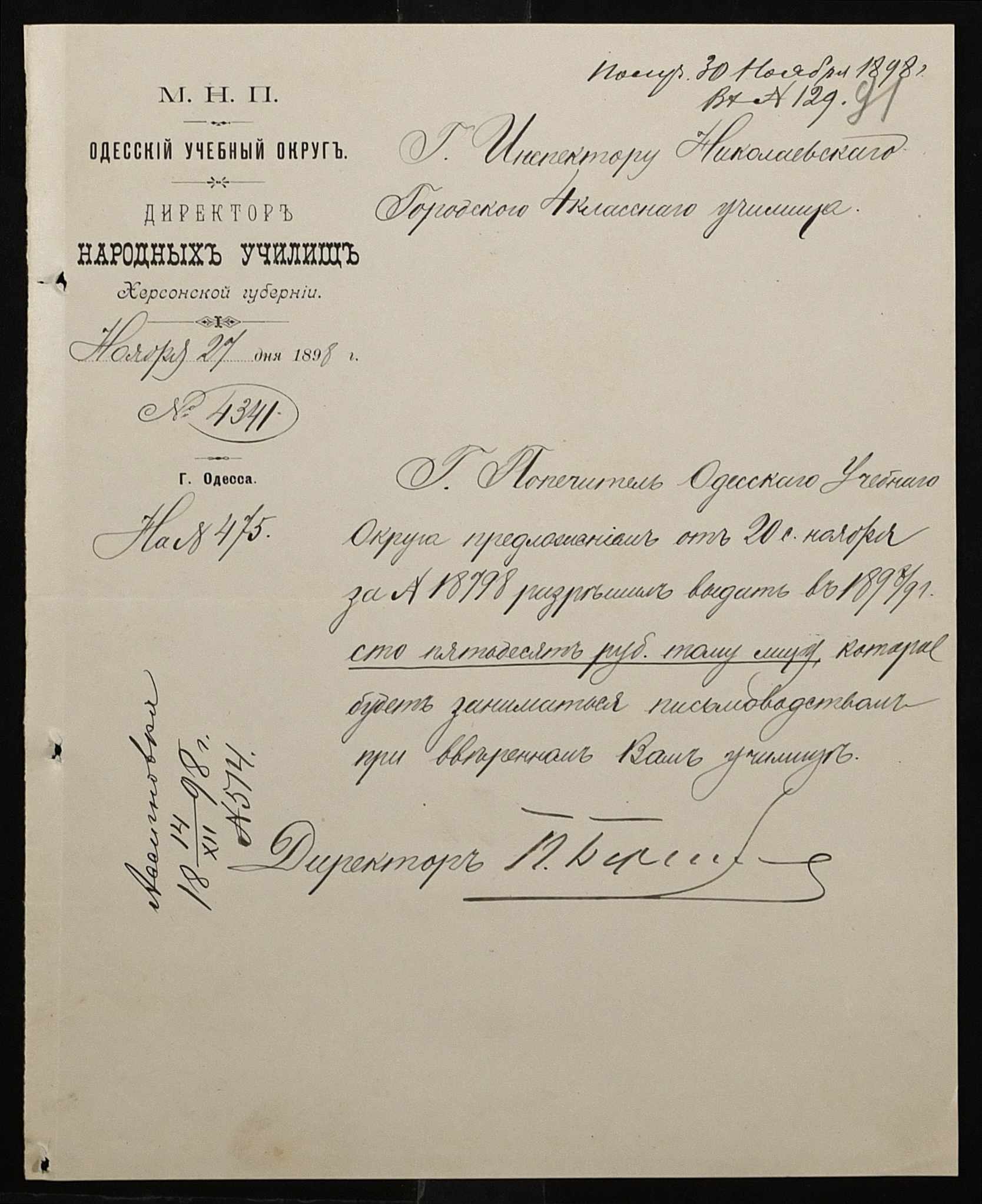 • • • • Справа № 326 “Кошторис прибутків і видатків коштів училища за 1898 рік, листування про звільнення малозабезпечених учнів від сплати за навчання”