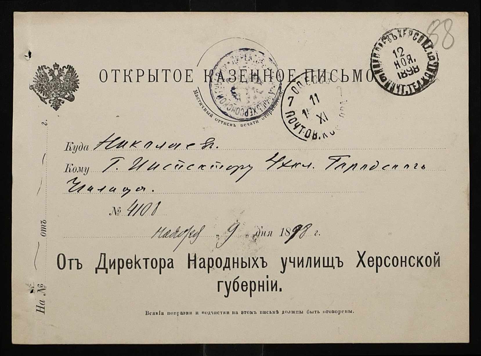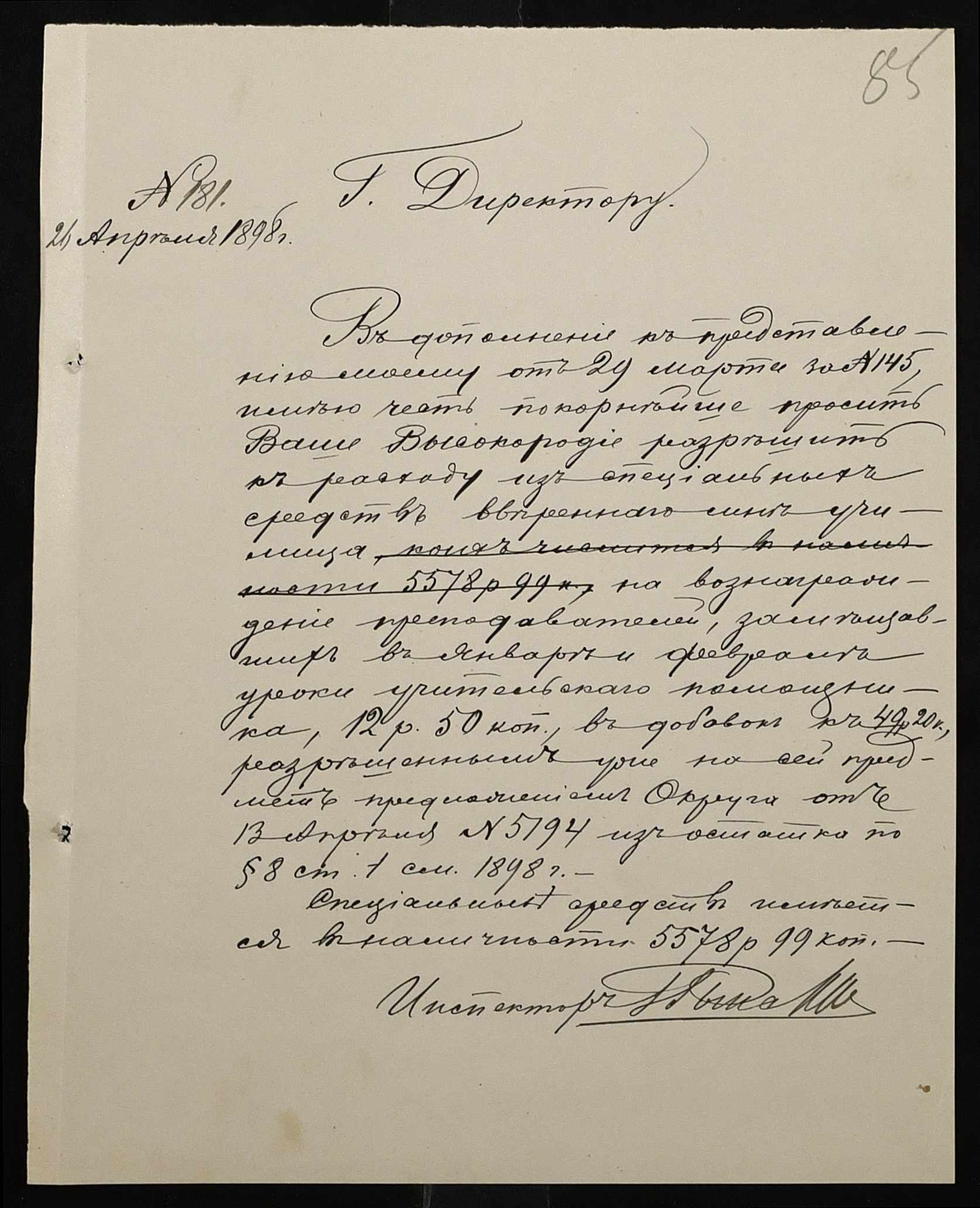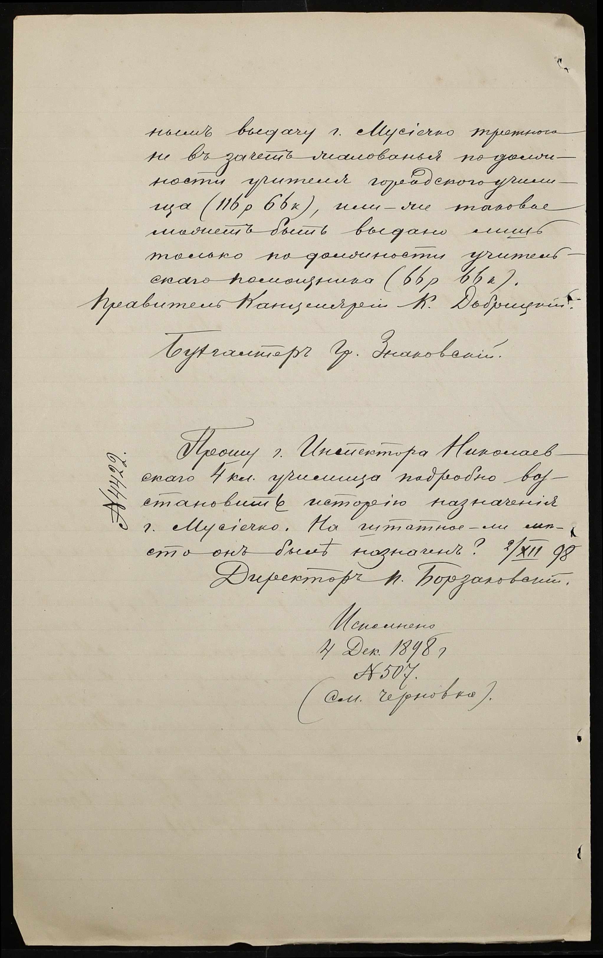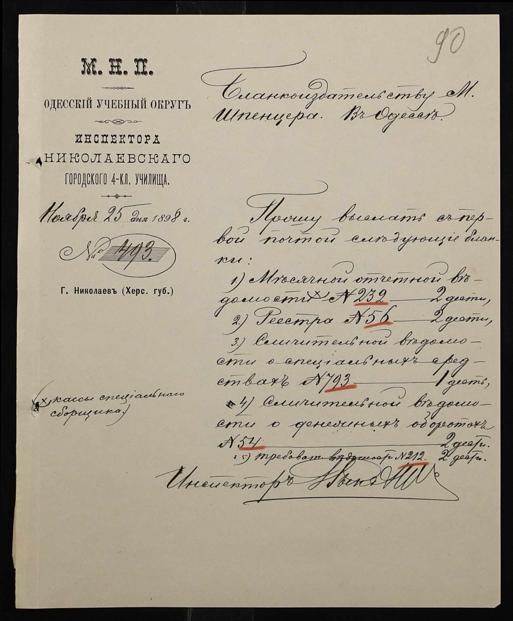 • • • • Справа № 326 “Кошторис прибутків і видатків коштів училища за 1898 рік, листування про звільнення малозабезпечених учнів від сплати за навчання”