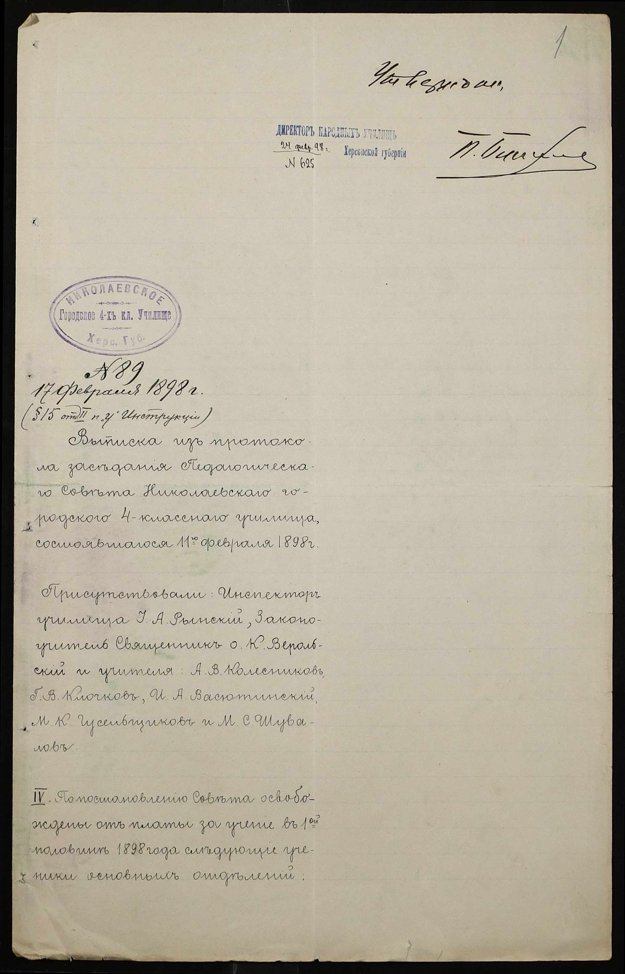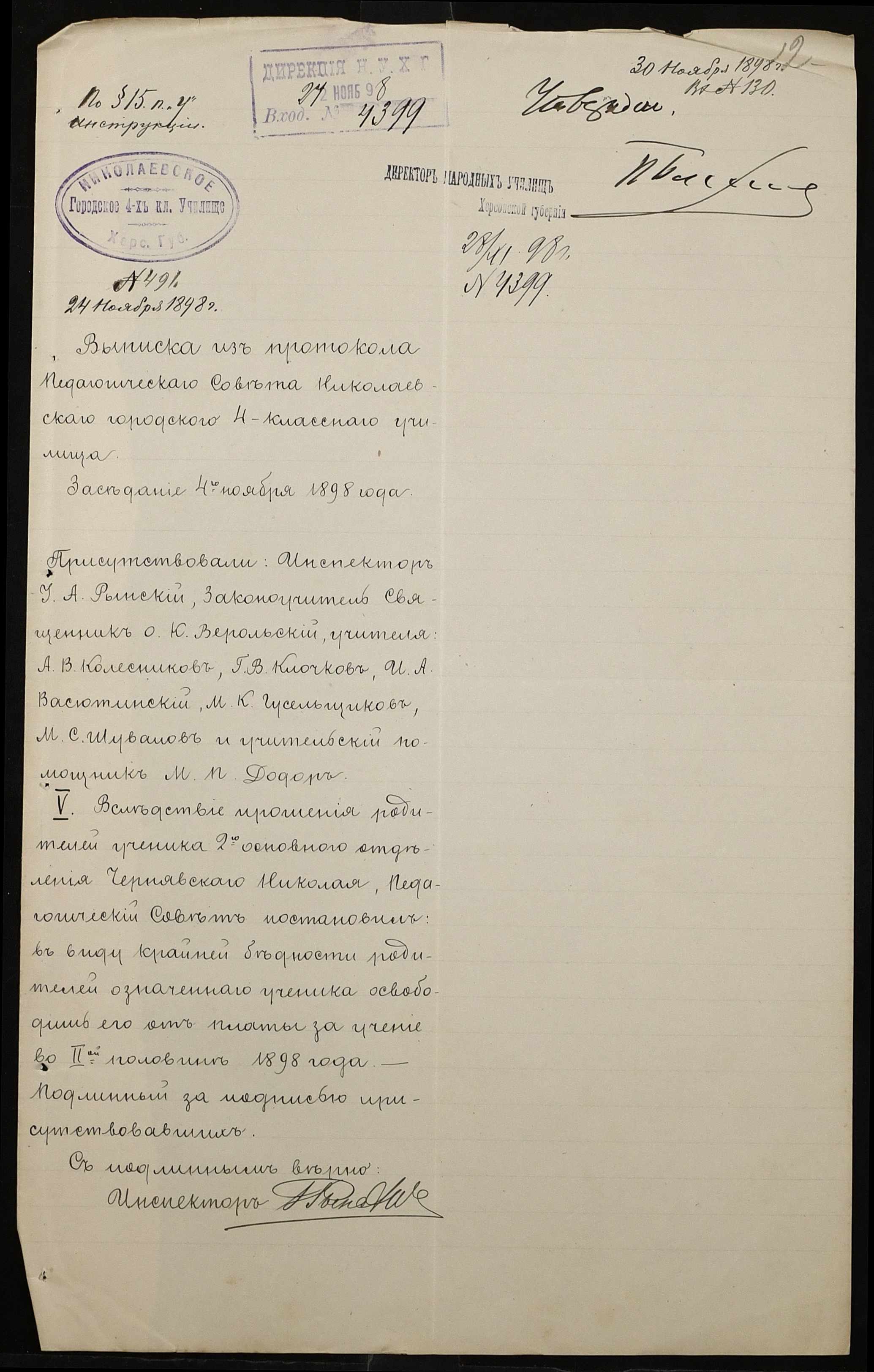 ◦ ◦ Фонд № 131 “Миколаївське перше вище початкове училище”