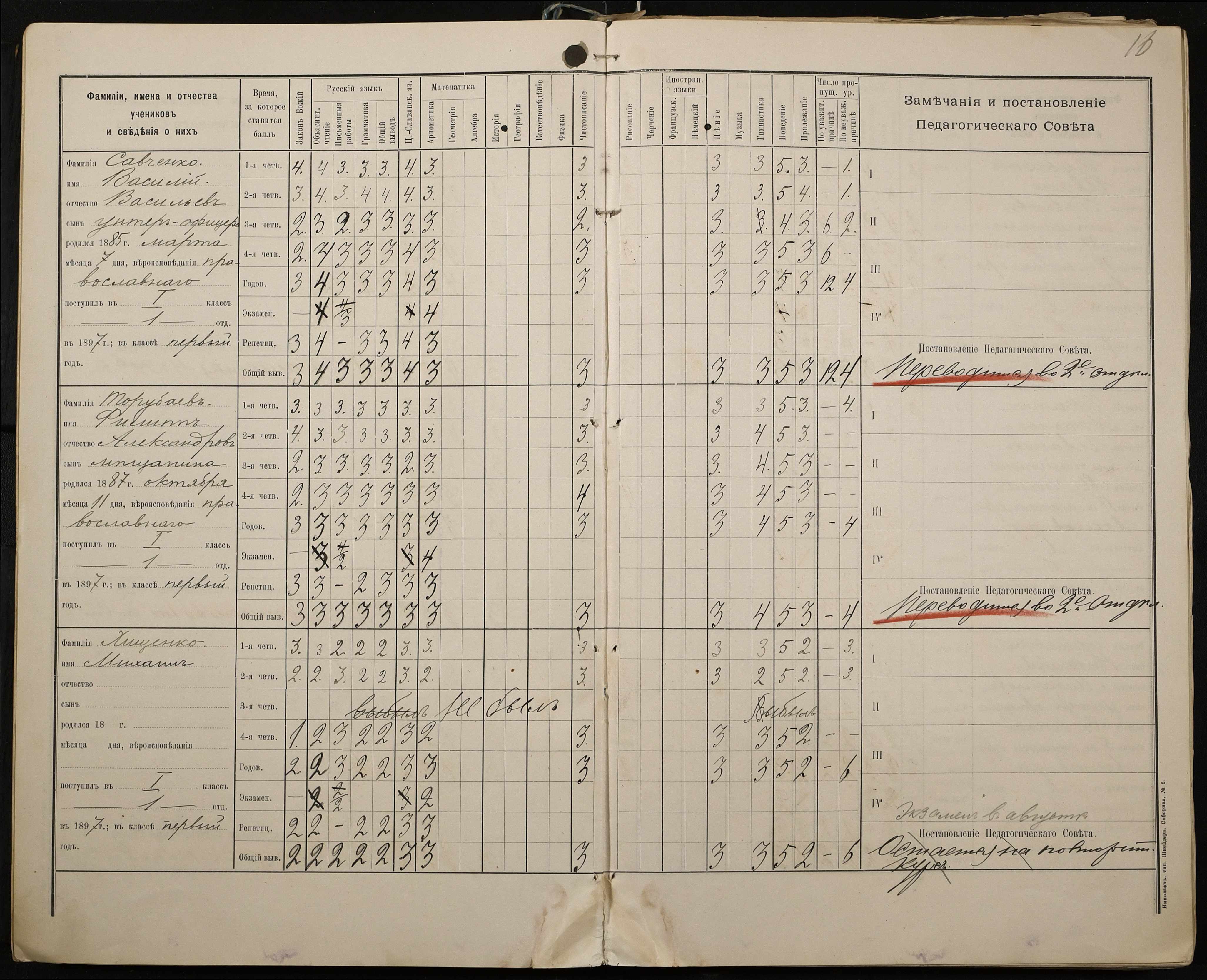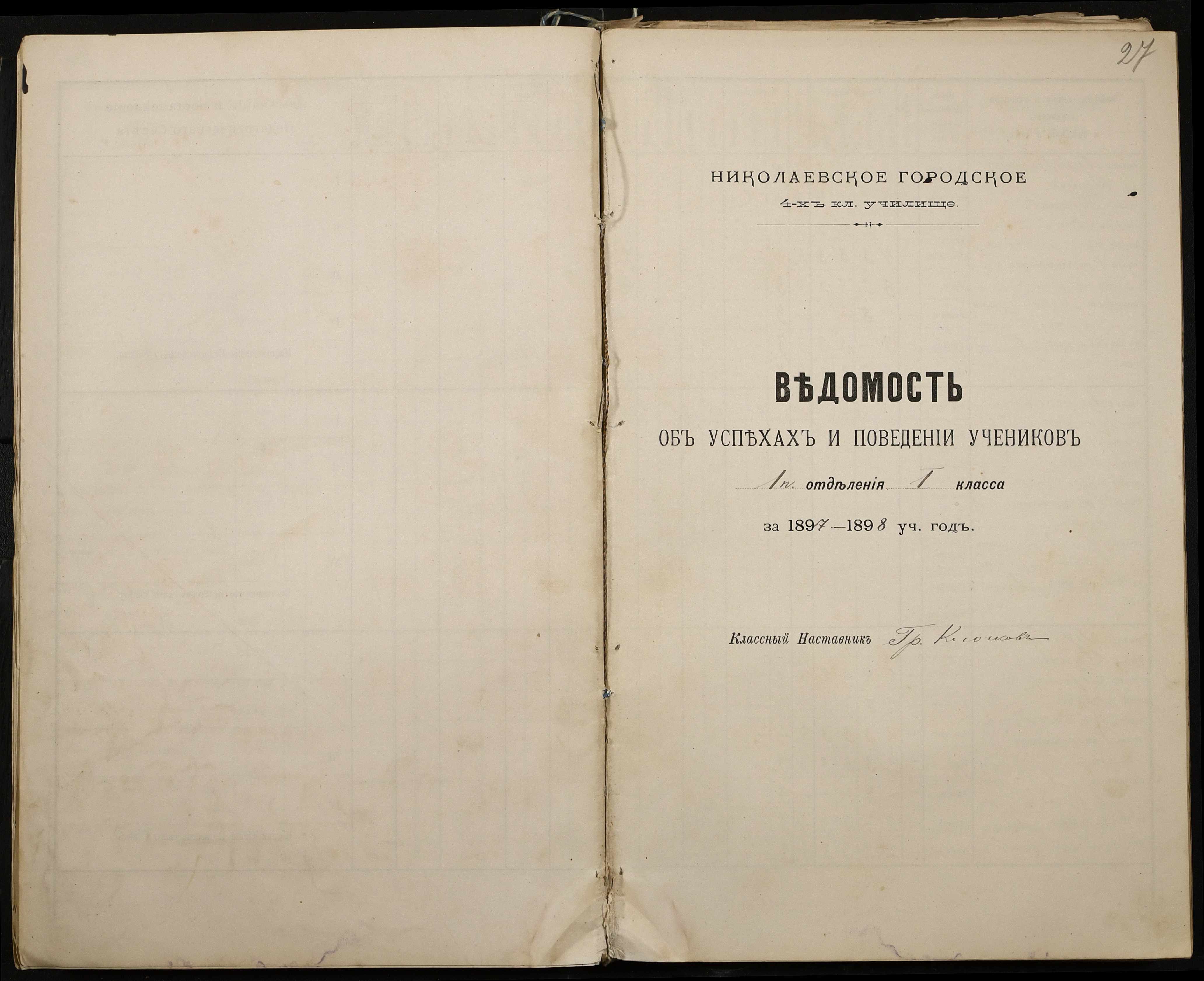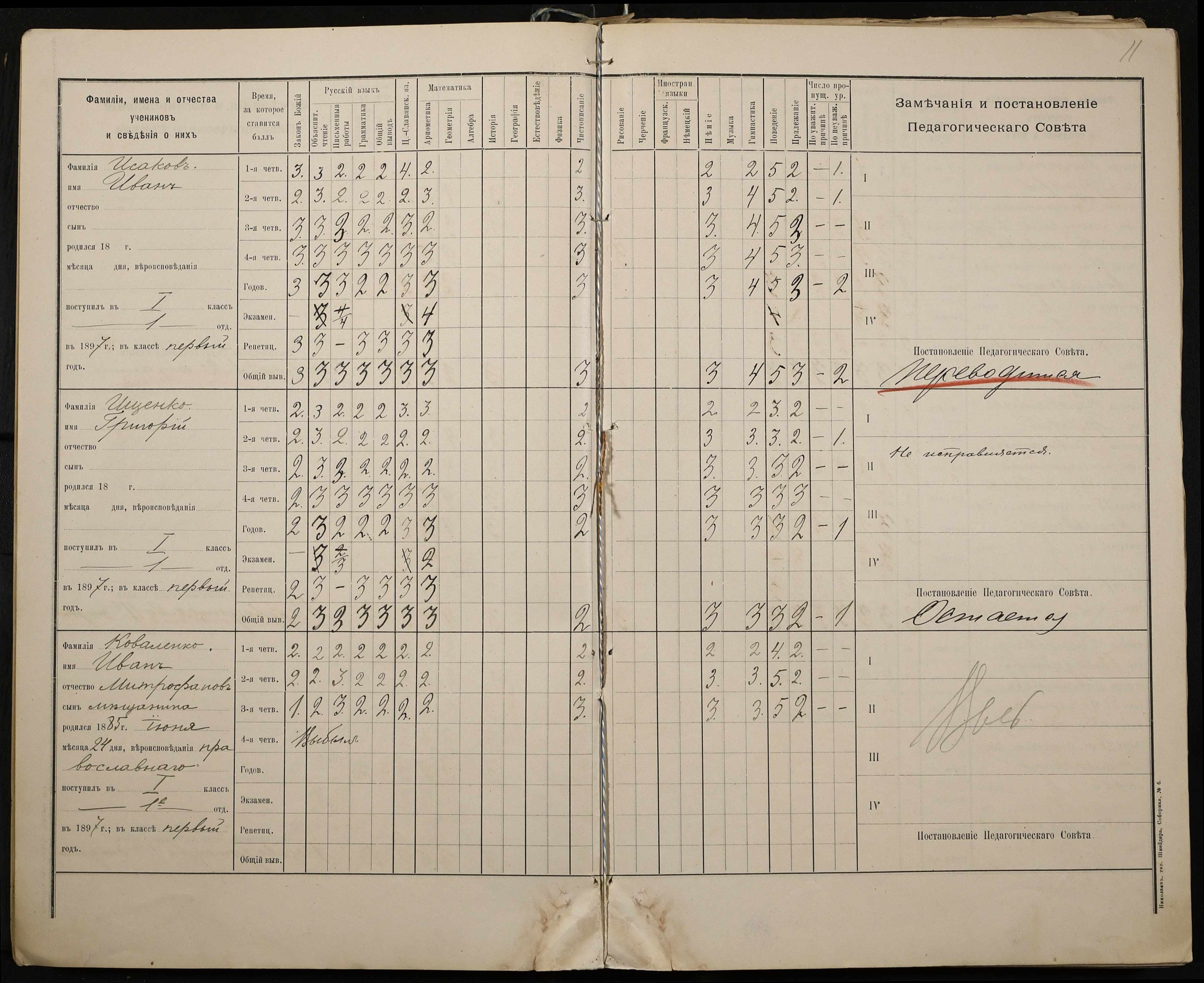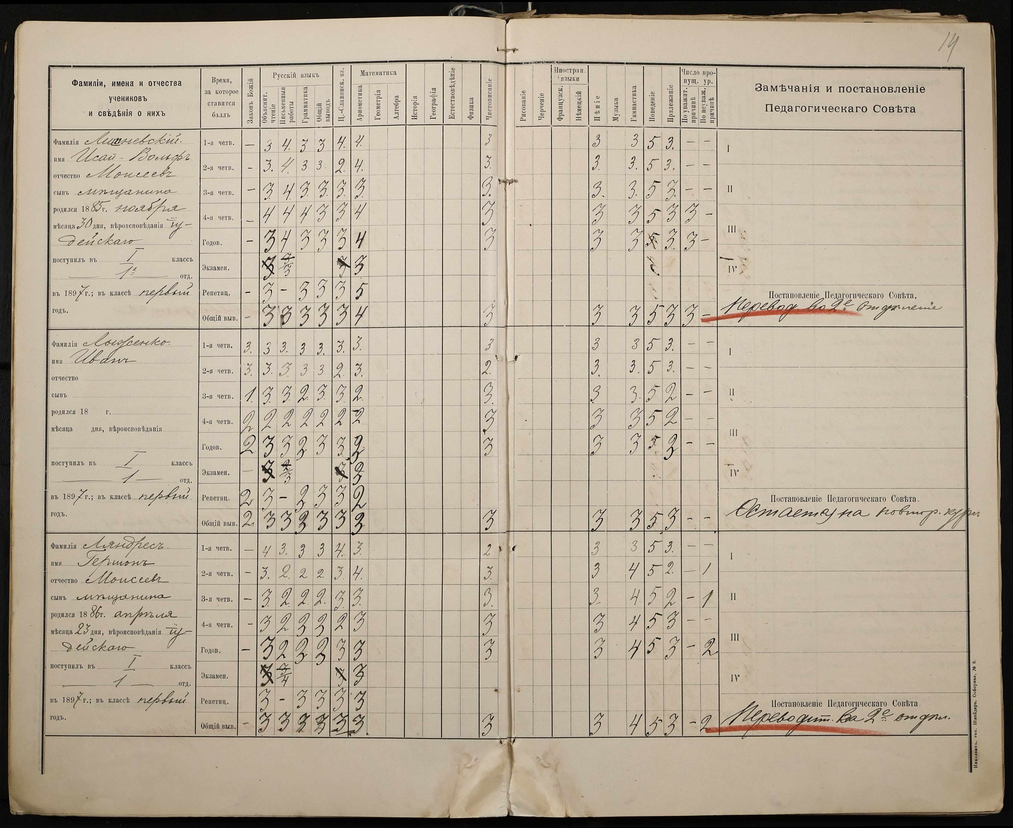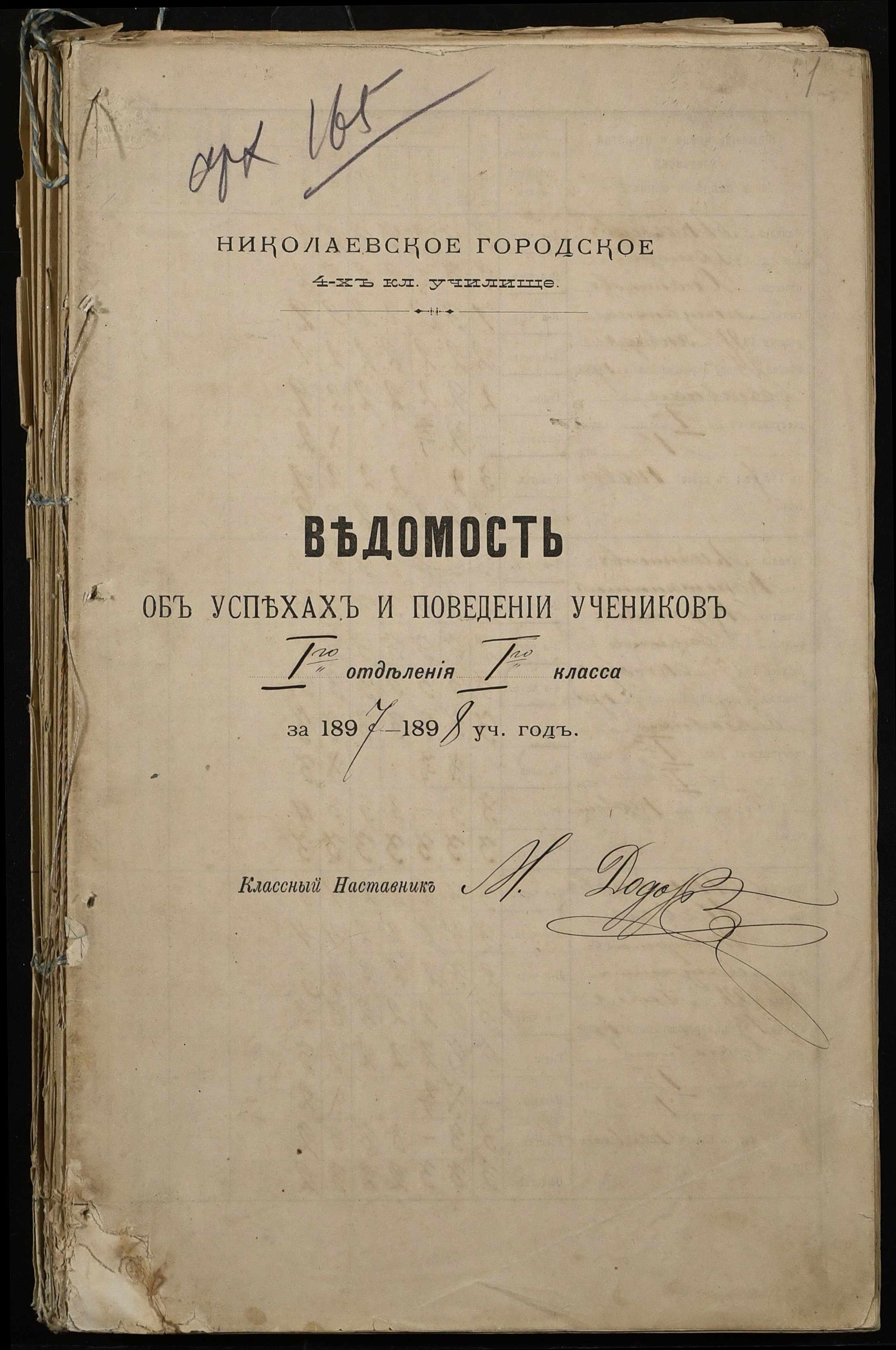 • • • • Справа № 330 “Відомості успішності і поведінки першого класу за 1897-1898 навчальний рік”