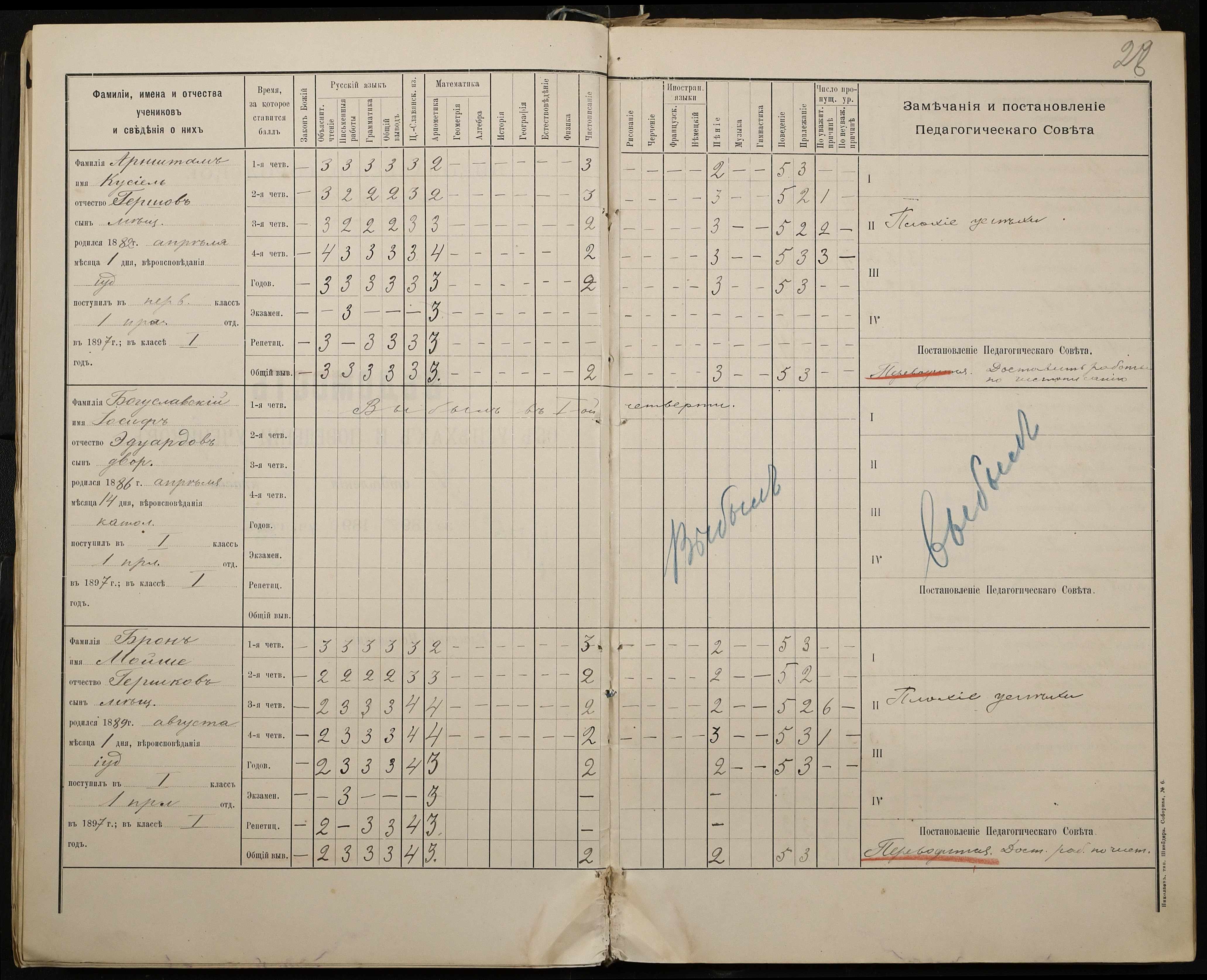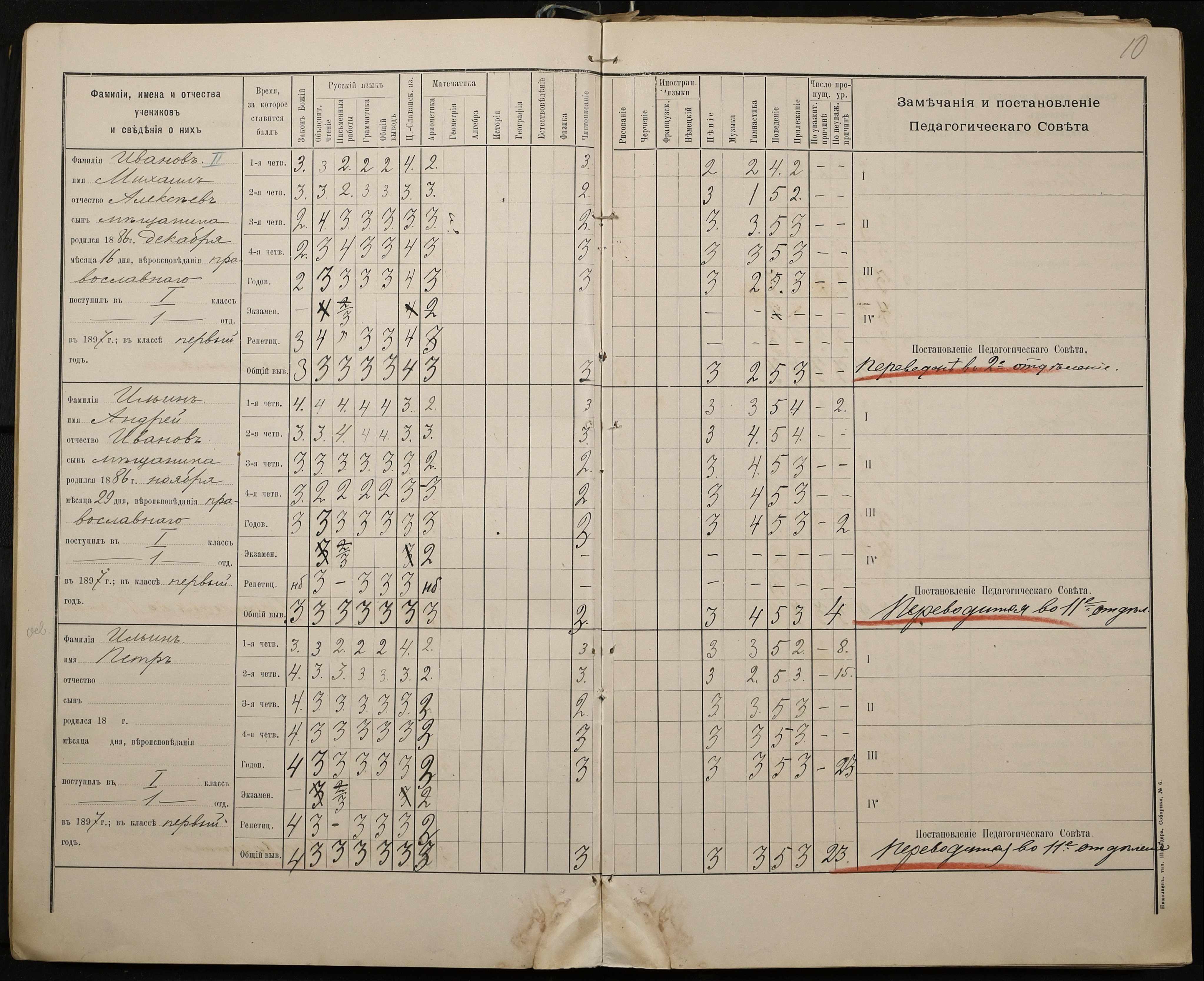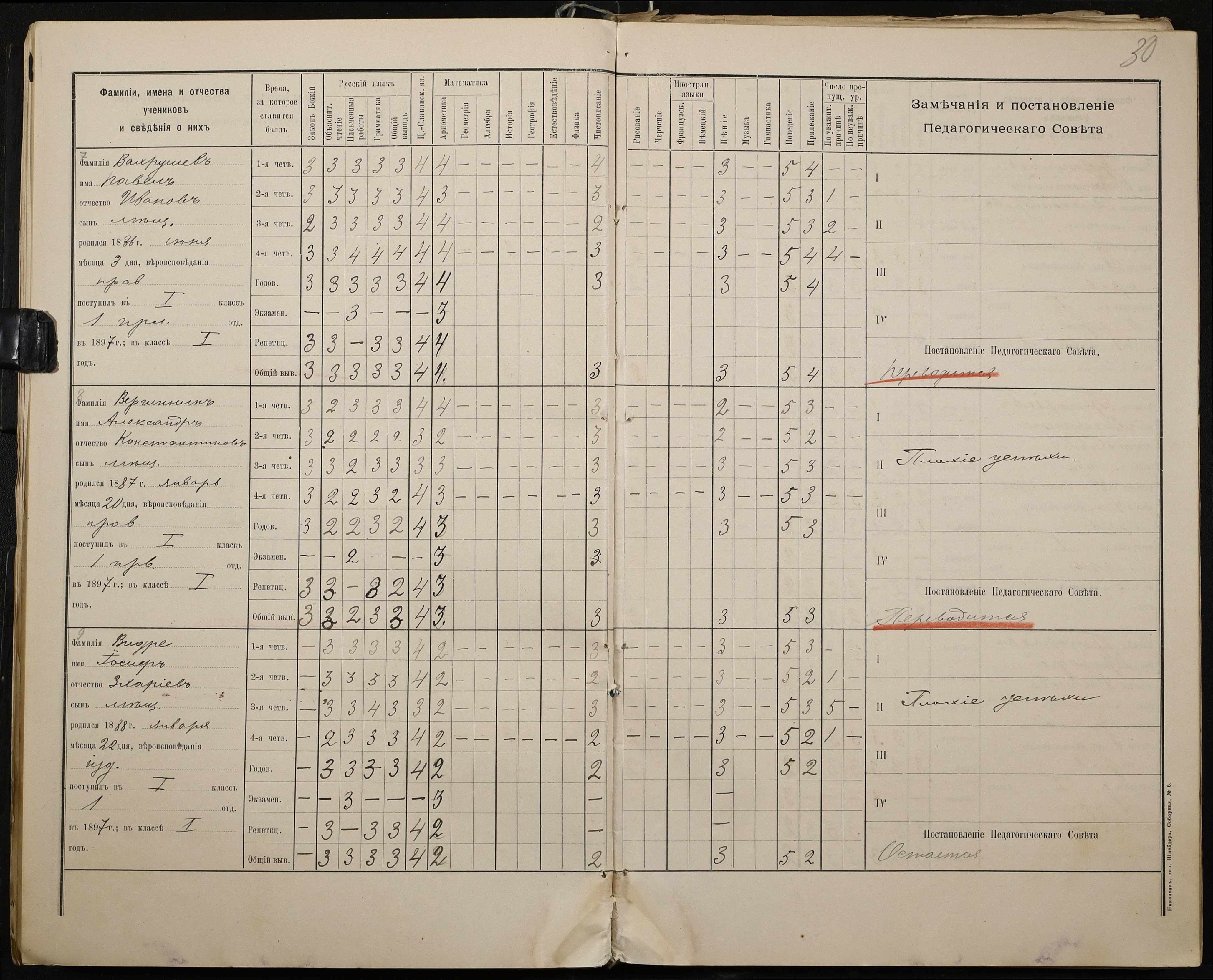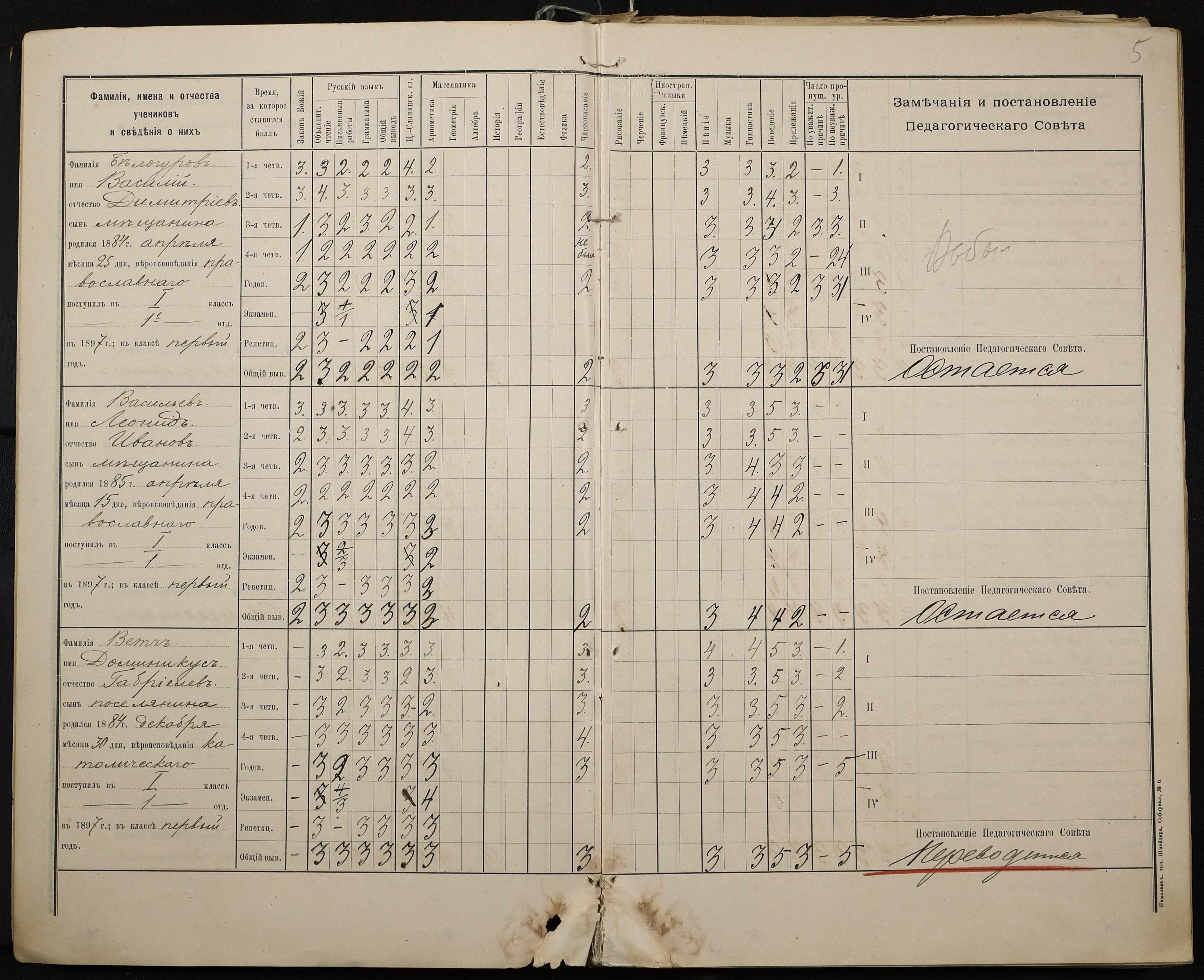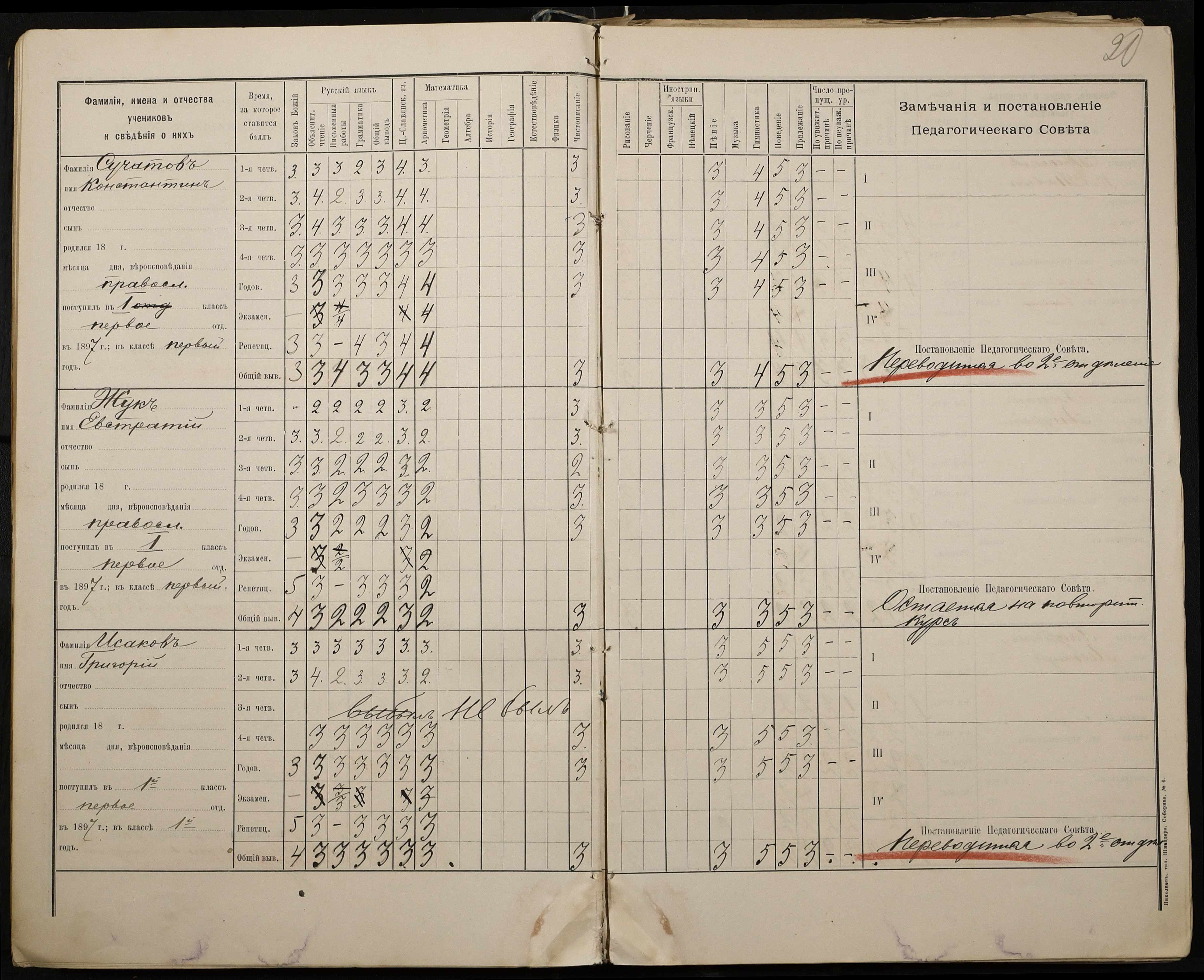 • • • • Справа № 330 “Відомості успішності і поведінки першого класу за 1897-1898 навчальний рік”