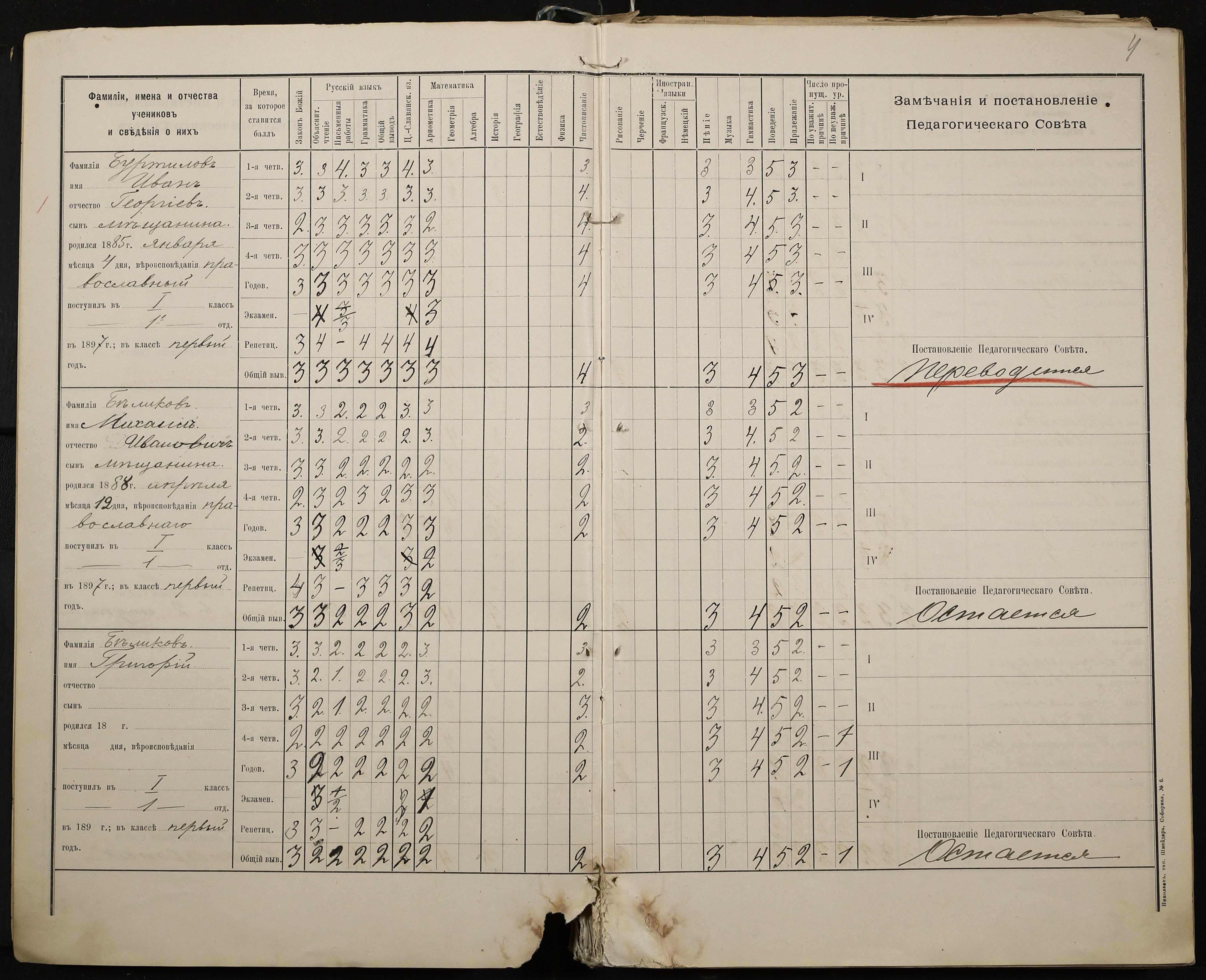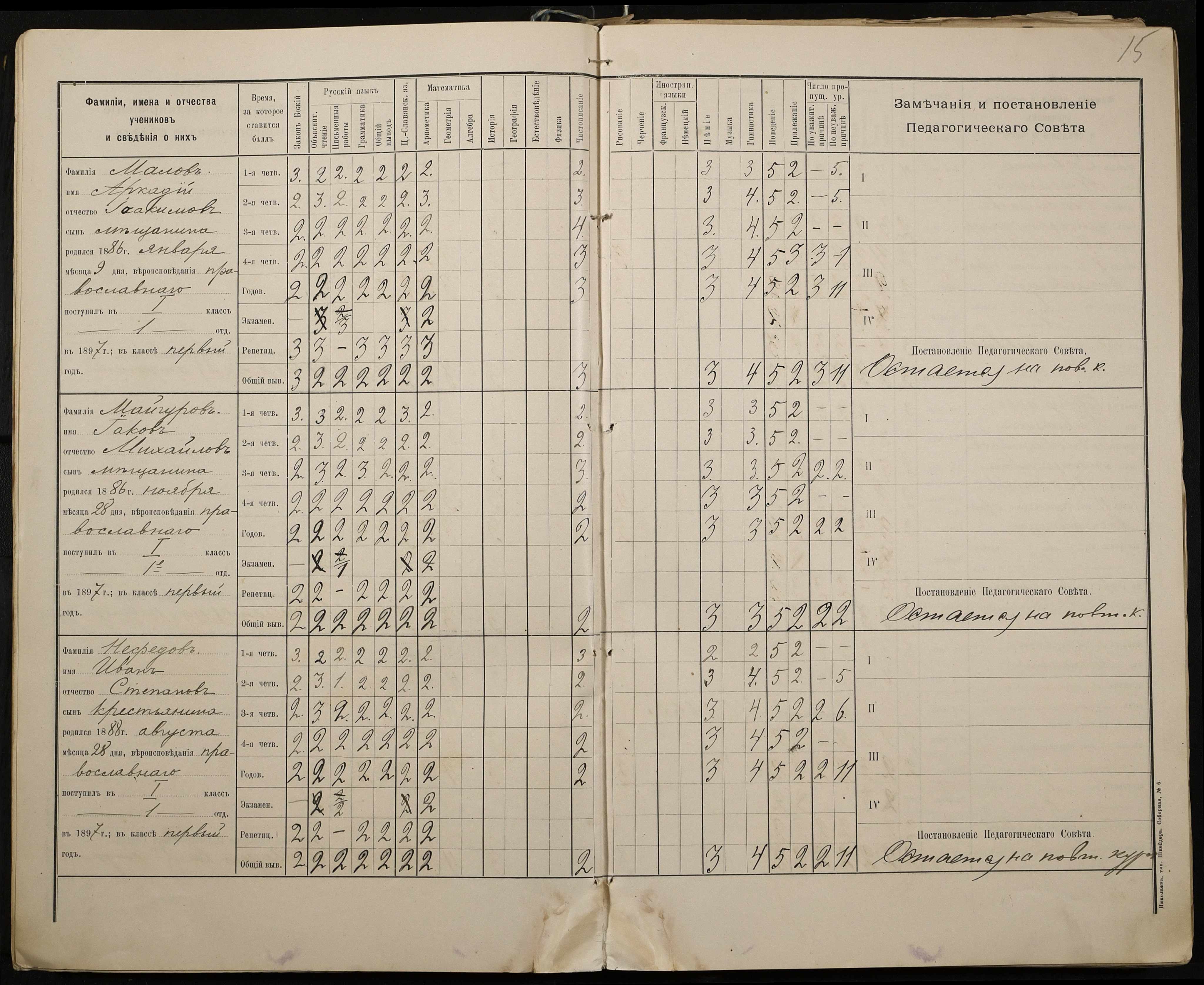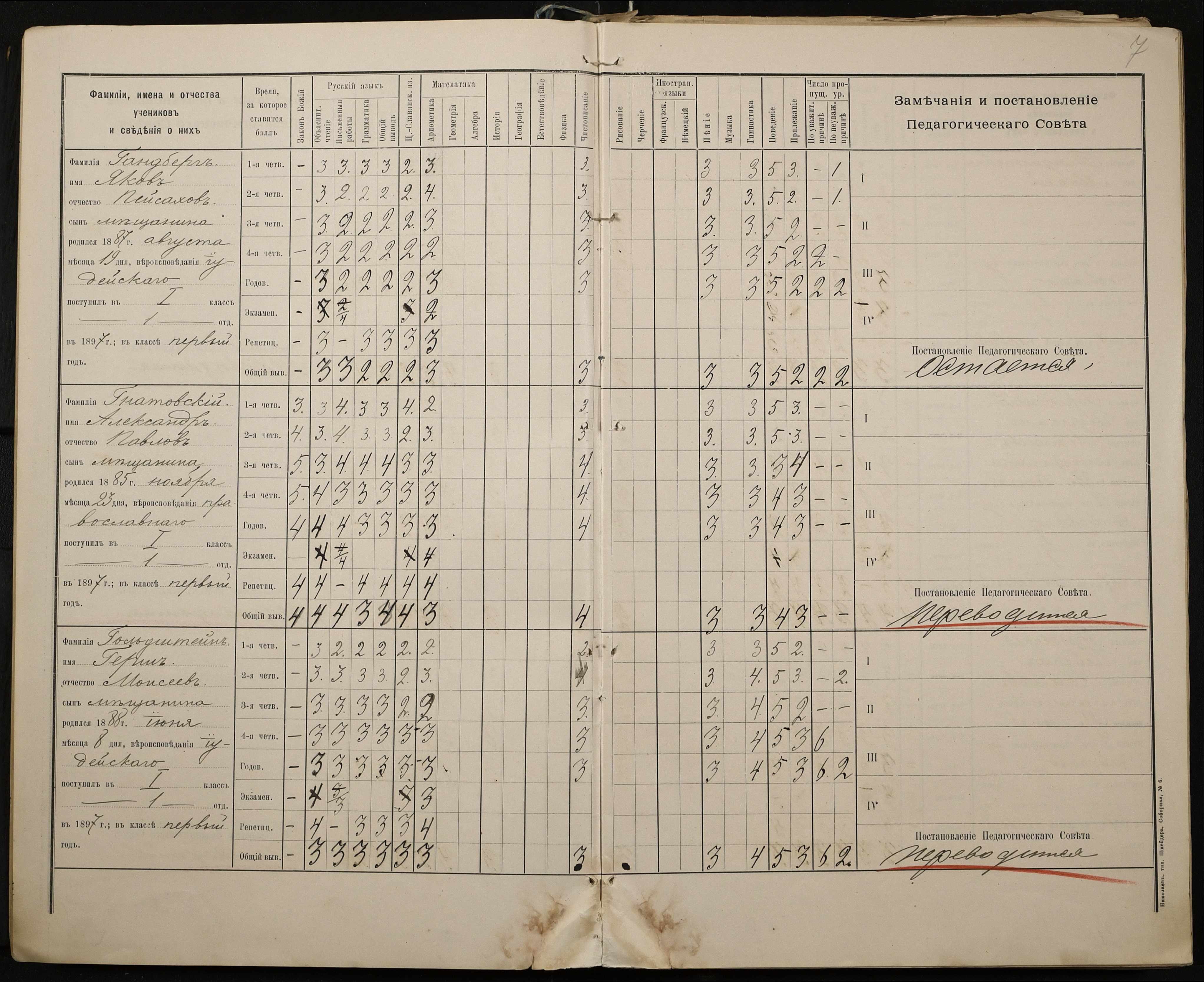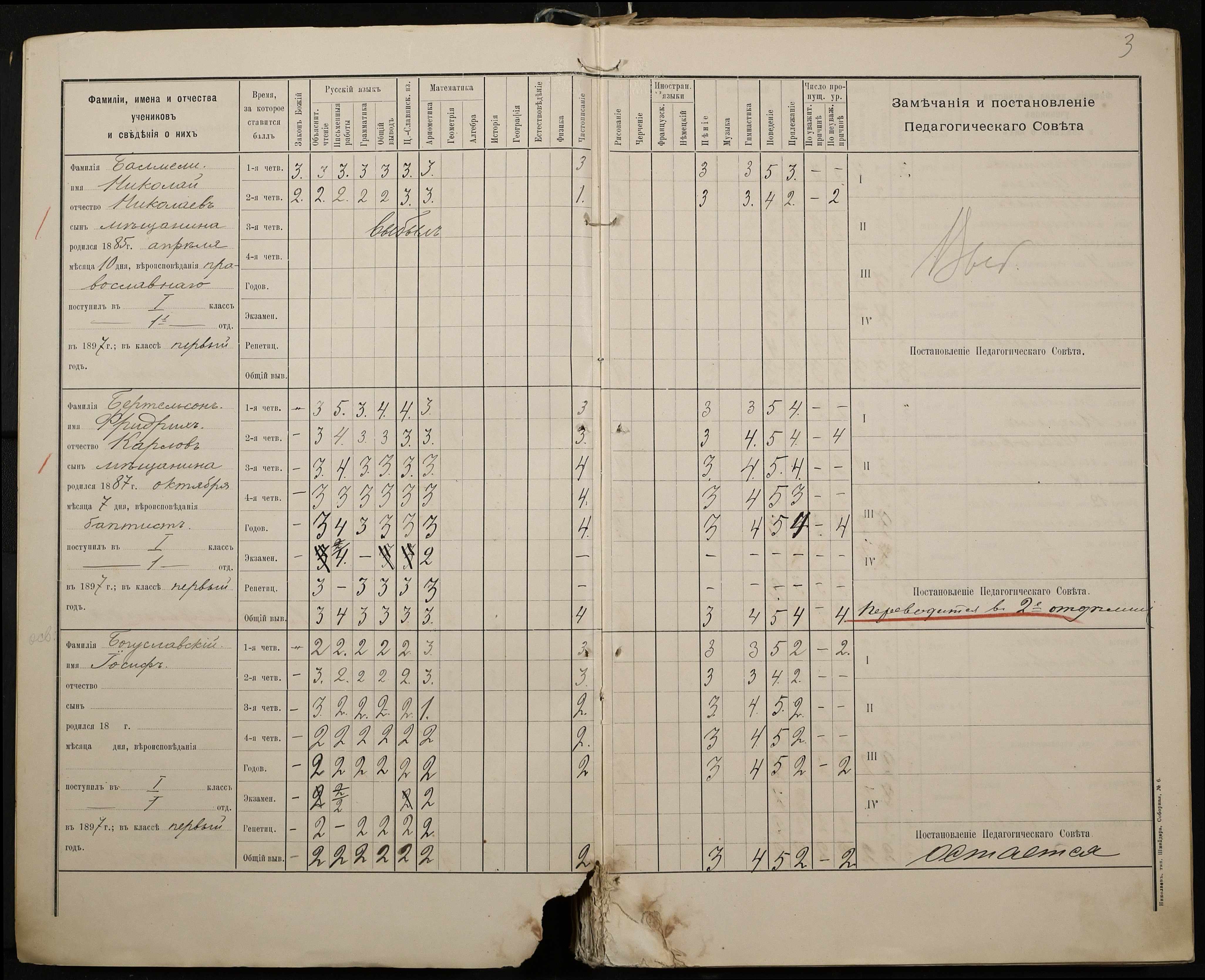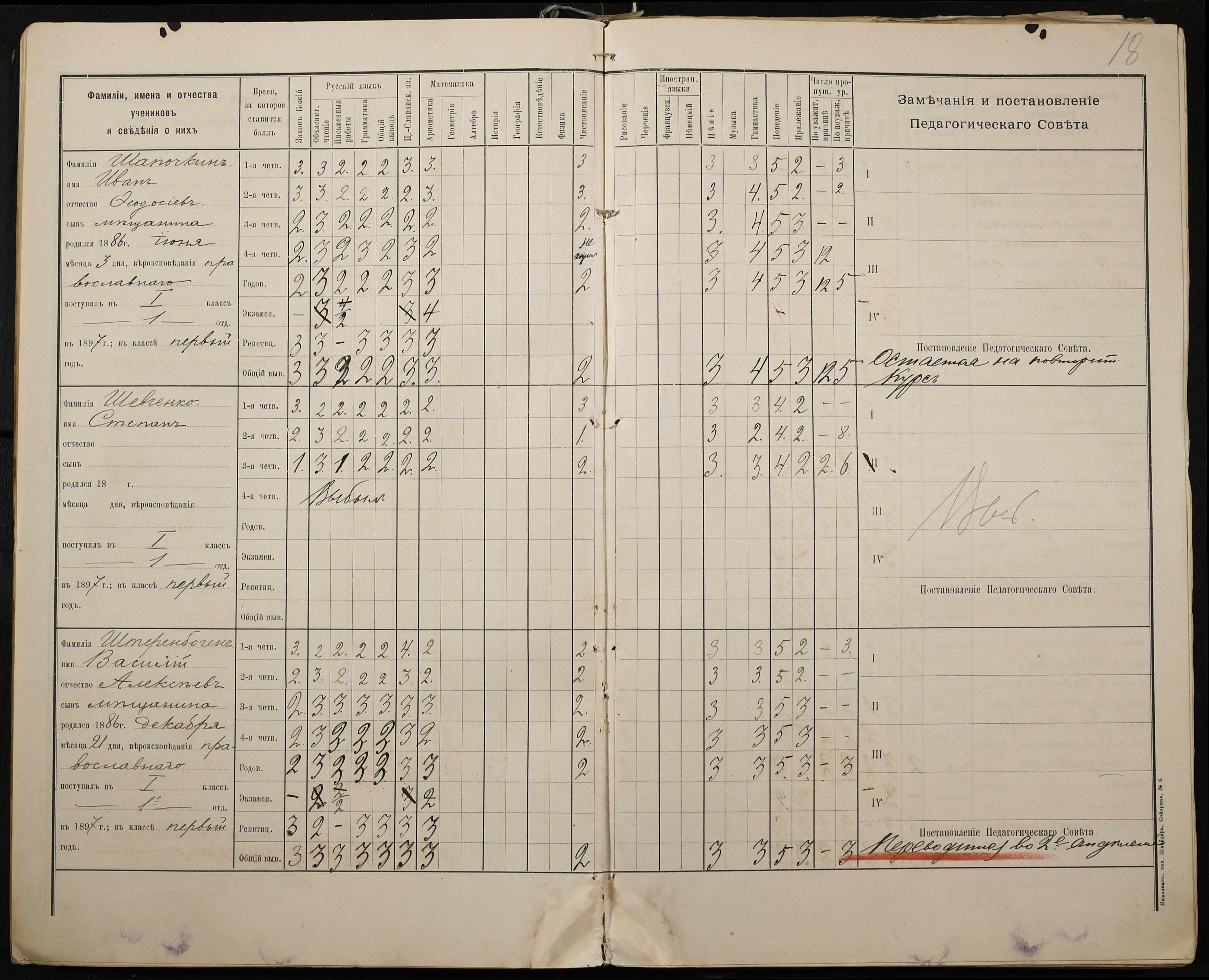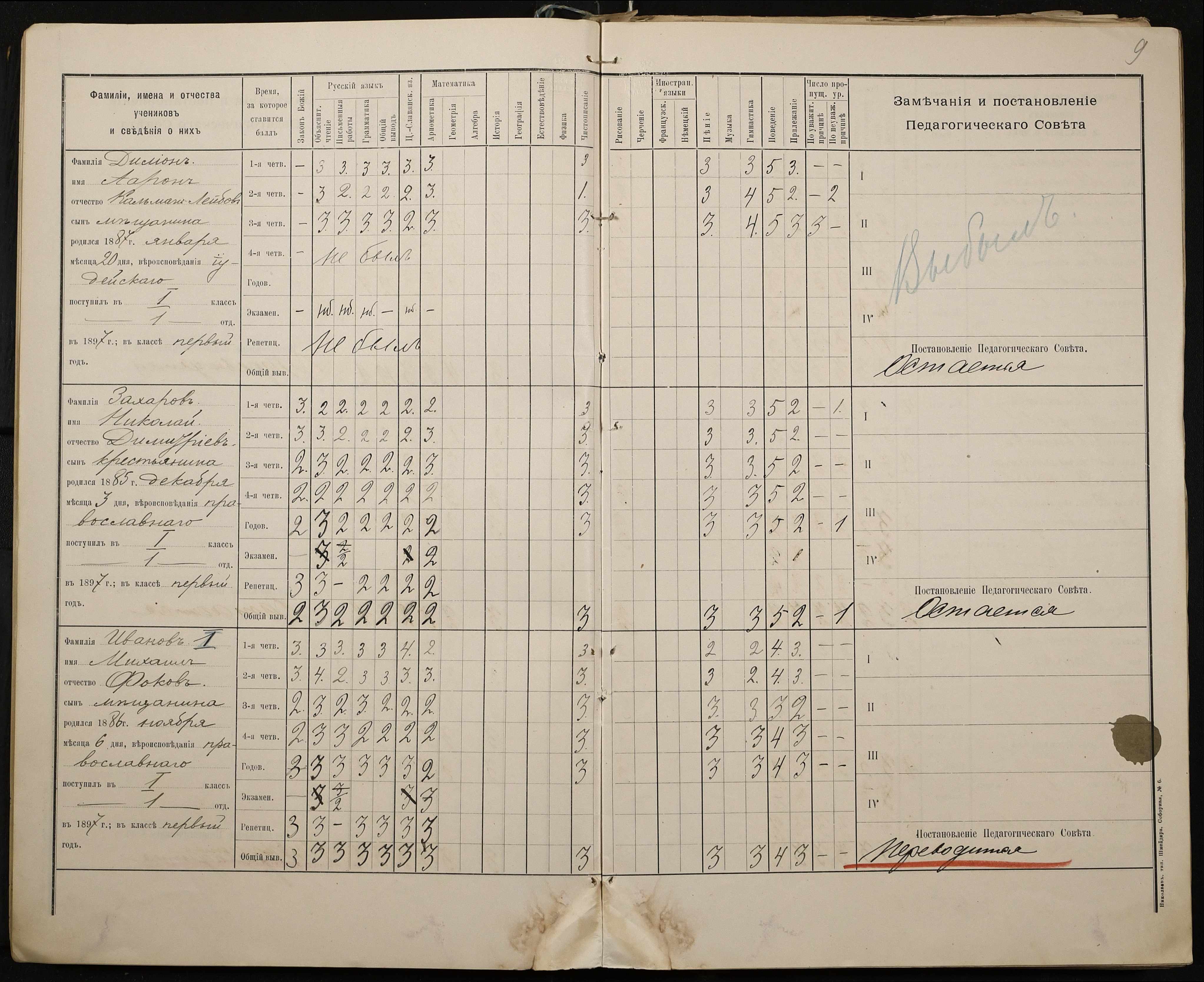 • • • • Справа № 330 “Відомості успішності і поведінки першого класу за 1897-1898 навчальний рік”
