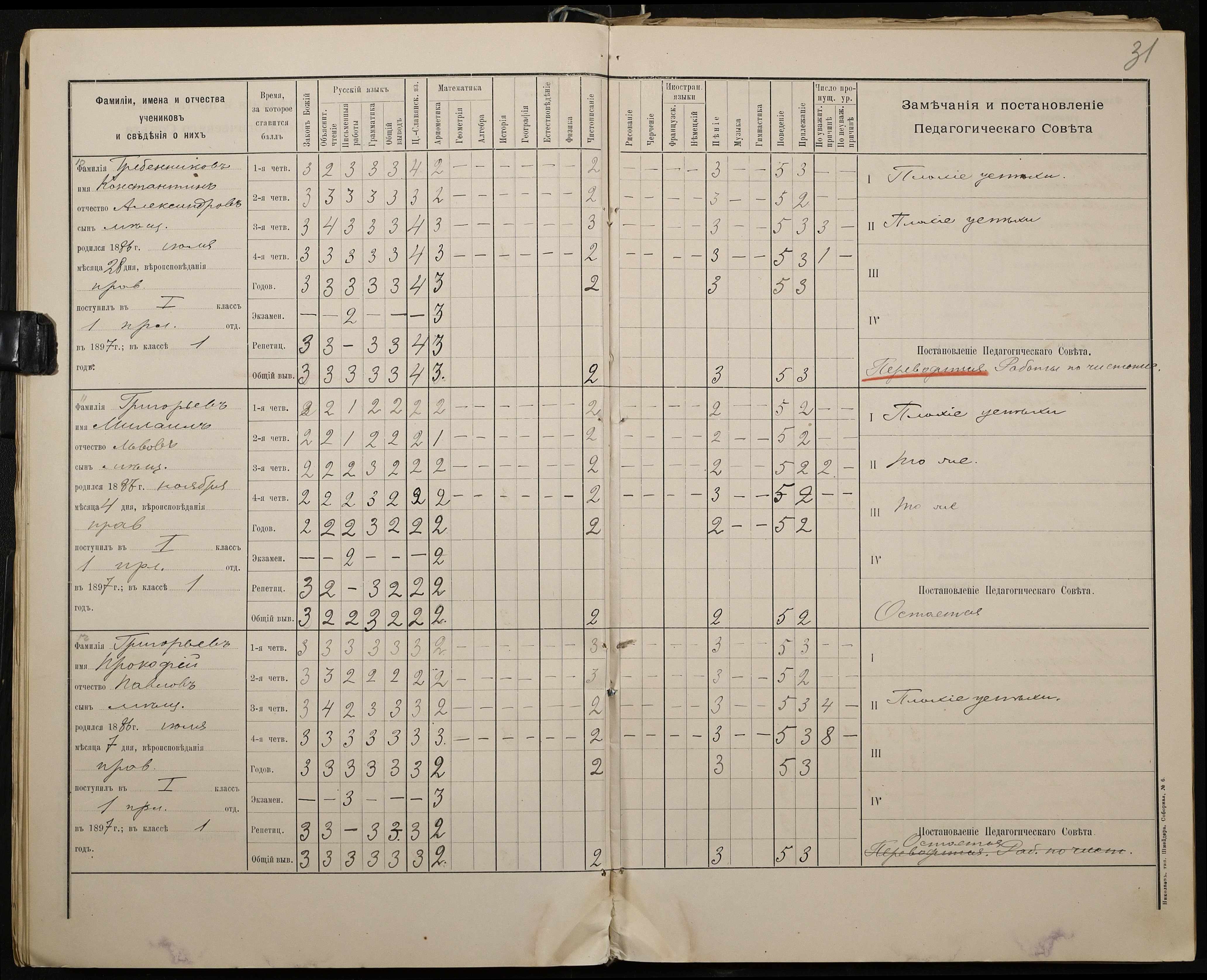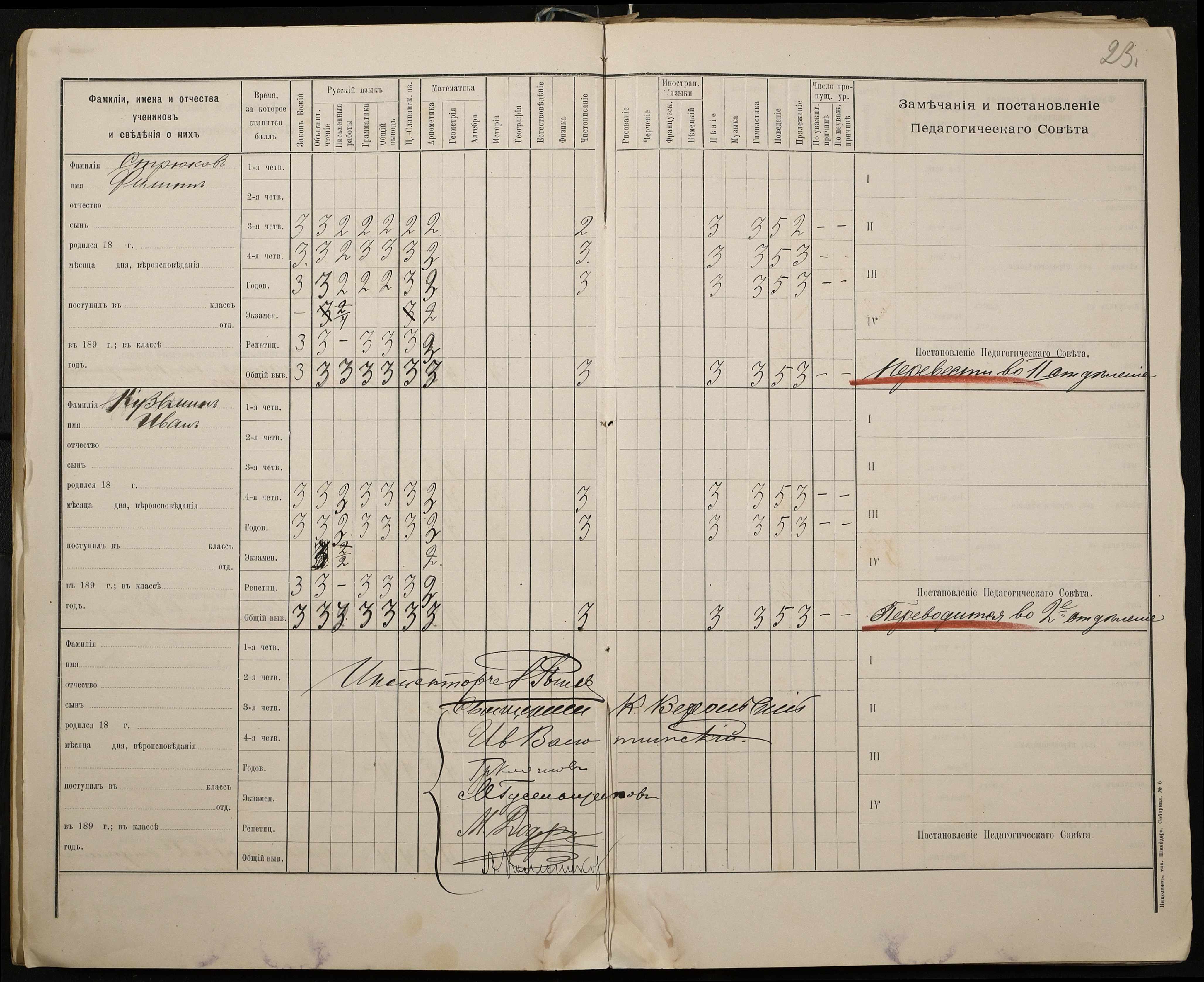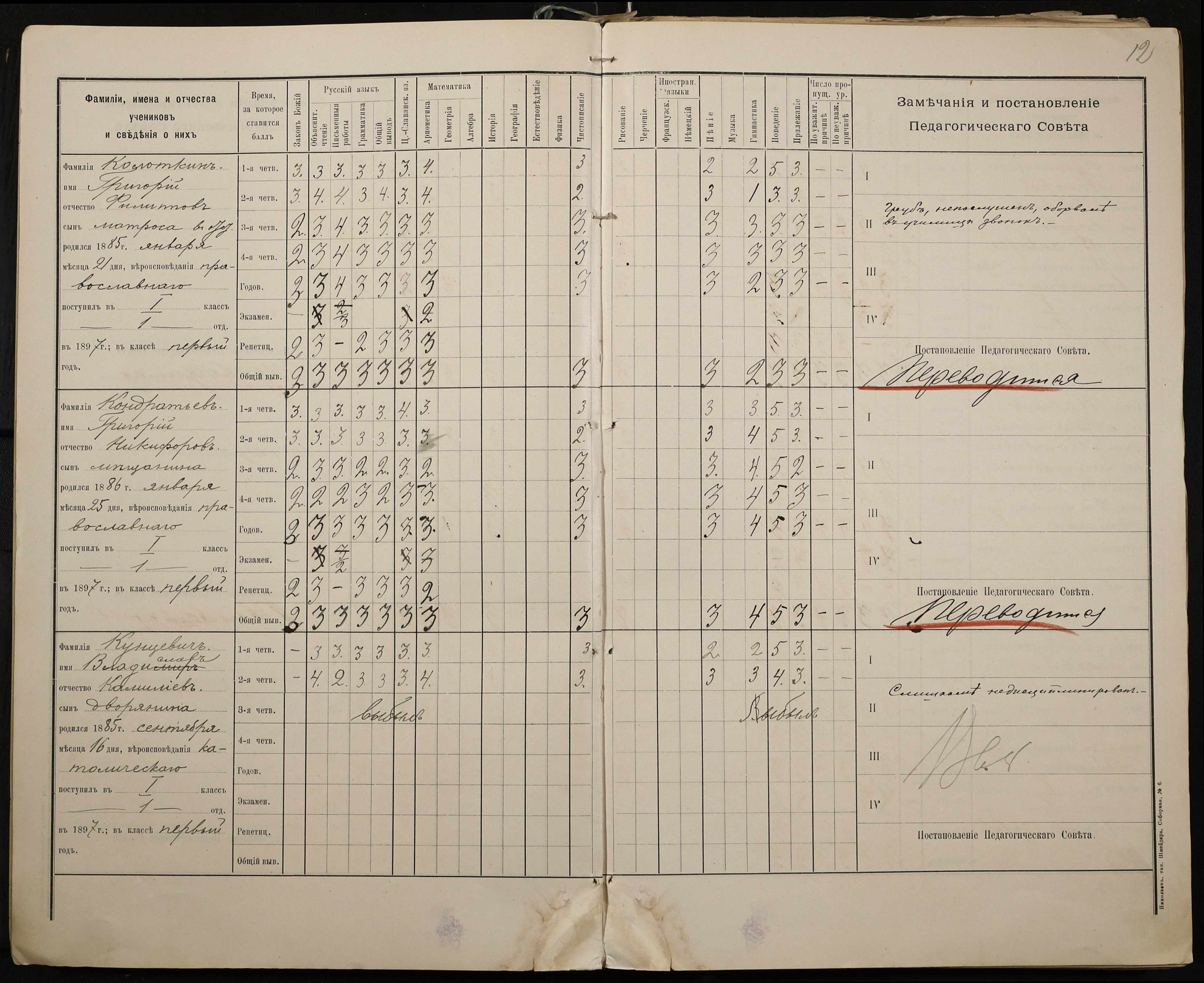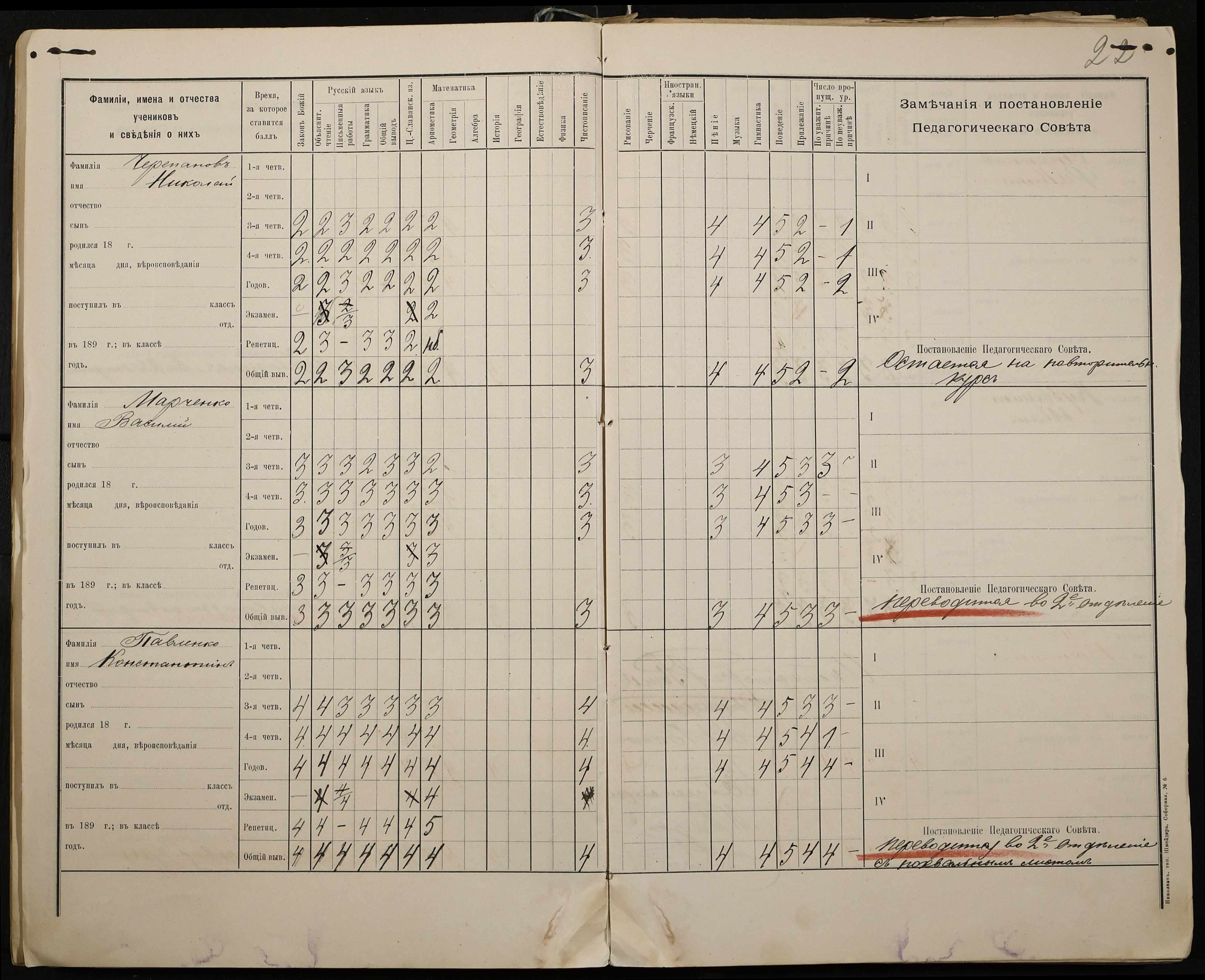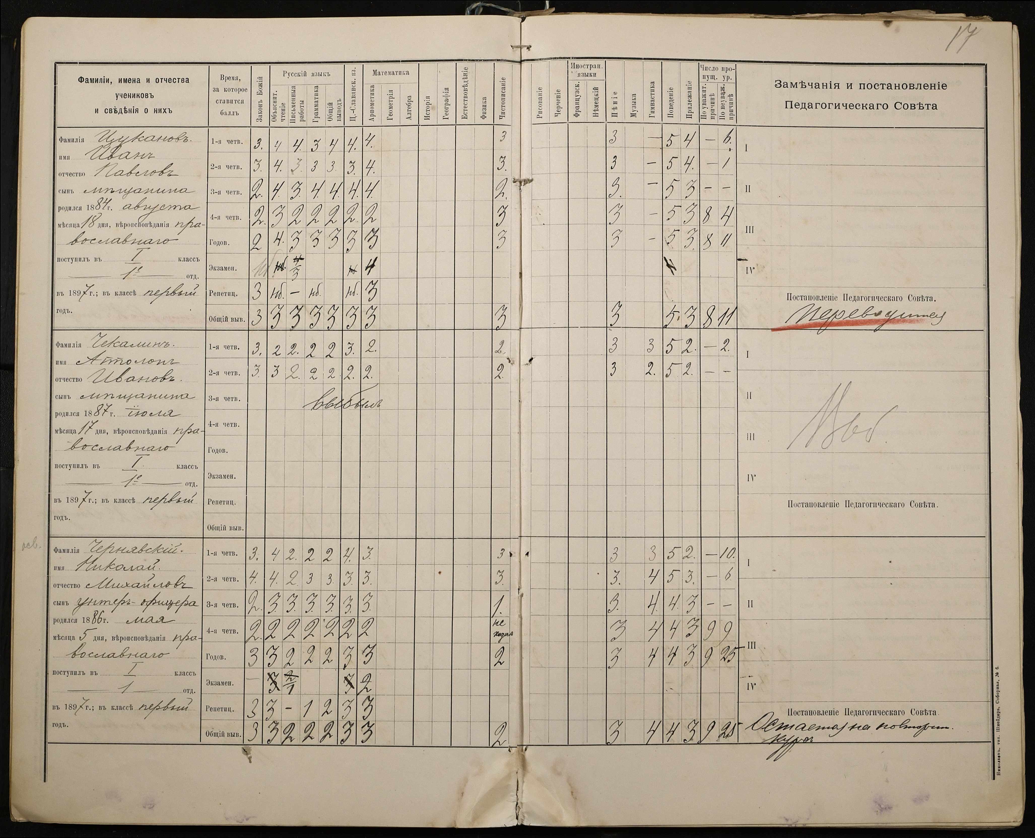 • • • • Справа № 330 “Відомості успішності і поведінки першого класу за 1897-1898 навчальний рік”