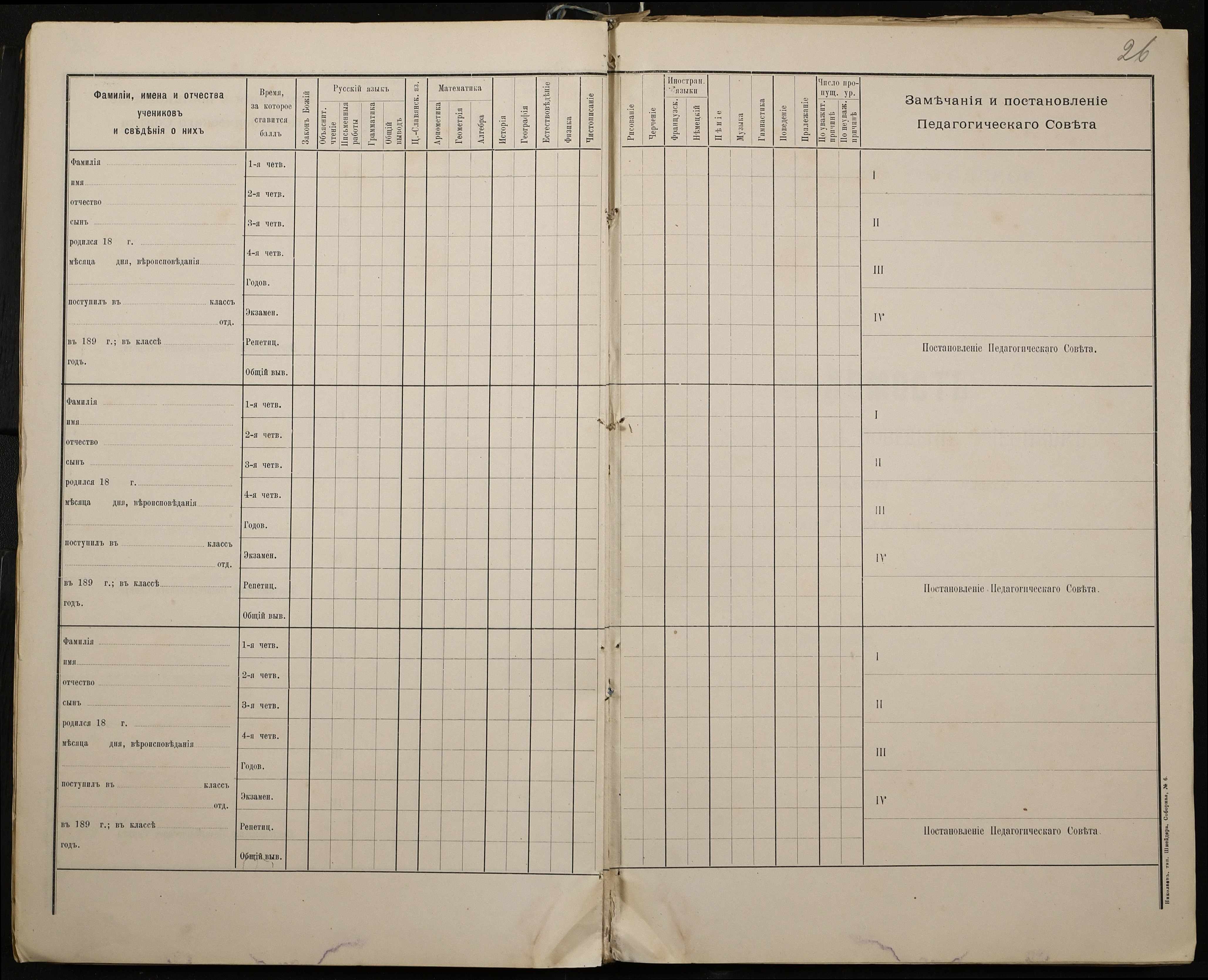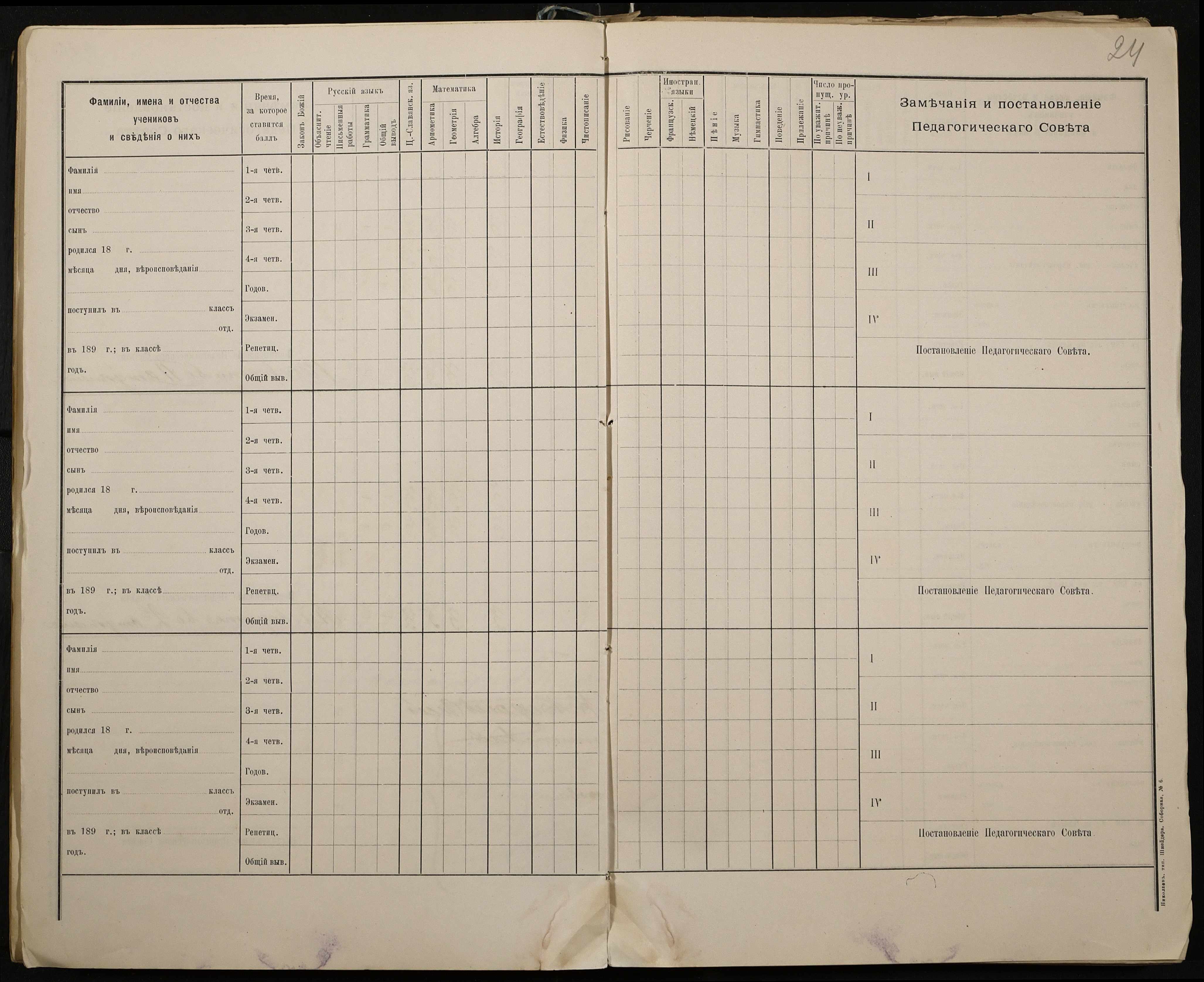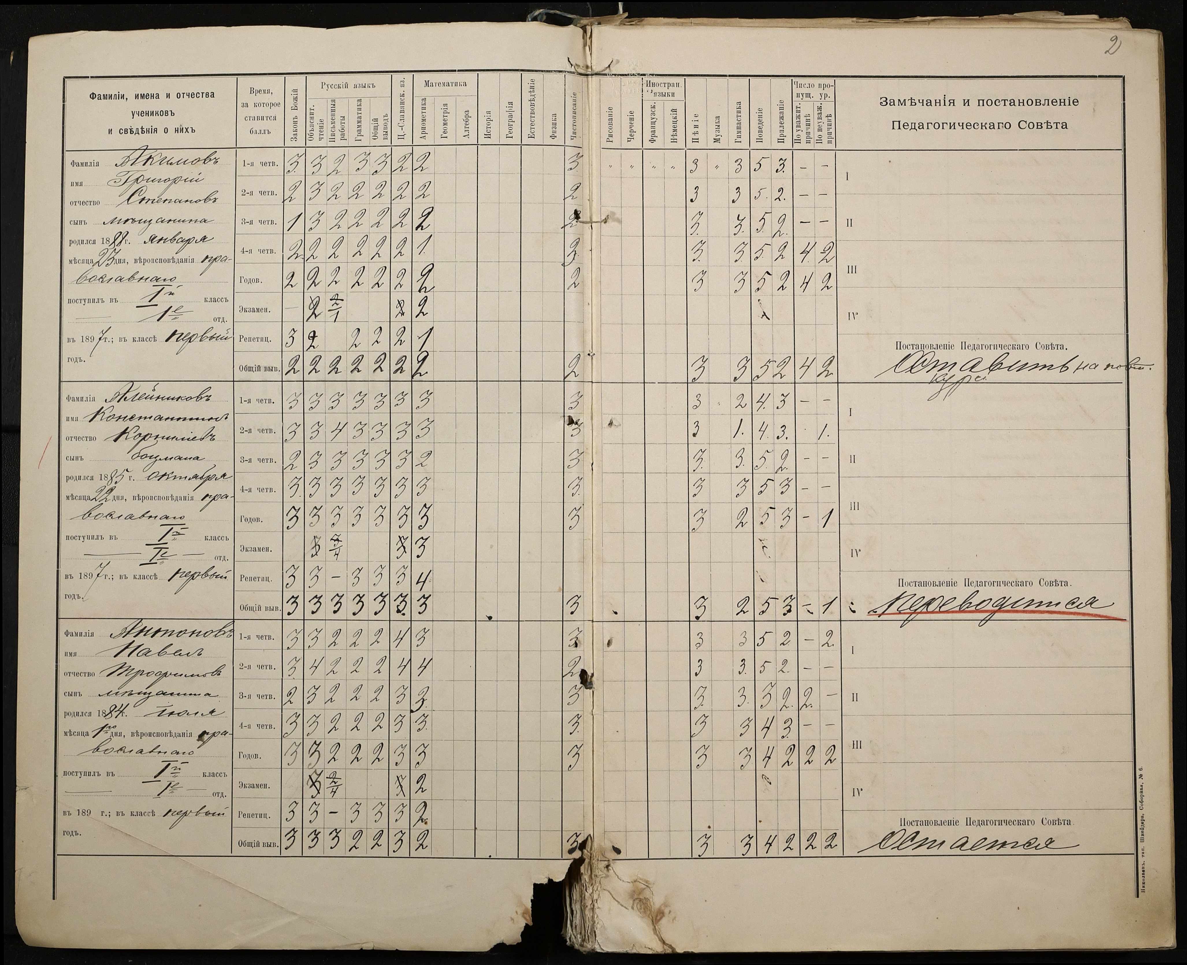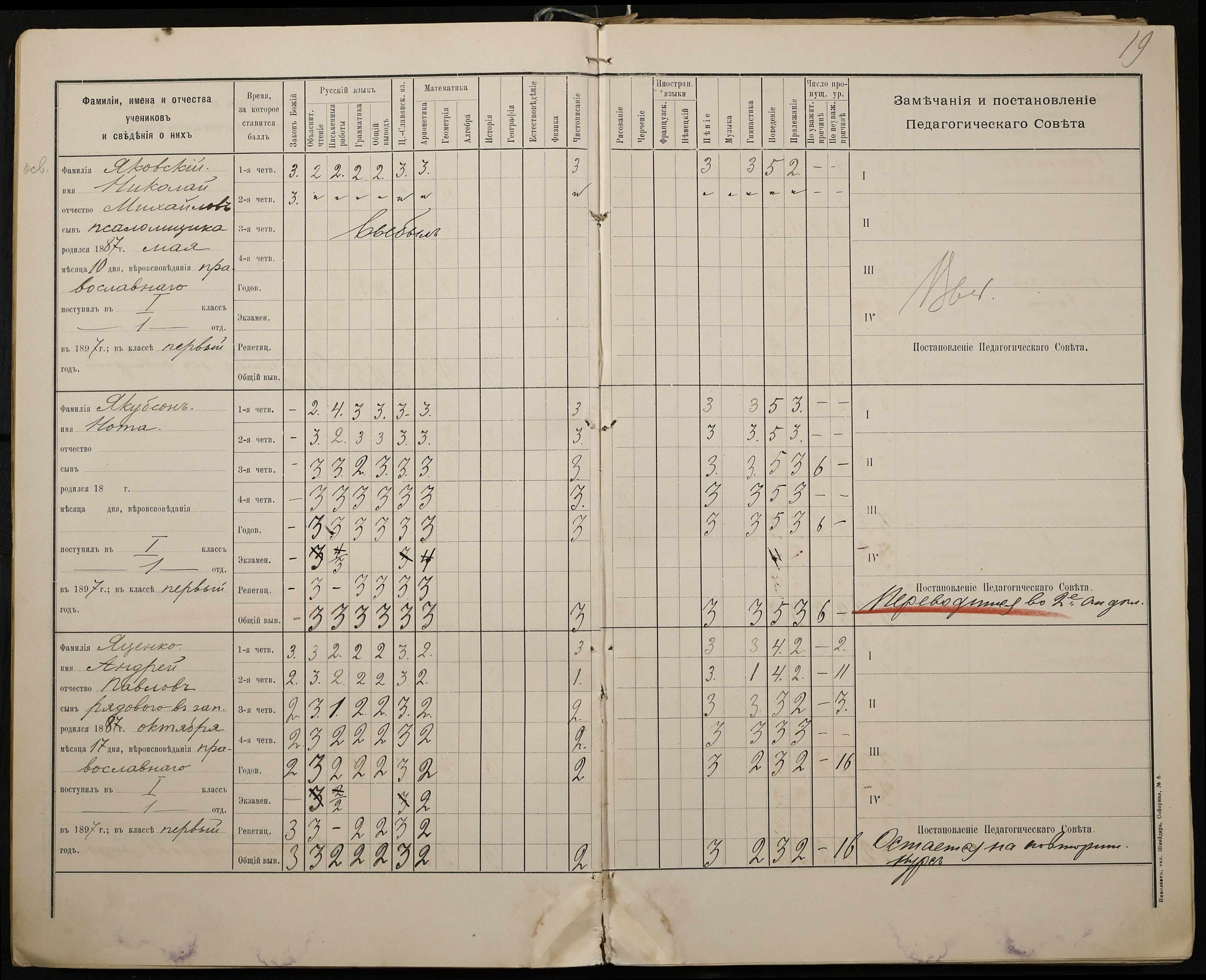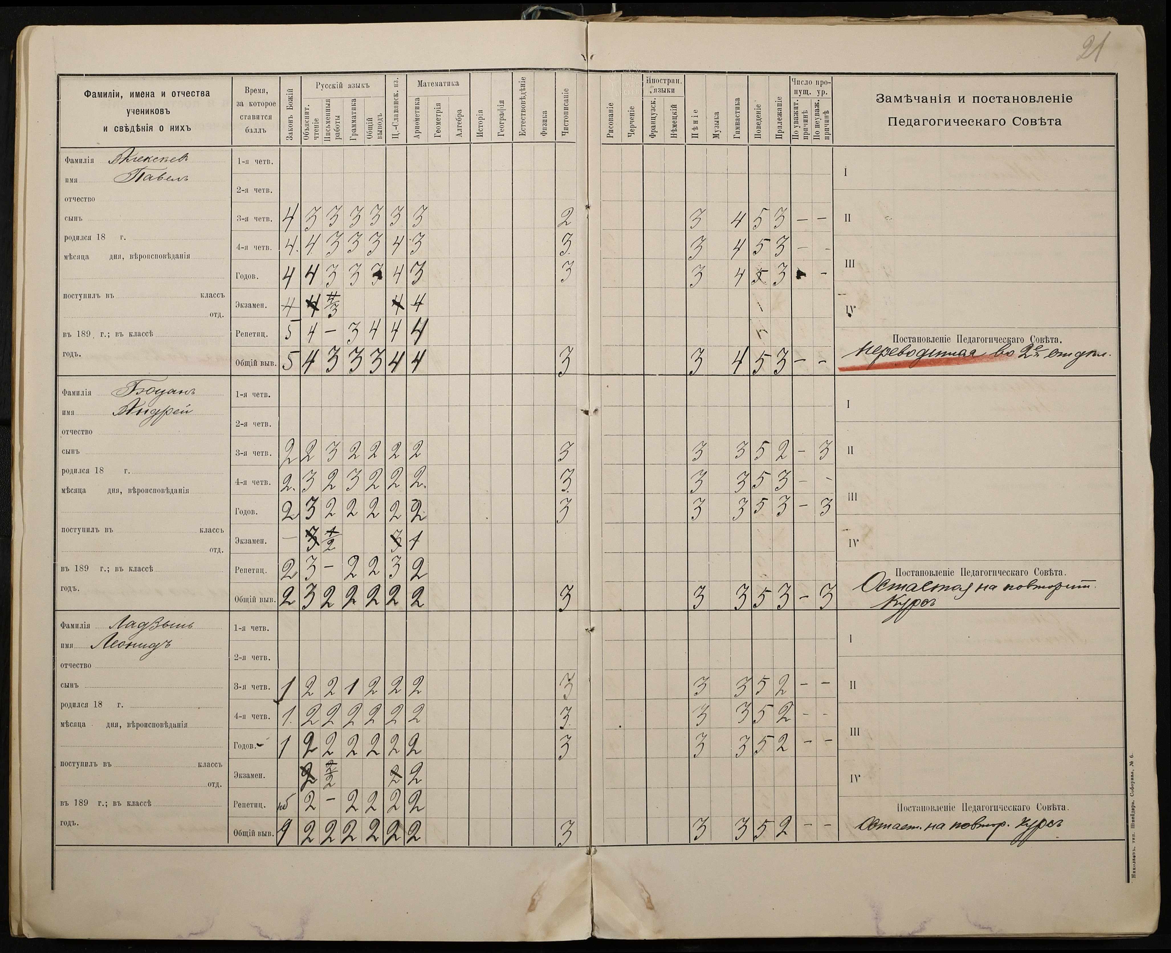 • • • • Справа № 330 “Відомості успішності і поведінки першого класу за 1897-1898 навчальний рік”