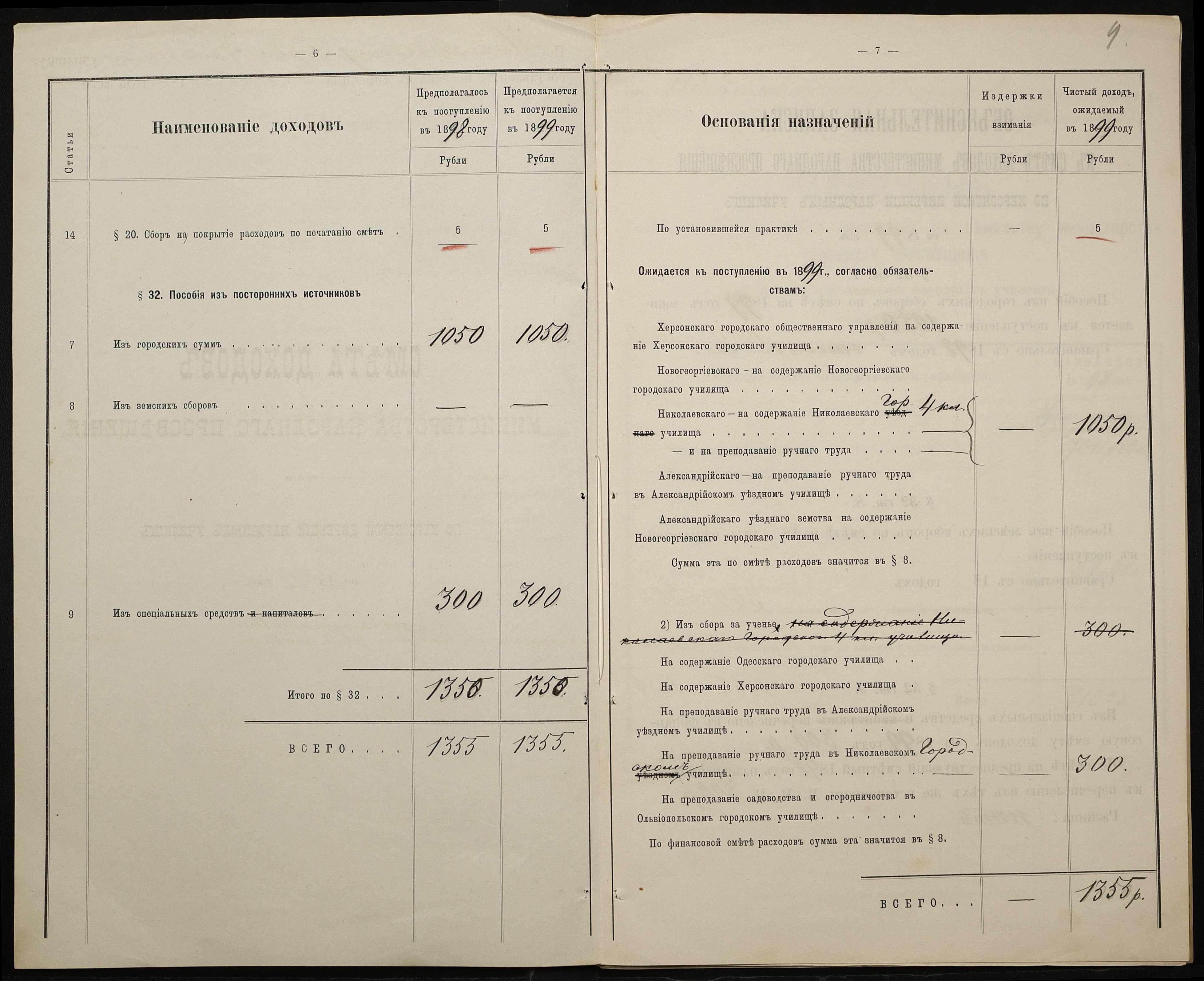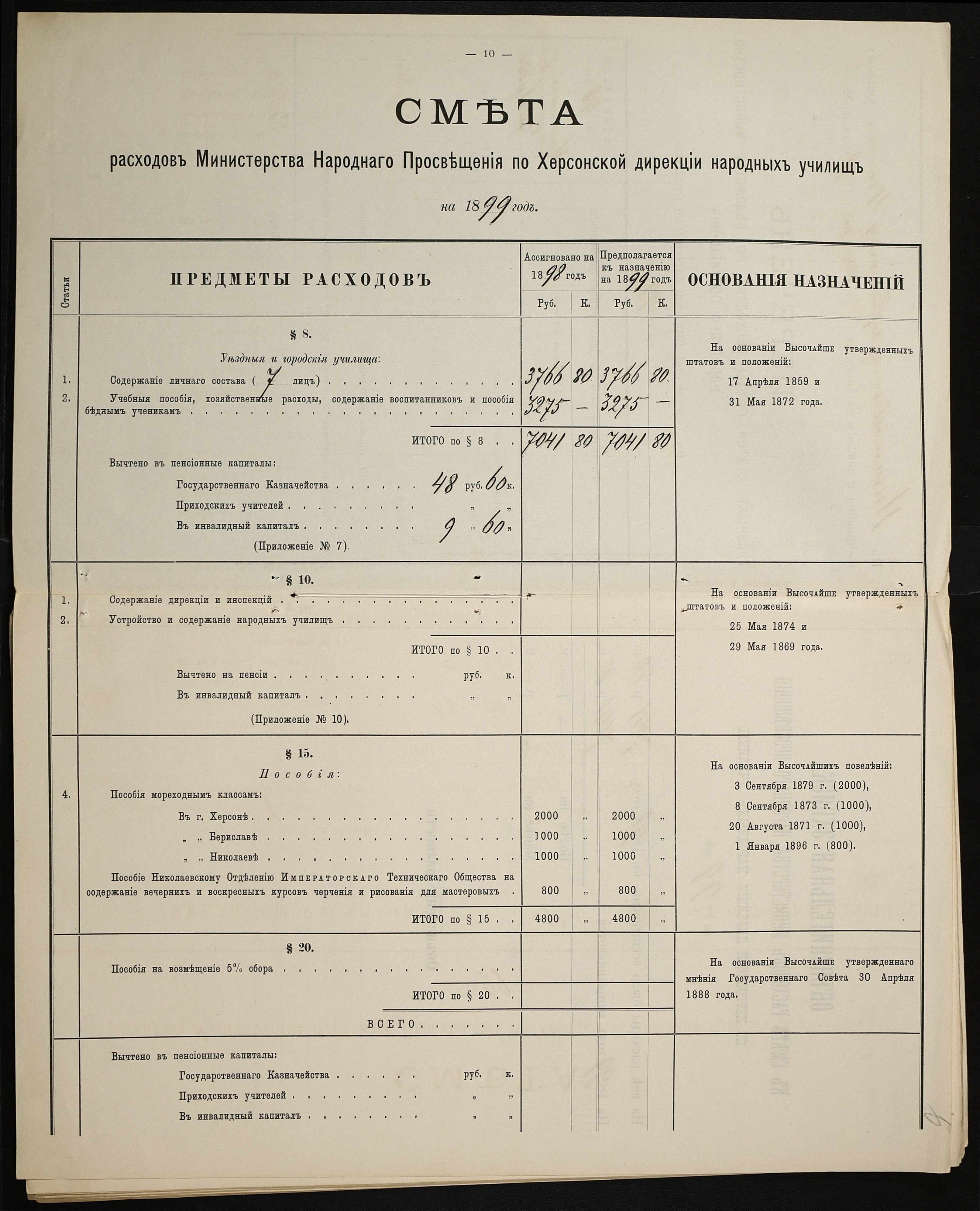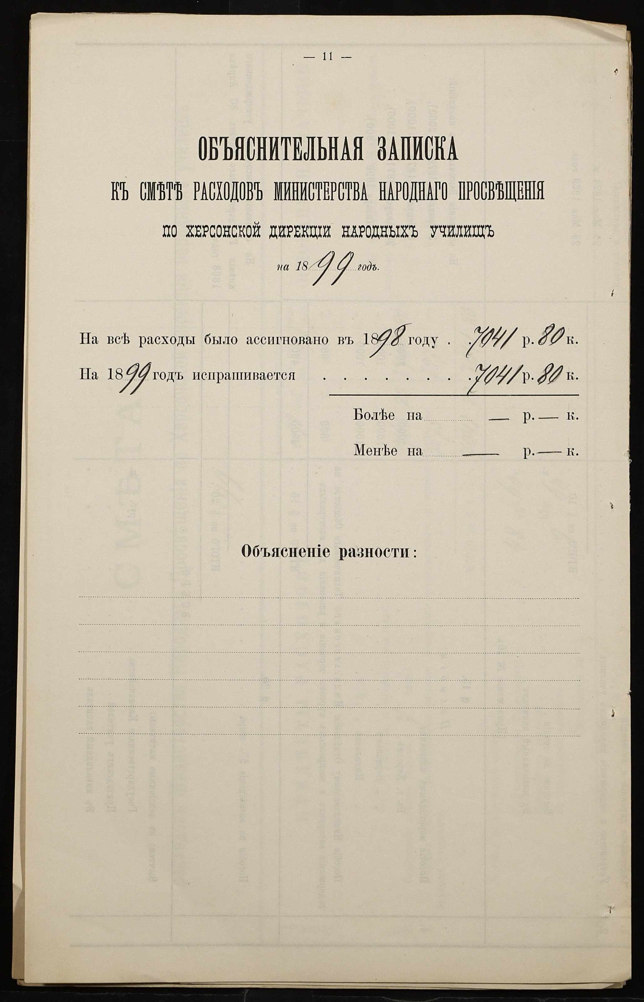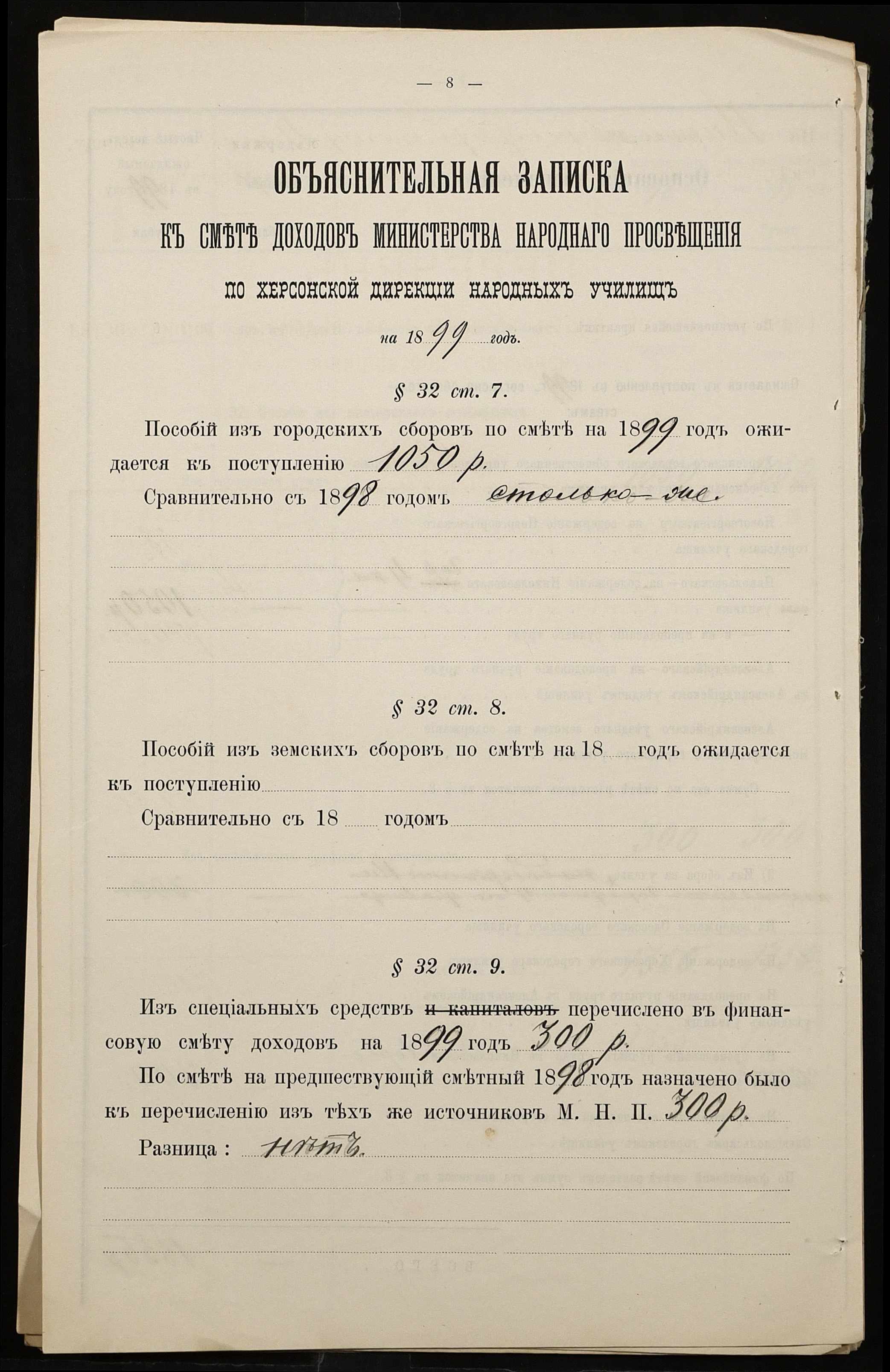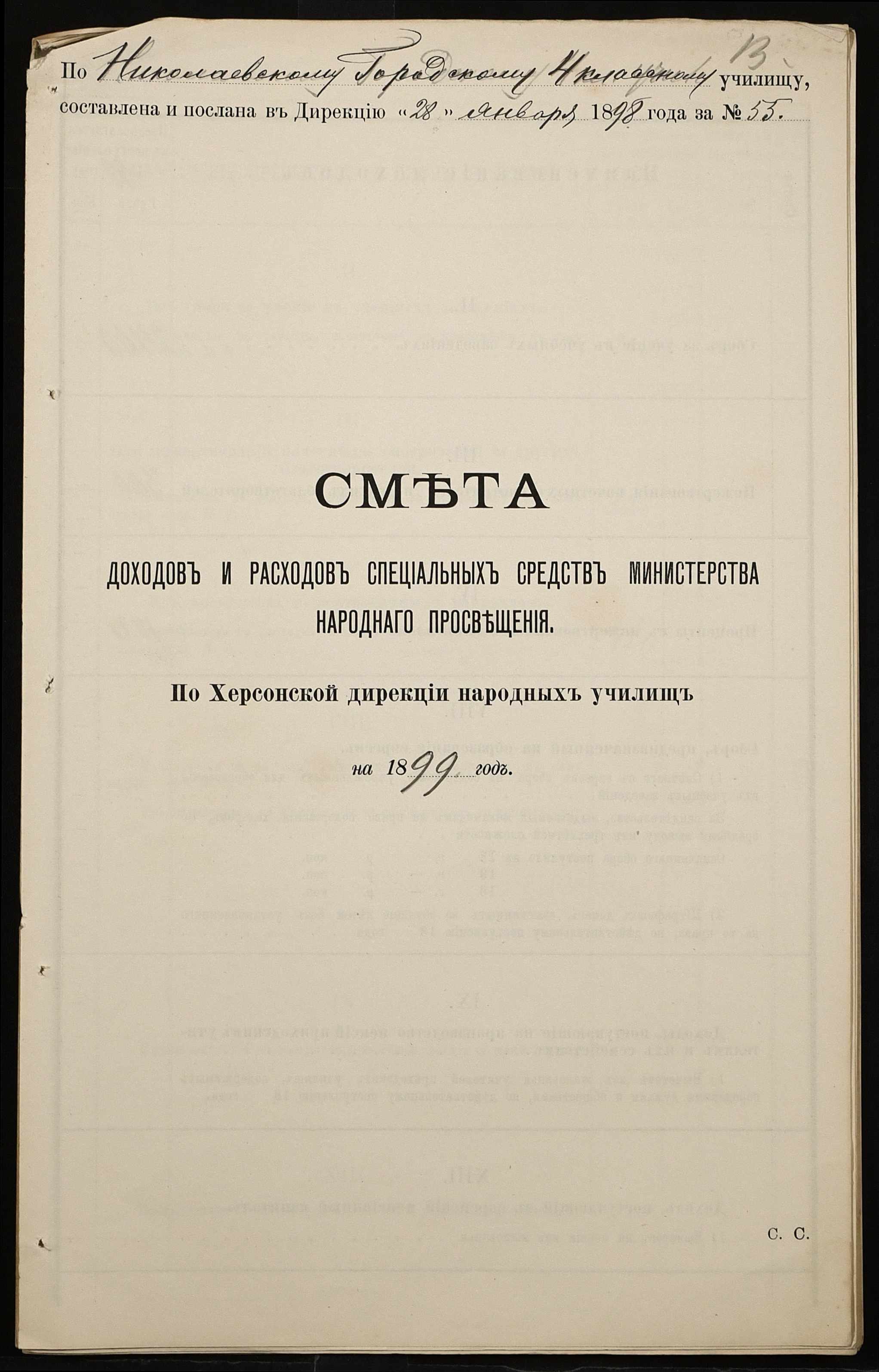 • • • • Справа № 331 “Кошторис прибутків і видатків коштів училища за 1899 рік”