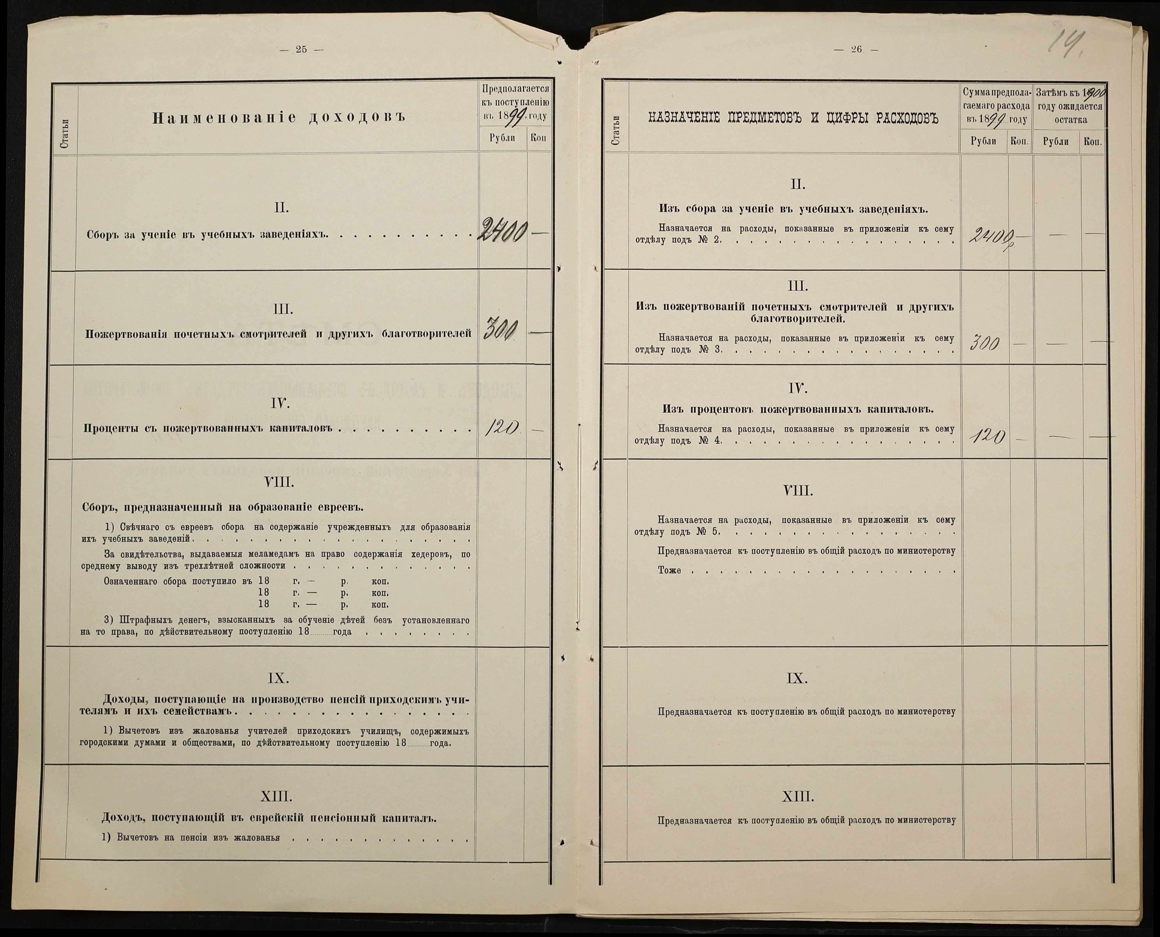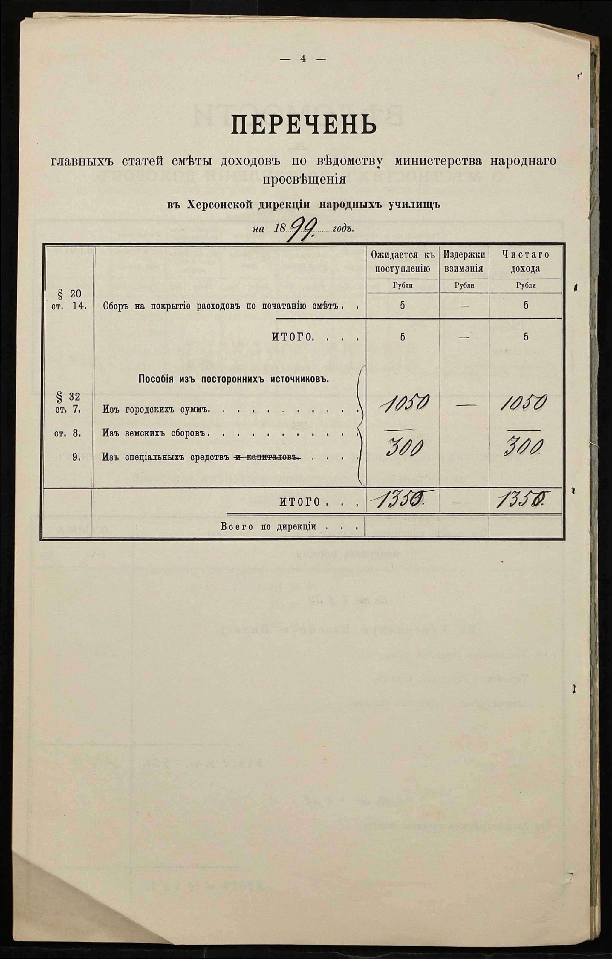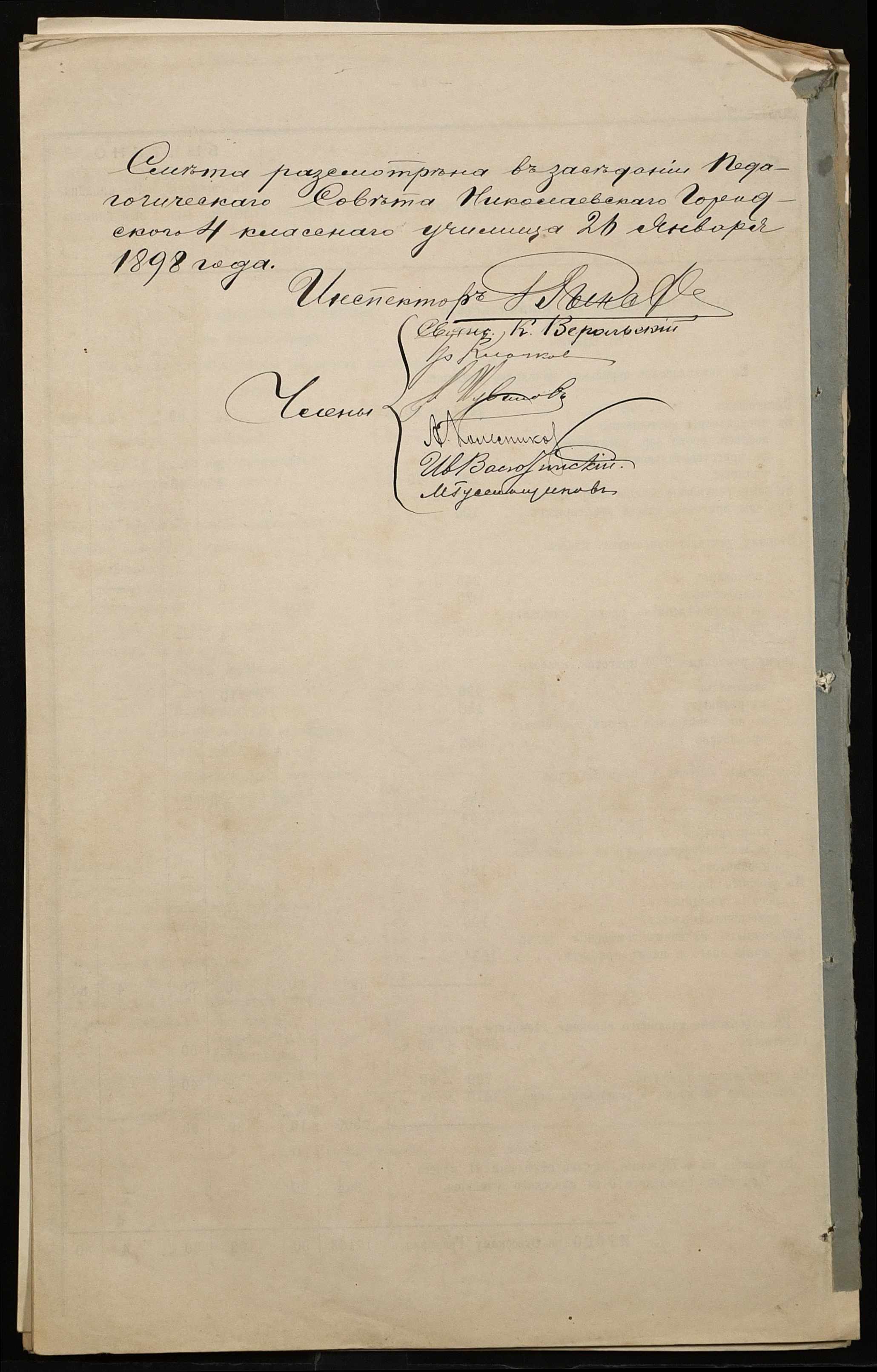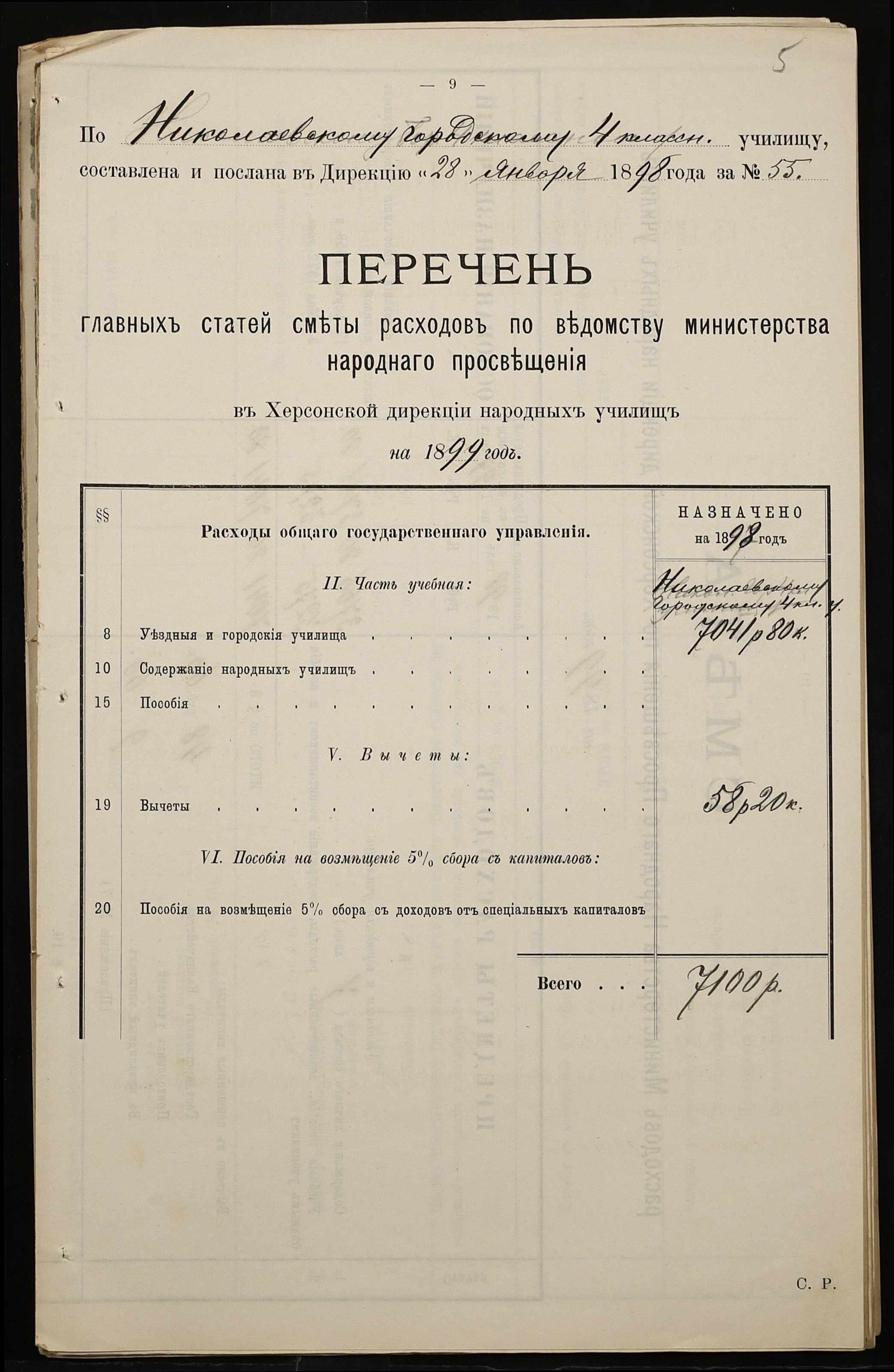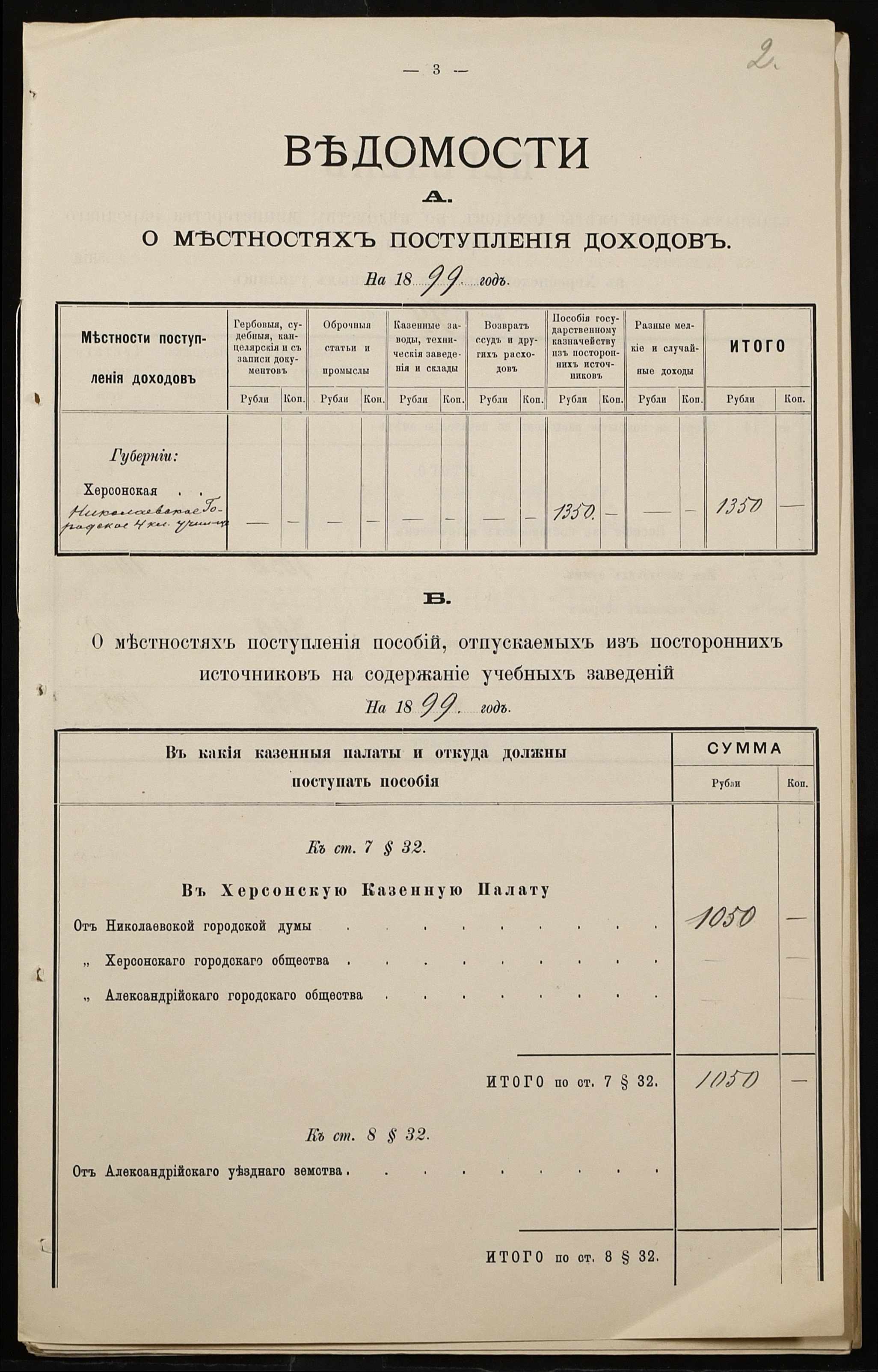 • • • • Справа № 331 “Кошторис прибутків і видатків коштів училища за 1899 рік”