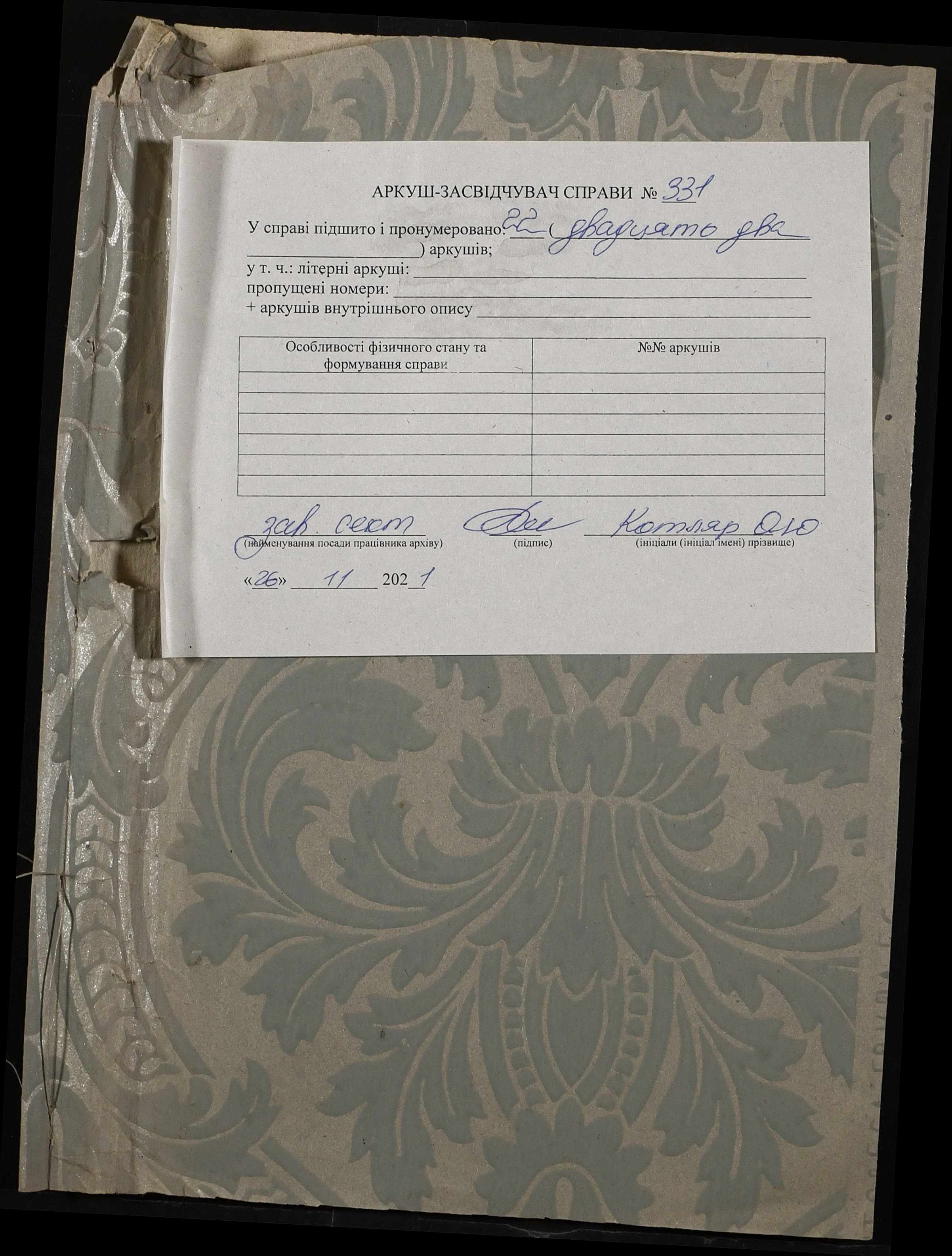 ◦ ◦ ◦ Опис № 1 справ постійного зберігання за 1847-1852, 1858, 1868-1869, 1871-1919, 1922 роки