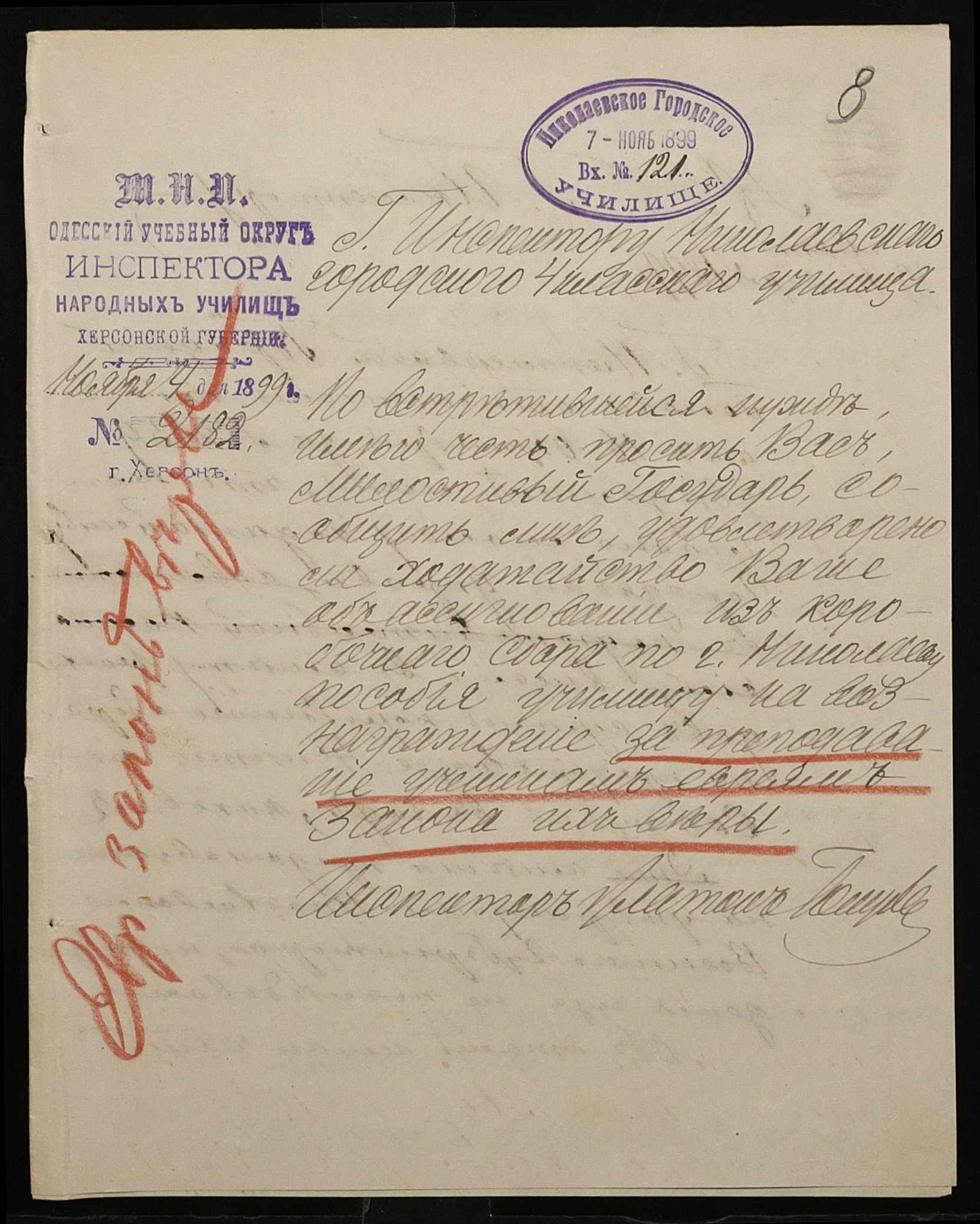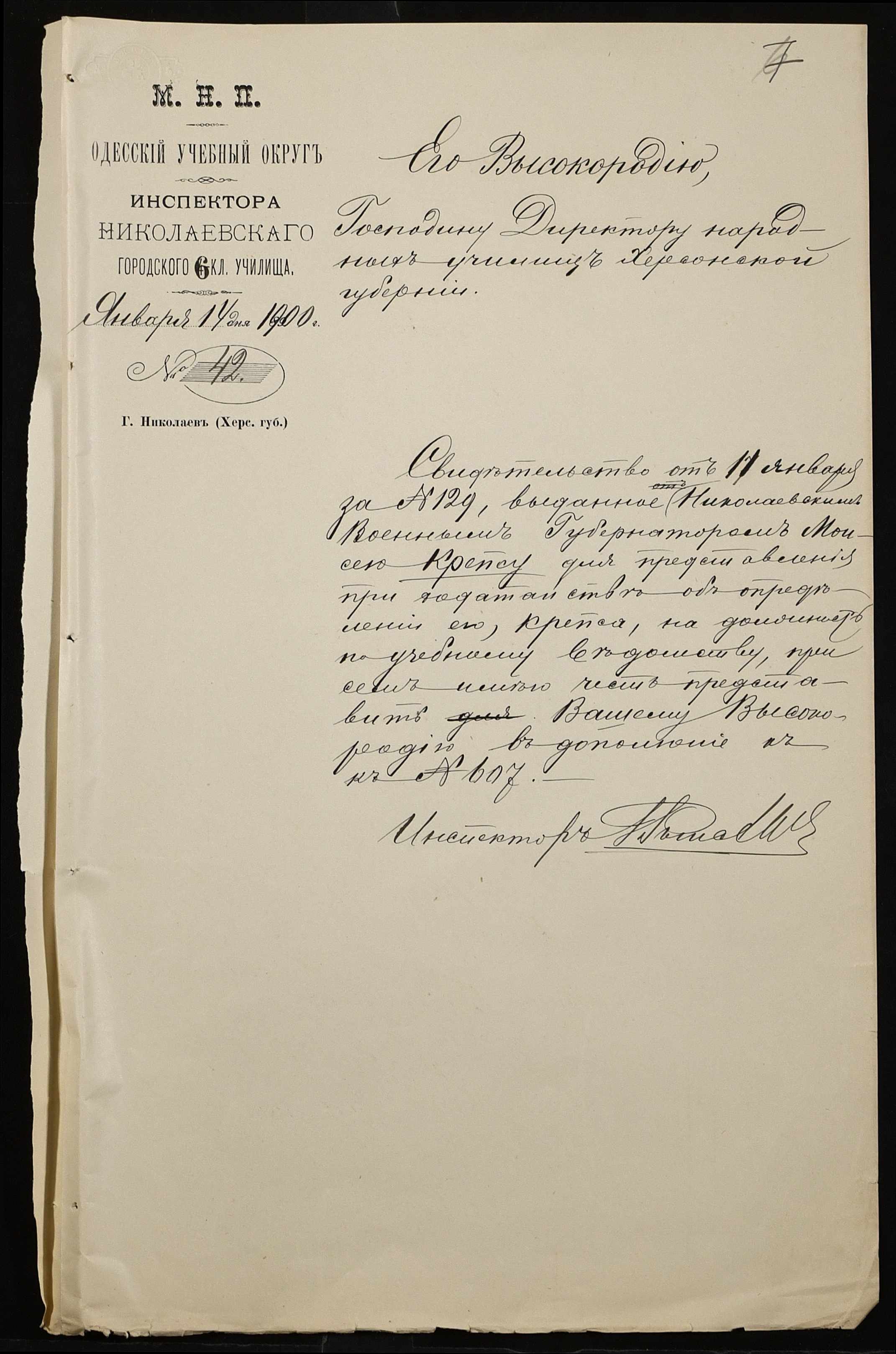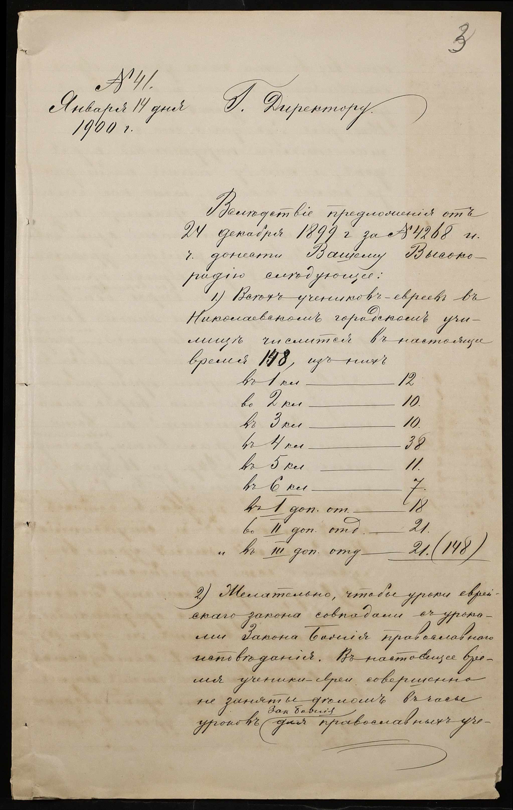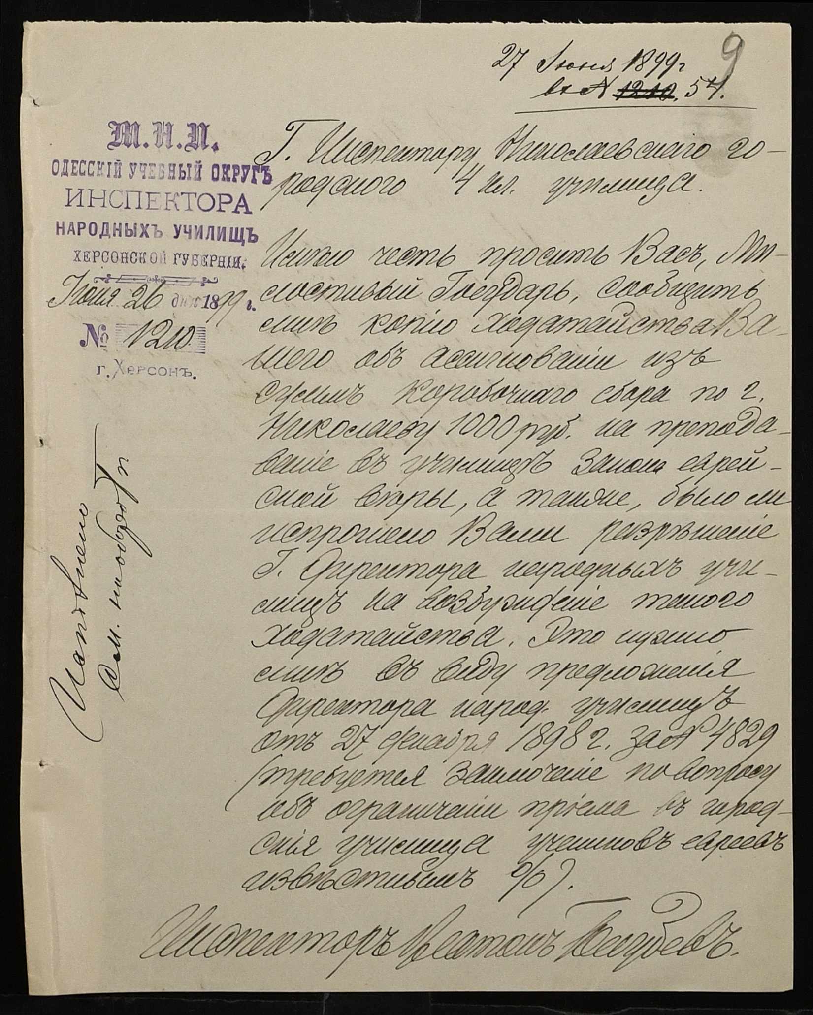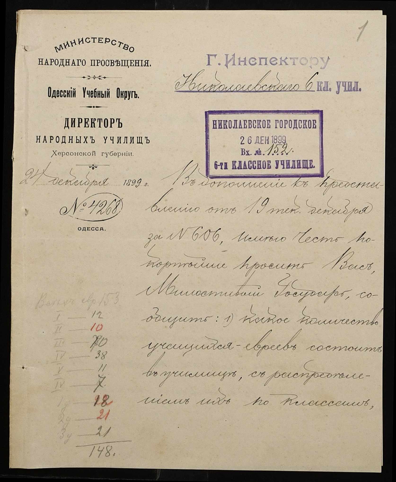 • • • • Справа № 333 “Листування з директором народних училищ Херсонської губернії про кількість євреїв, які навчаються в училищі, про введення викладання в училищі Закону єврейської віри”