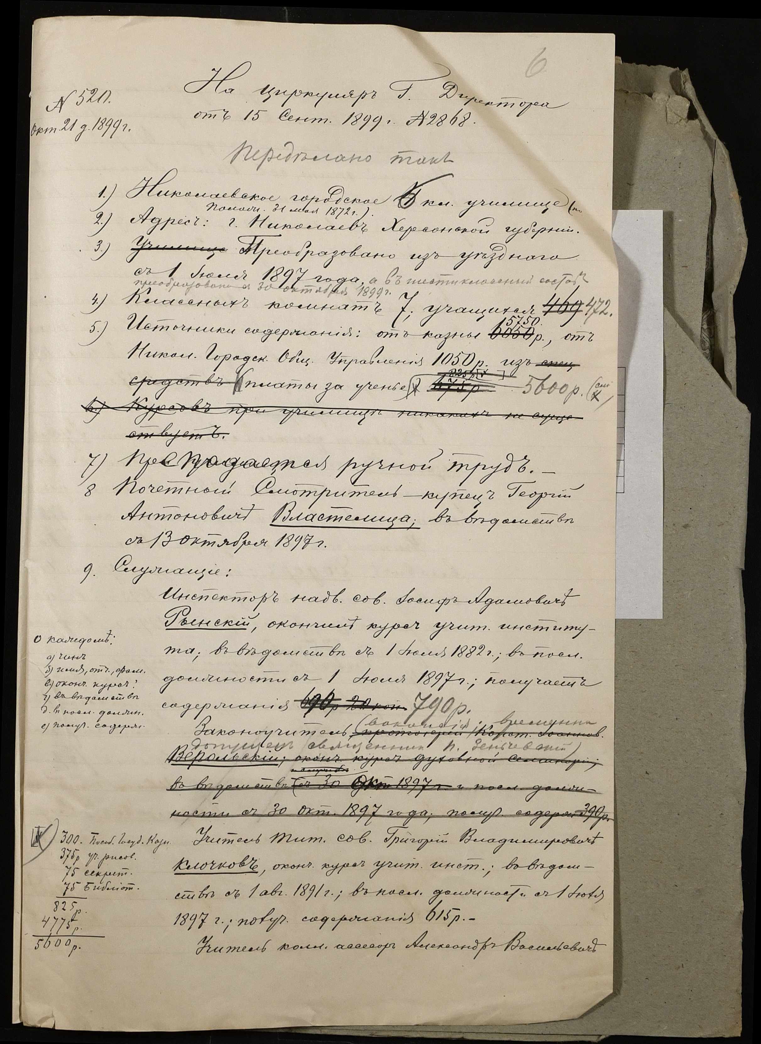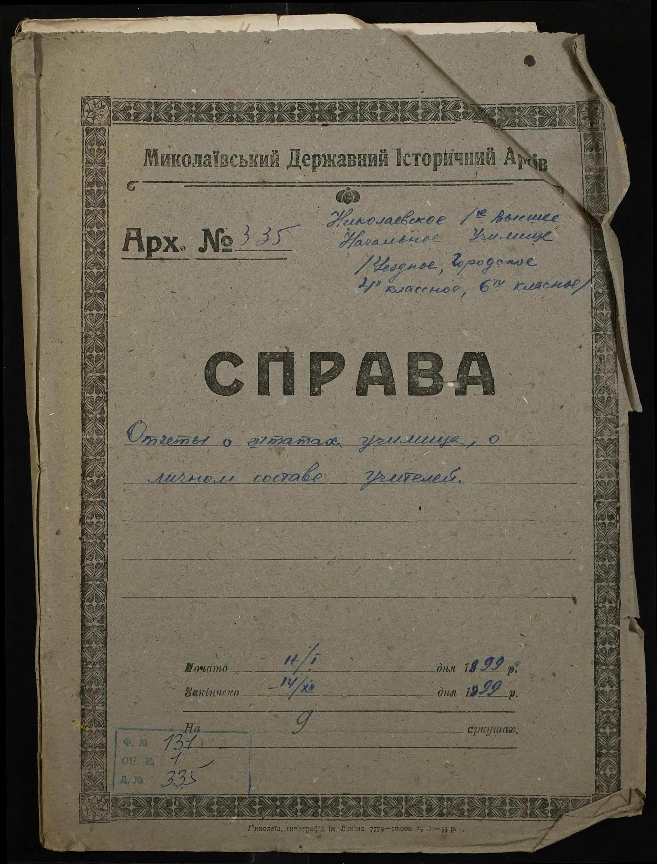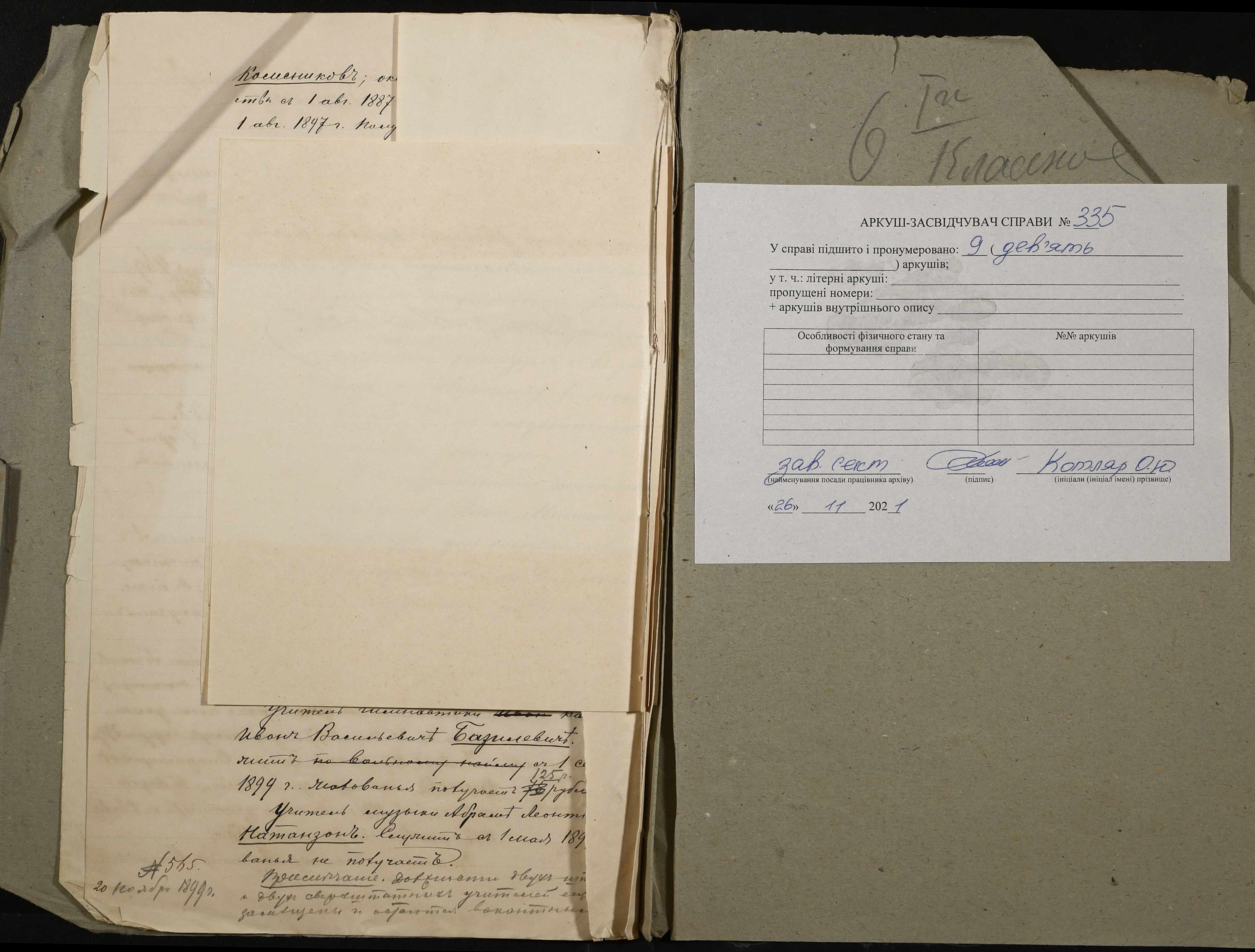 • • • • Справа № 335 “Штатний розклад і статистичні відомості міського 6-класного училища за 1899 рік”