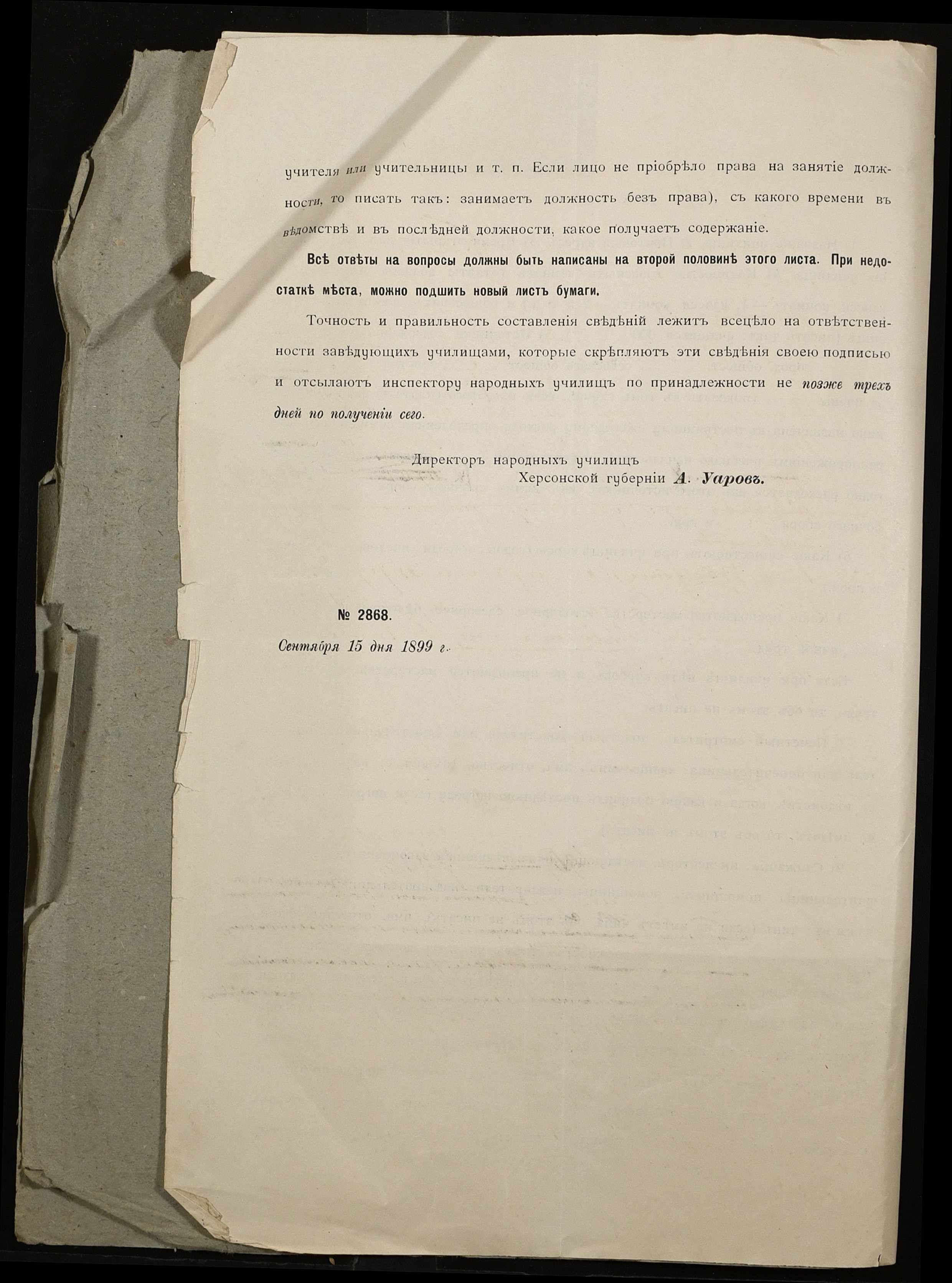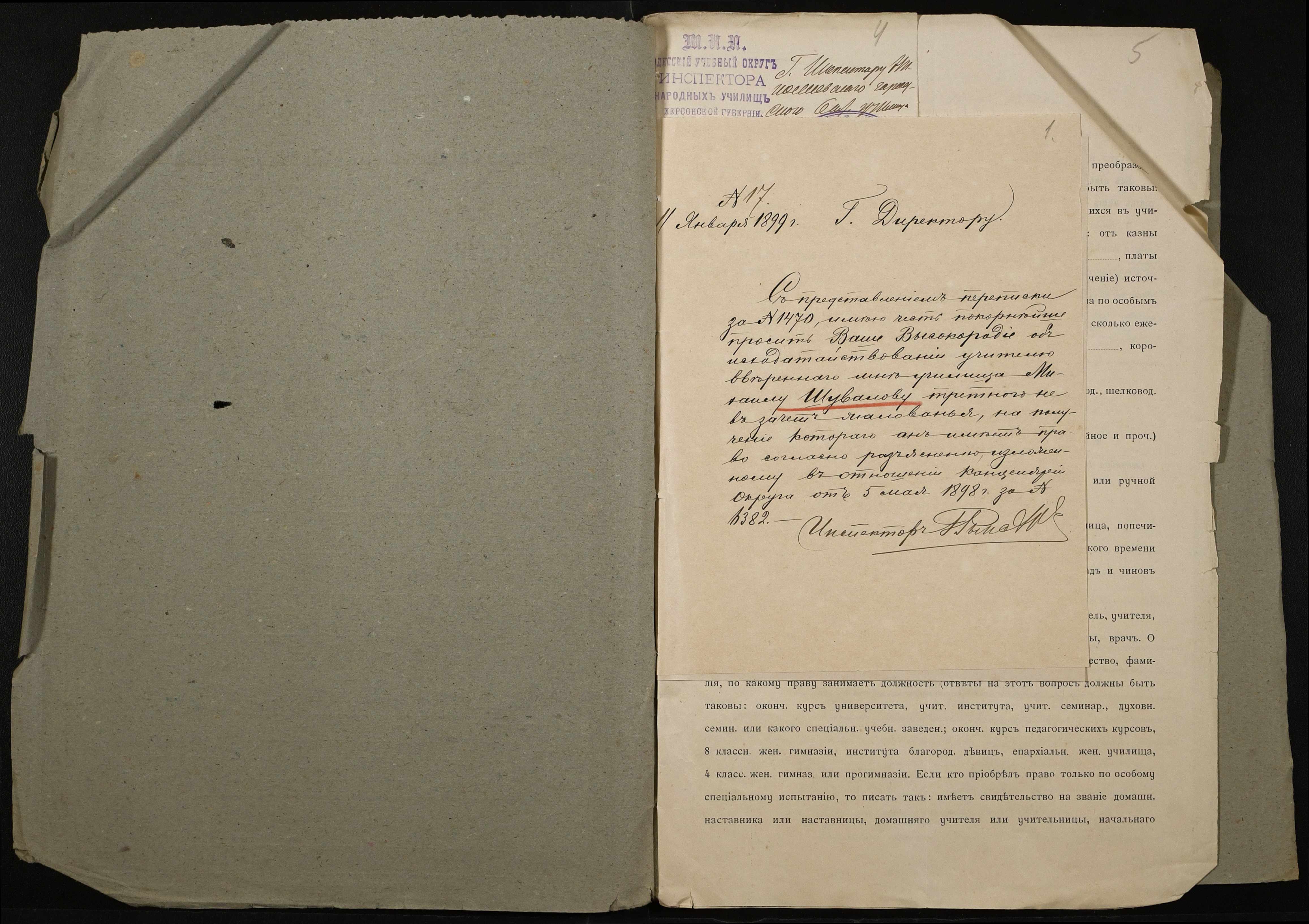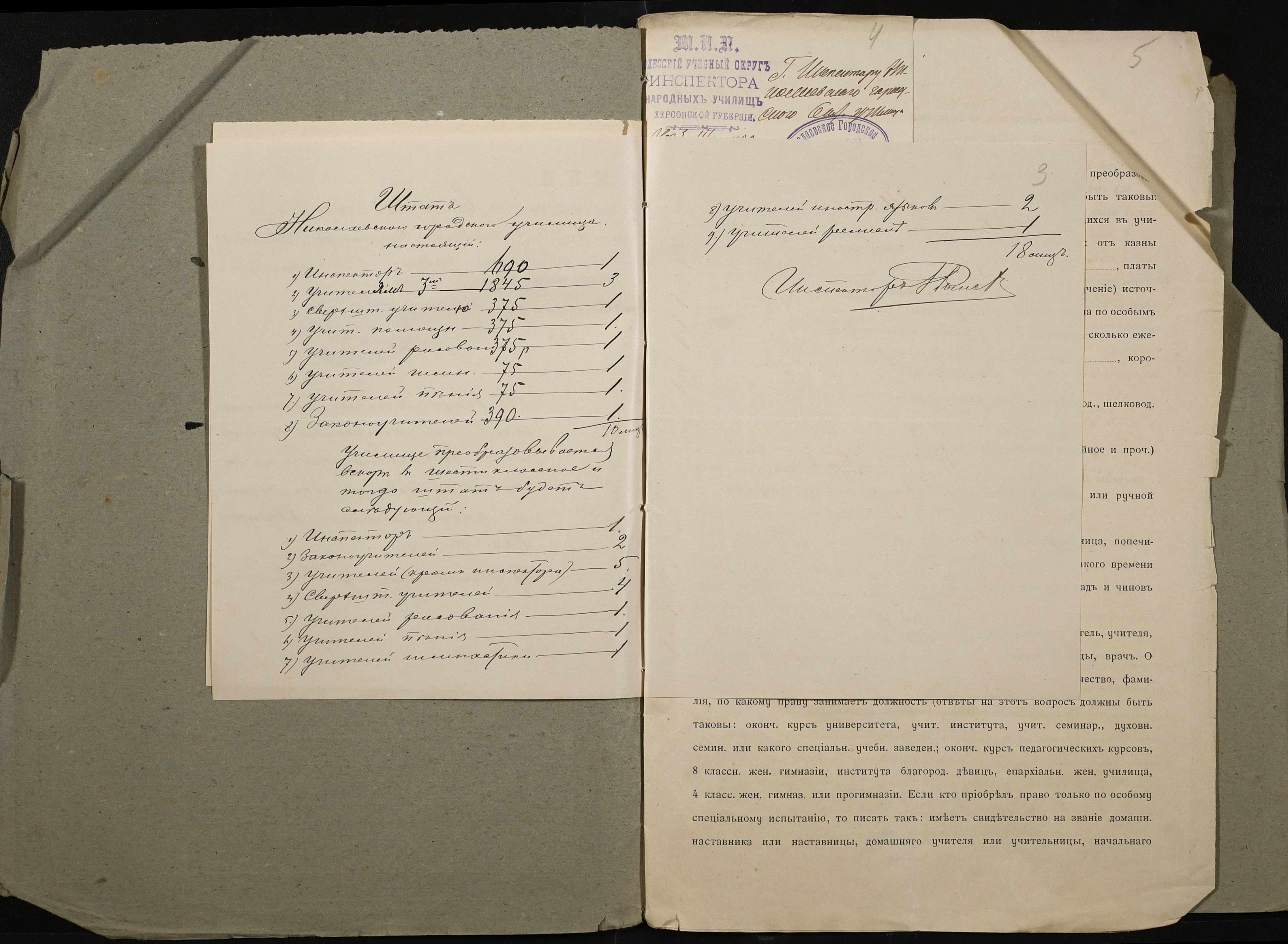 • • • • Справа № 335 “Штатний розклад і статистичні відомості міського 6-класного училища за 1899 рік”