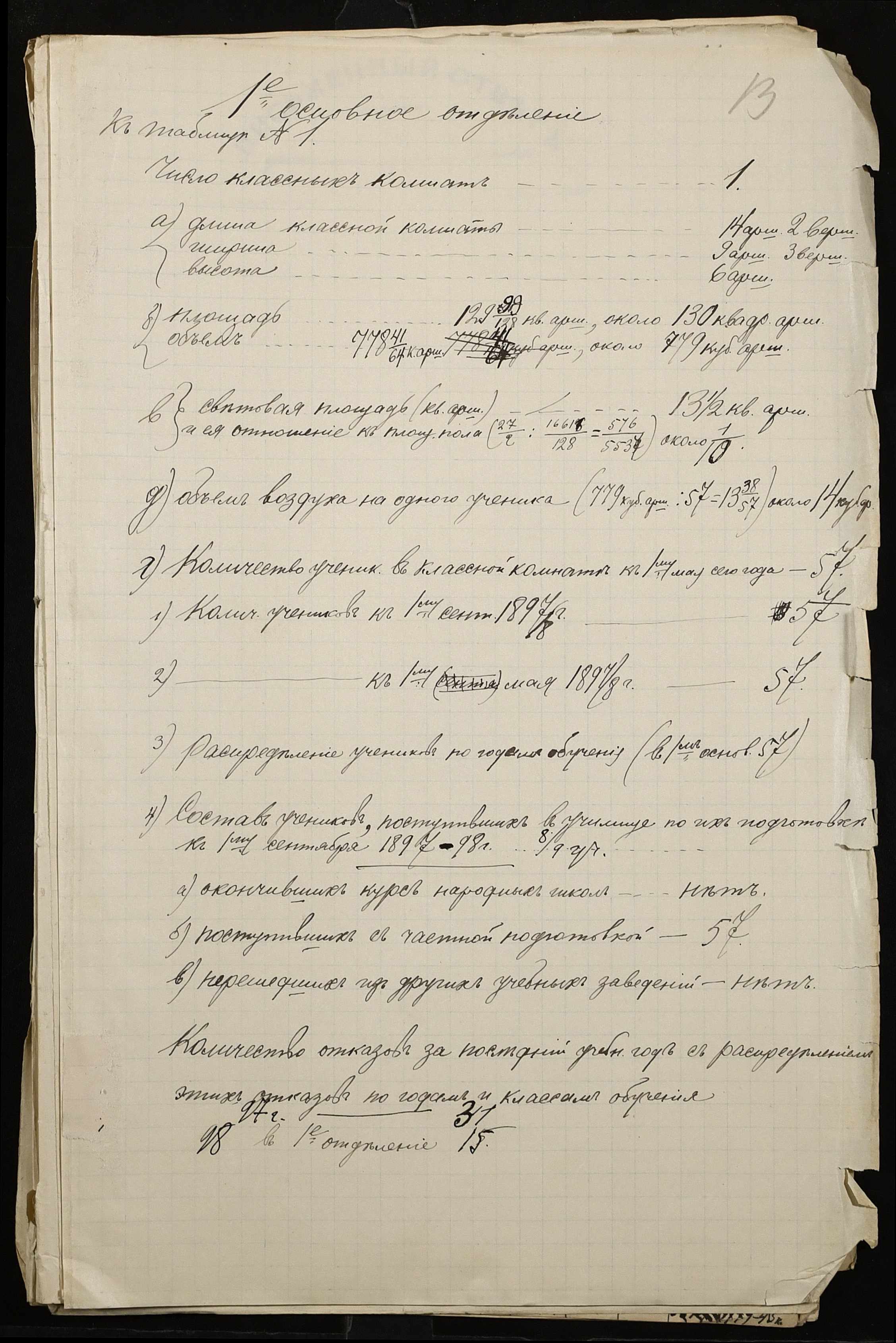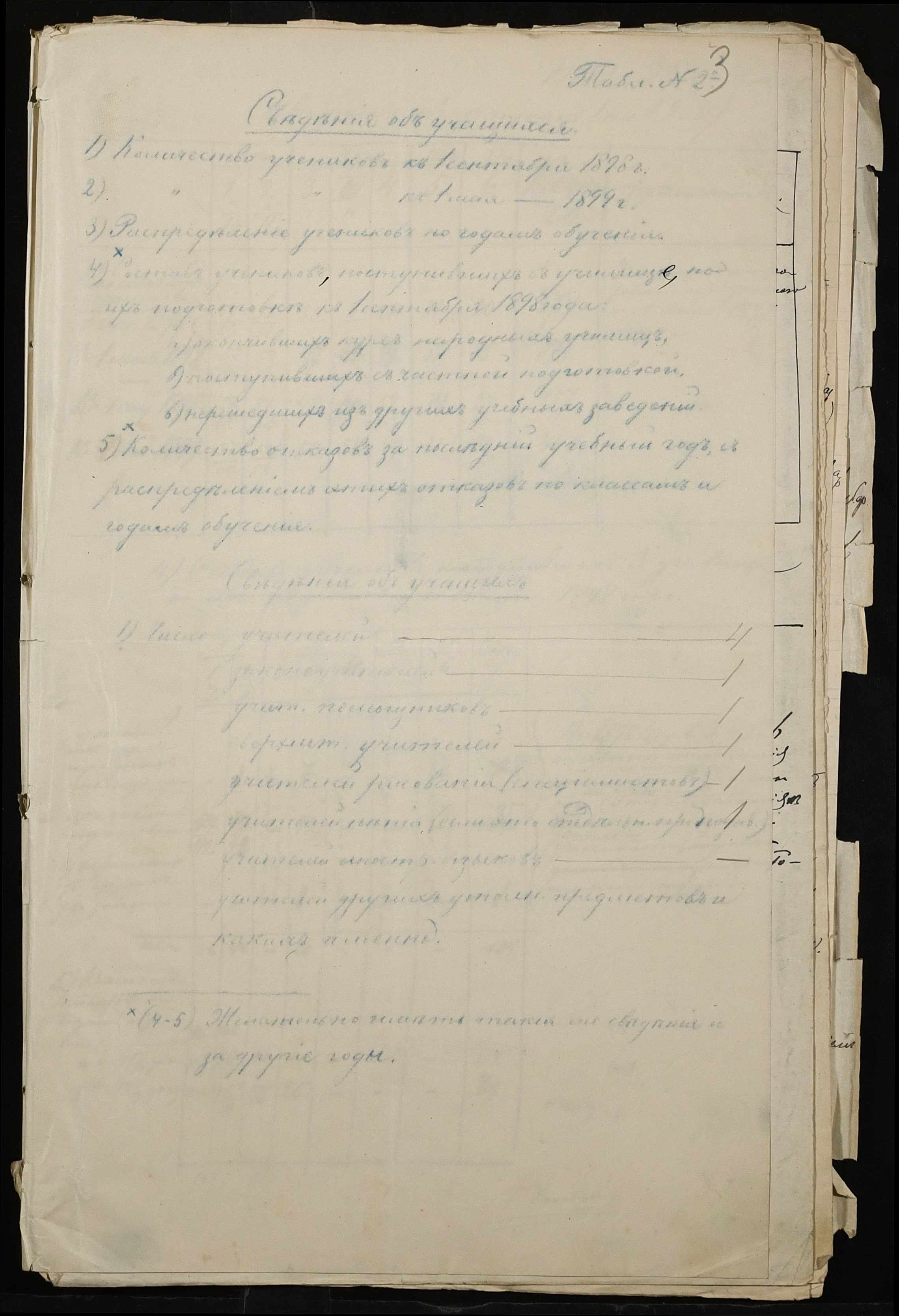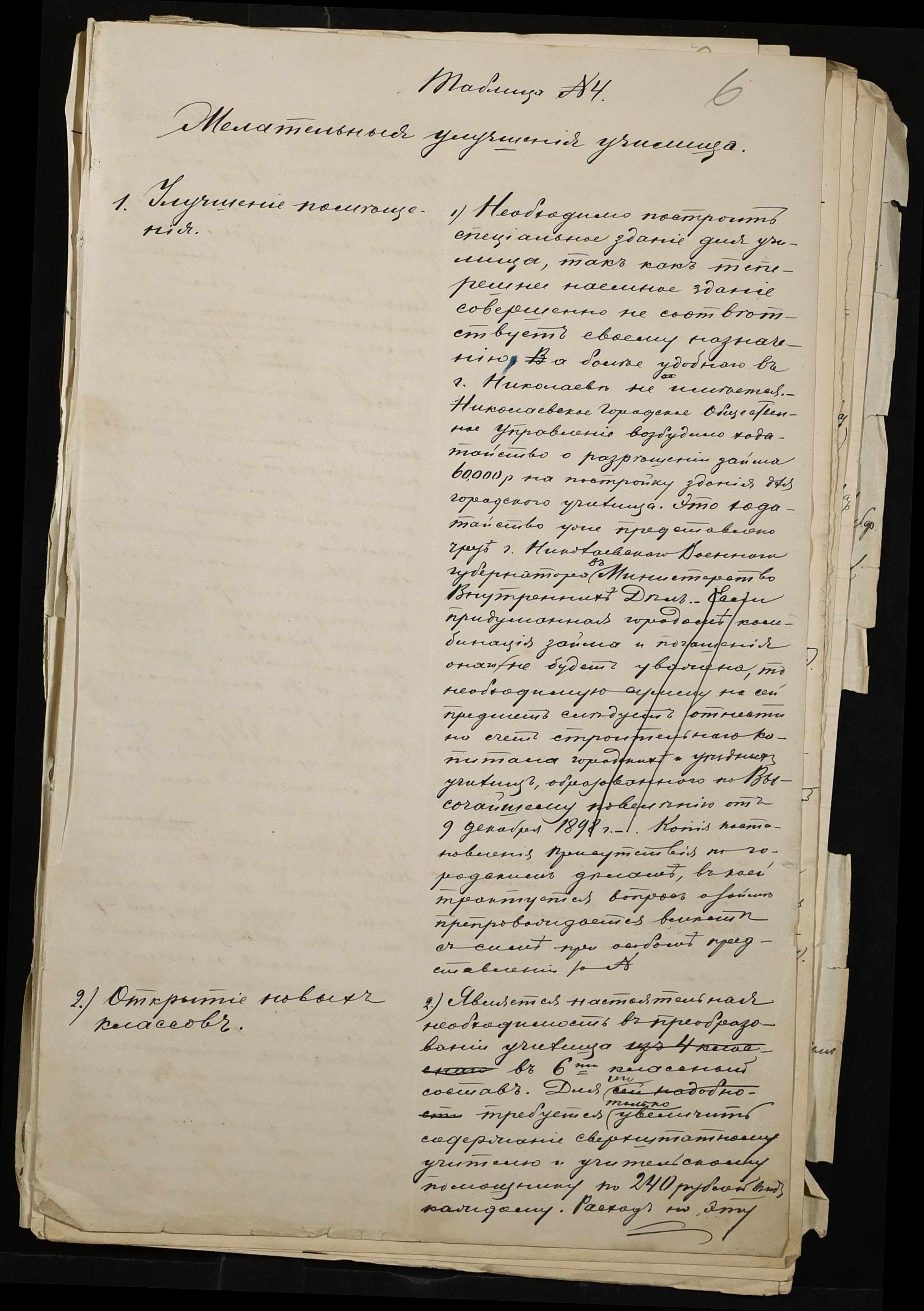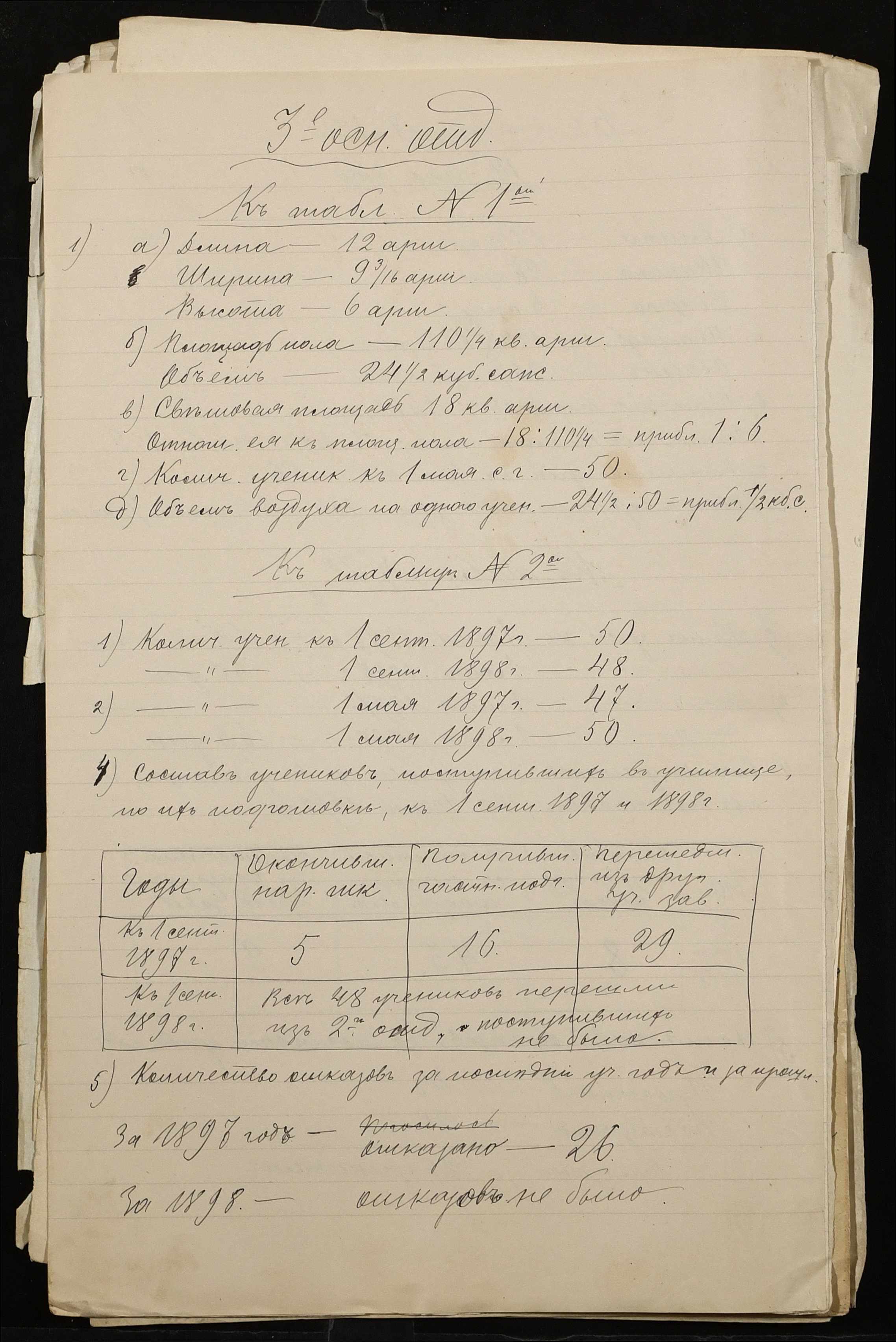 • • • • Справа № 337 “Статистичний звіт, відомості про стан міського 6-класного училища за 1899 рік”