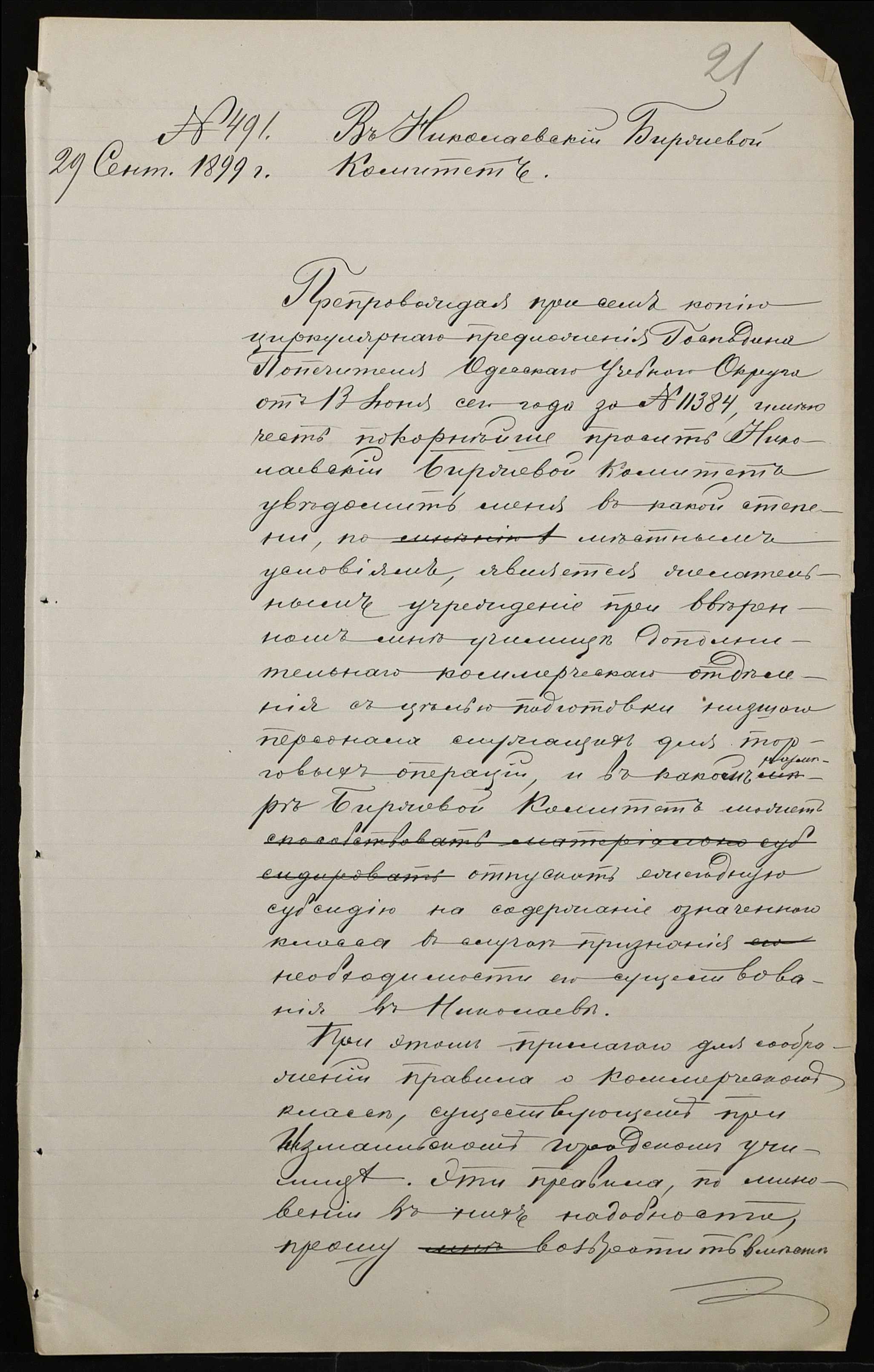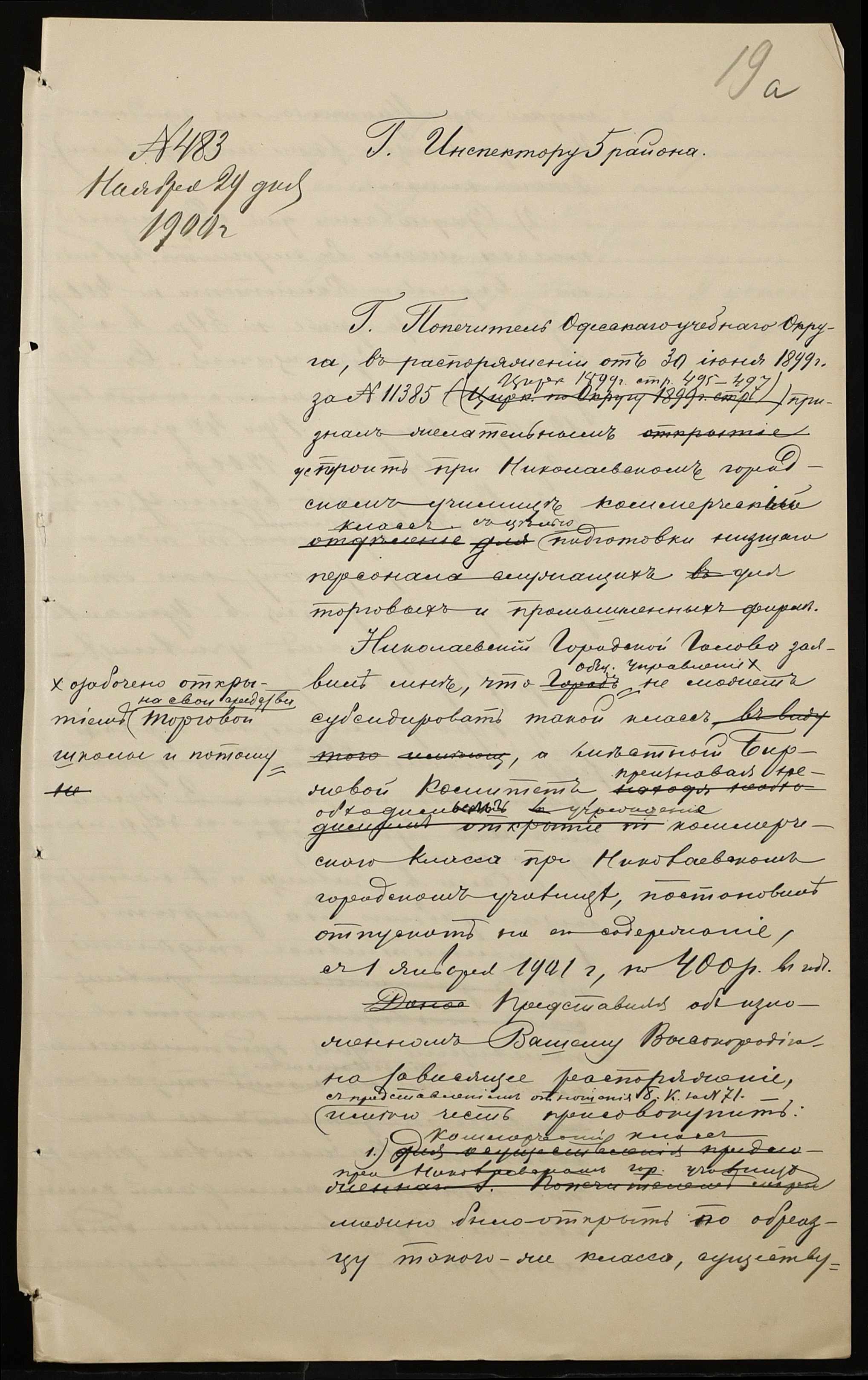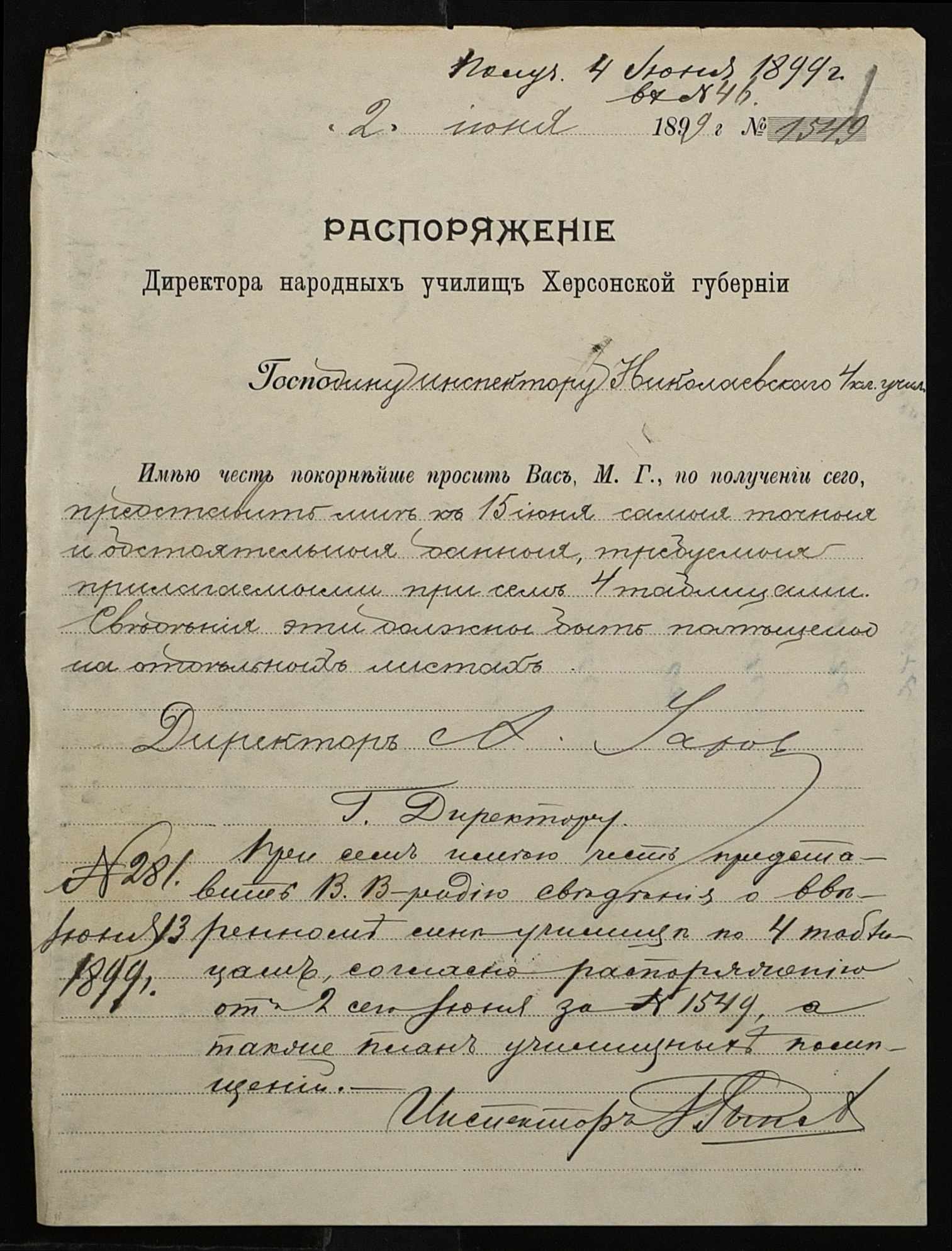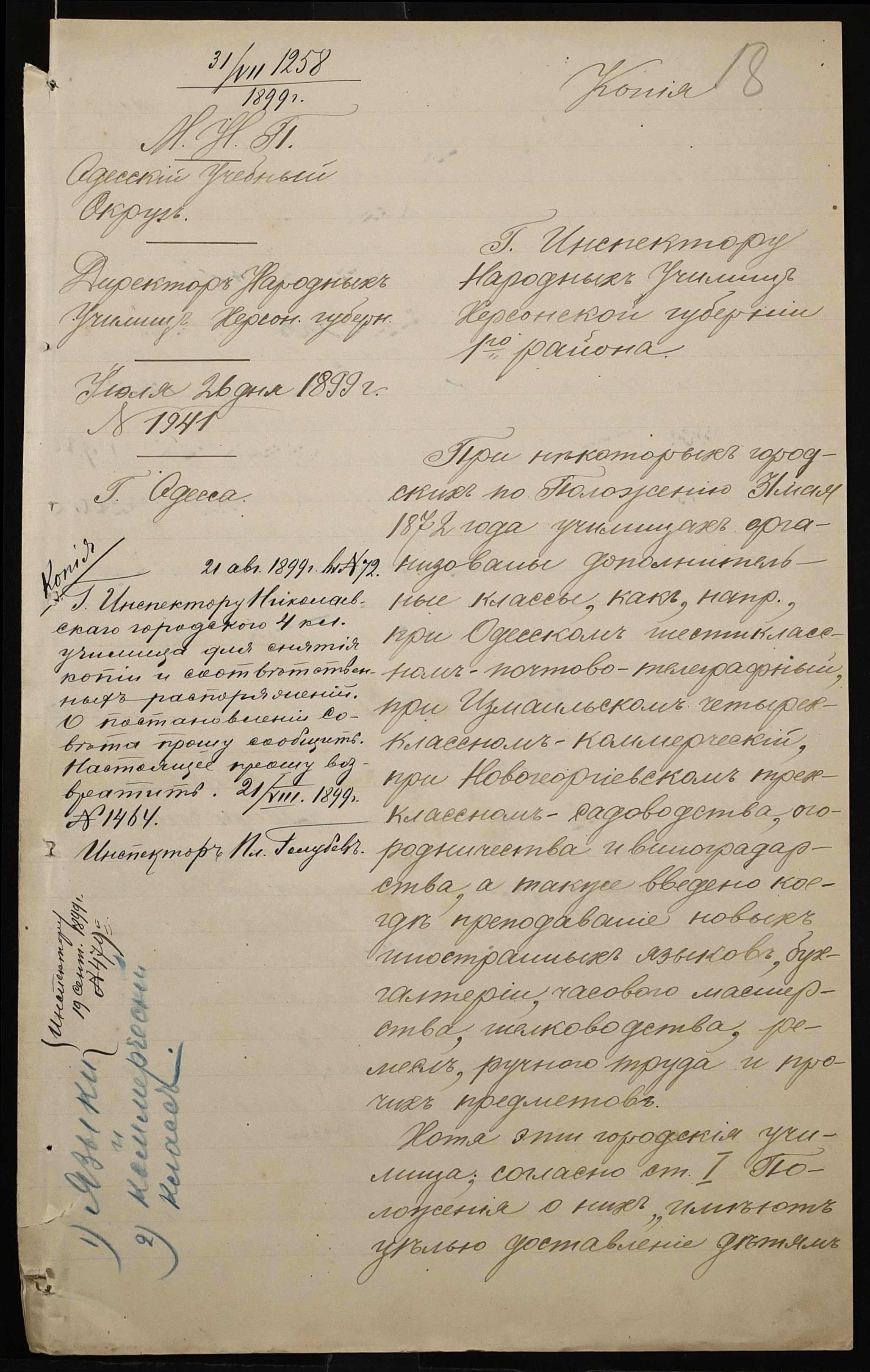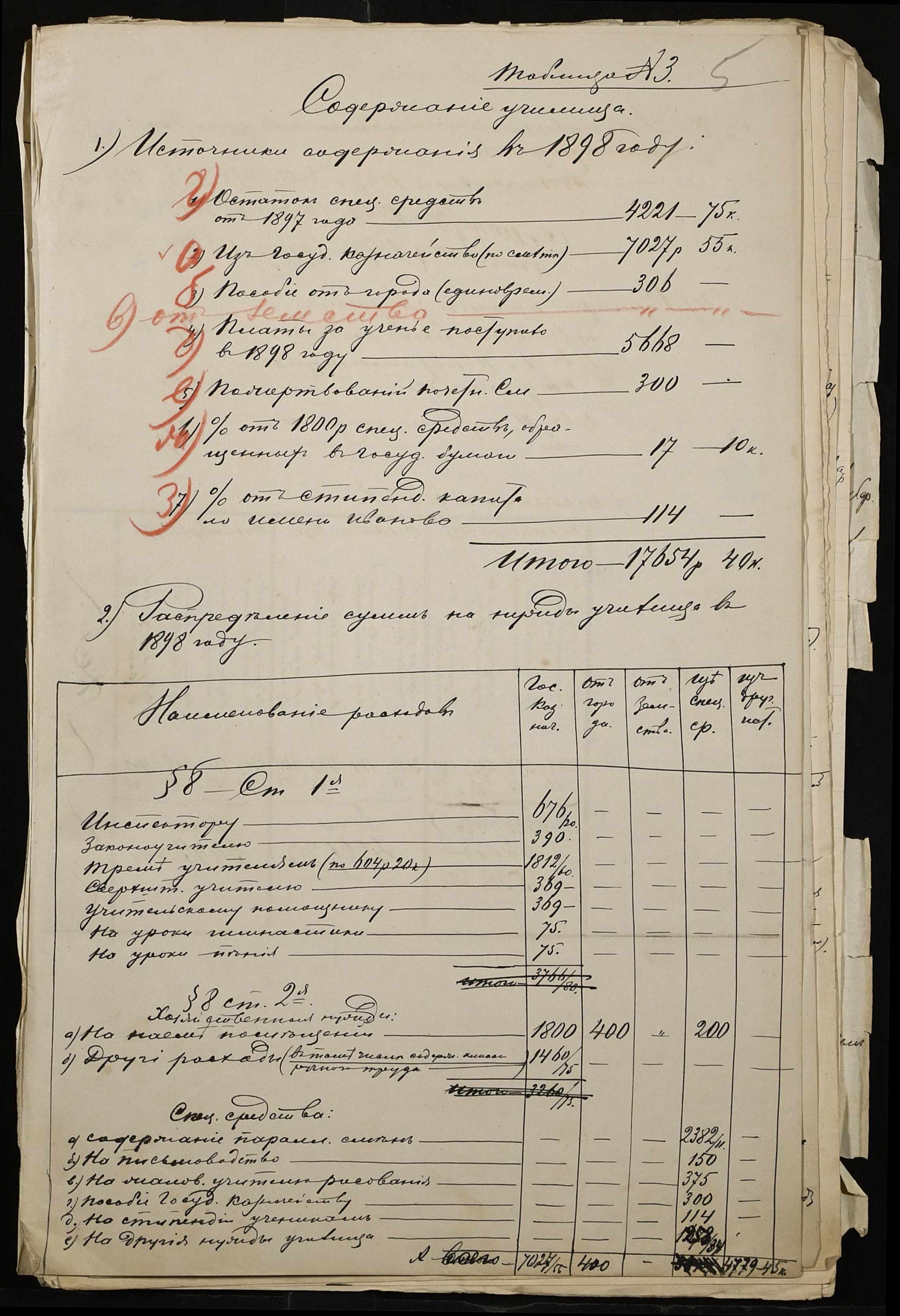 • • • • Справа № 337 “Статистичний звіт, відомості про стан міського 6-класного училища за 1899 рік”