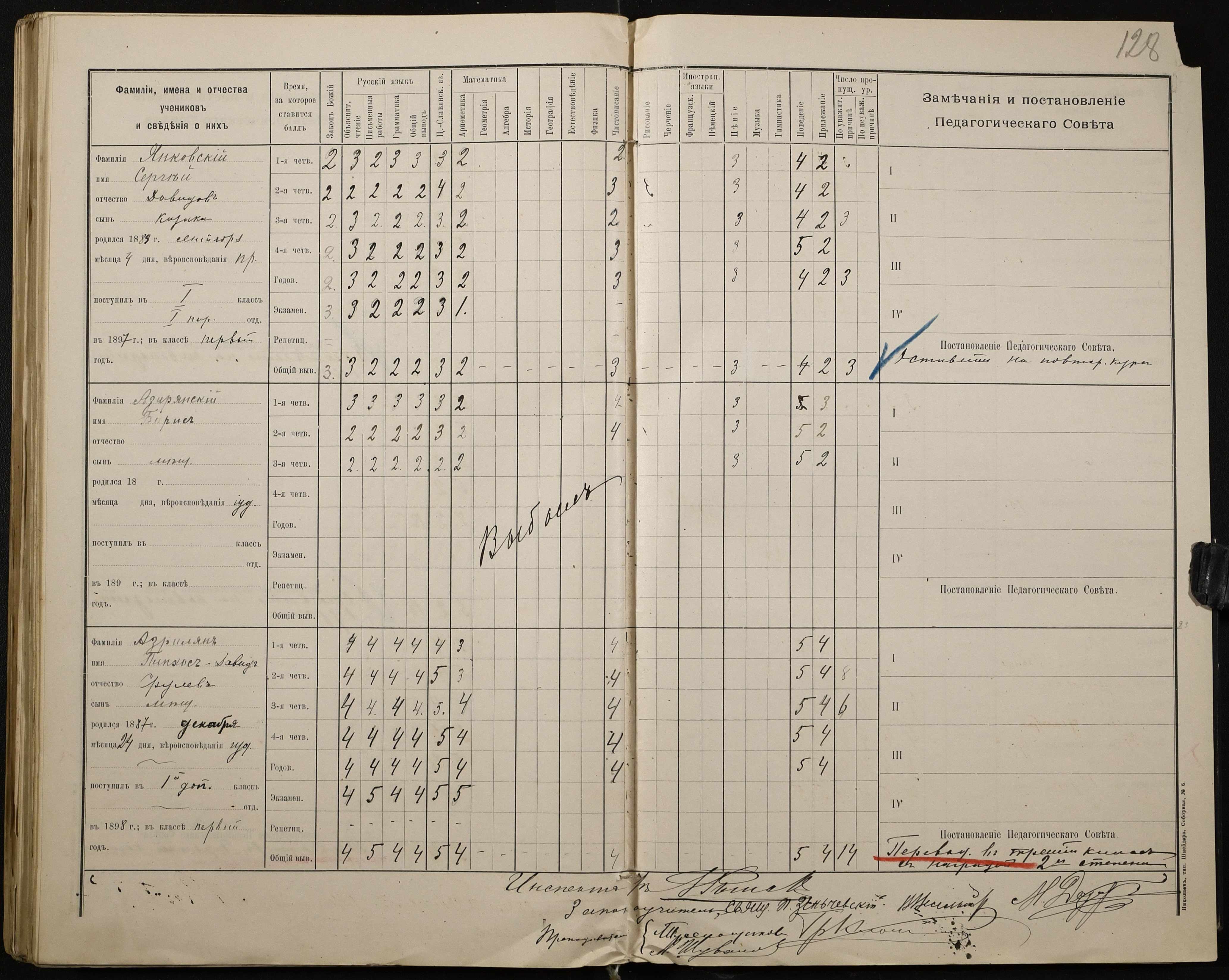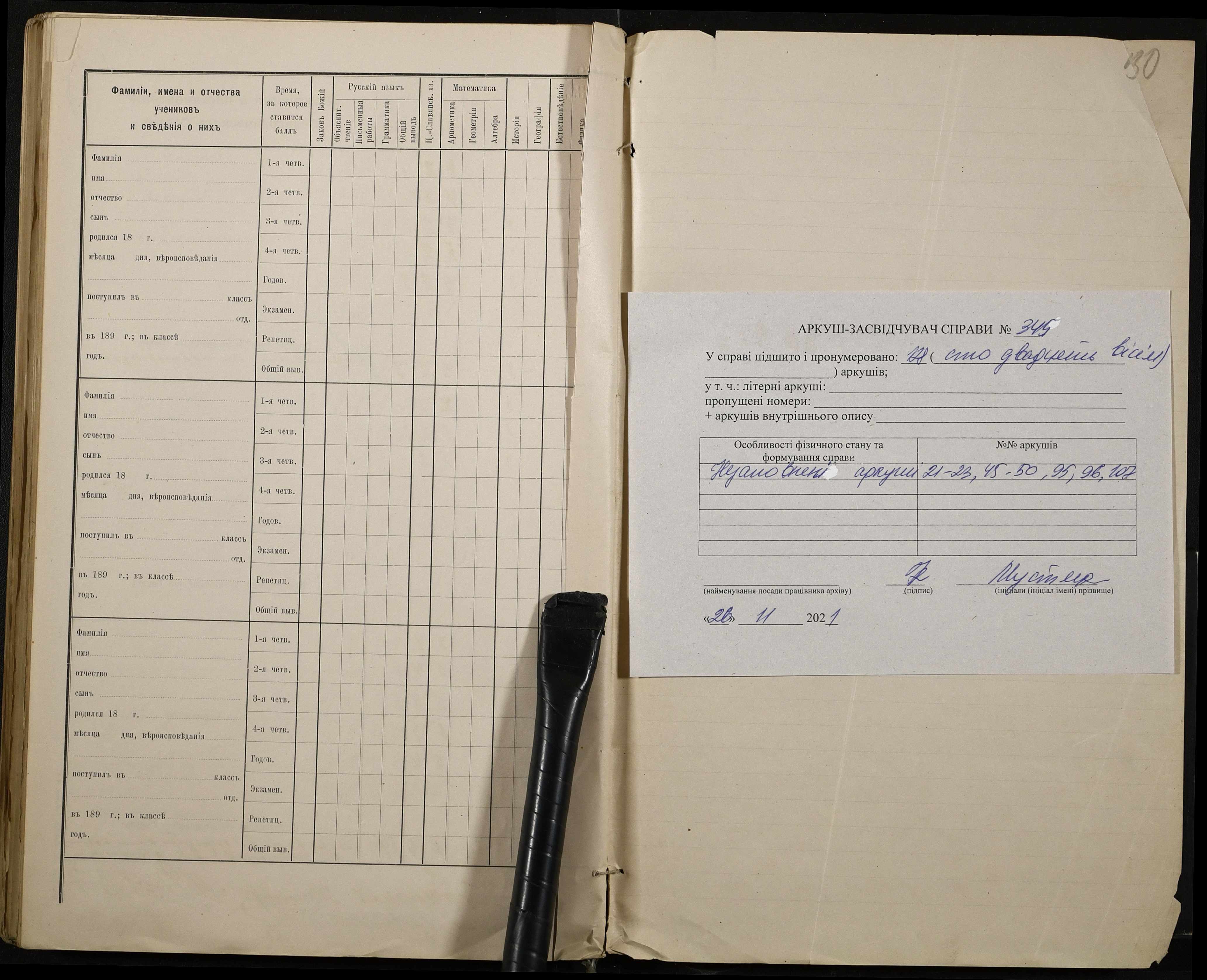 • • • • Справа № 345 “Журнал успішності II, III і IV відділень училища за 1899-1900 навчальний рік”