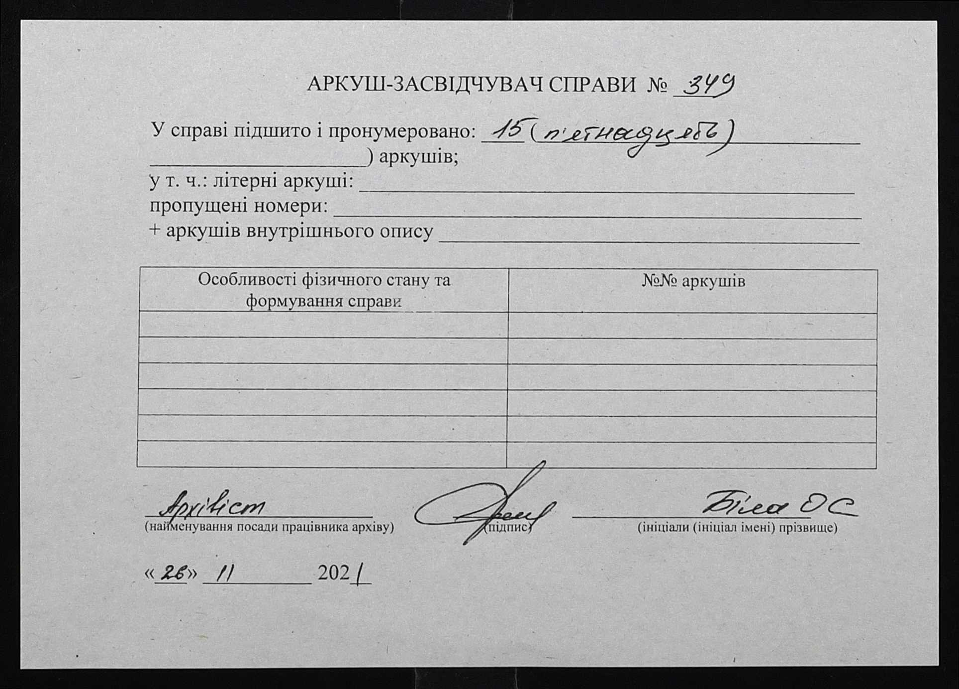 ◦ ◦ ◦ Опис № 1 справ постійного зберігання за 1847-1852, 1858, 1868-1869, 1871-1919, 1922 роки