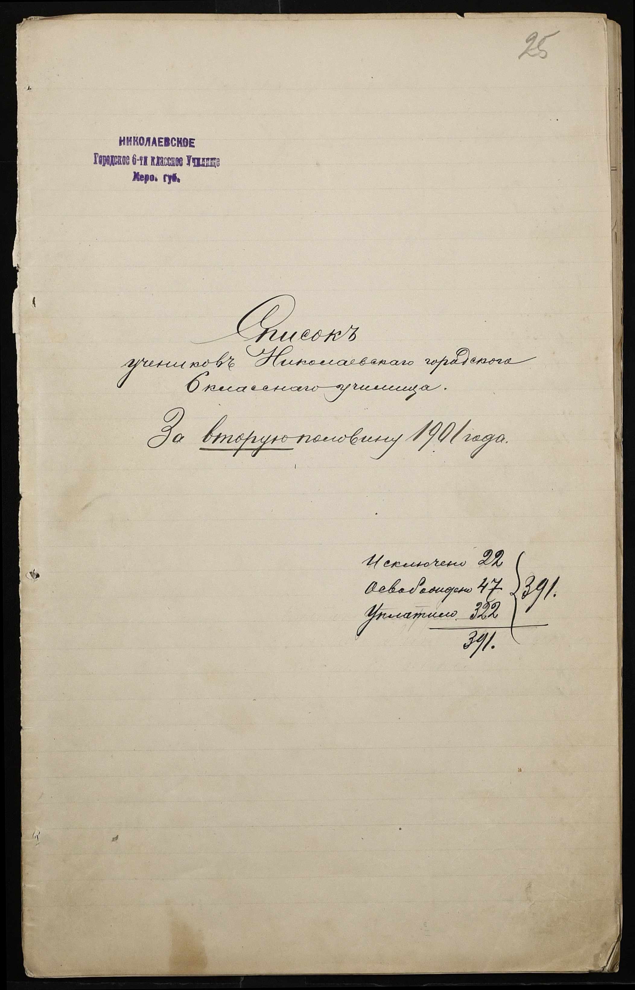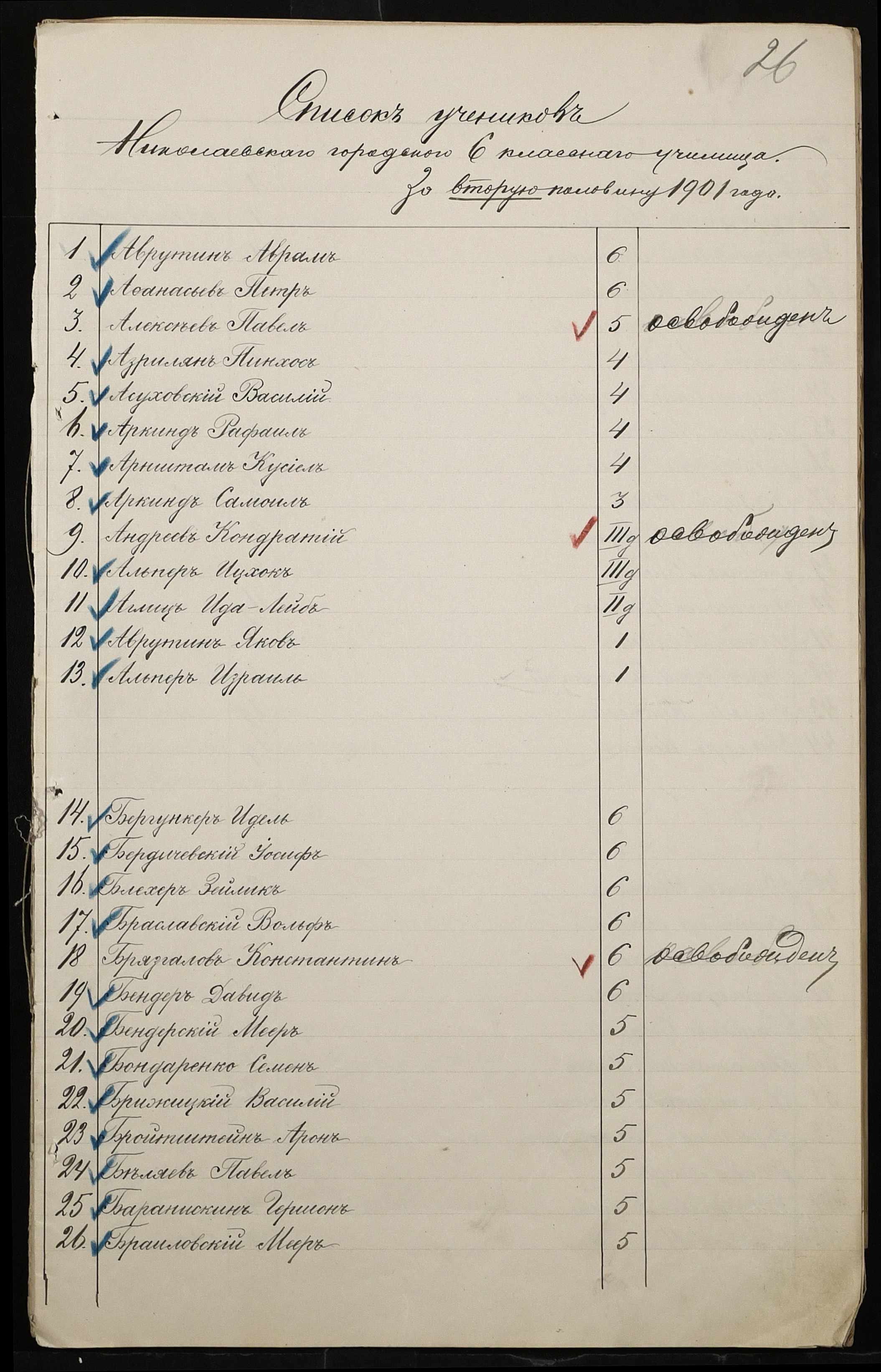 • • • • Справа № 361 “Списки учнів міського шестикласного училища за 1900-1901 навчальний рік”