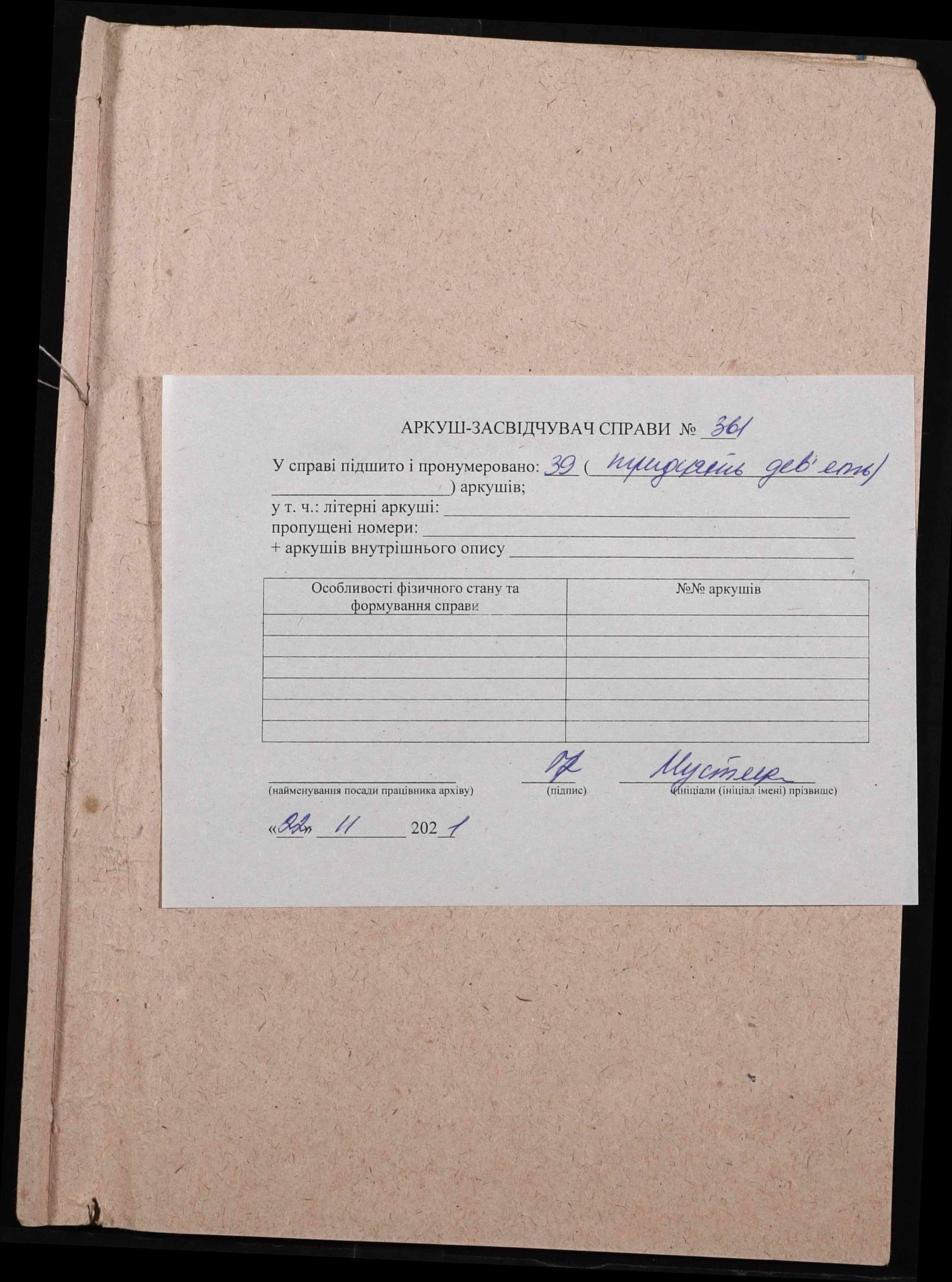 ◦ ◦ ◦ Опис № 1 справ постійного зберігання за 1847-1852, 1858, 1868-1869, 1871-1919, 1922 роки