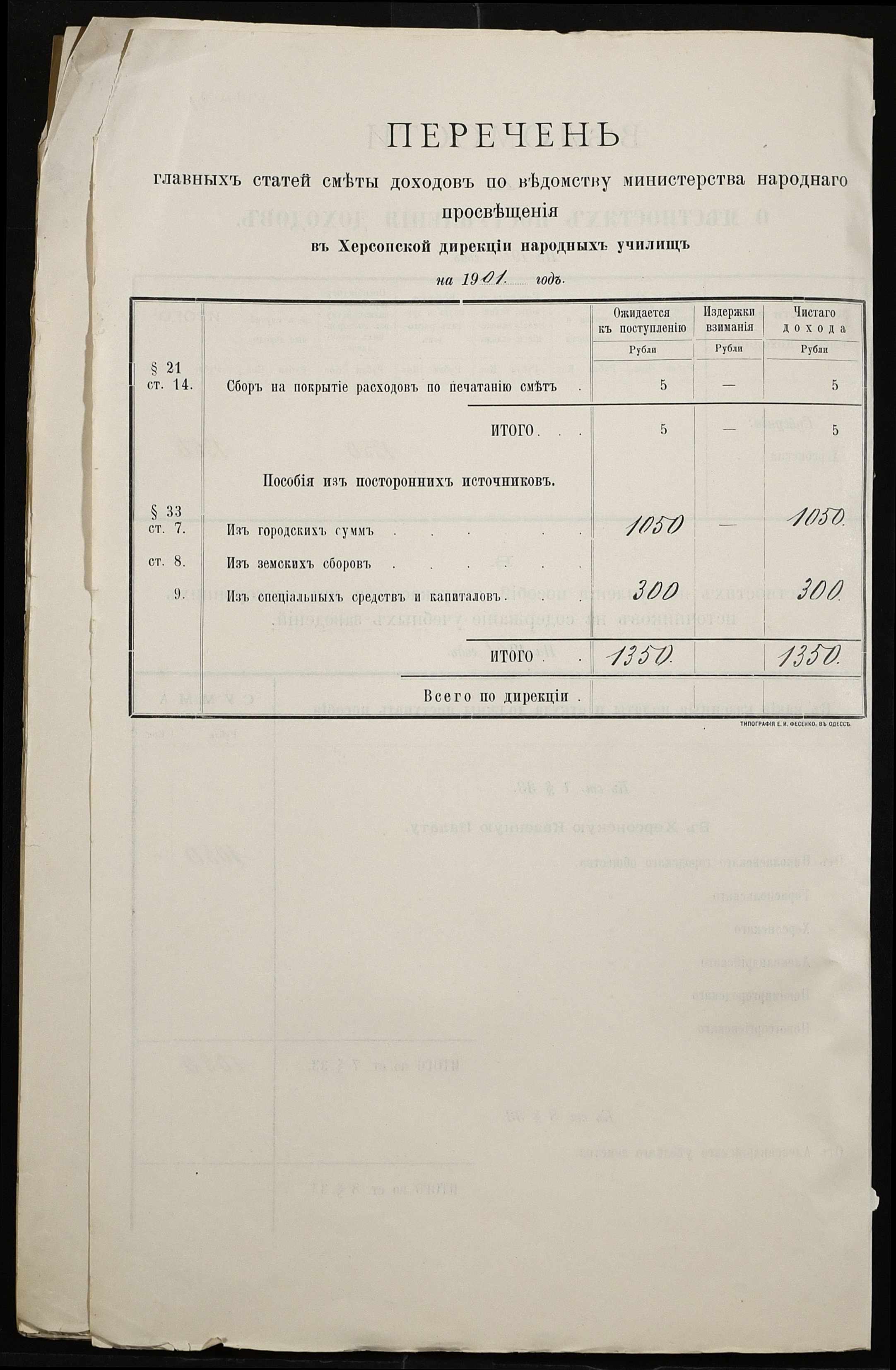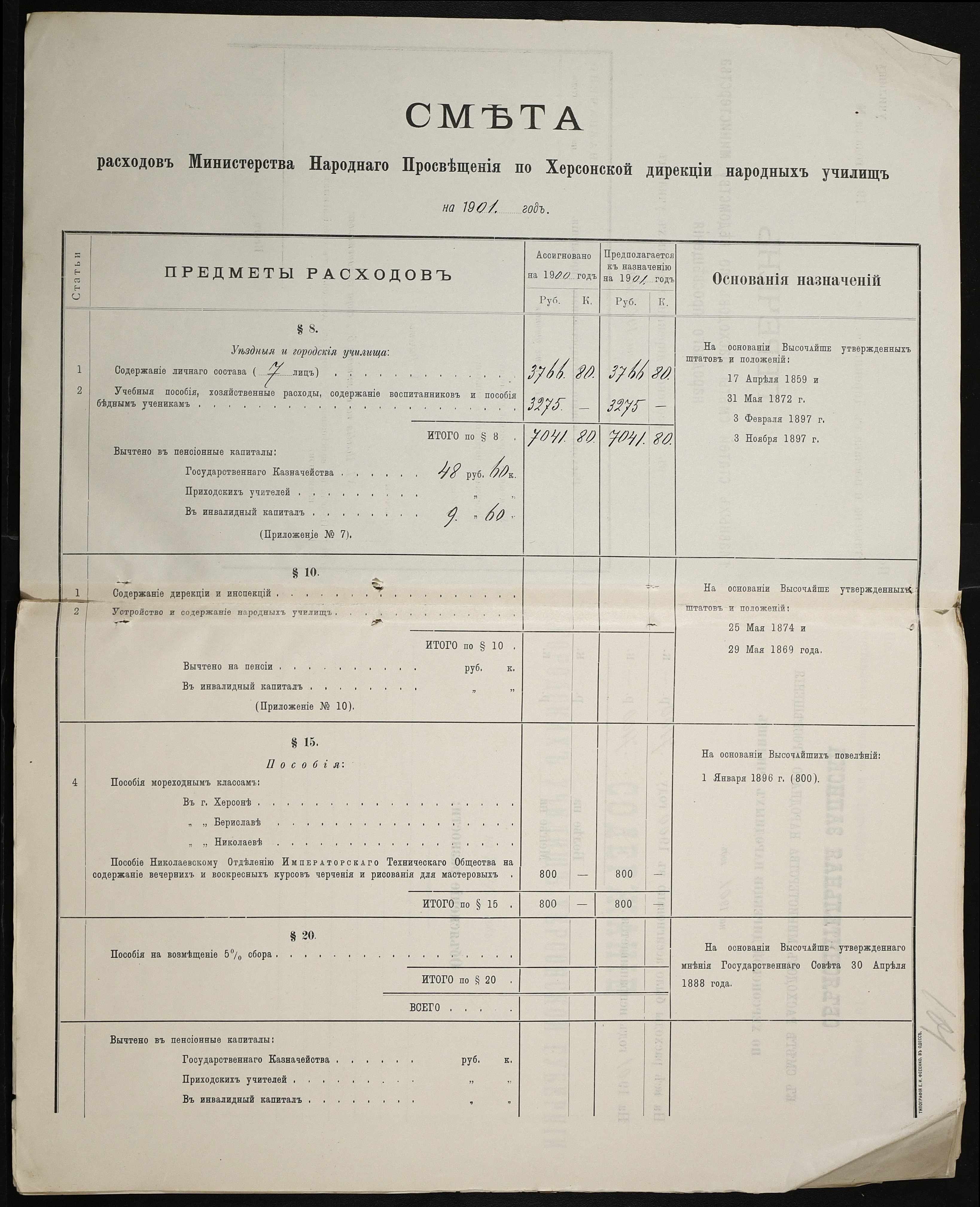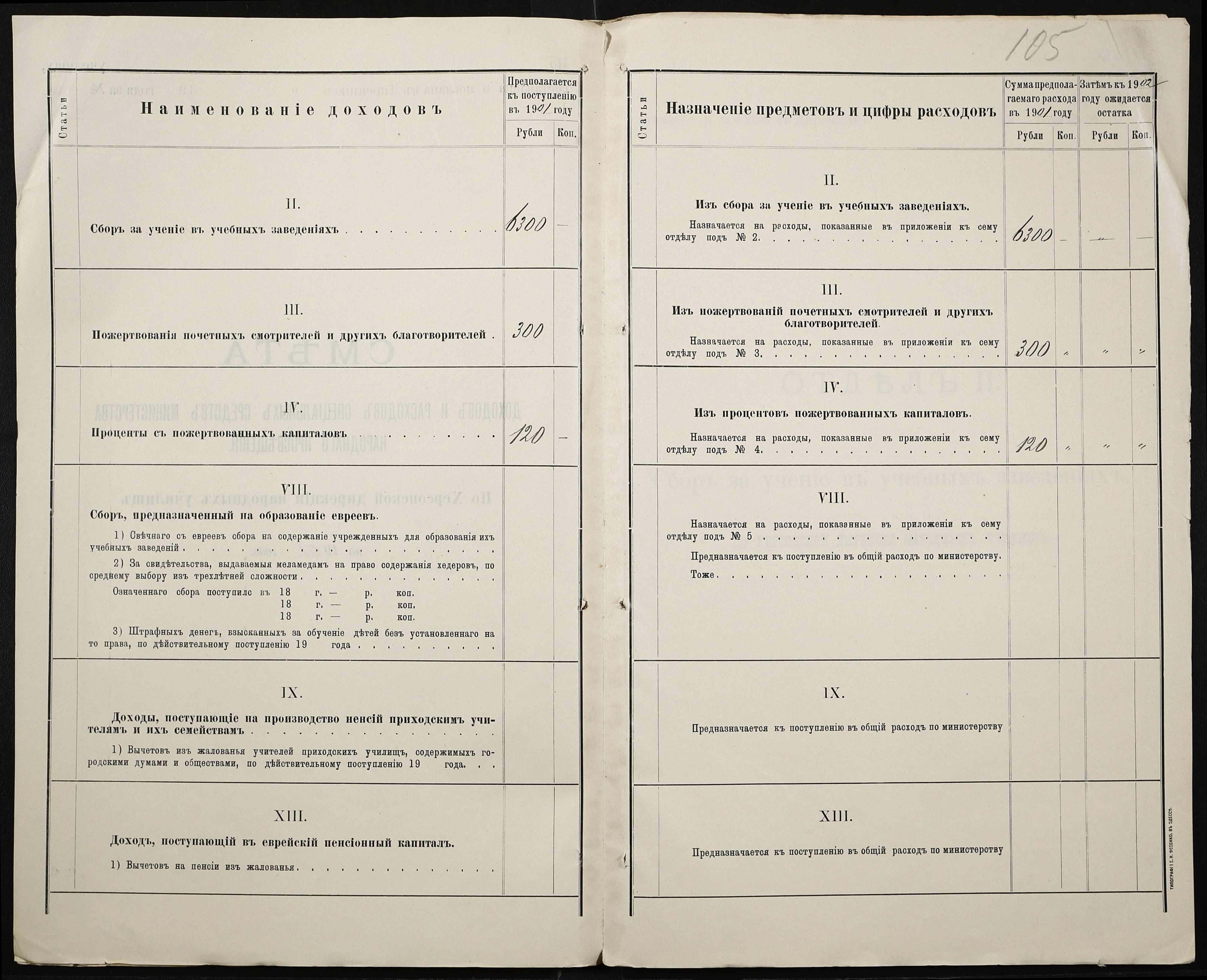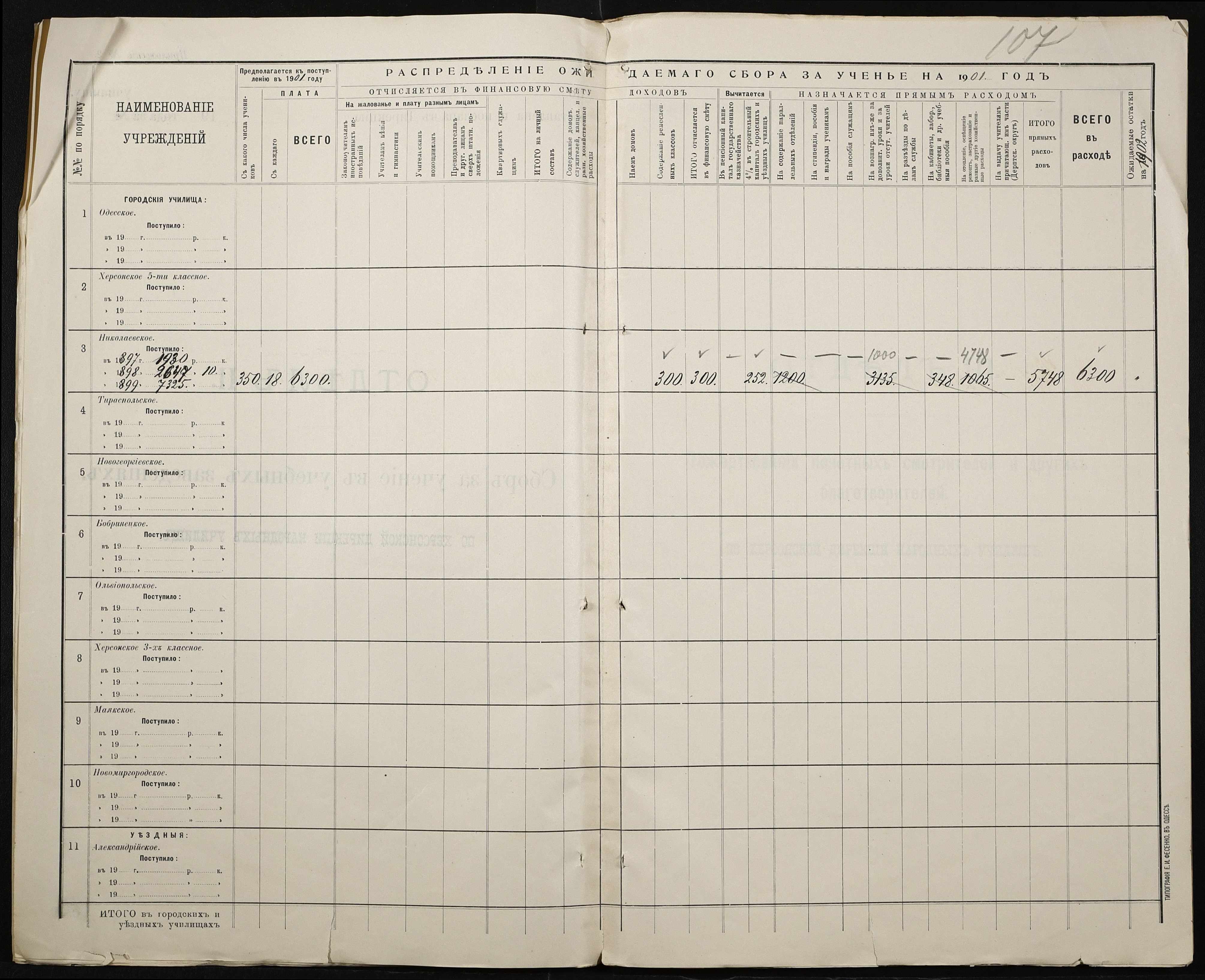• • • • Справа № 363 “Кошторис, відомості обліку прибутку і видатків коштів училища за 1901 рік”