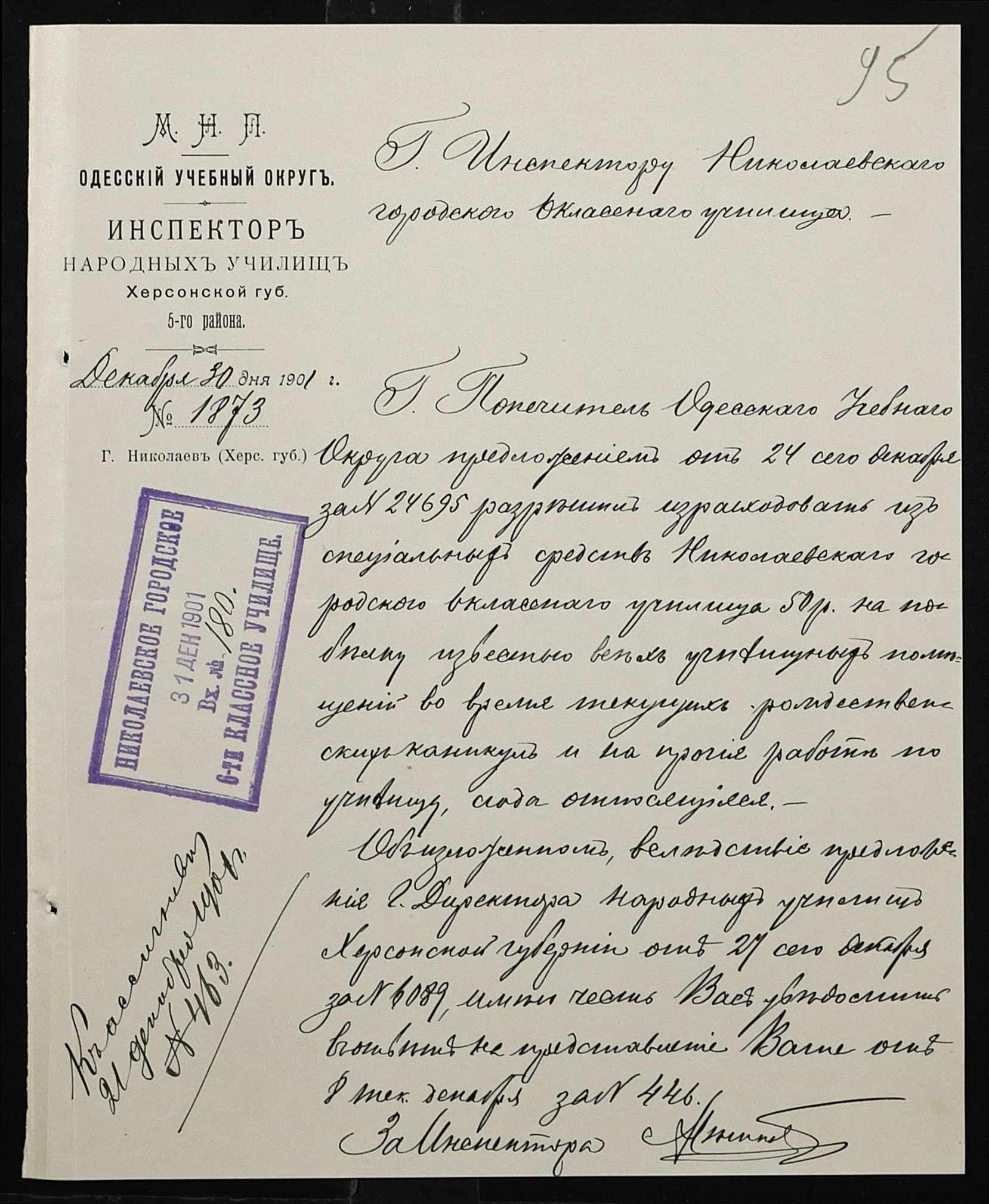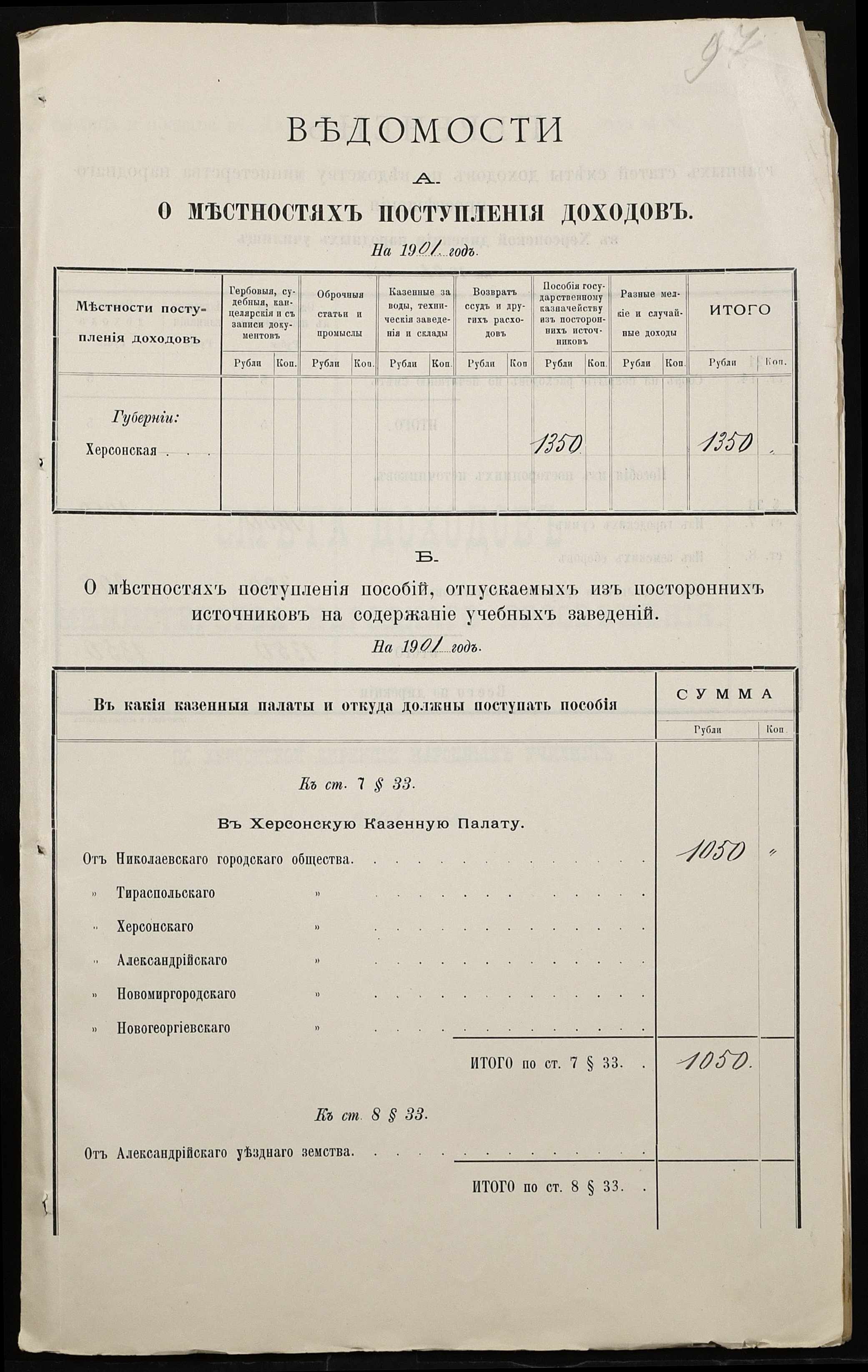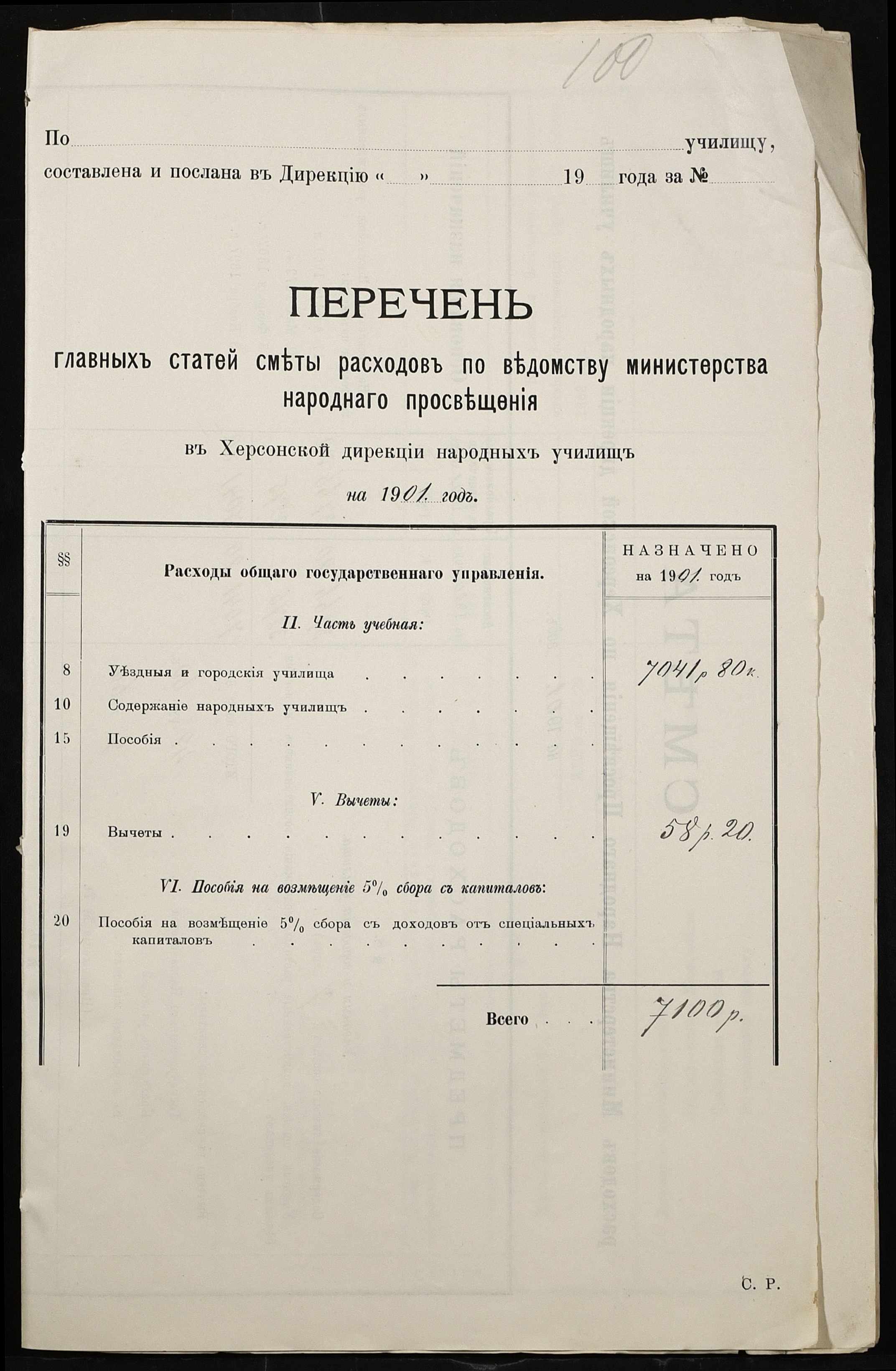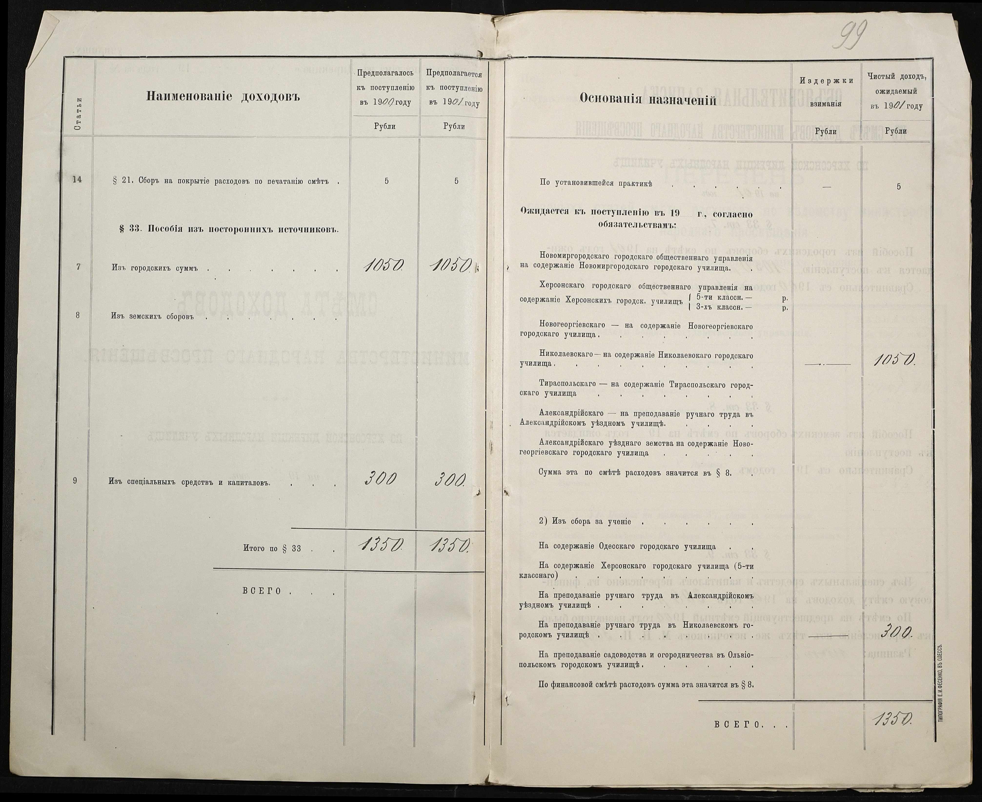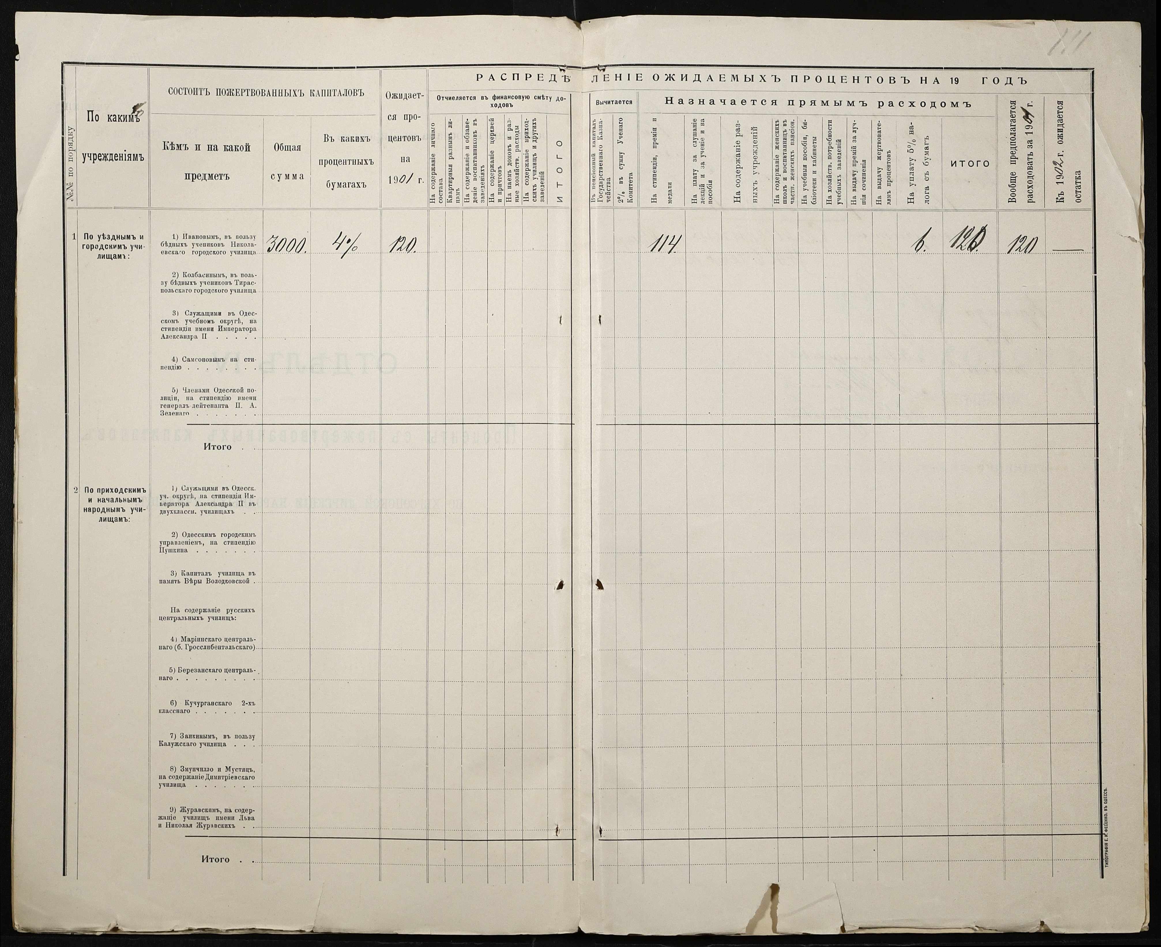 • • • • Справа № 363 “Кошторис, відомості обліку прибутку і видатків коштів училища за 1901 рік”