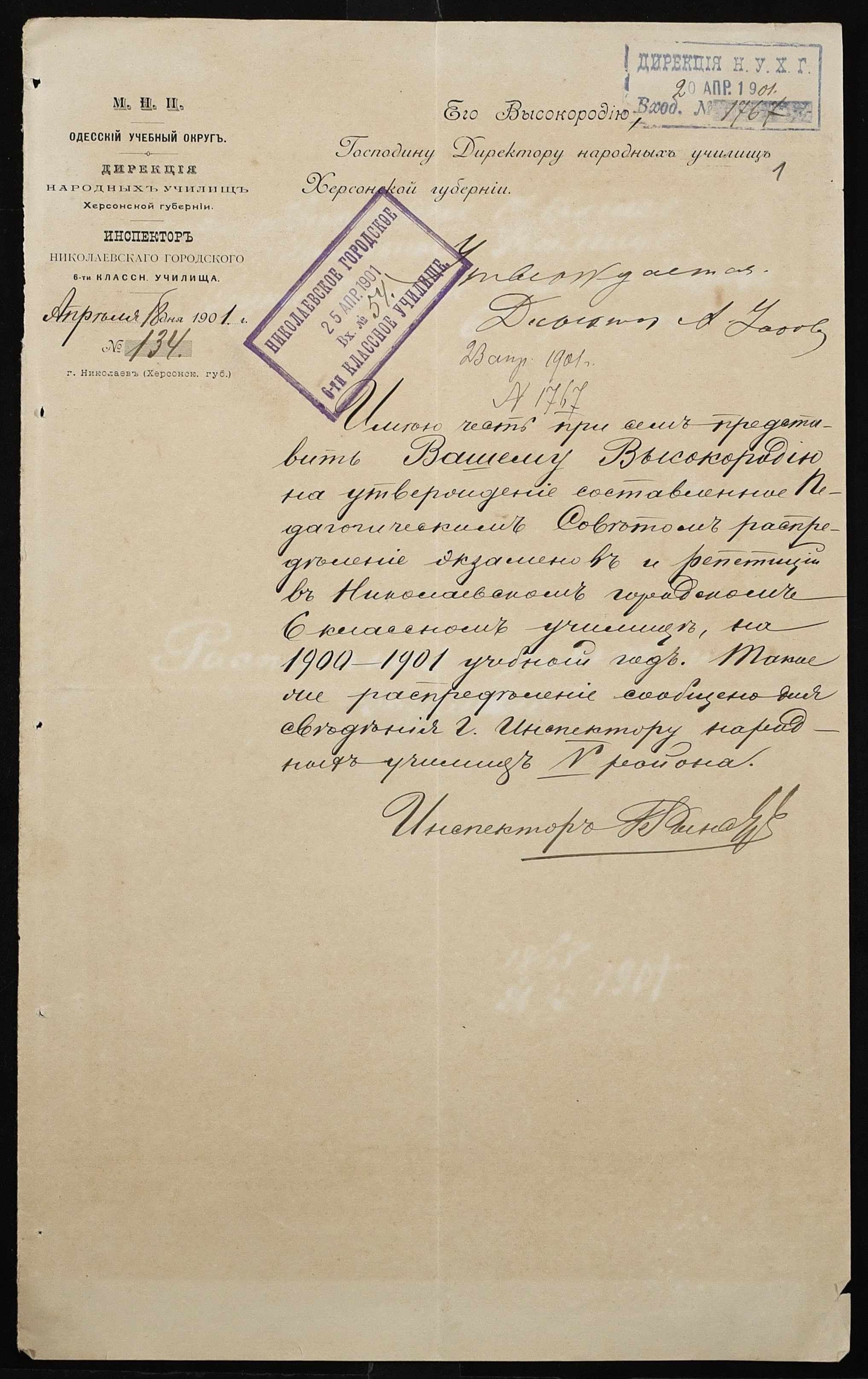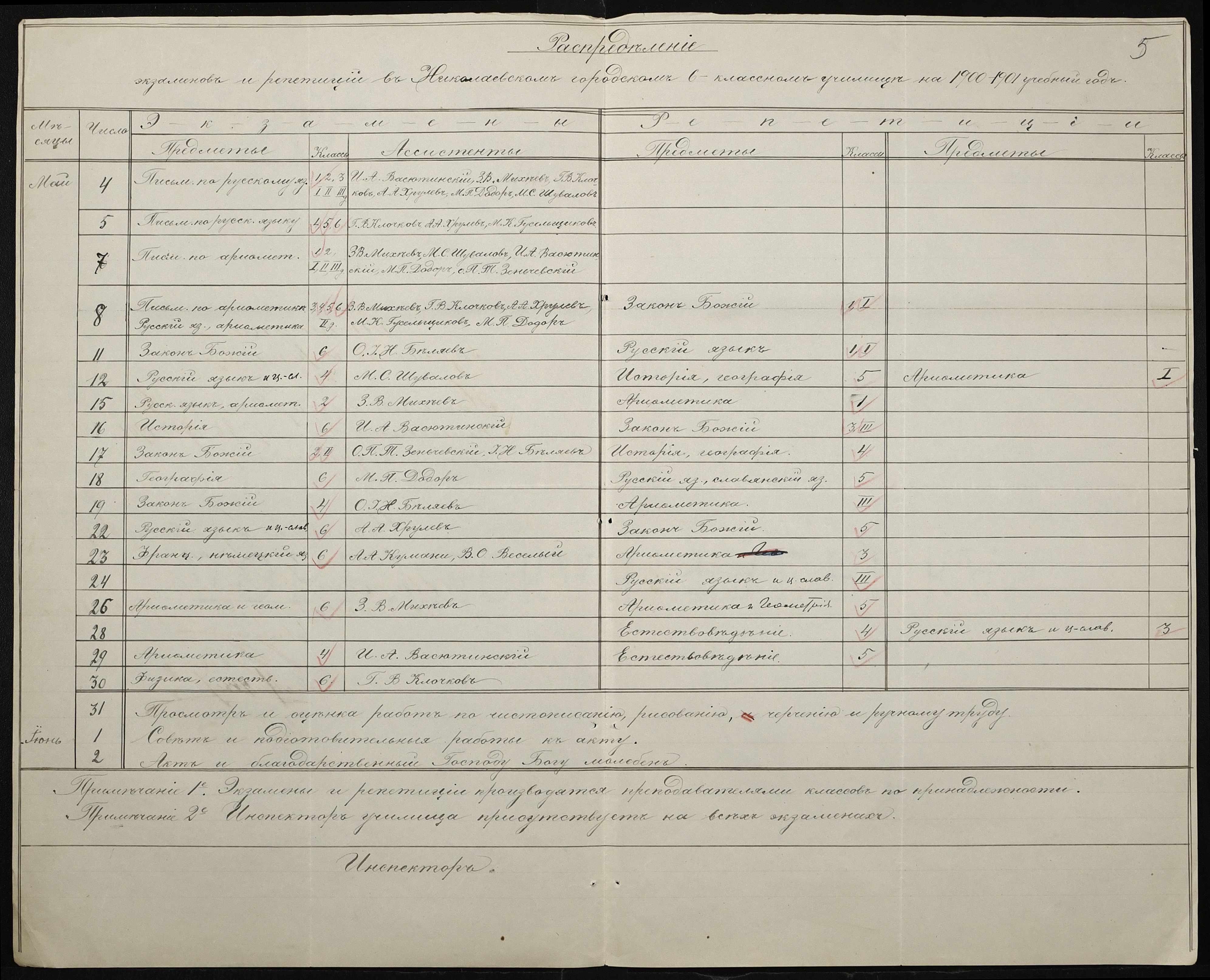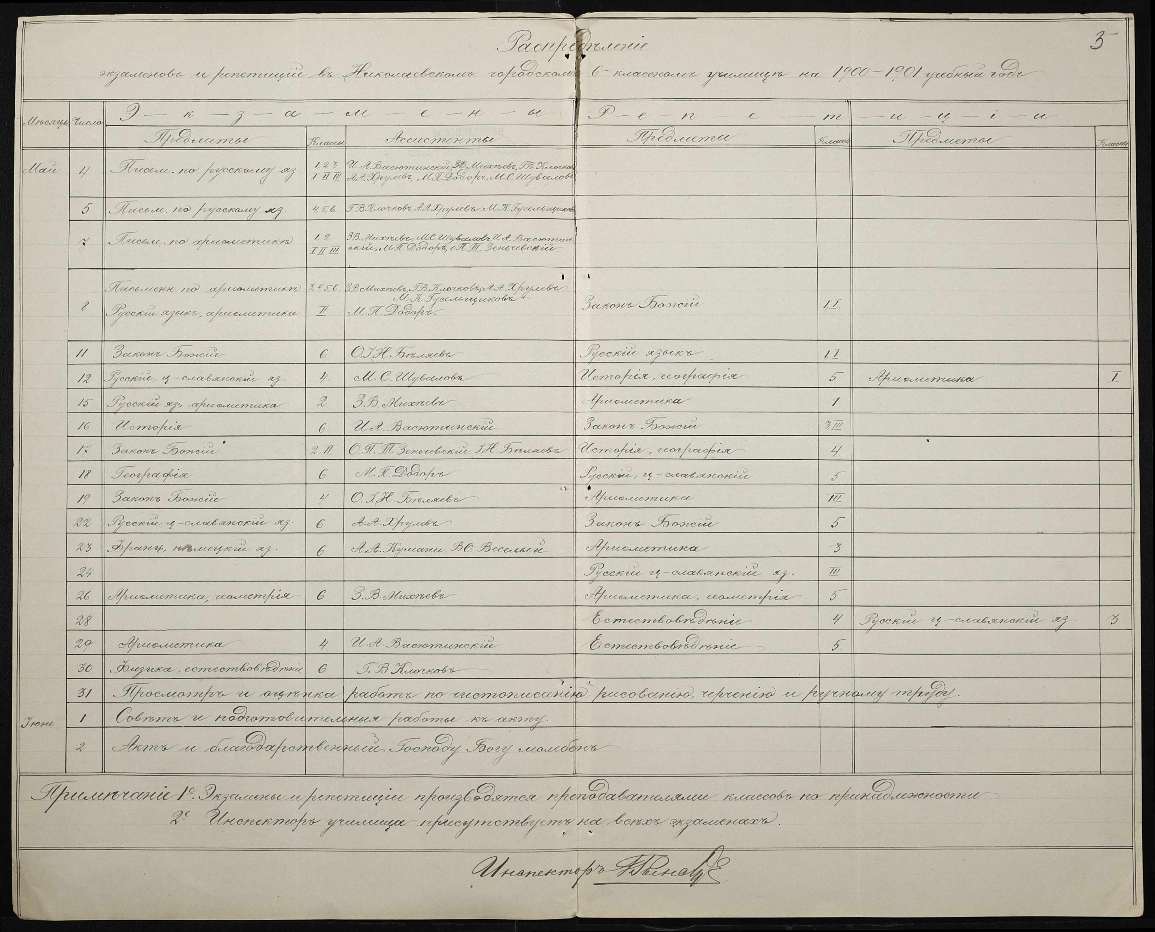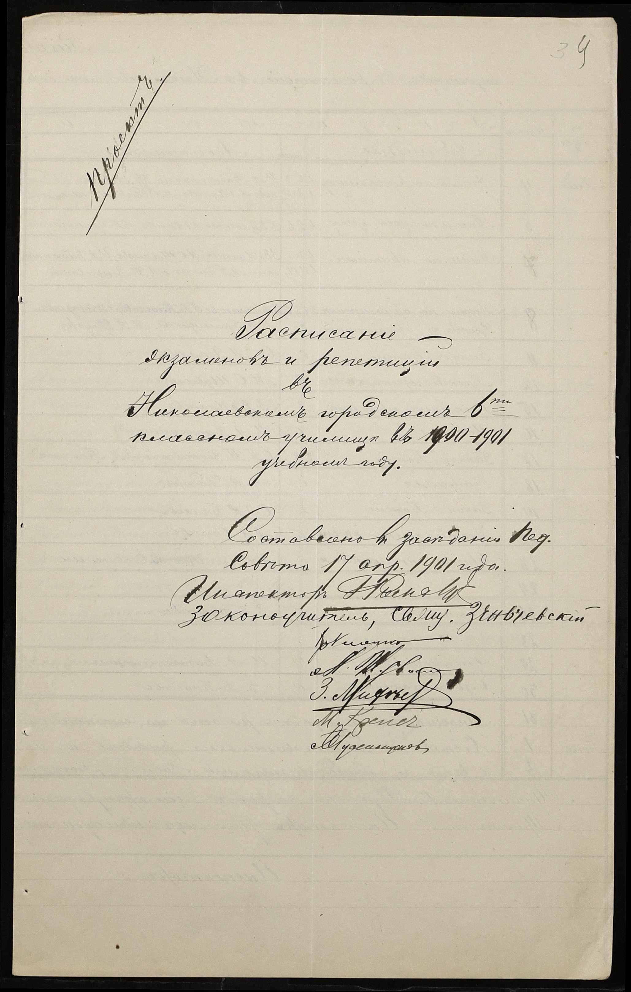 • • • • Справа № 367 “Розклад екзаменів і репетицій в училищі на 1900-1901 навчальний рік”