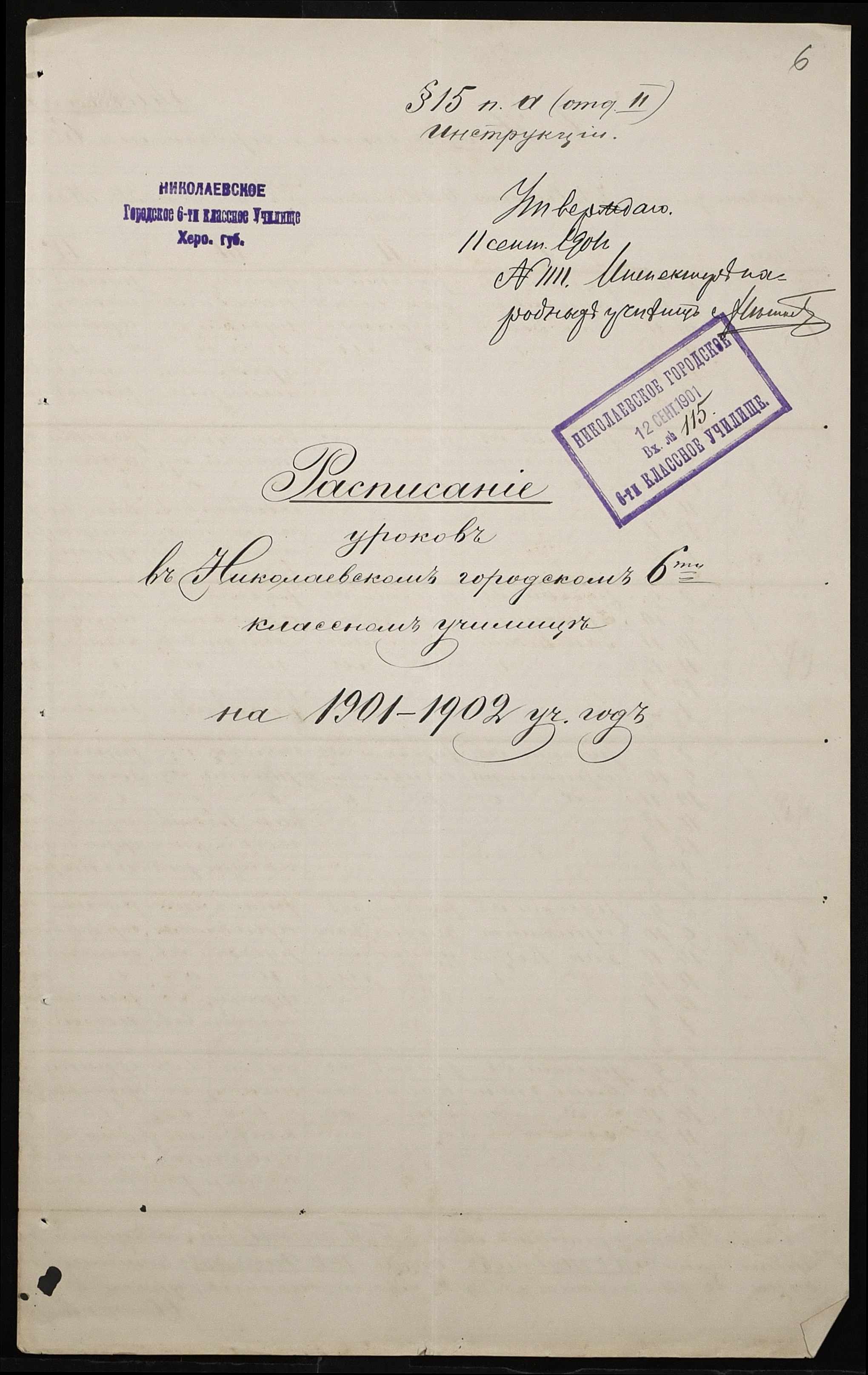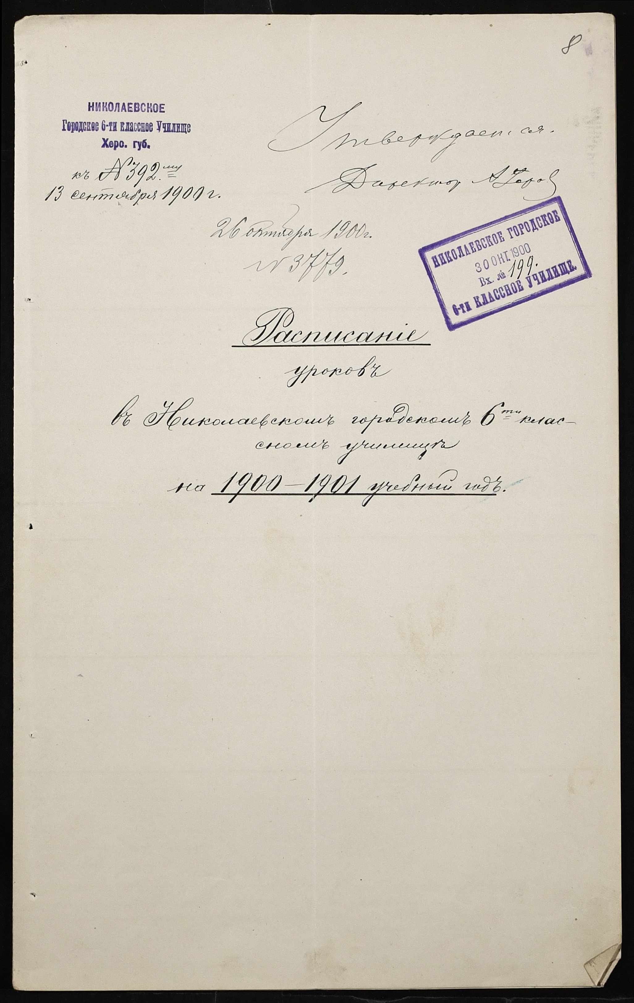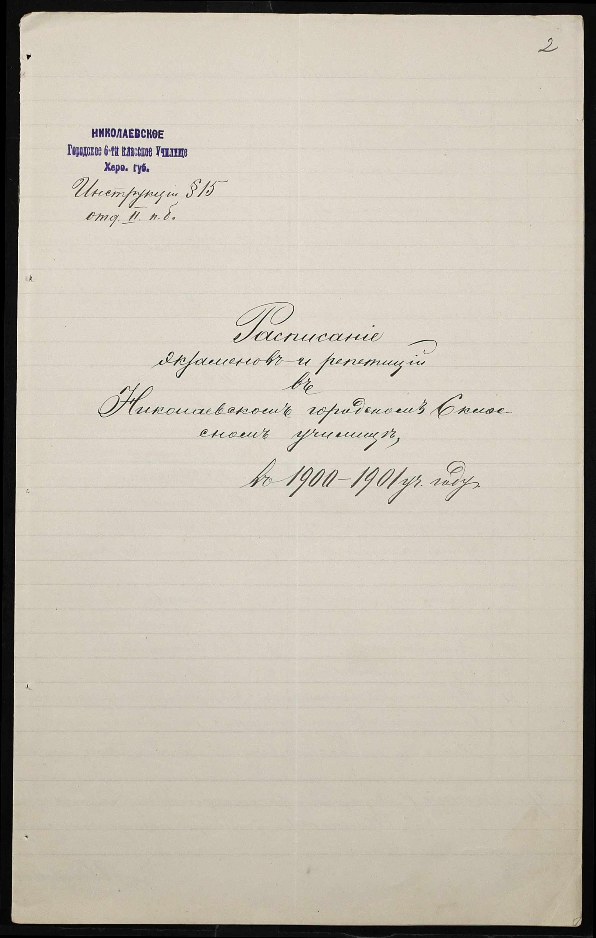• • • • Справа № 367 “Розклад екзаменів і репетицій в училищі на 1900-1901 навчальний рік”