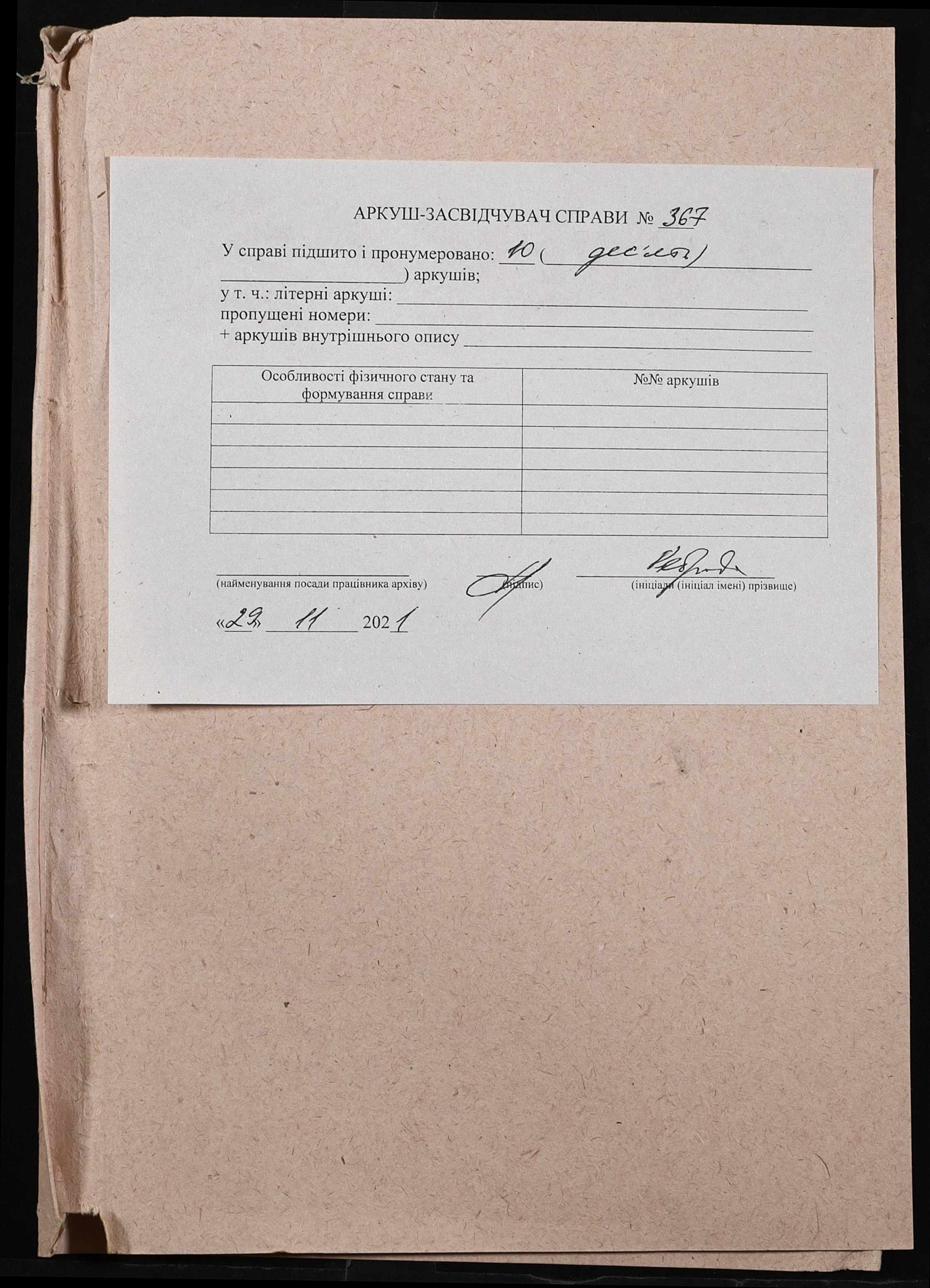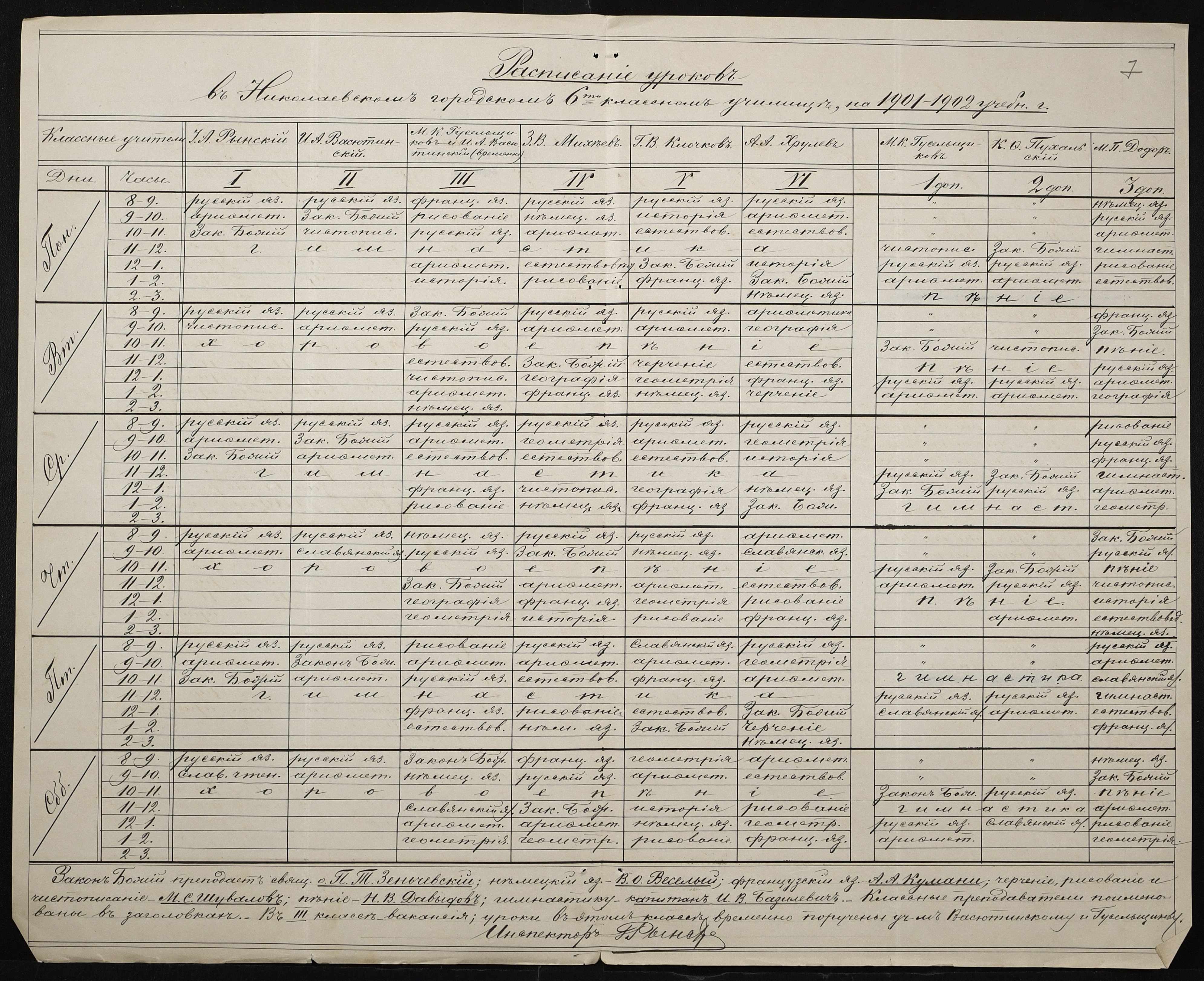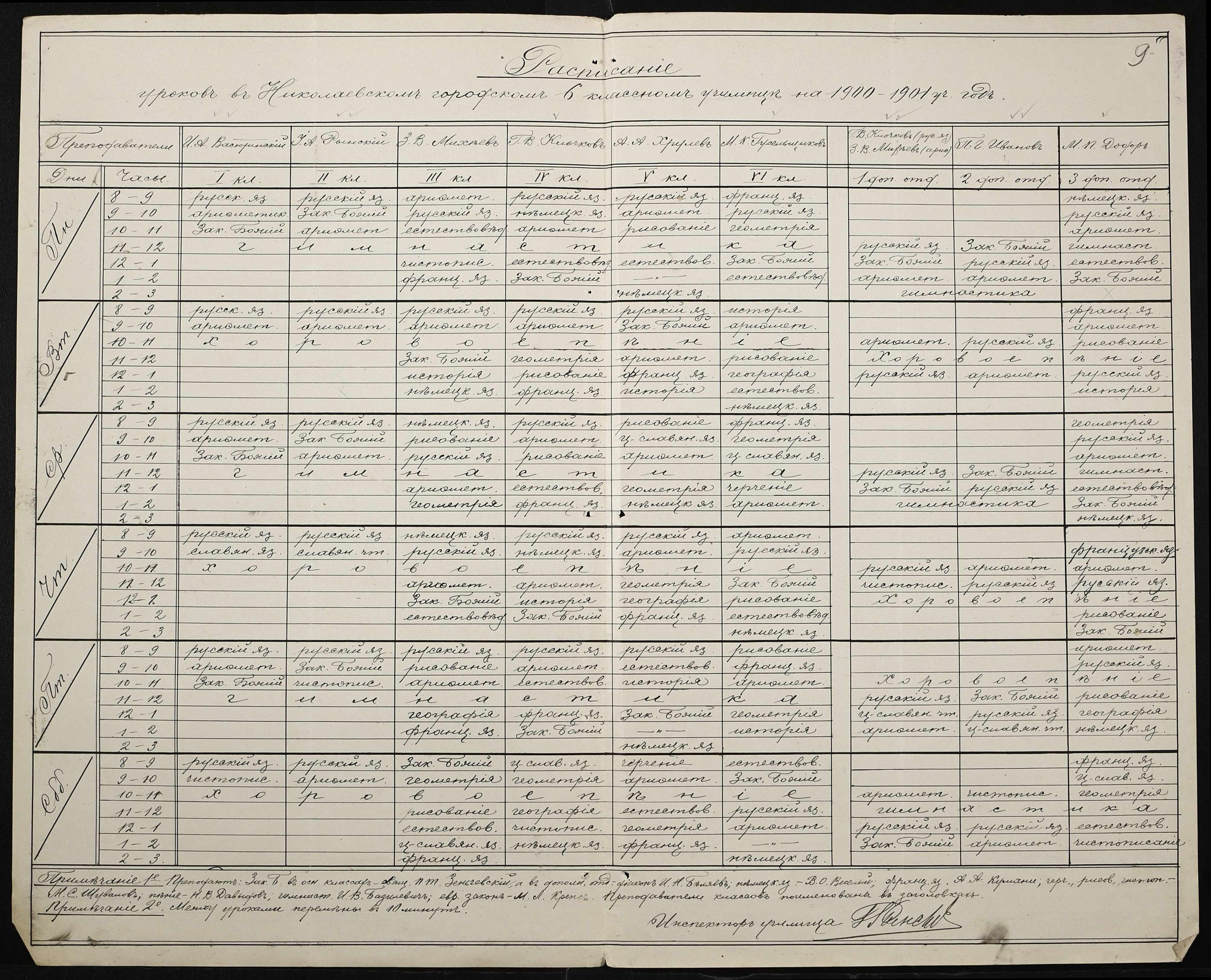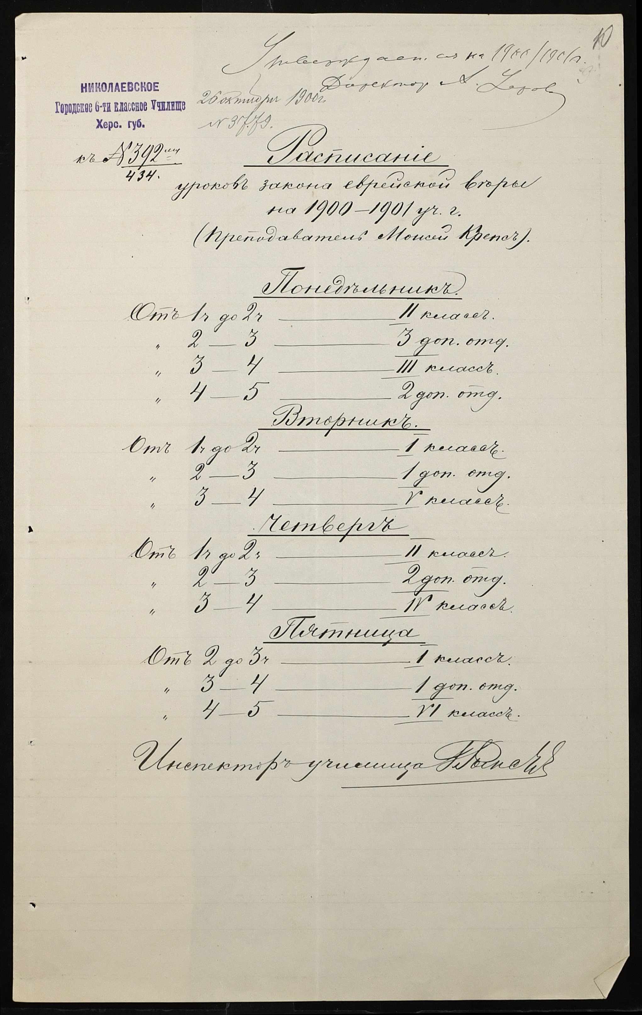 • • • • Справа № 367 “Розклад екзаменів і репетицій в училищі на 1900-1901 навчальний рік”