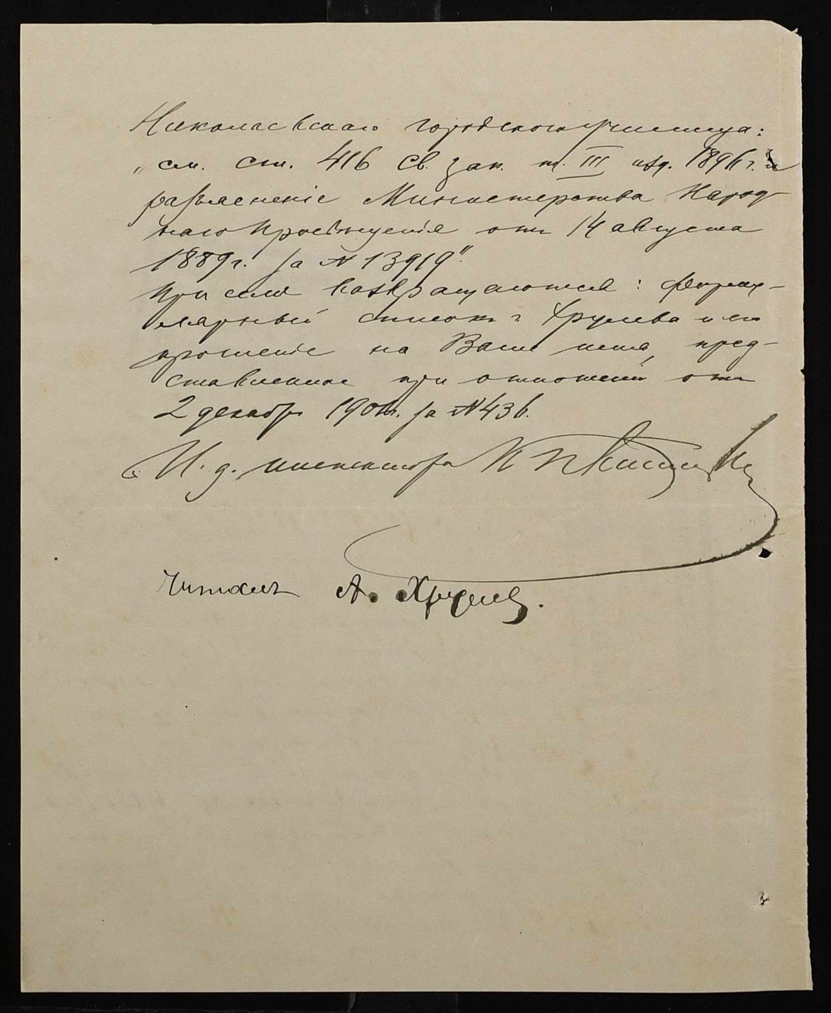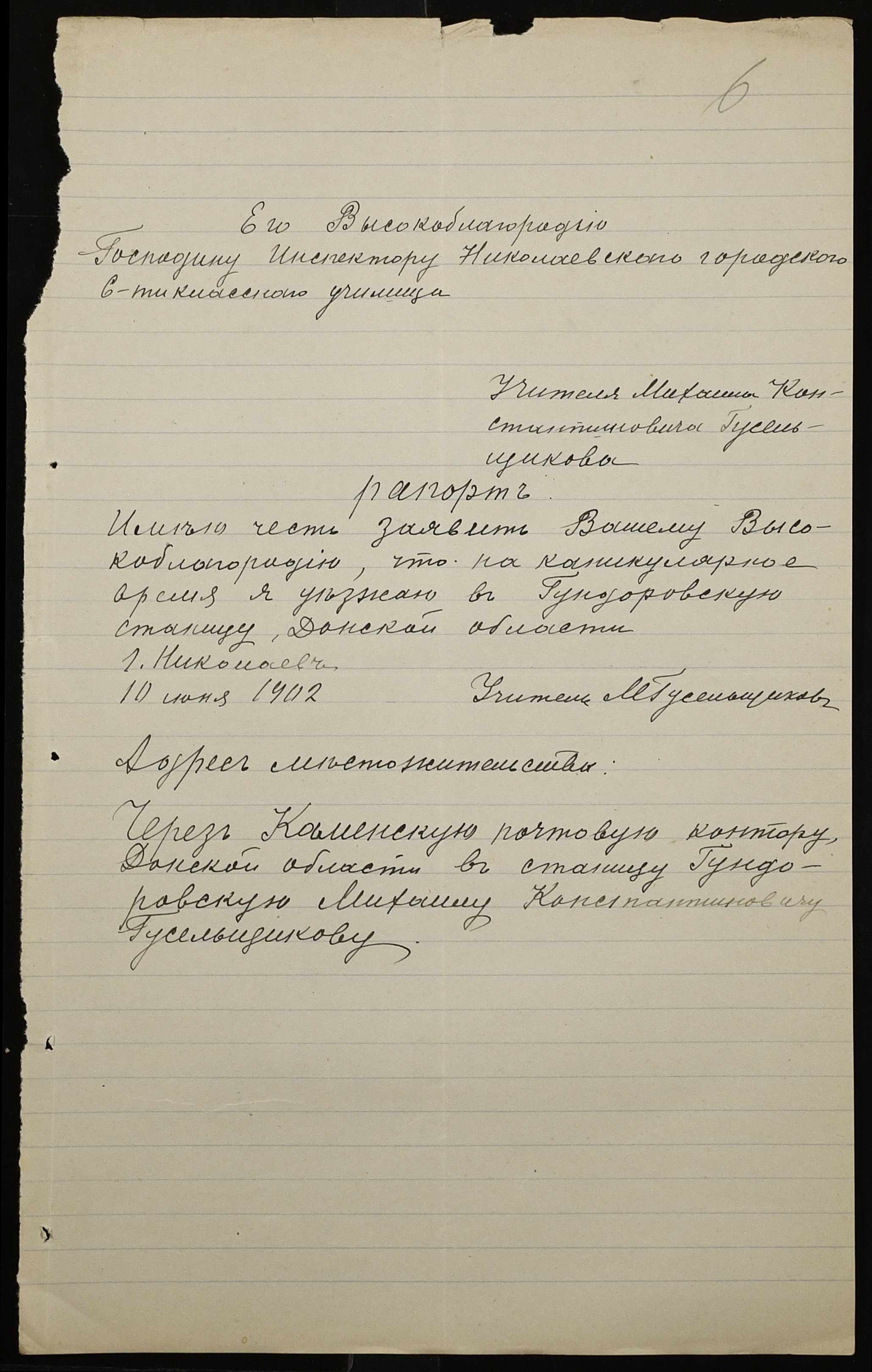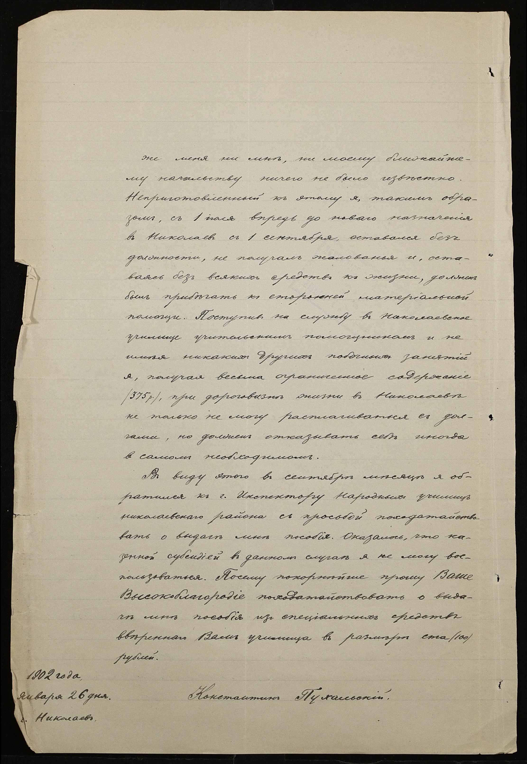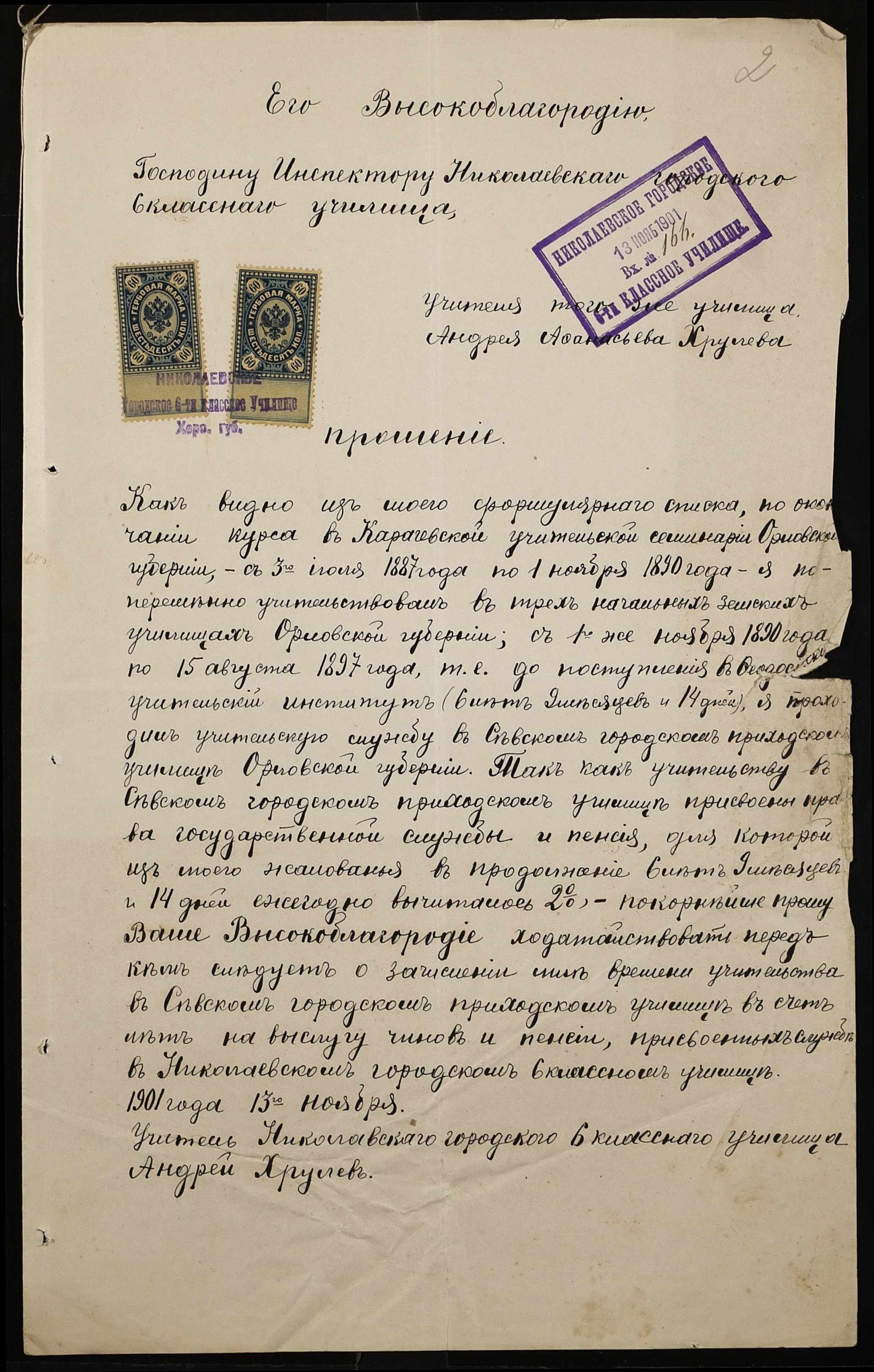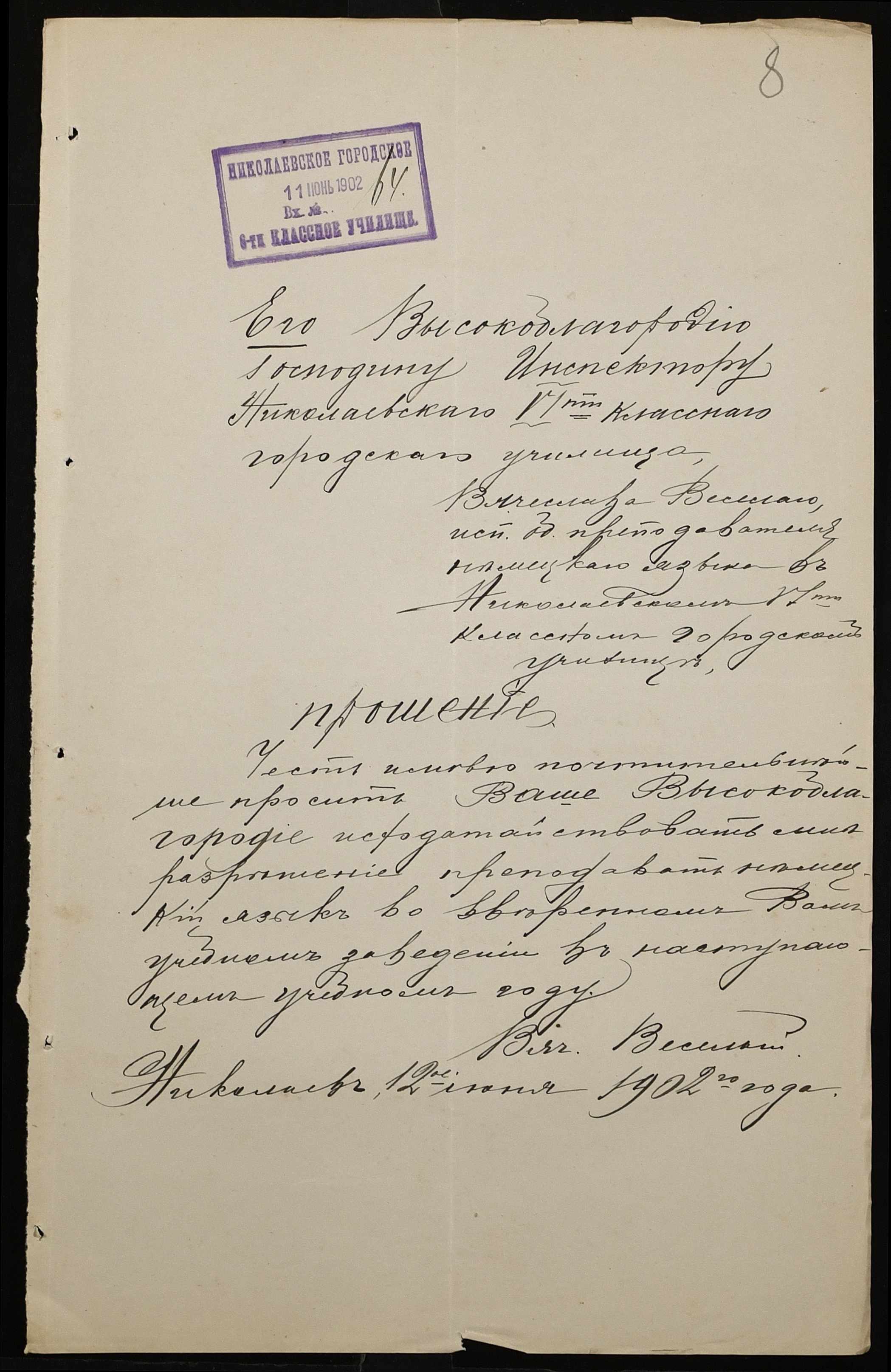 • • • • Справа № 377 “Листування з інспектором народних училищ 5-го району Херсонської губернії з особового складу”