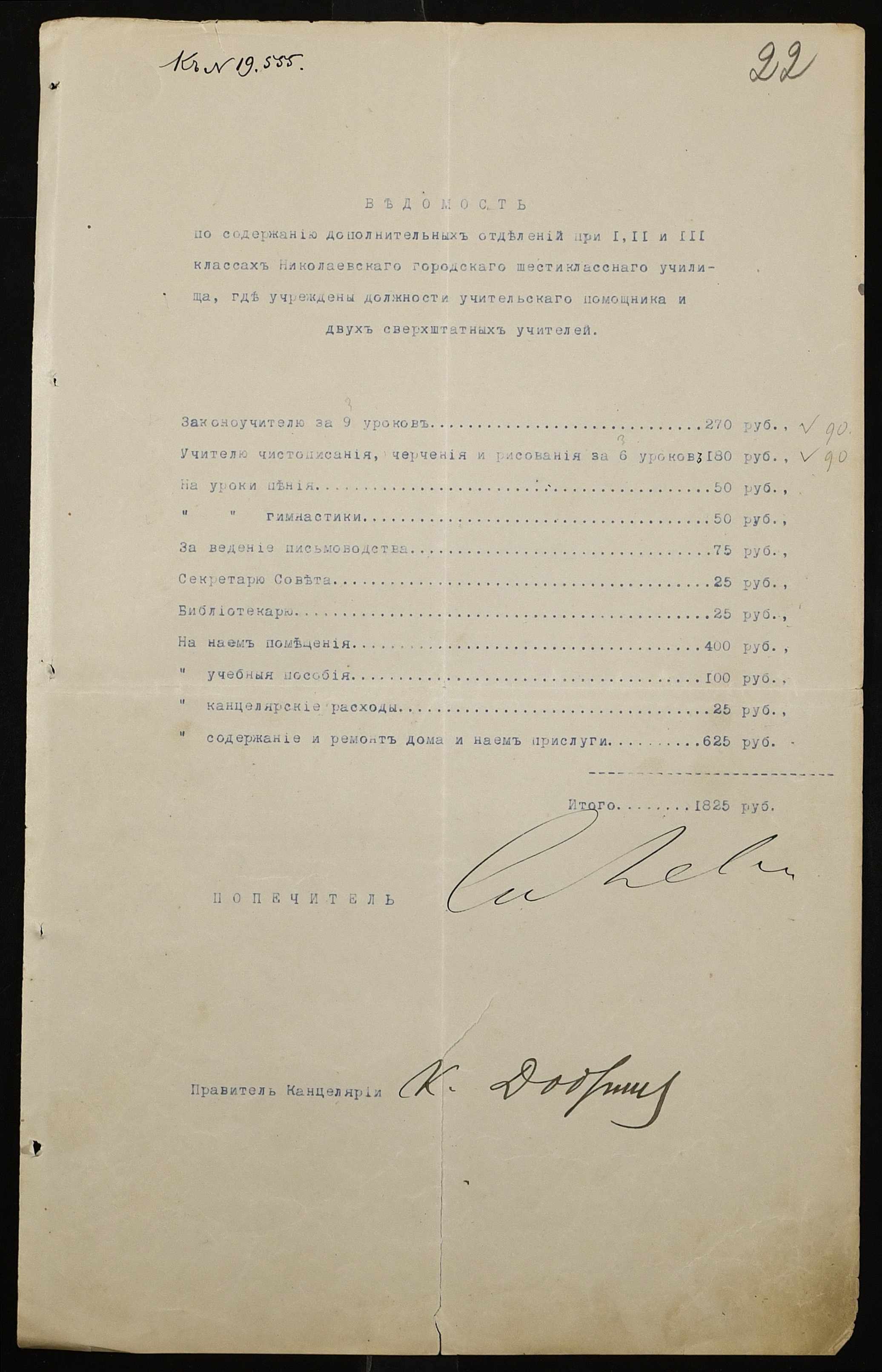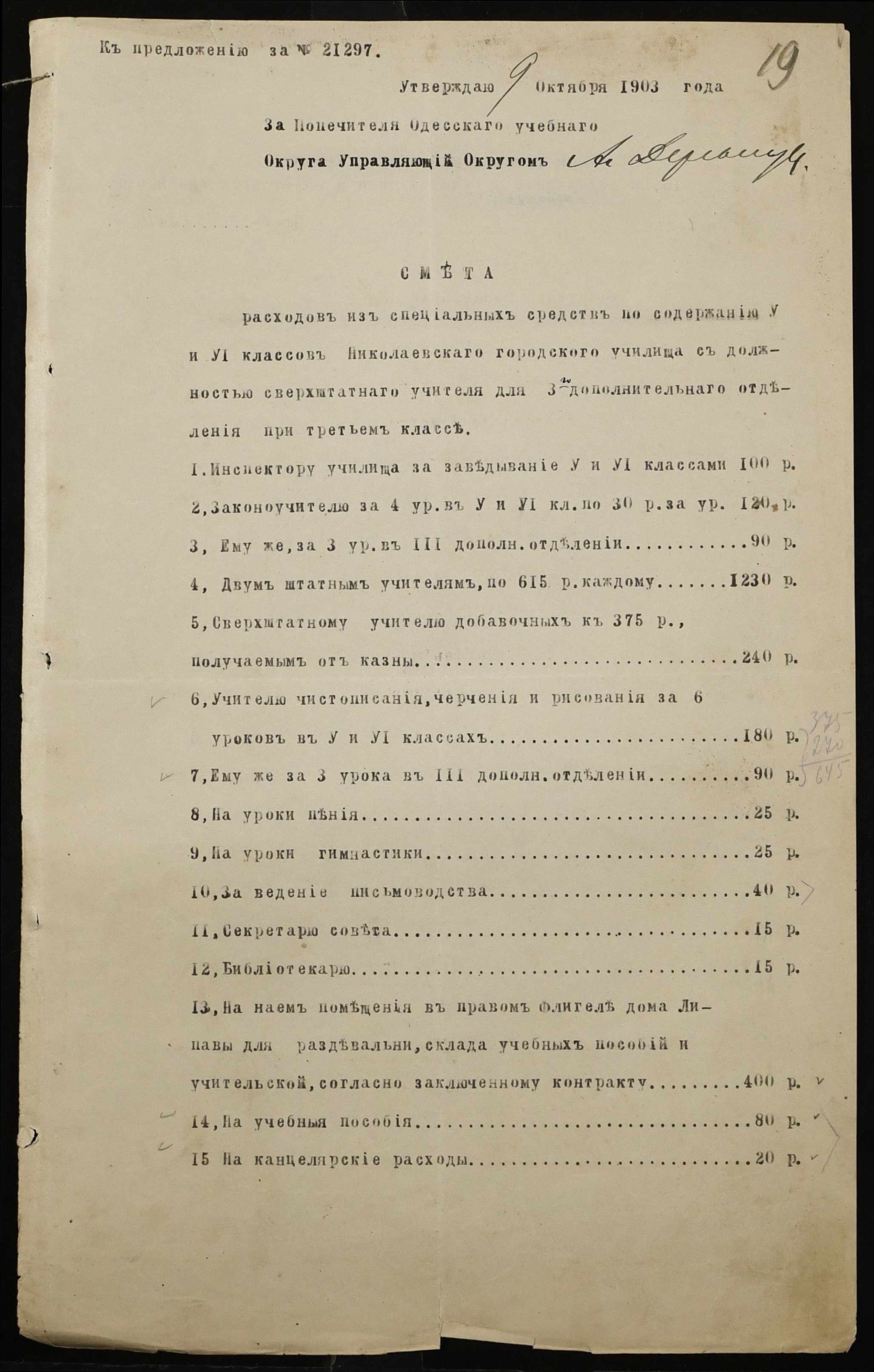 • • • • Справа № 385 “Договір про оренду будинку для училища, прибутково-видаткові документи, формулярні списки викладачів”