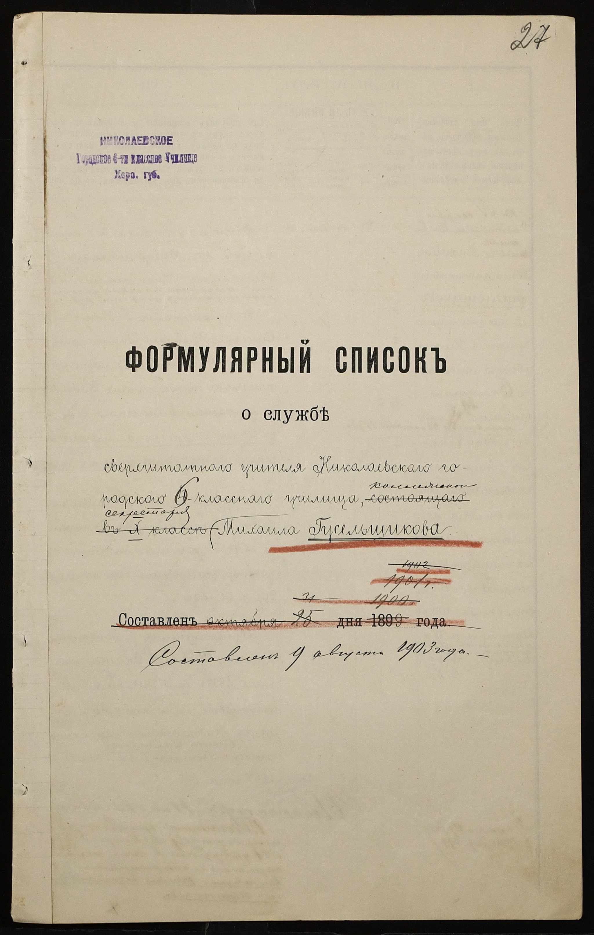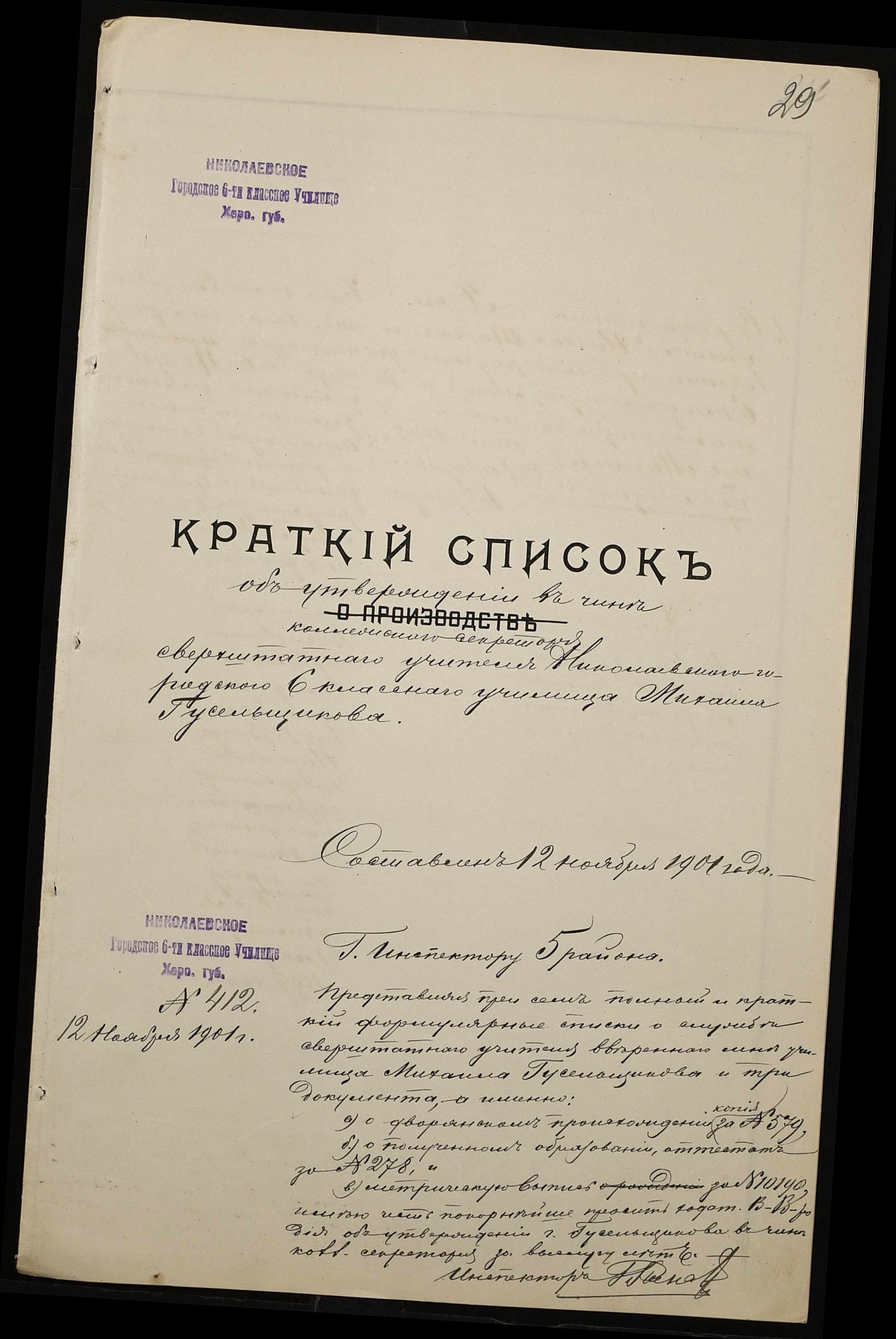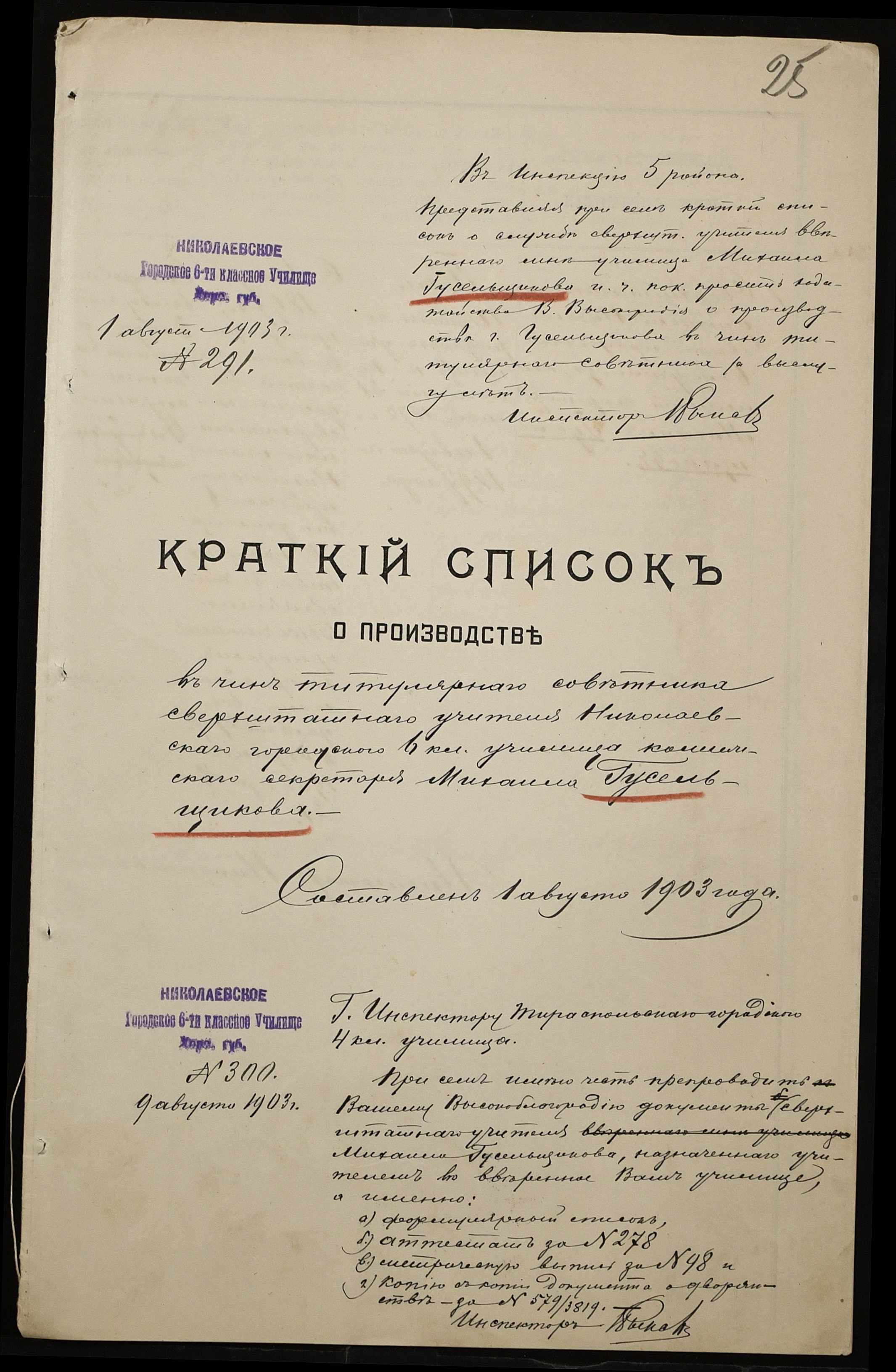 ◦ ◦ Фонд № 131 “Миколаївське перше вище початкове училище”