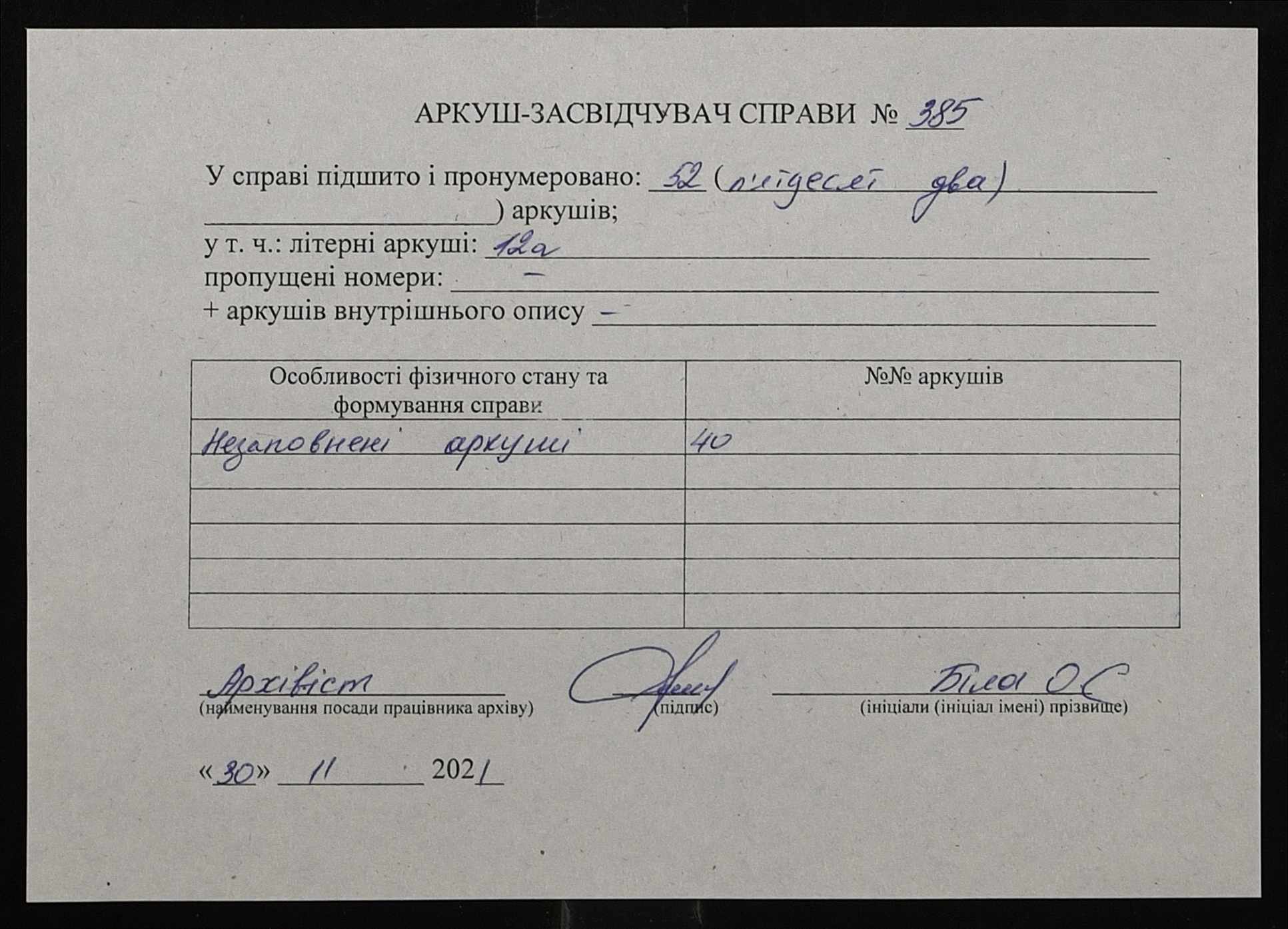 Фонд 131 / Опис 1 / Справа 385