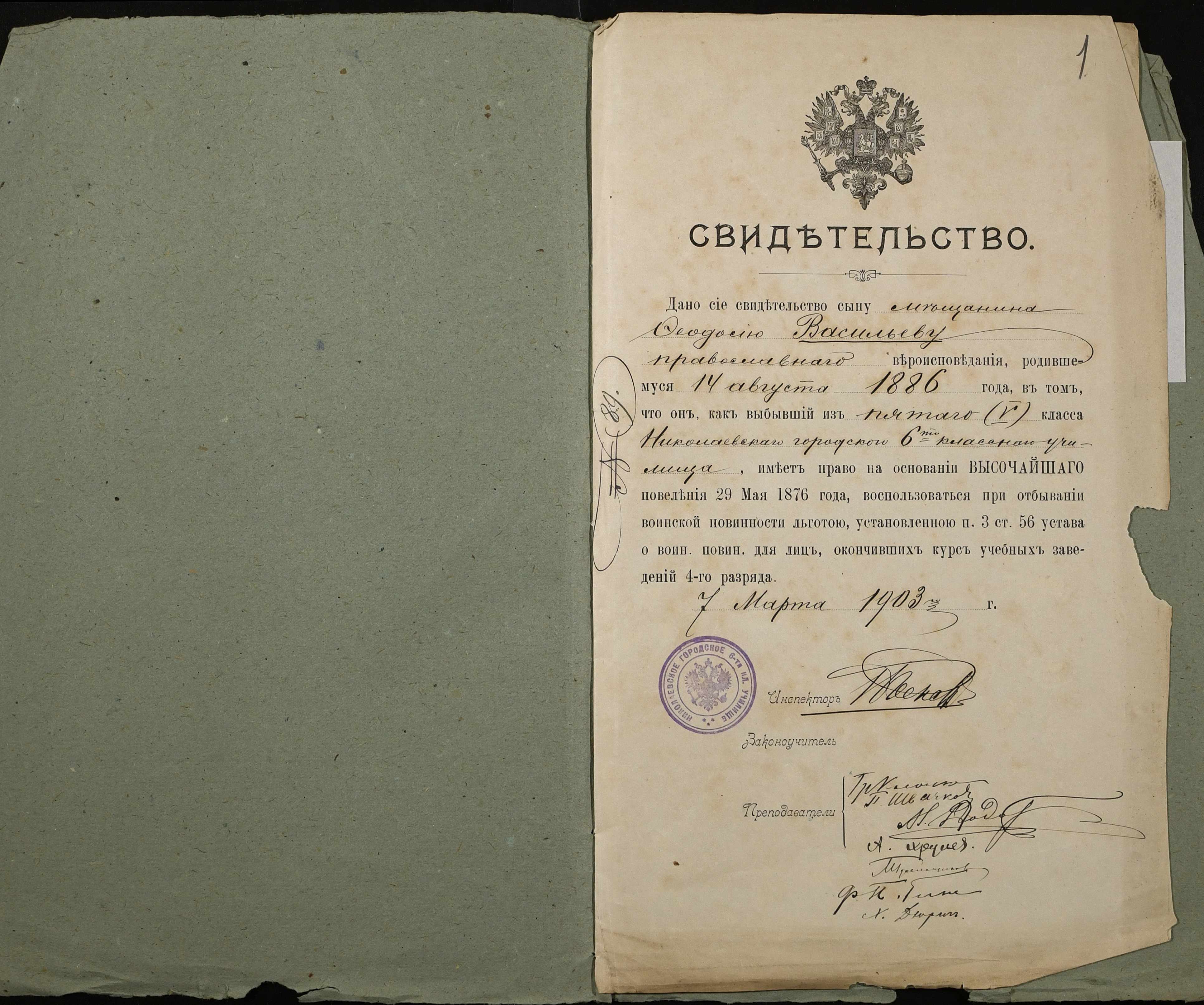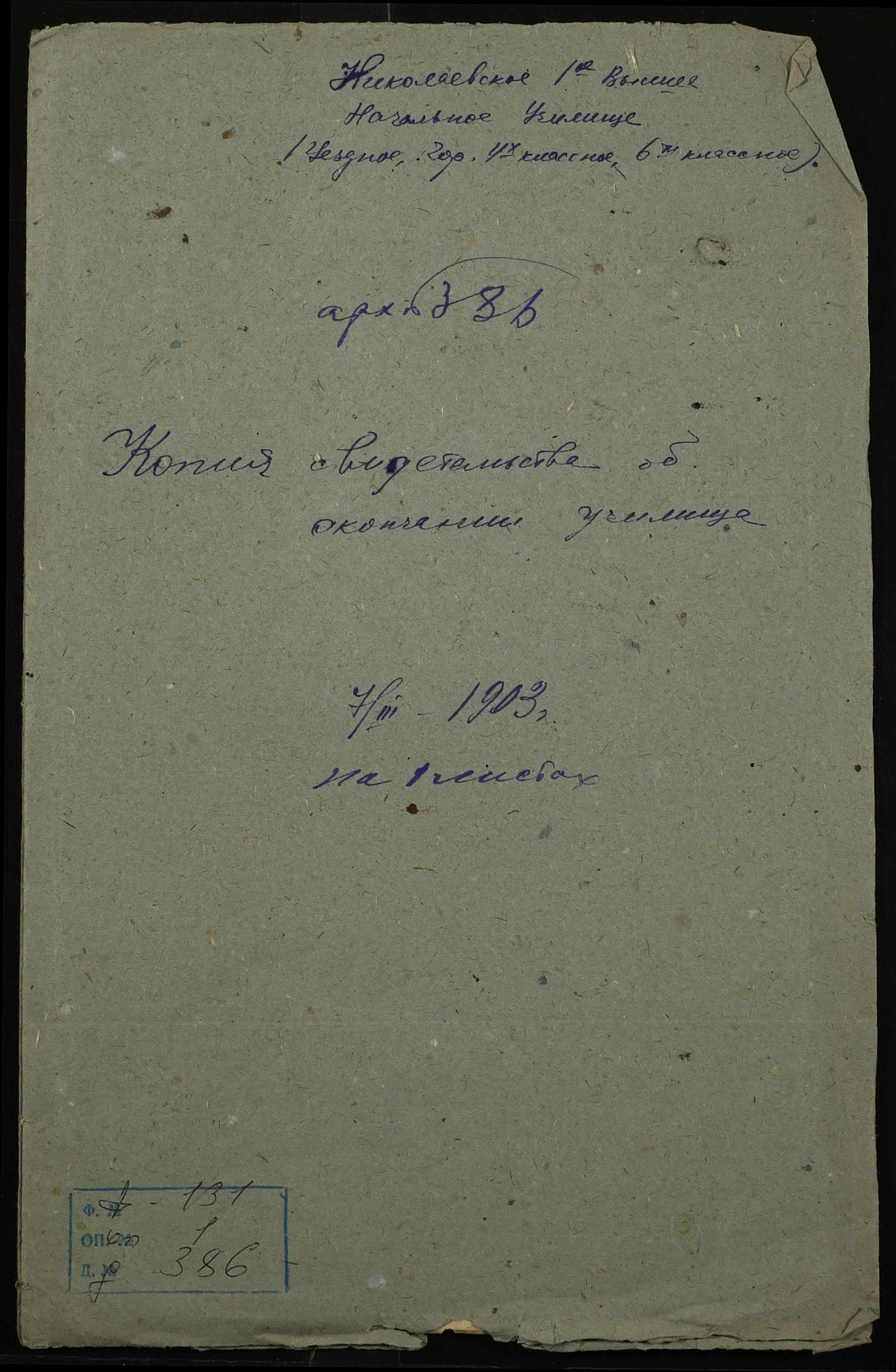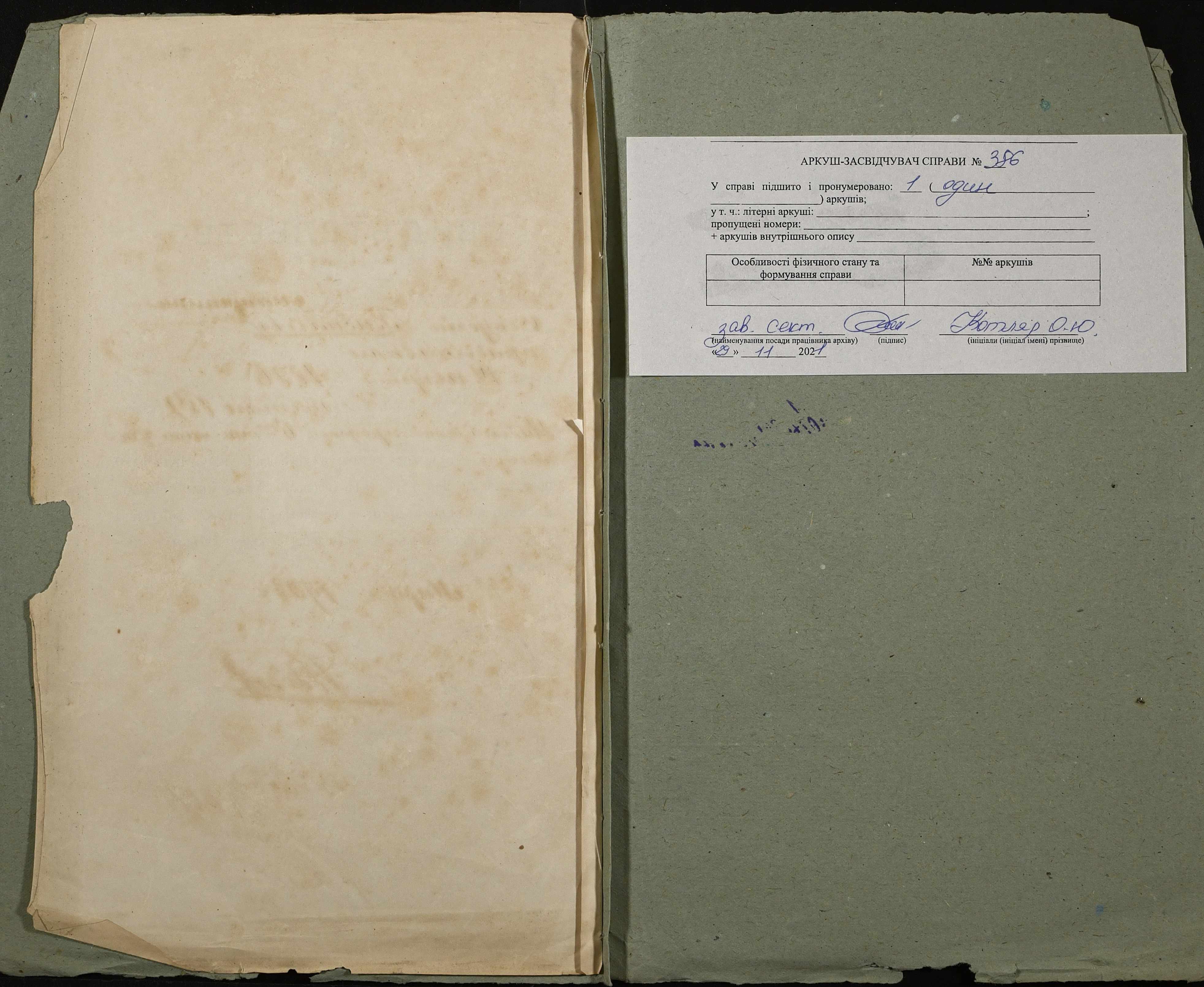 • • • • Справа № 386 “Свідоцтво про право користування пільгами на відбування військової повинності міщанина Ф. Васильєва (Ф. Васильева)”