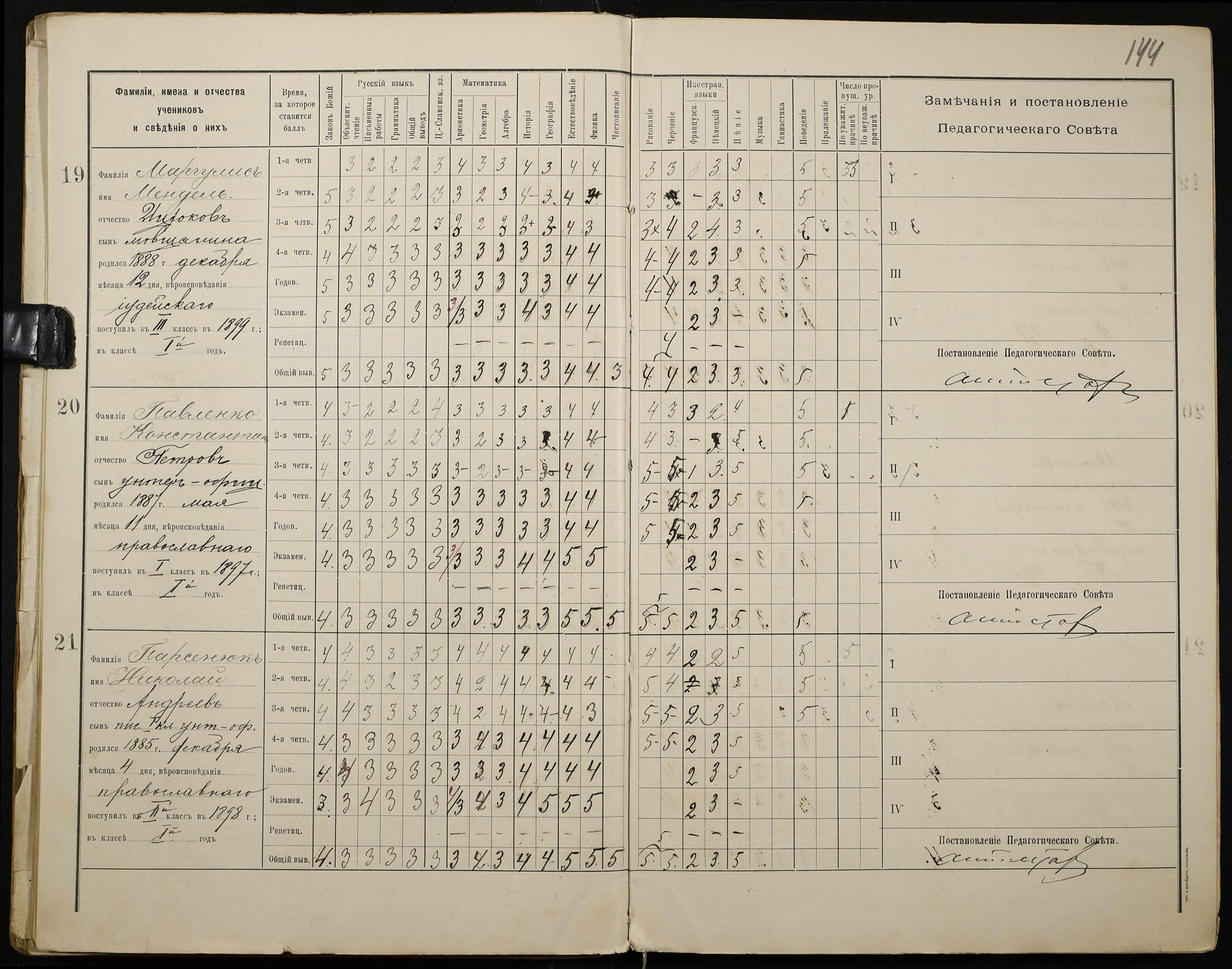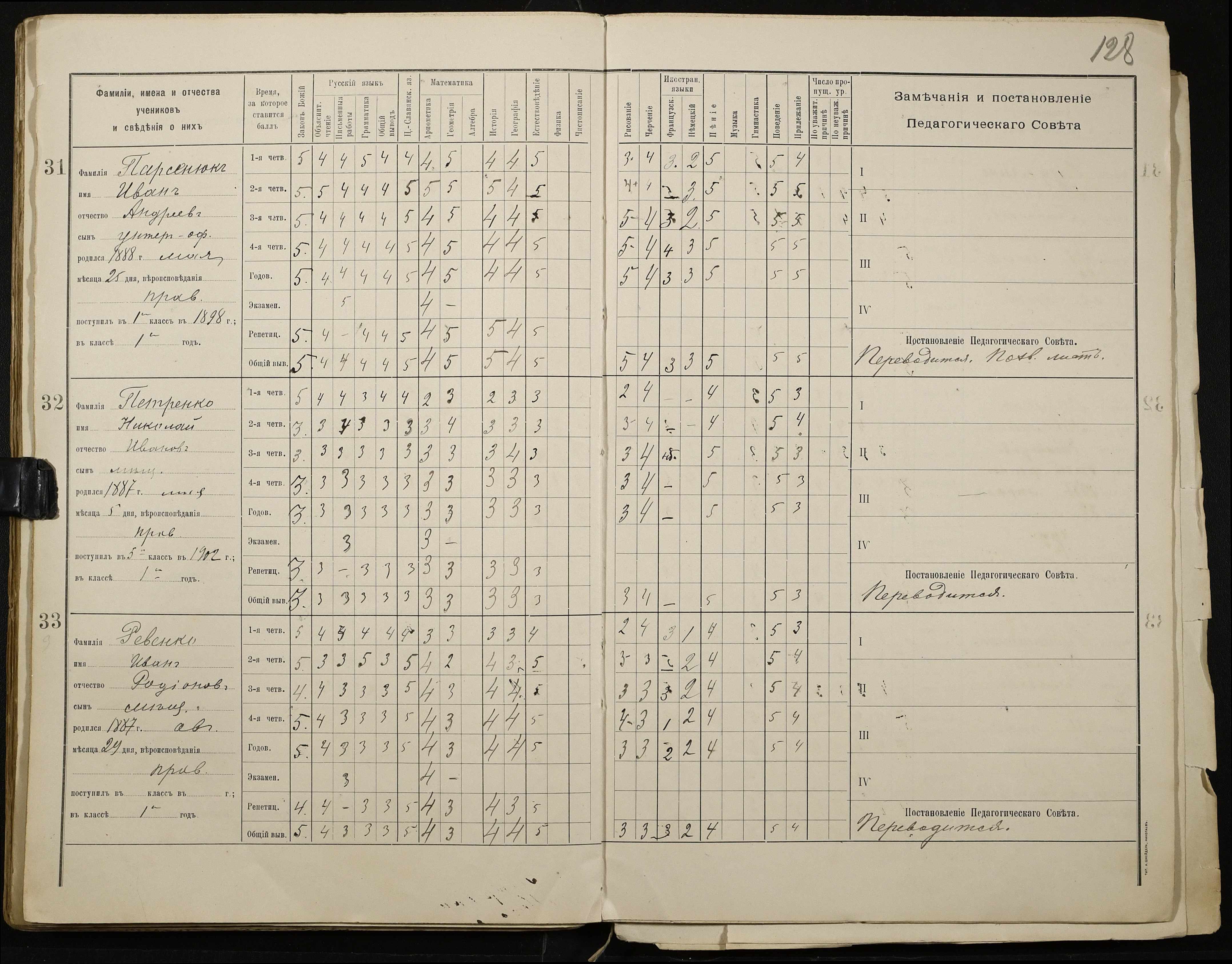 • • • • Справа № 388 “Відомості успішності і поведінки учнів першого класу за 1902-1903 навчальний рік”