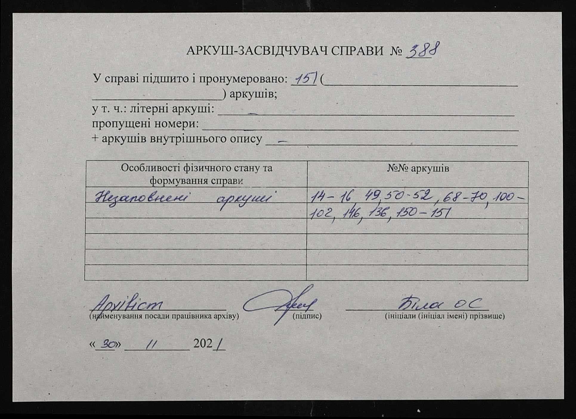 ◦ ◦ ◦ Опис № 1 справ постійного зберігання за 1847-1852, 1858, 1868-1869, 1871-1919, 1922 роки