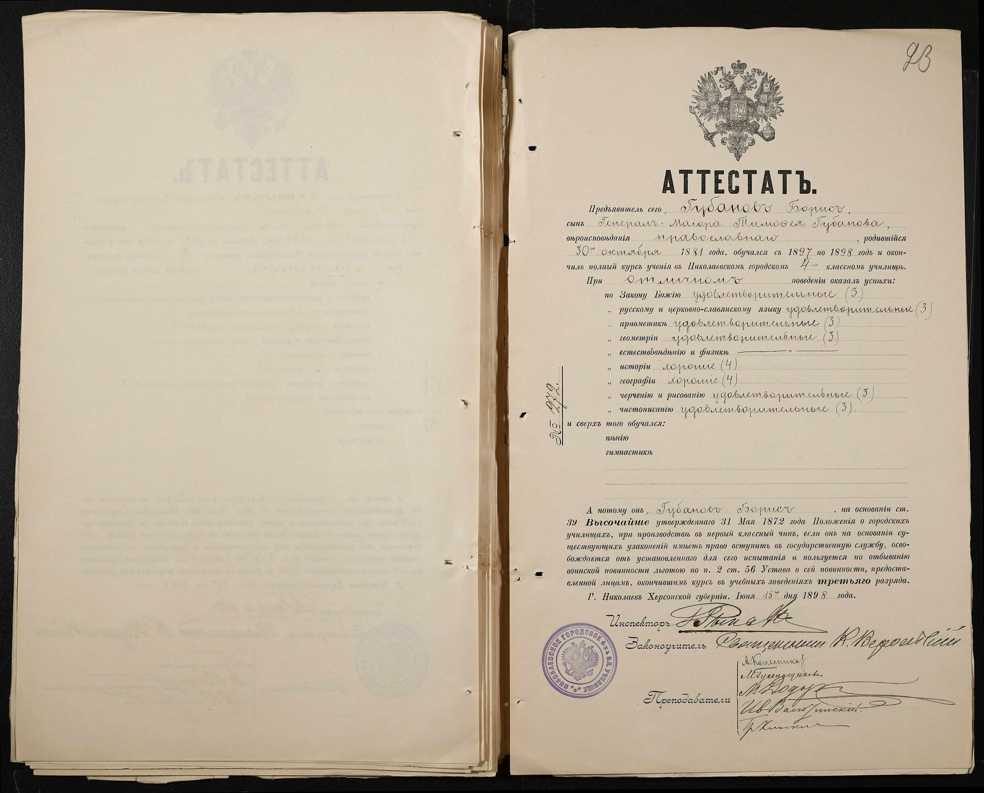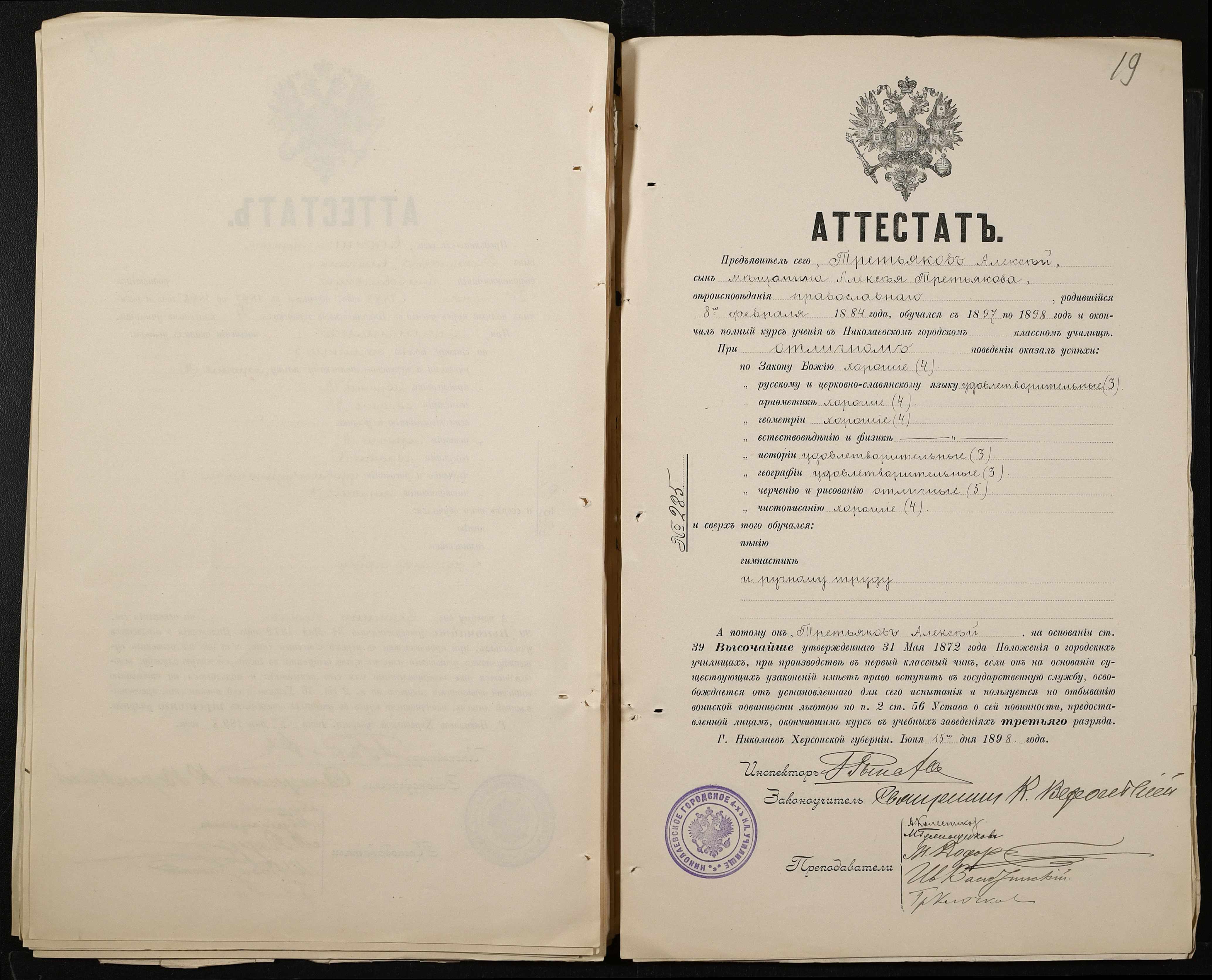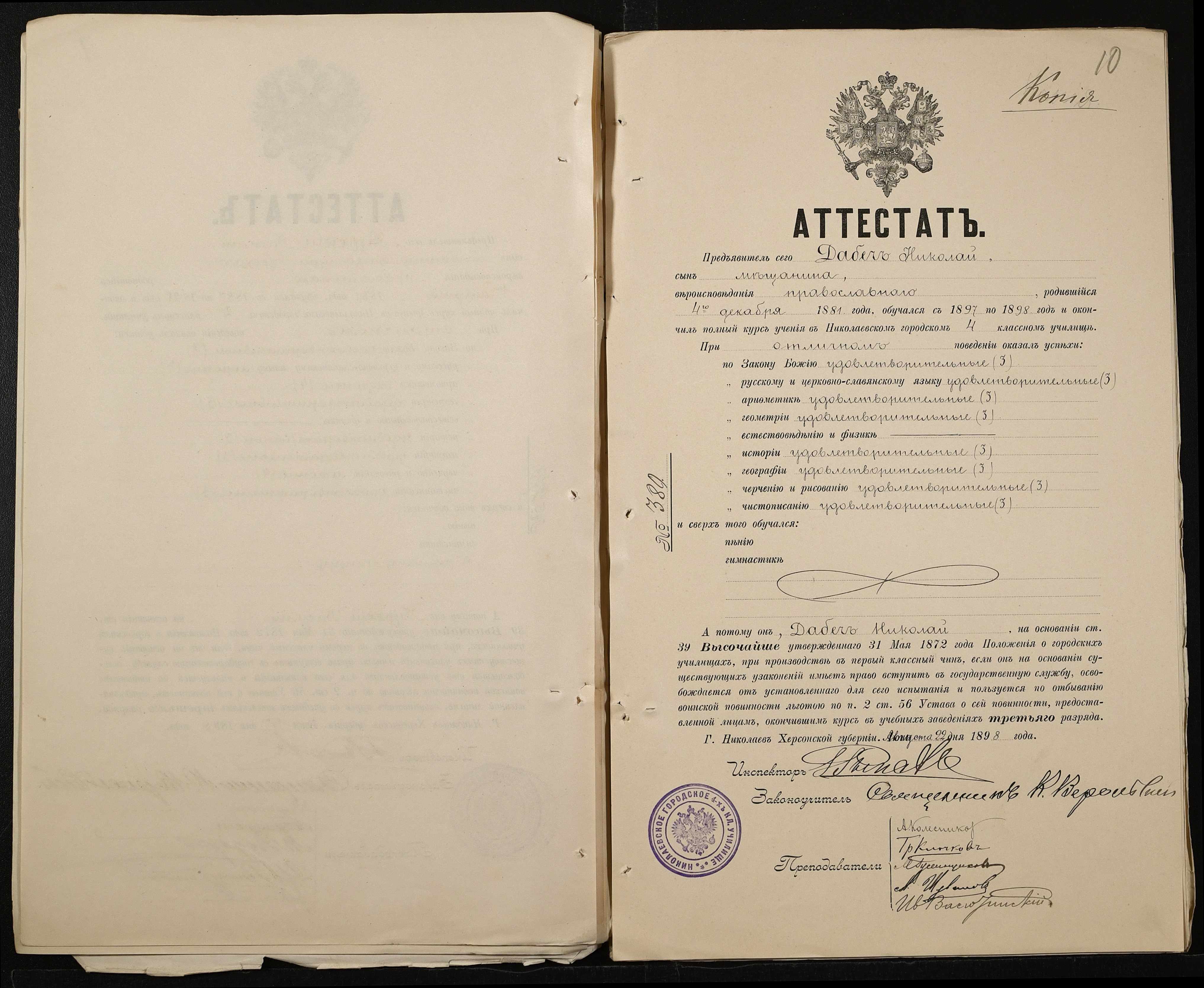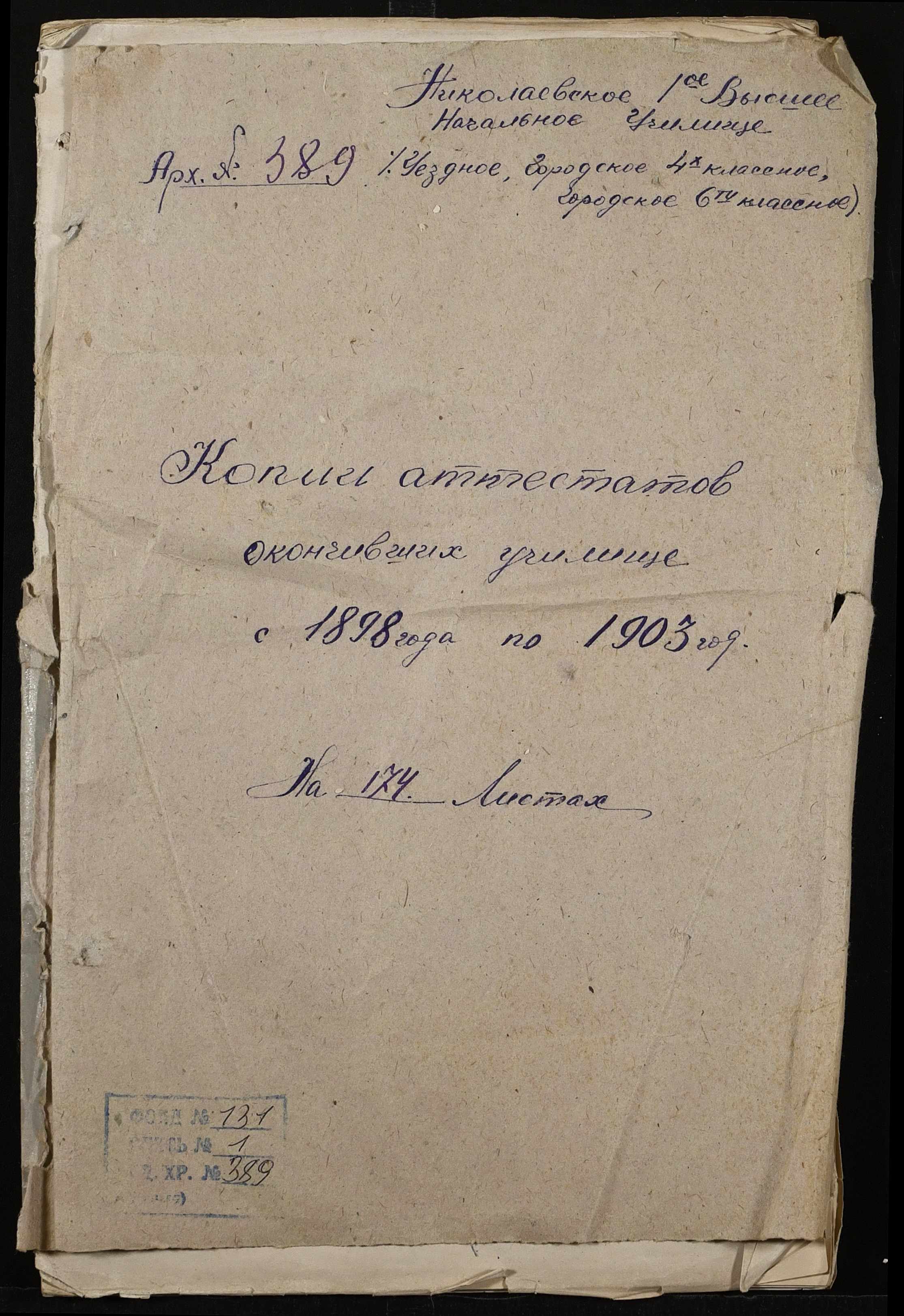 • • • • Справа № 389 “Атестати учнів про закінчення чотирикласного (шестикласного) училища (копії)”