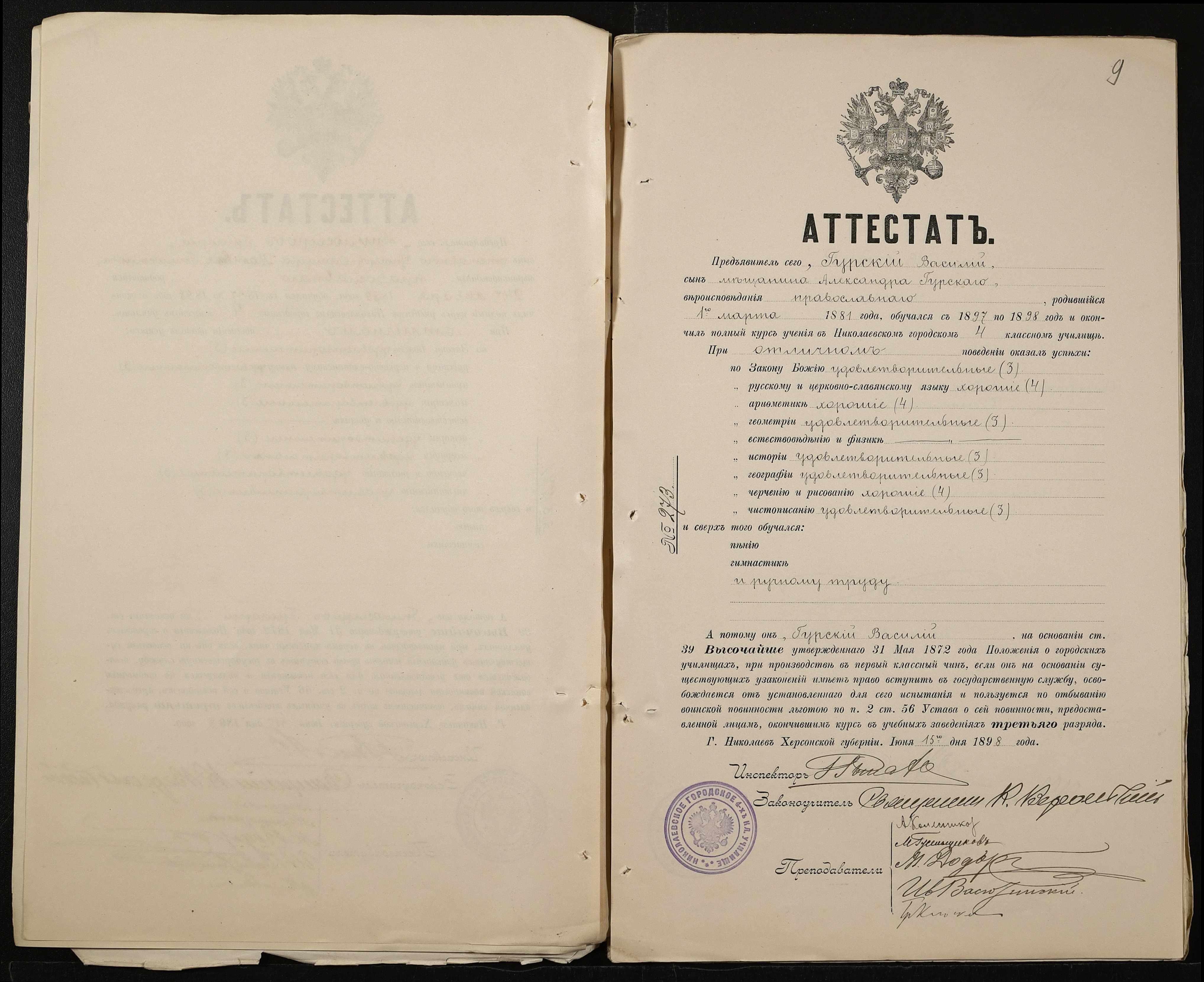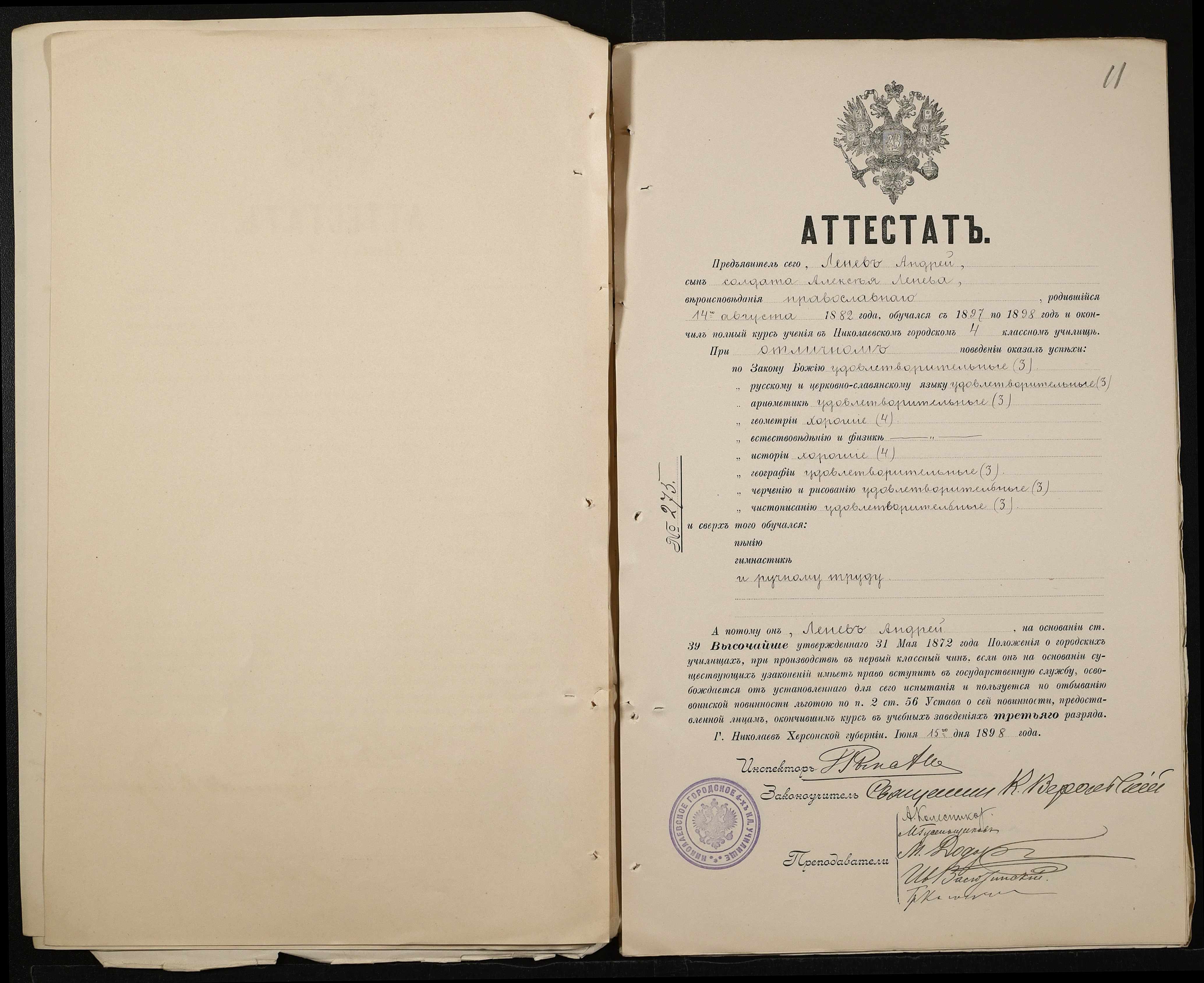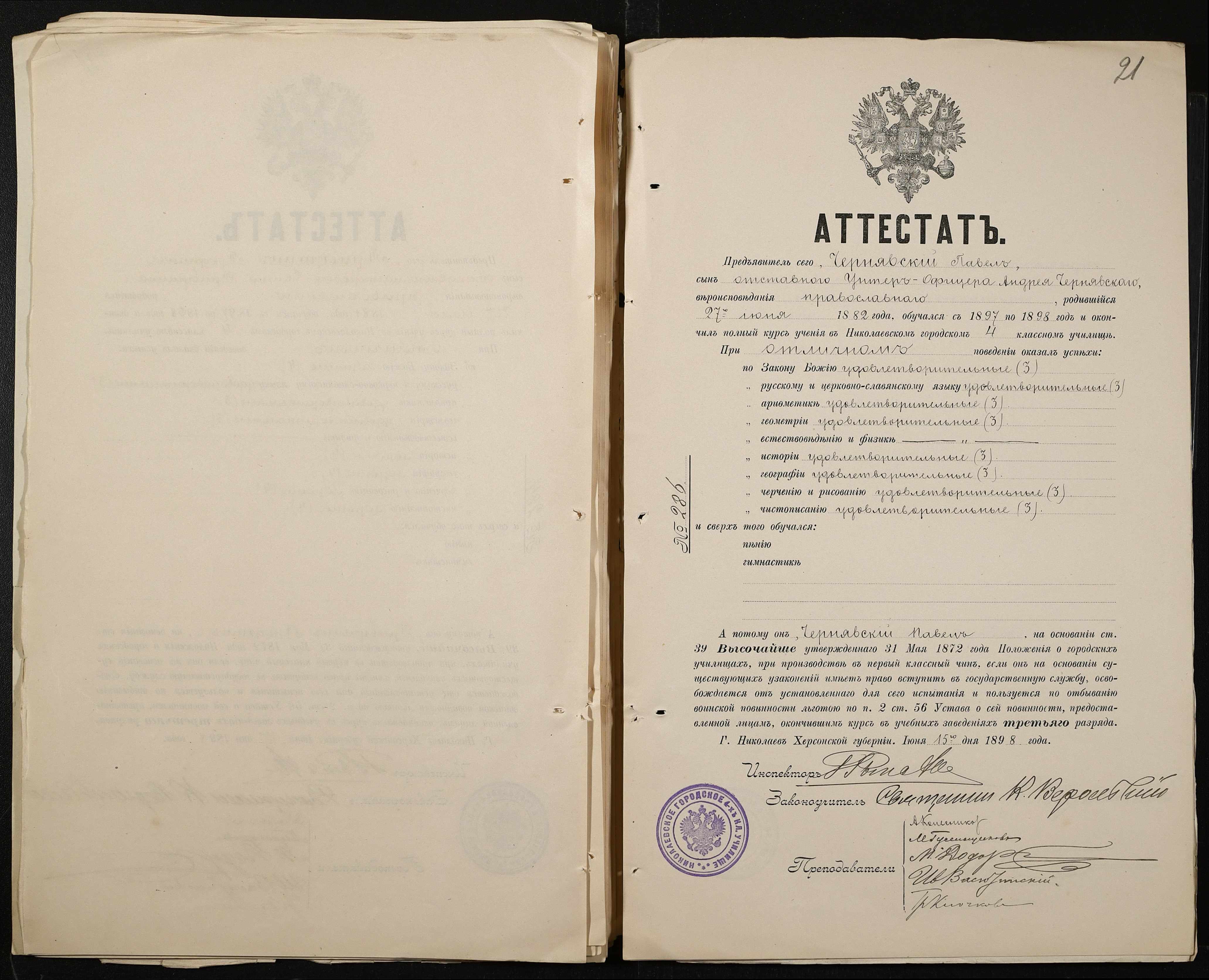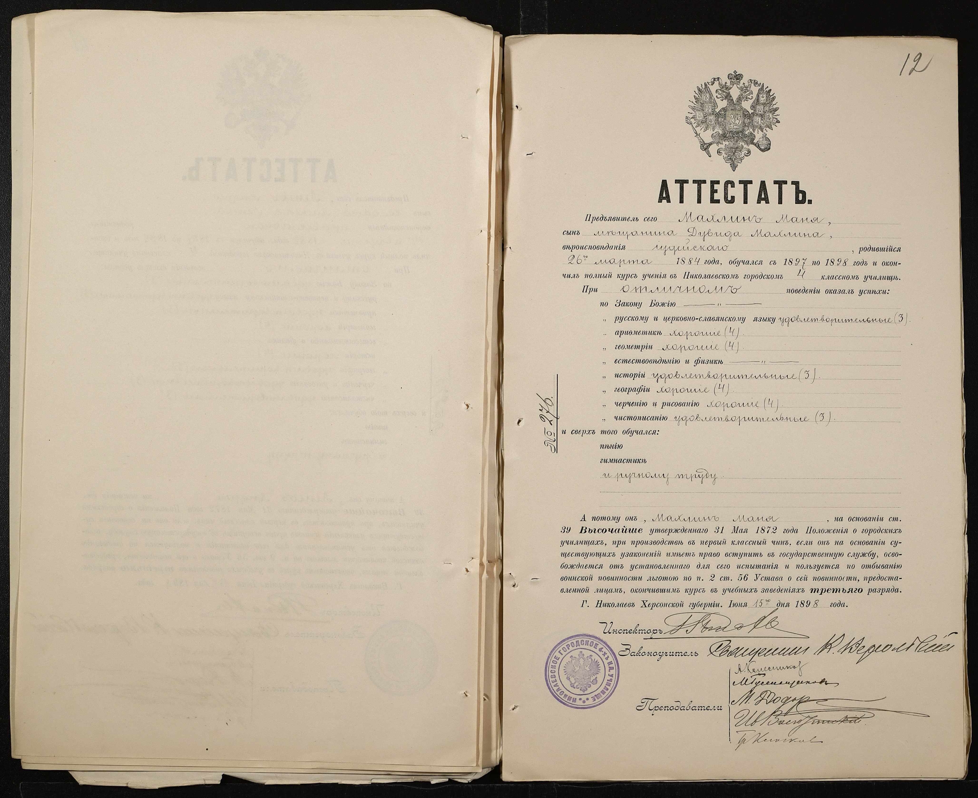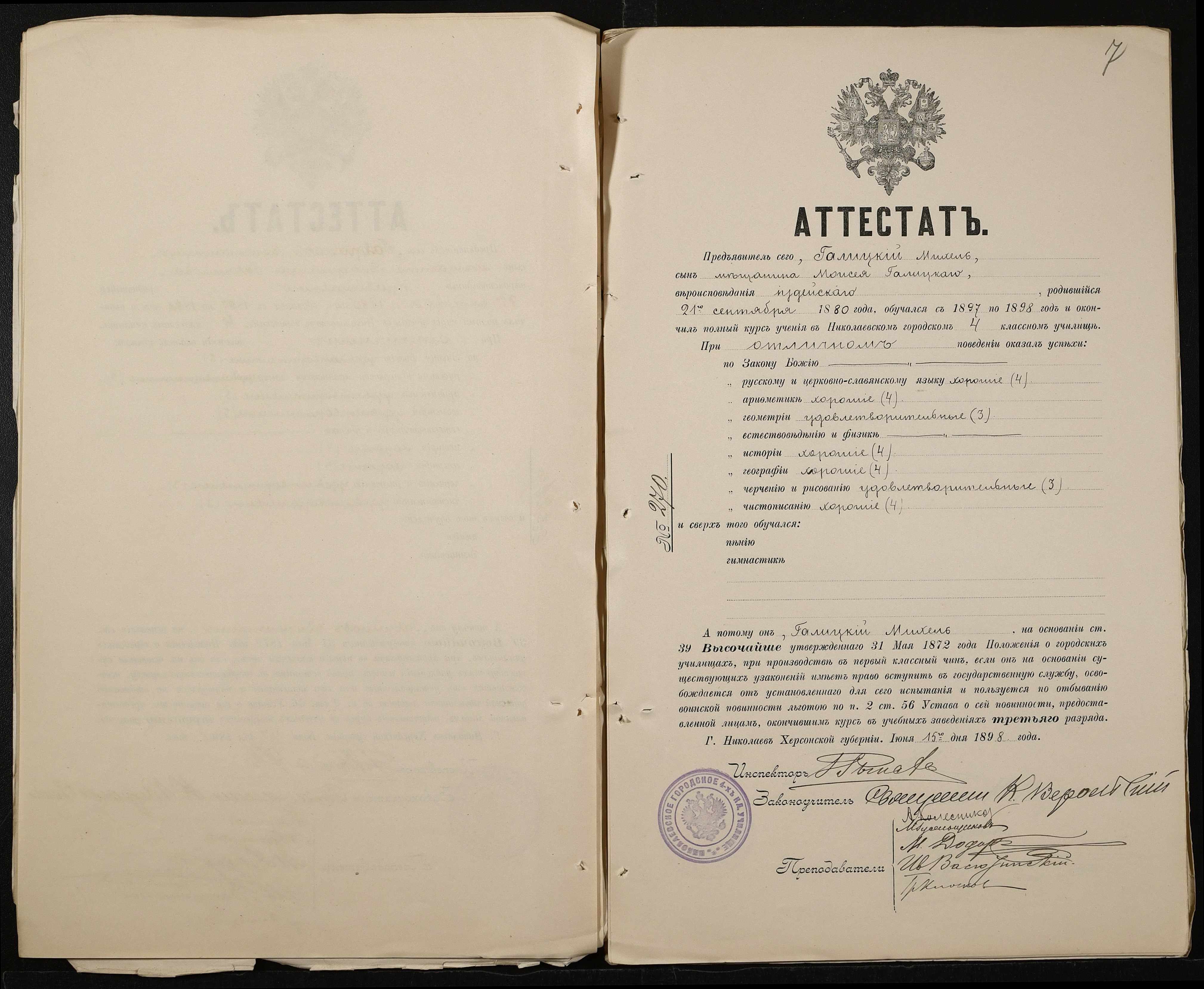 • • • • Справа № 389 “Атестати учнів про закінчення чотирикласного (шестикласного) училища (копії)”