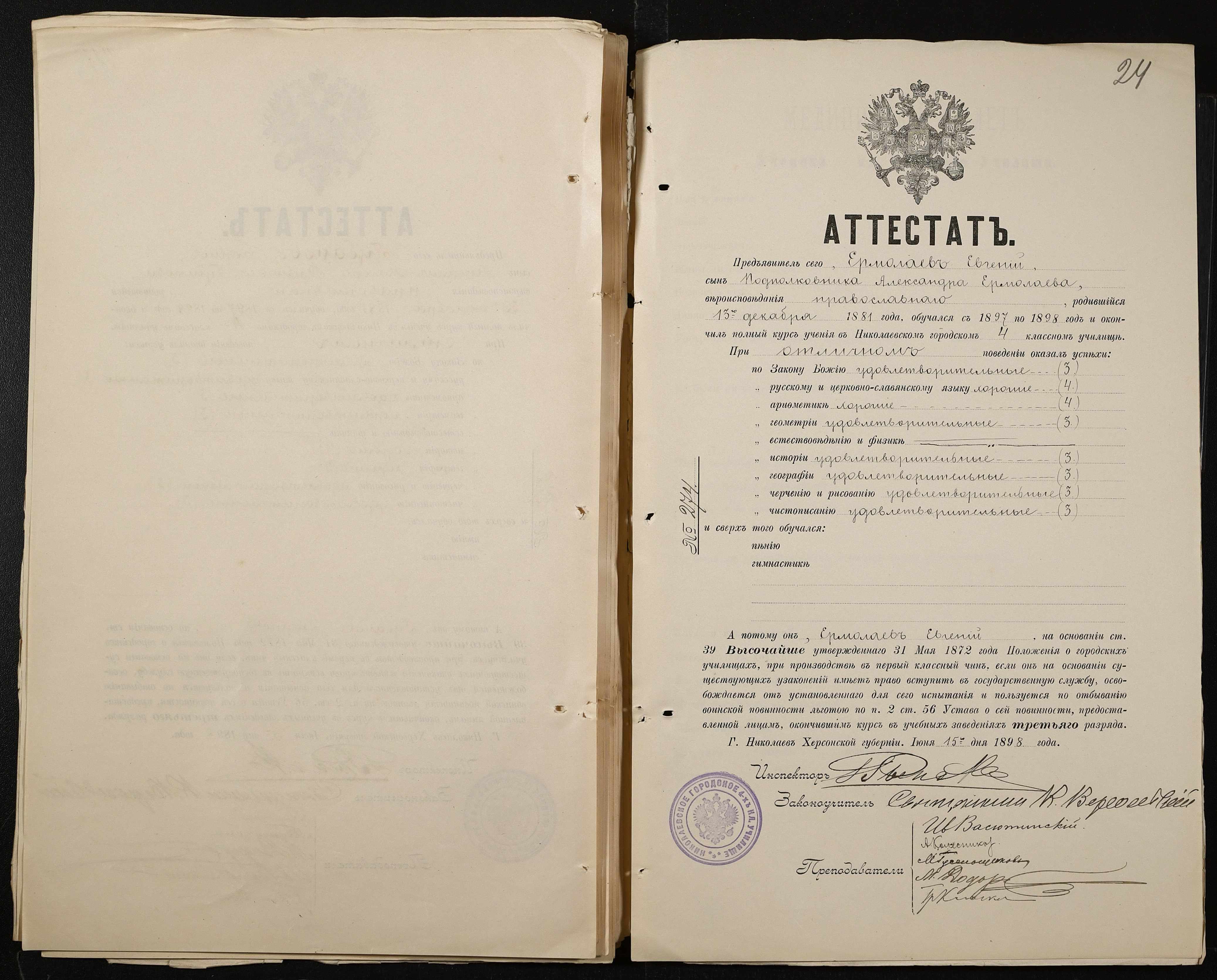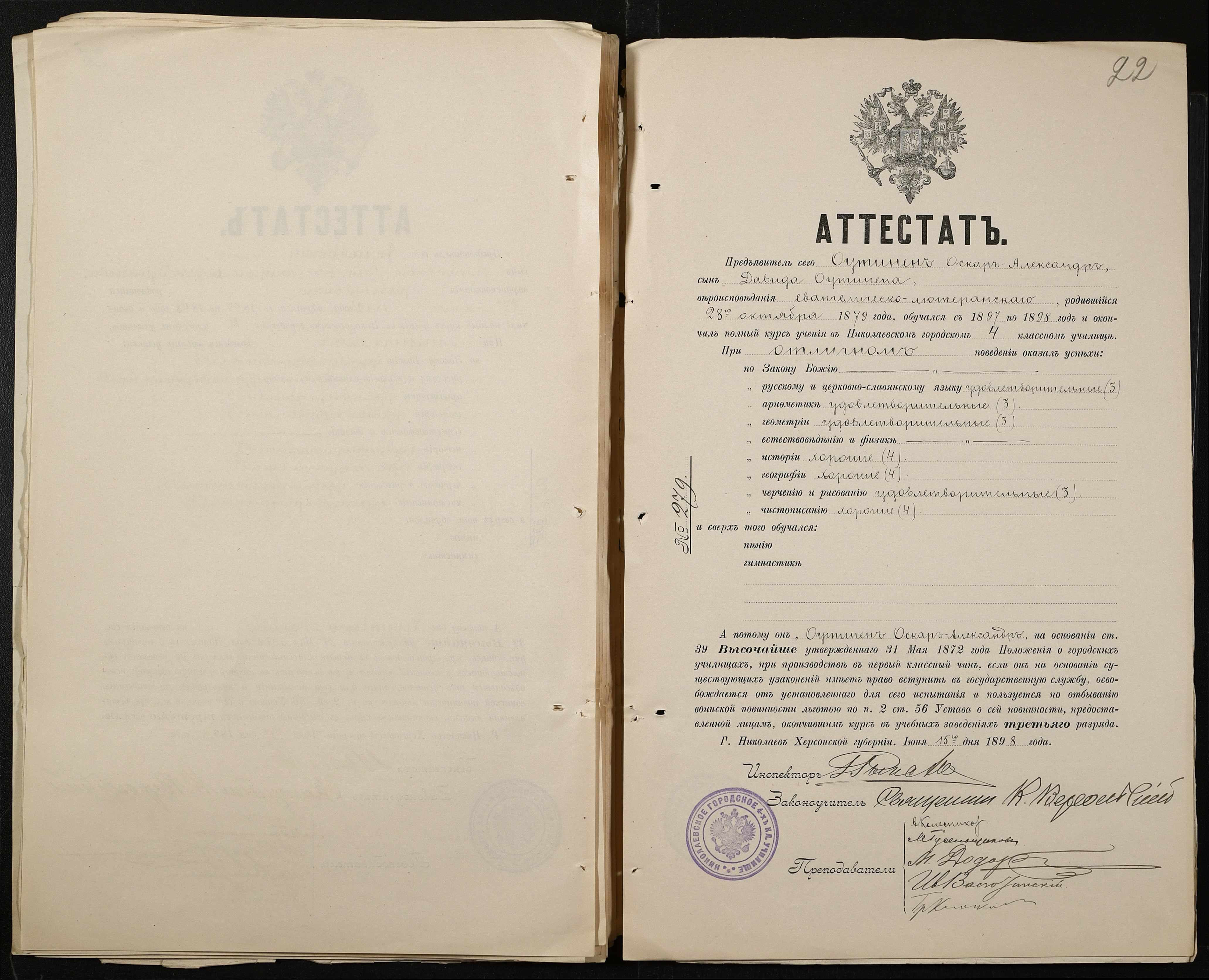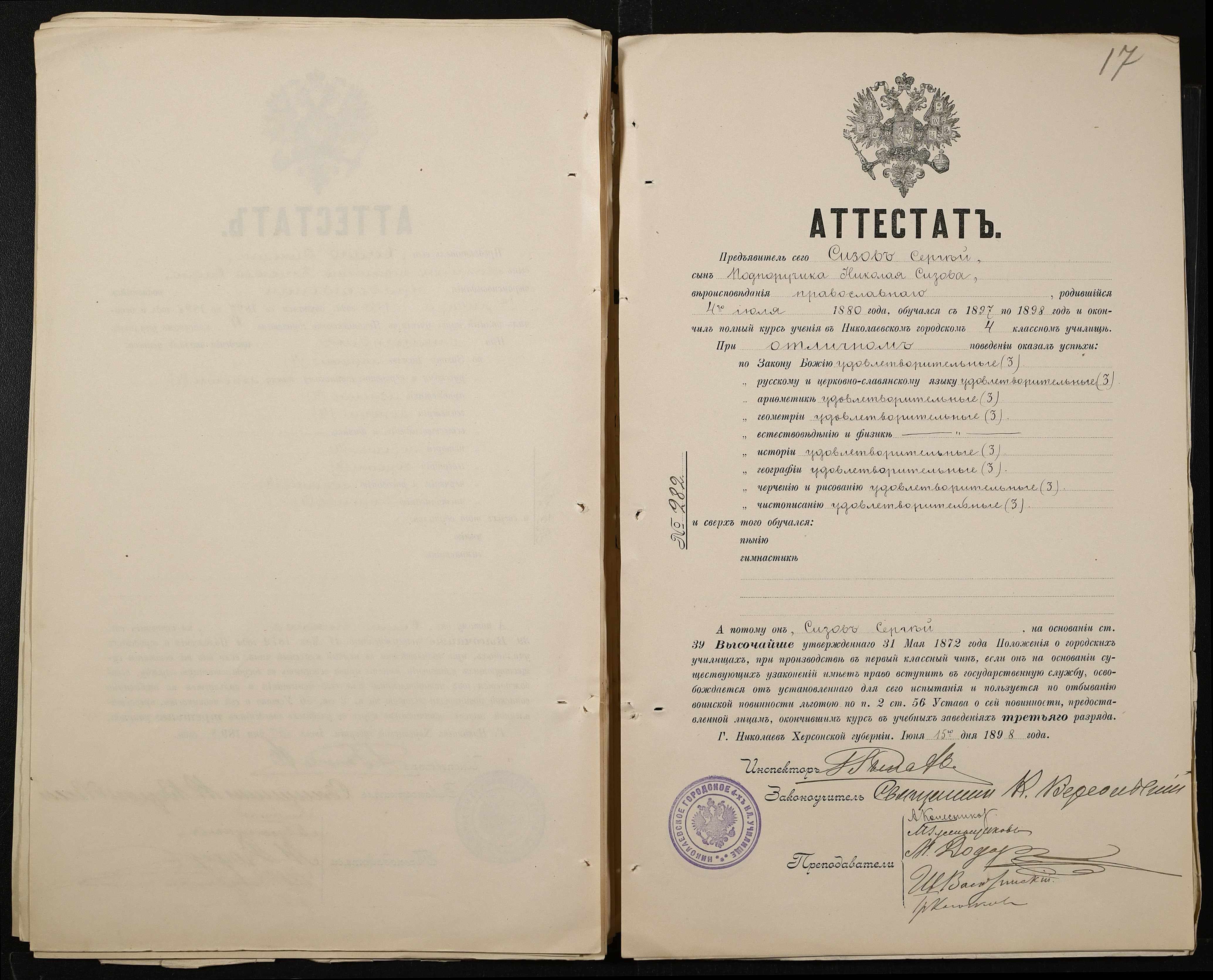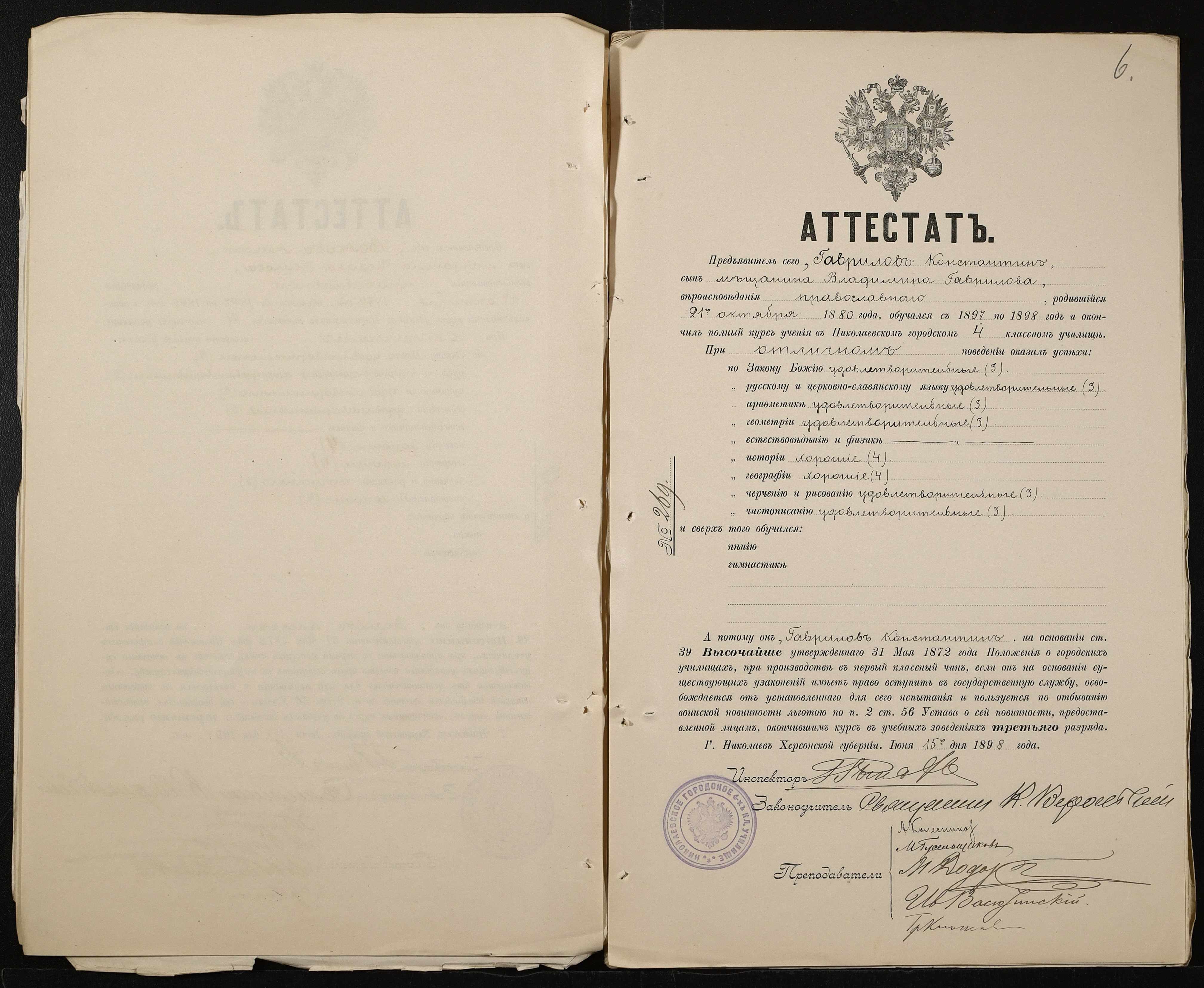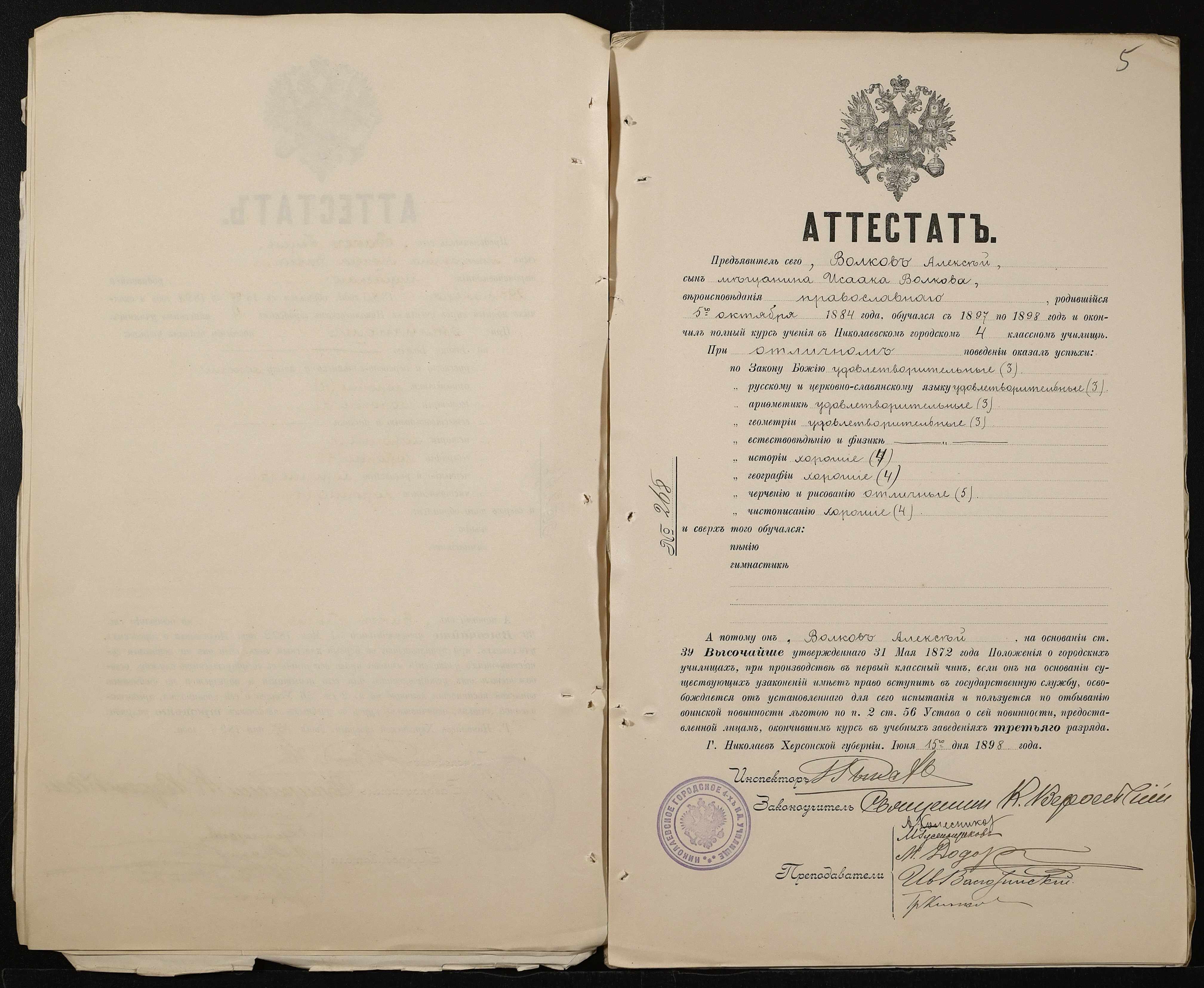• • • • Справа № 389 “Атестати учнів про закінчення чотирикласного (шестикласного) училища (копії)”