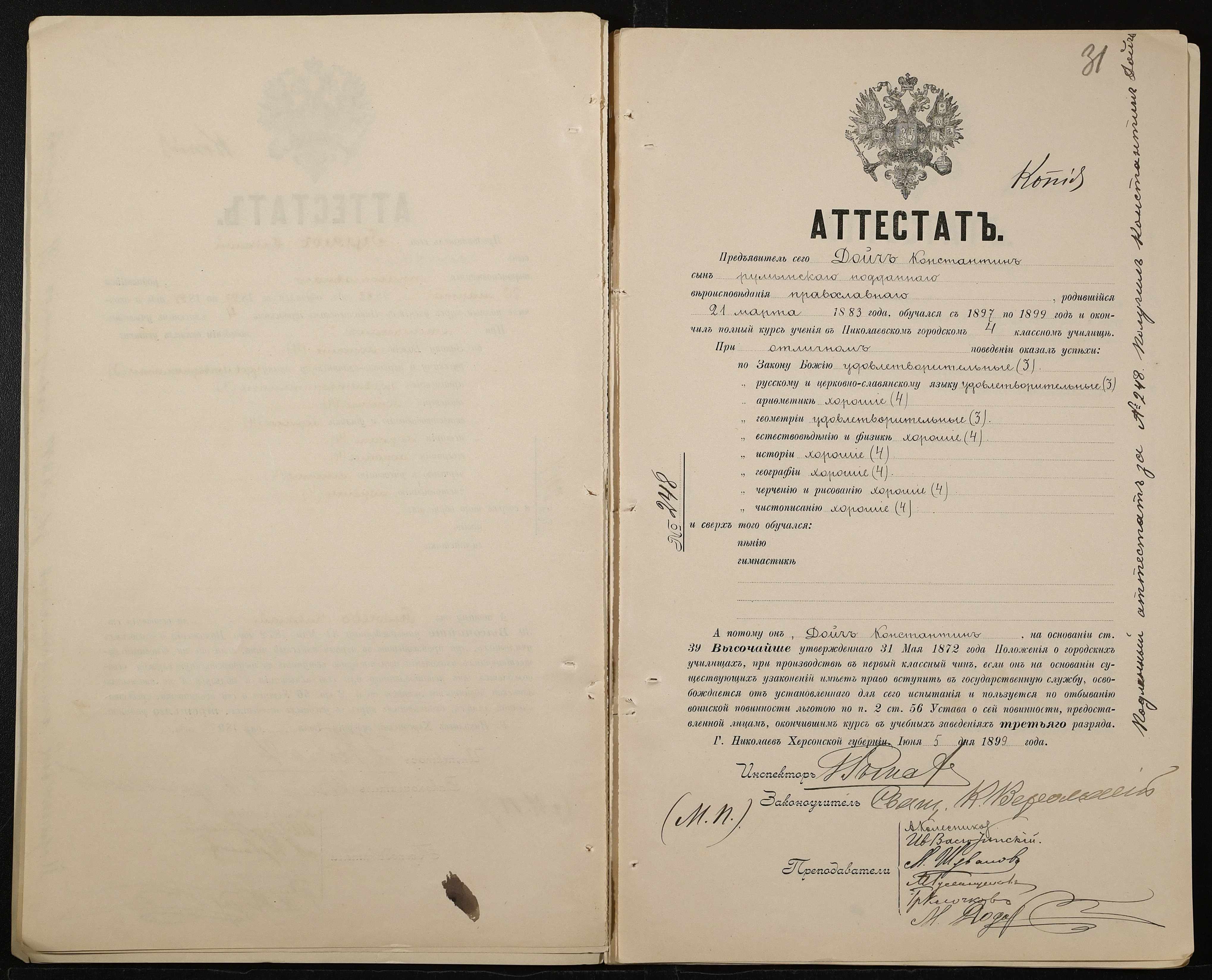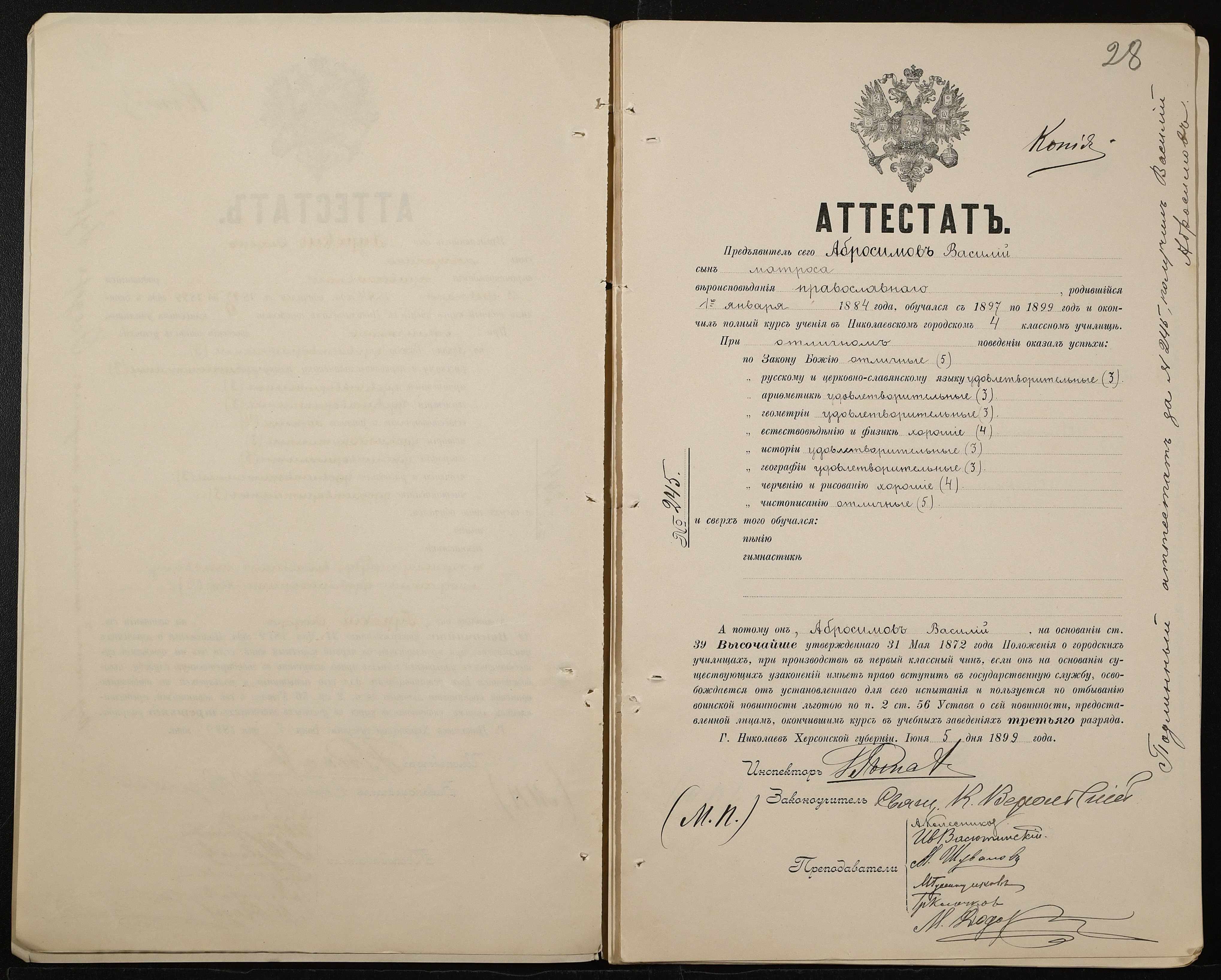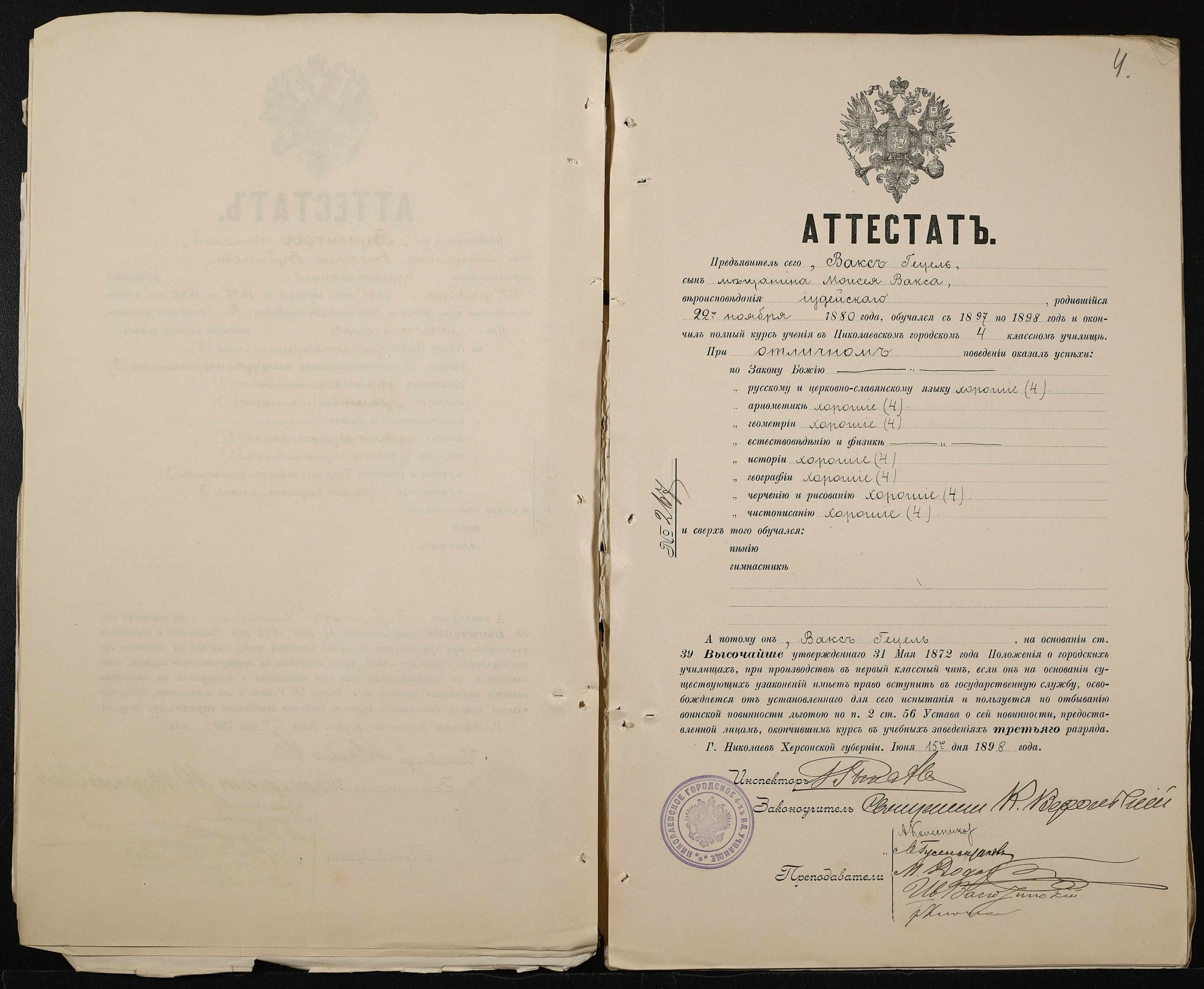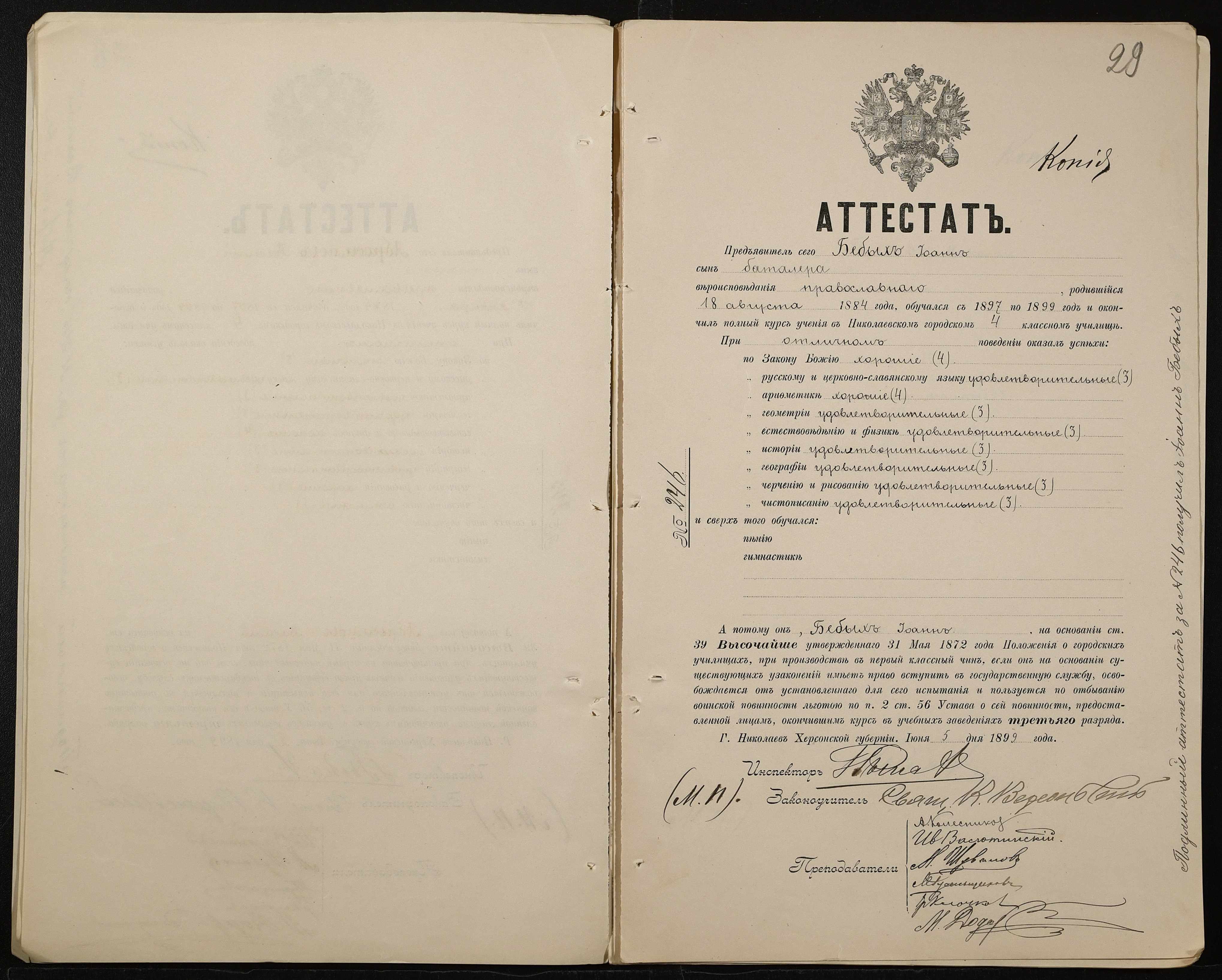 • • • • Справа № 389 “Атестати учнів про закінчення чотирикласного (шестикласного) училища (копії)”
