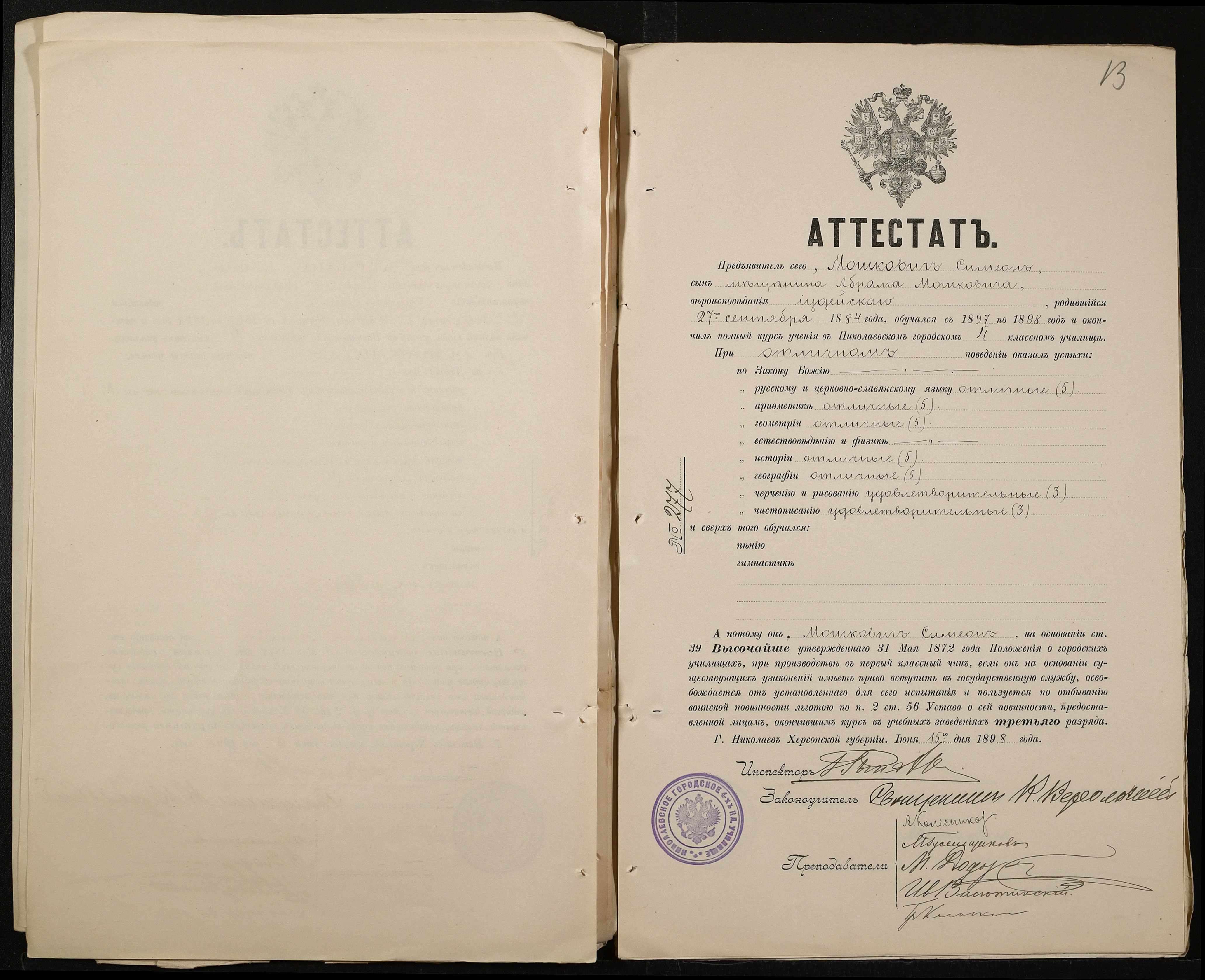 ◦ ◦ Фонд № 131 “Миколаївське перше вище початкове училище”