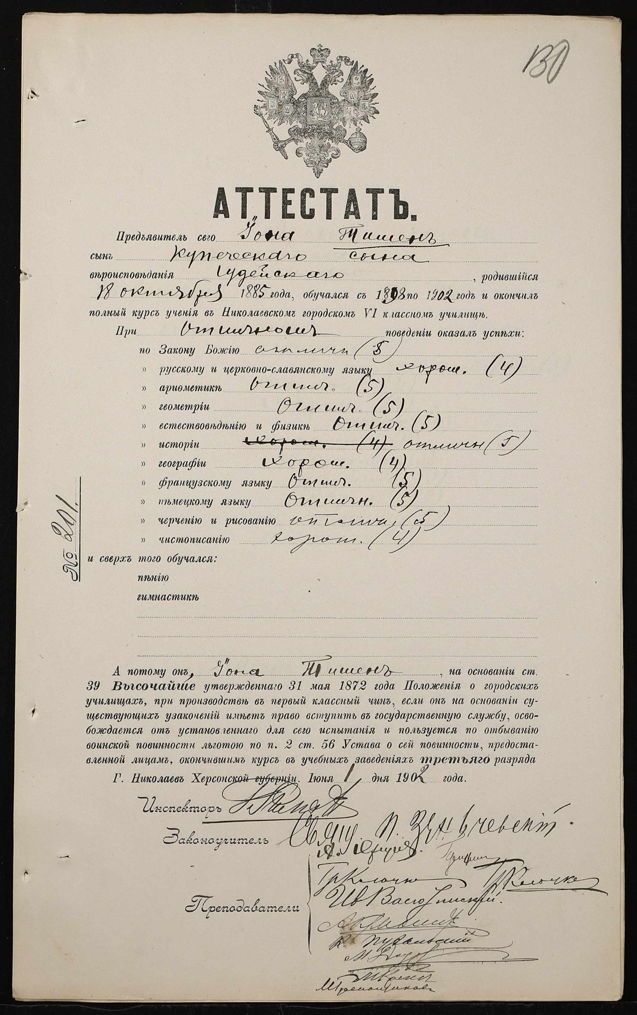 ◦ ◦ Фонд № 131 “Миколаївське перше вище початкове училище”