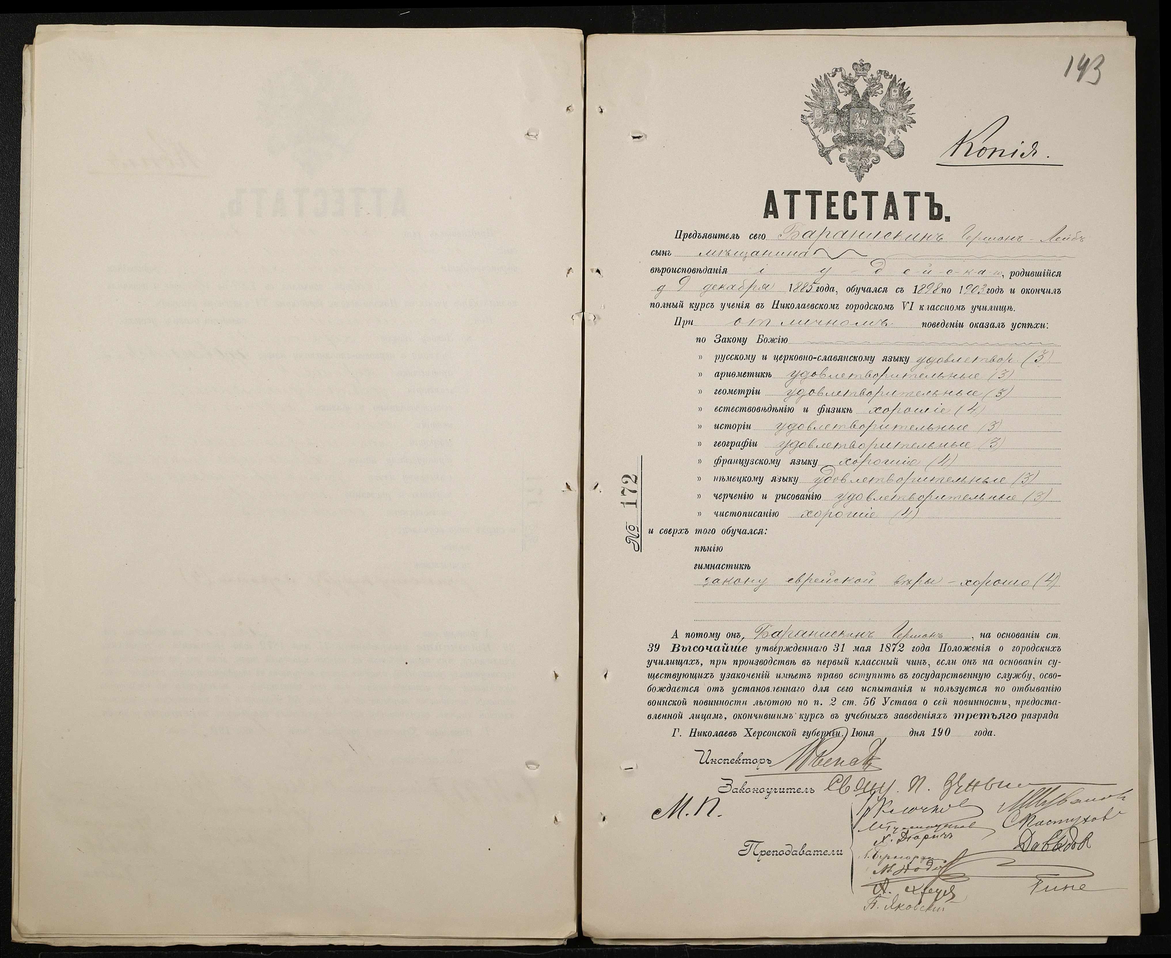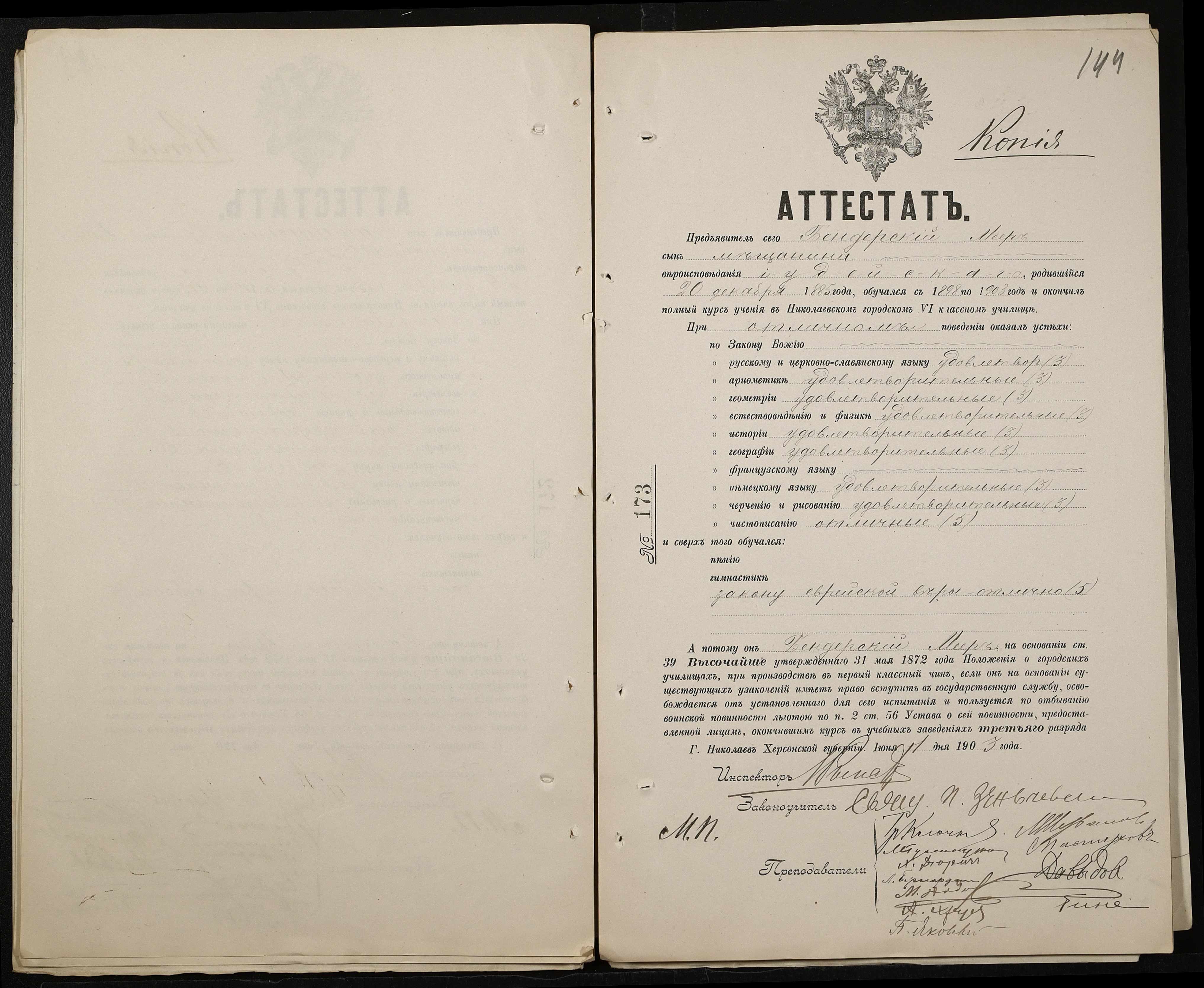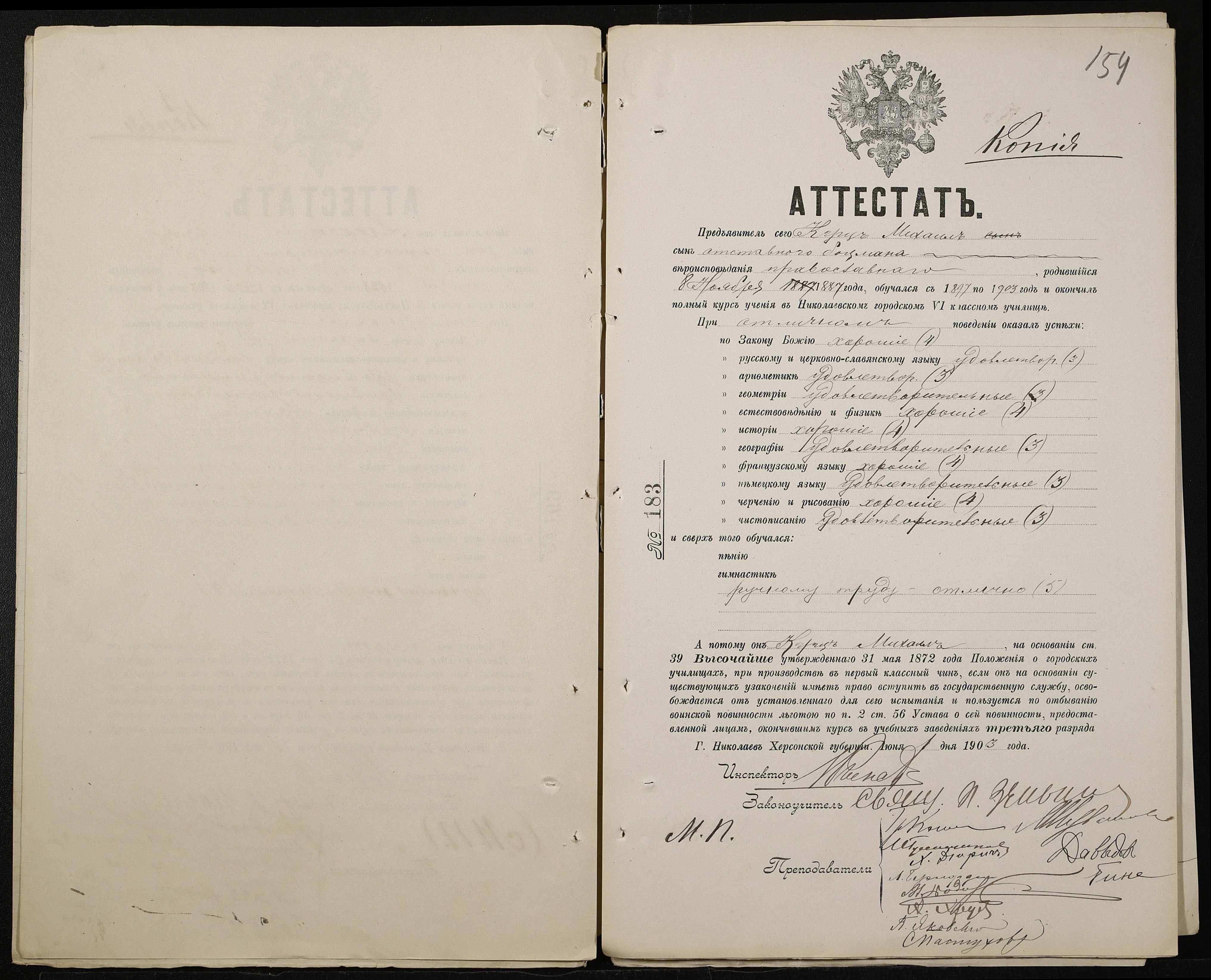 • • • • Справа № 389 “Атестати учнів про закінчення чотирикласного (шестикласного) училища (копії)”